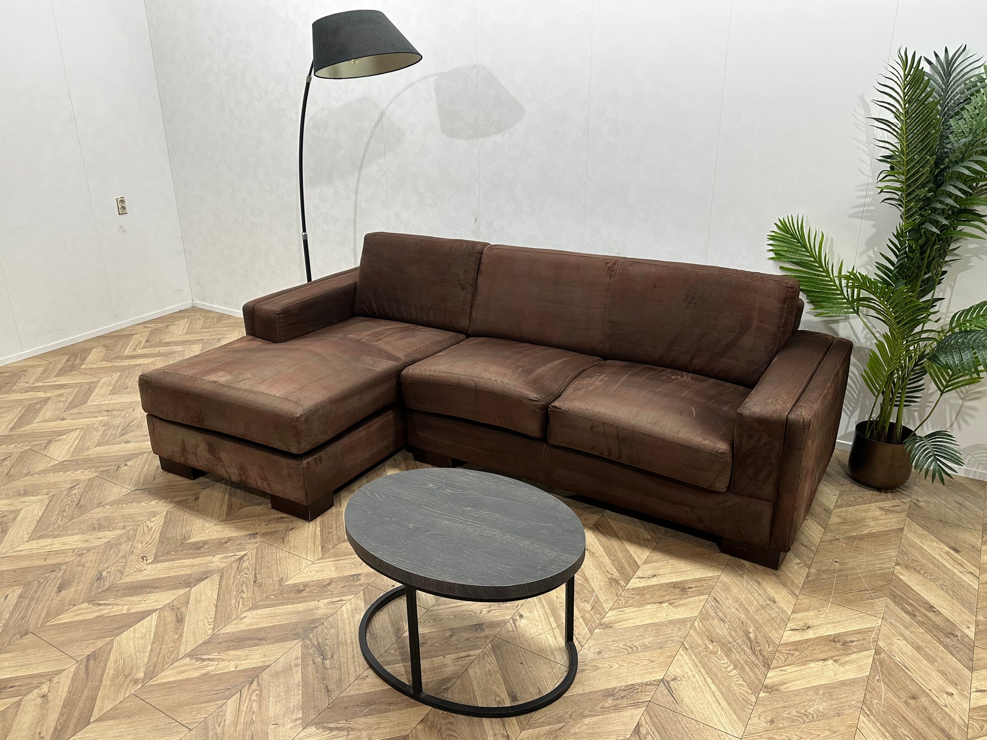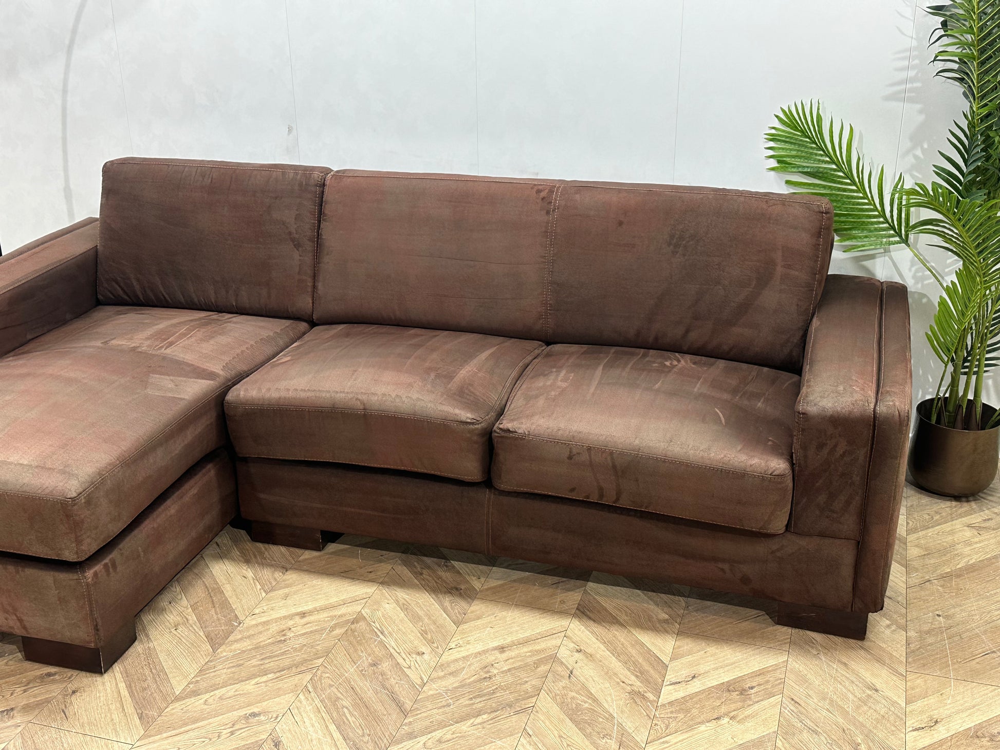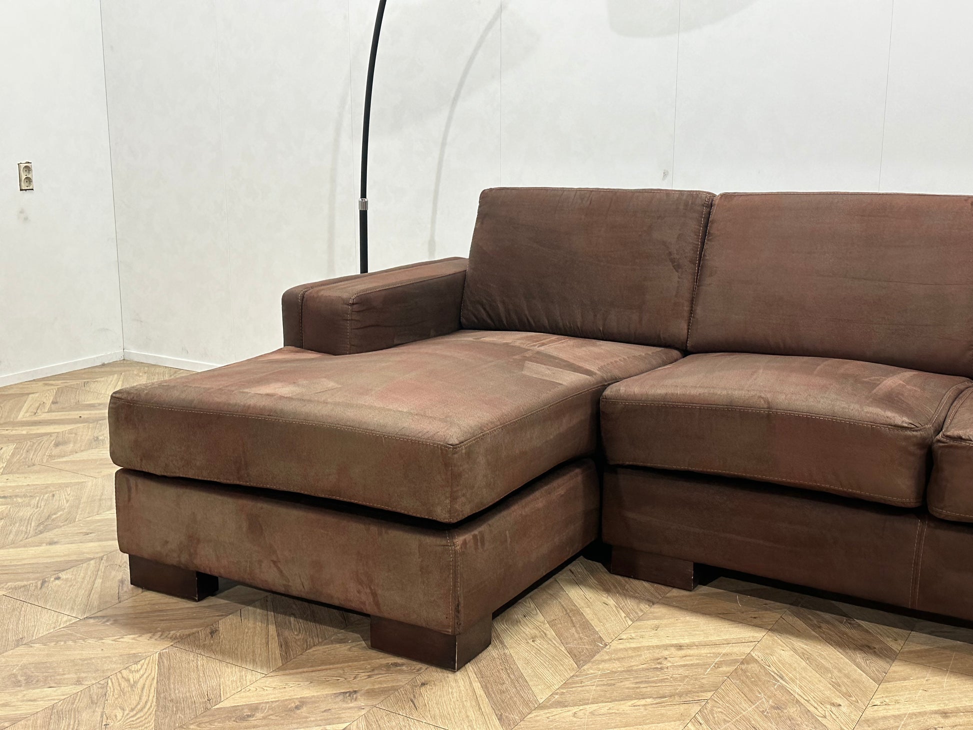 Bruine Suède Stoffen Hoekbank ~ Vaste Kussens