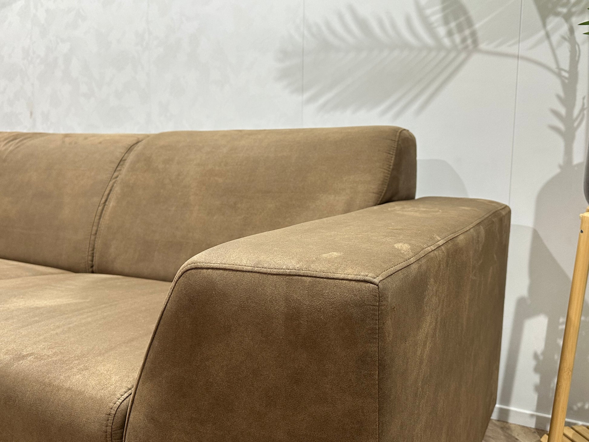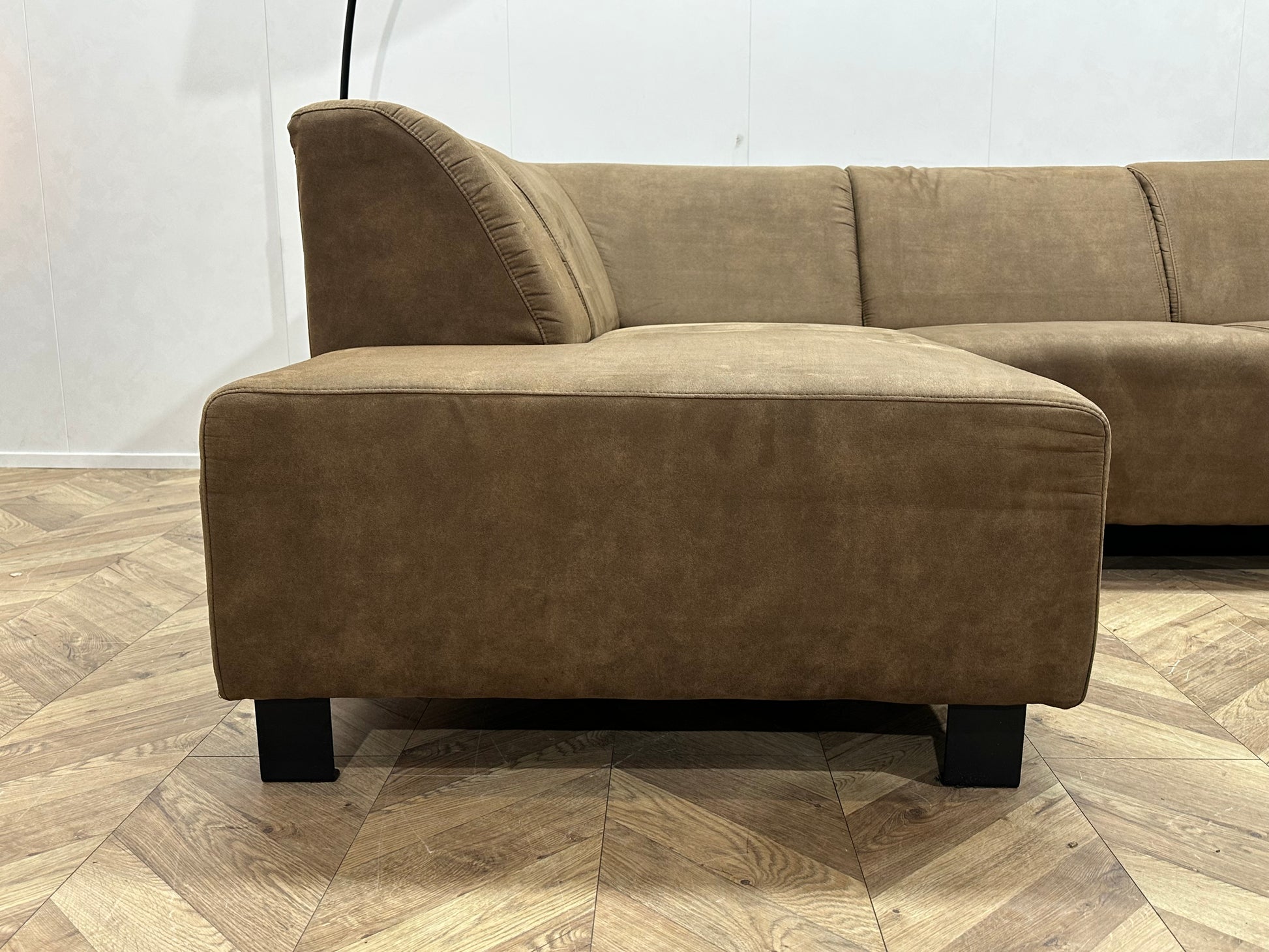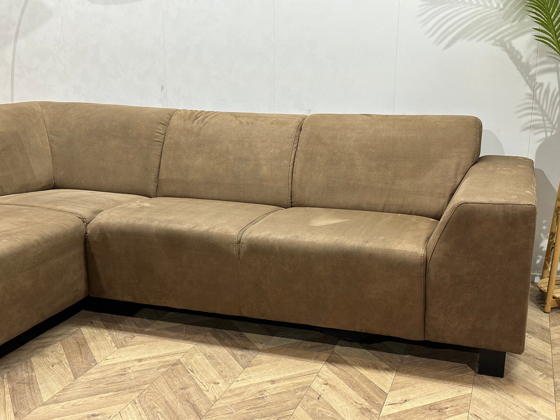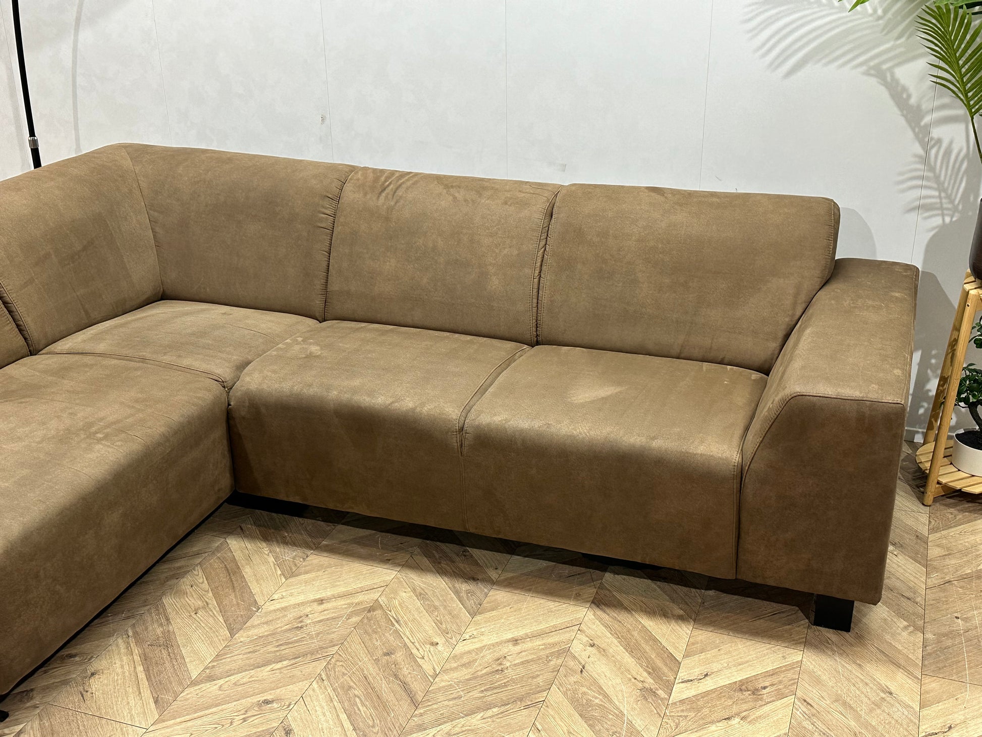 Bruine Suède Stoffen Hoekbank ~ Vaste Kussens