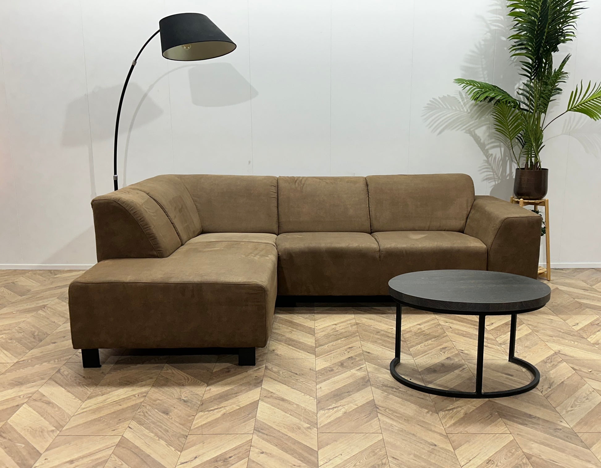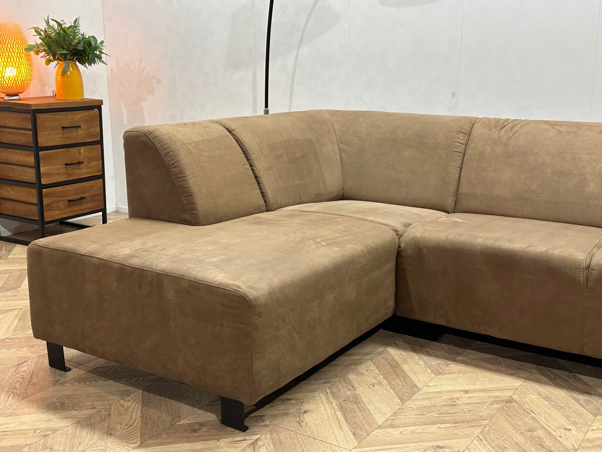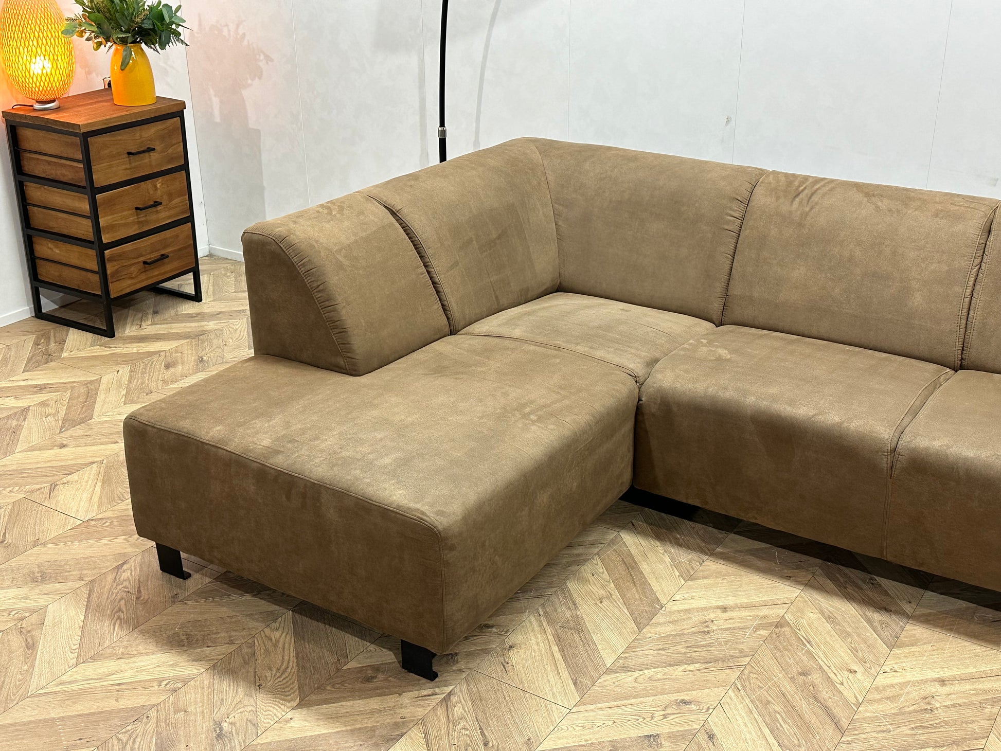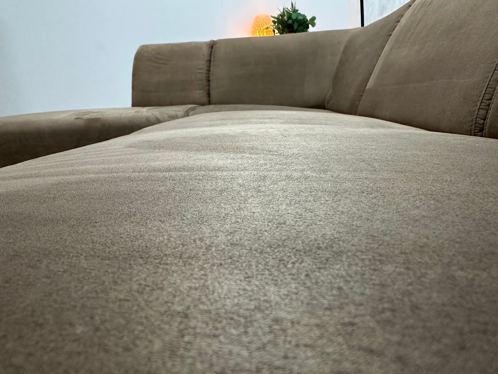 Bruine Suède Stoffen Hoekbank ~ Vaste Kussens