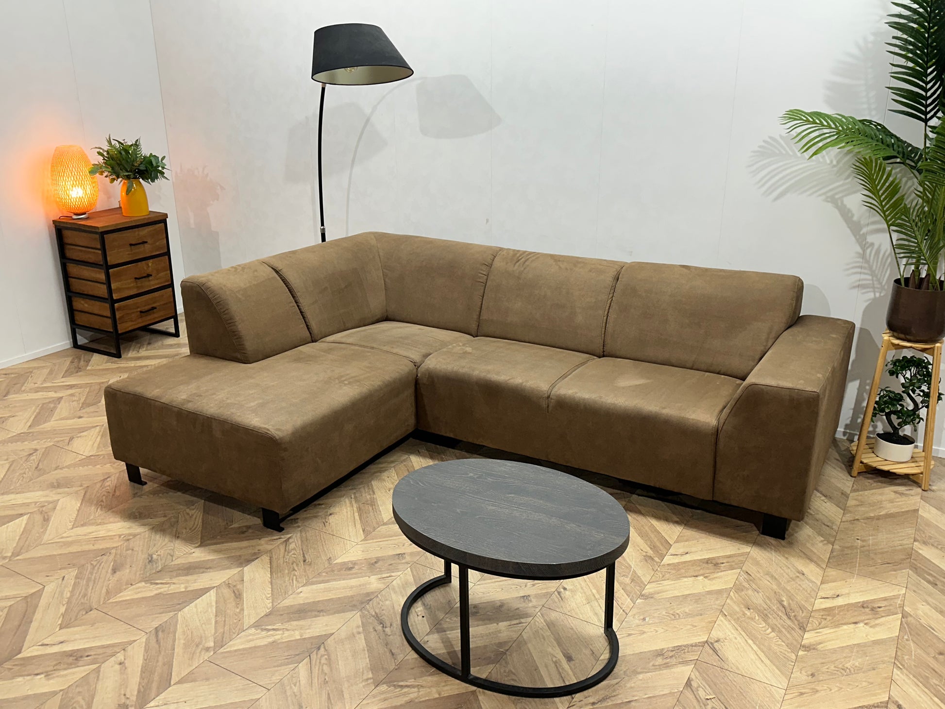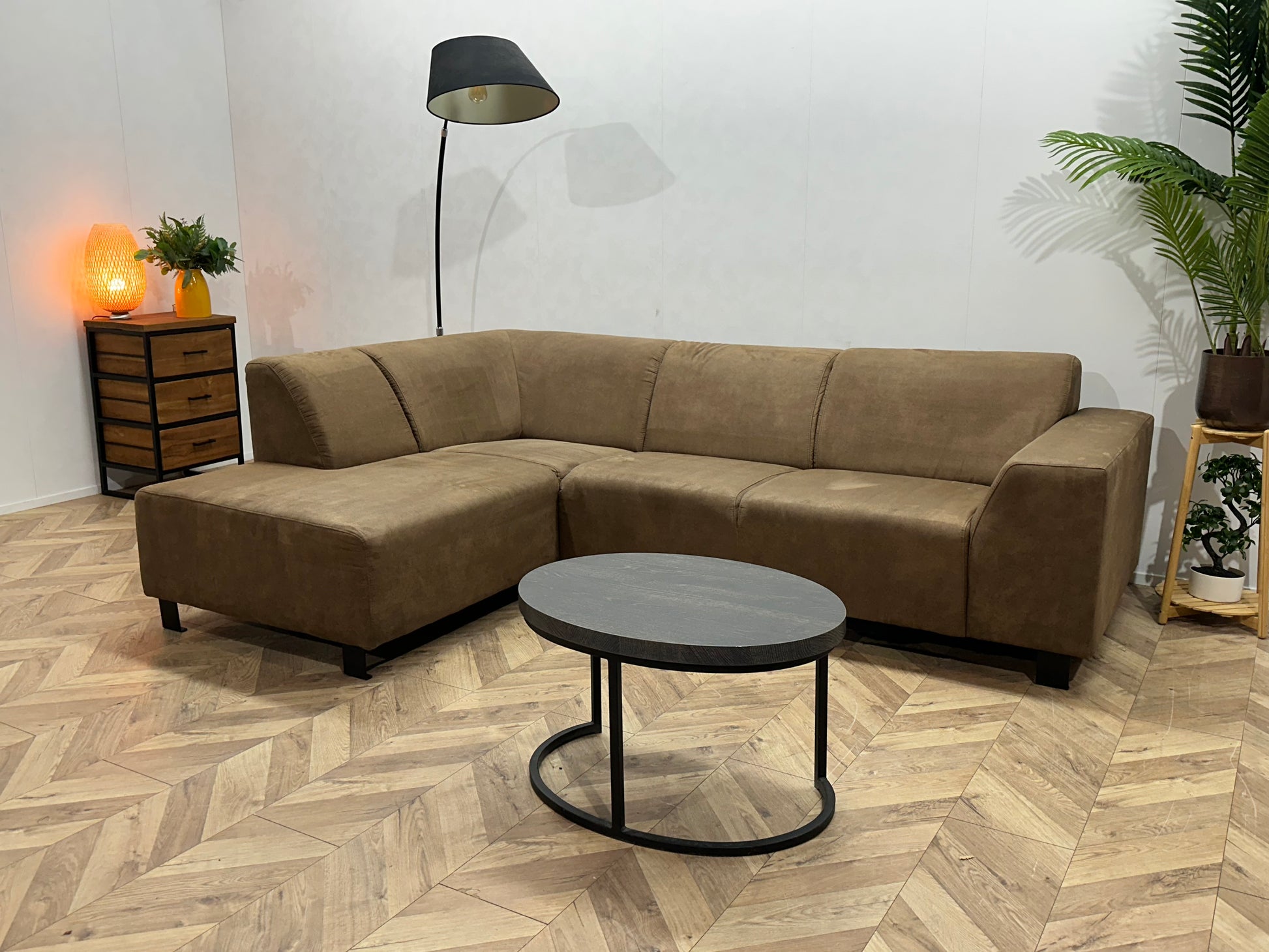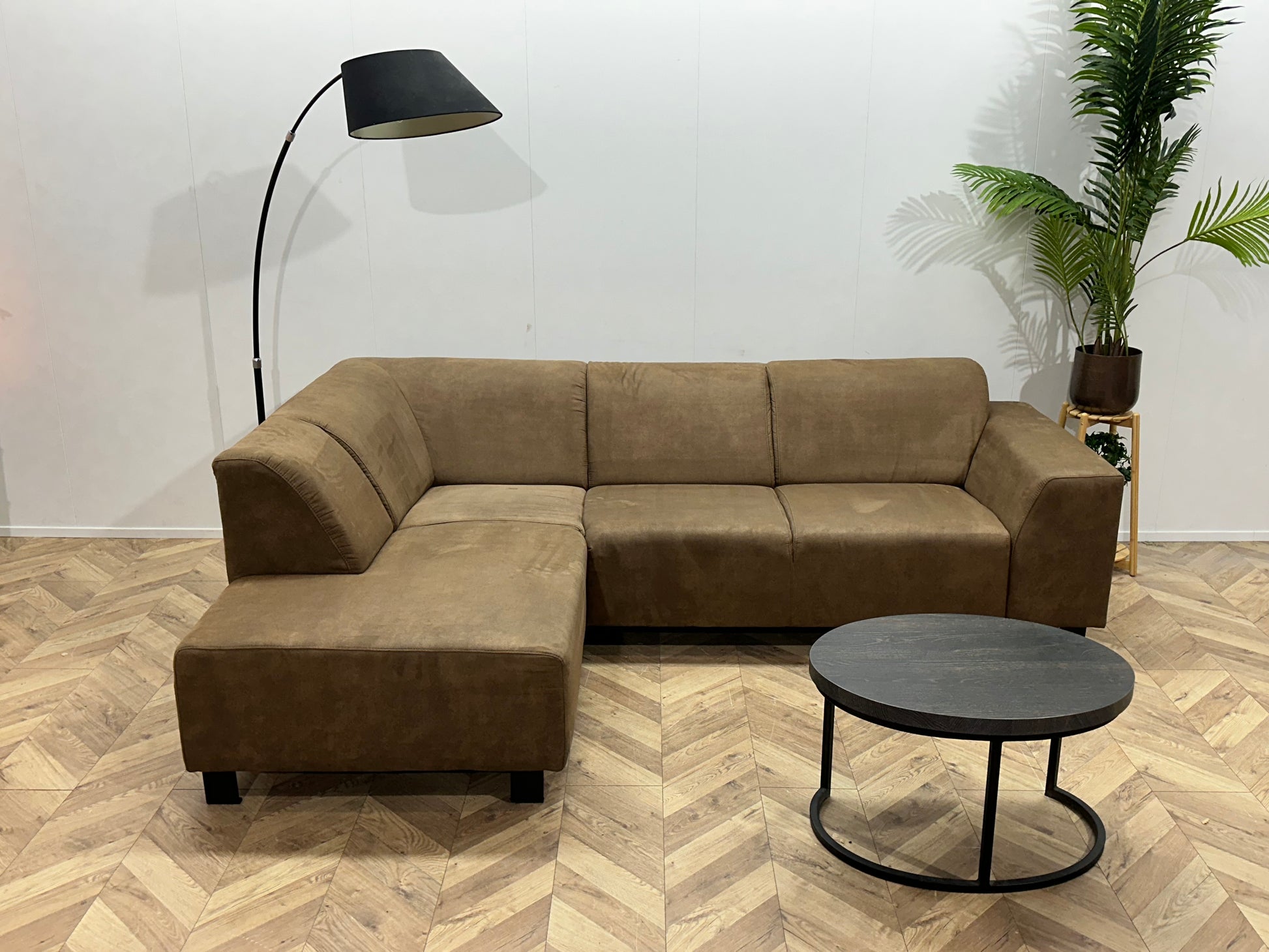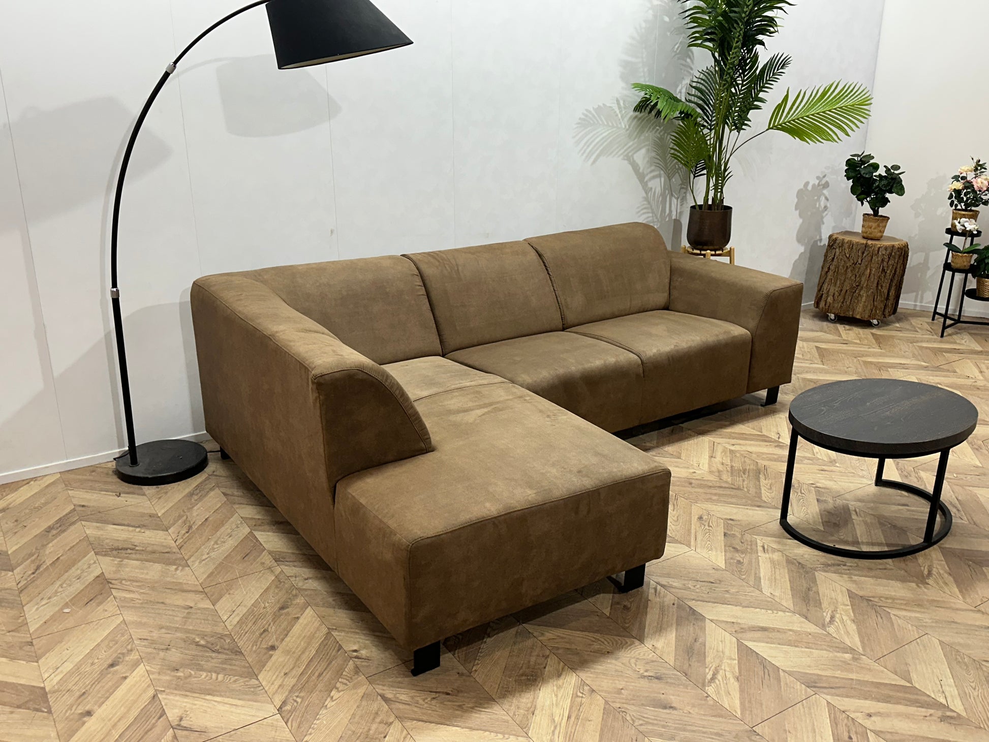 Bruine Suède Stoffen Hoekbank ~ Vaste Kussens