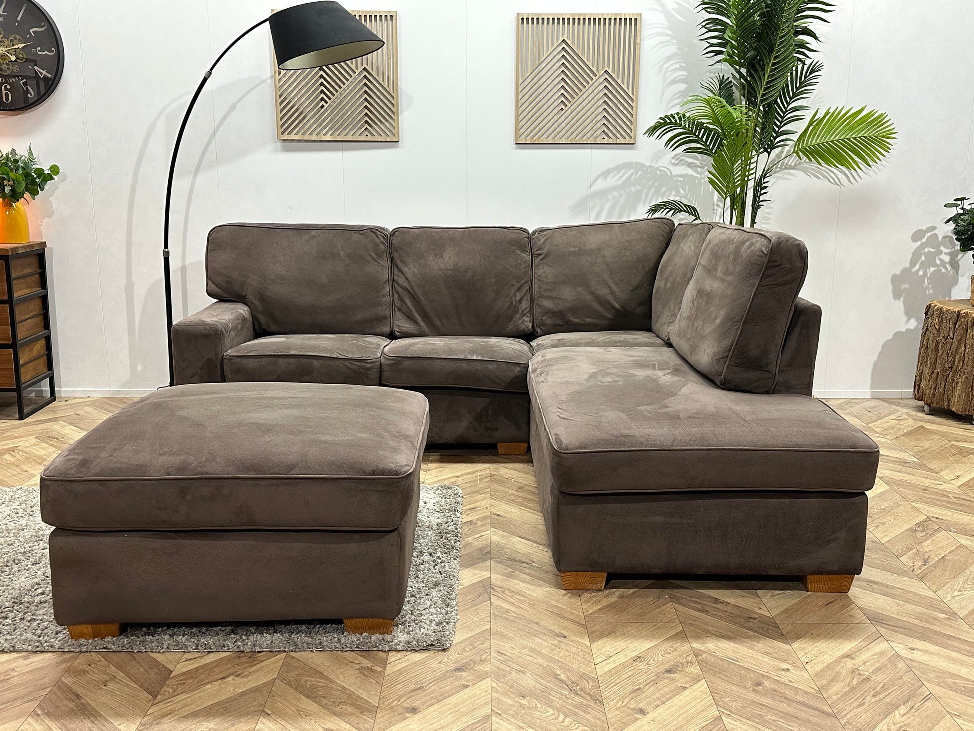 Bruine Velvet Hoekbank Inc Hocker ~ Losse Kussens Met Afneembare Hoezen