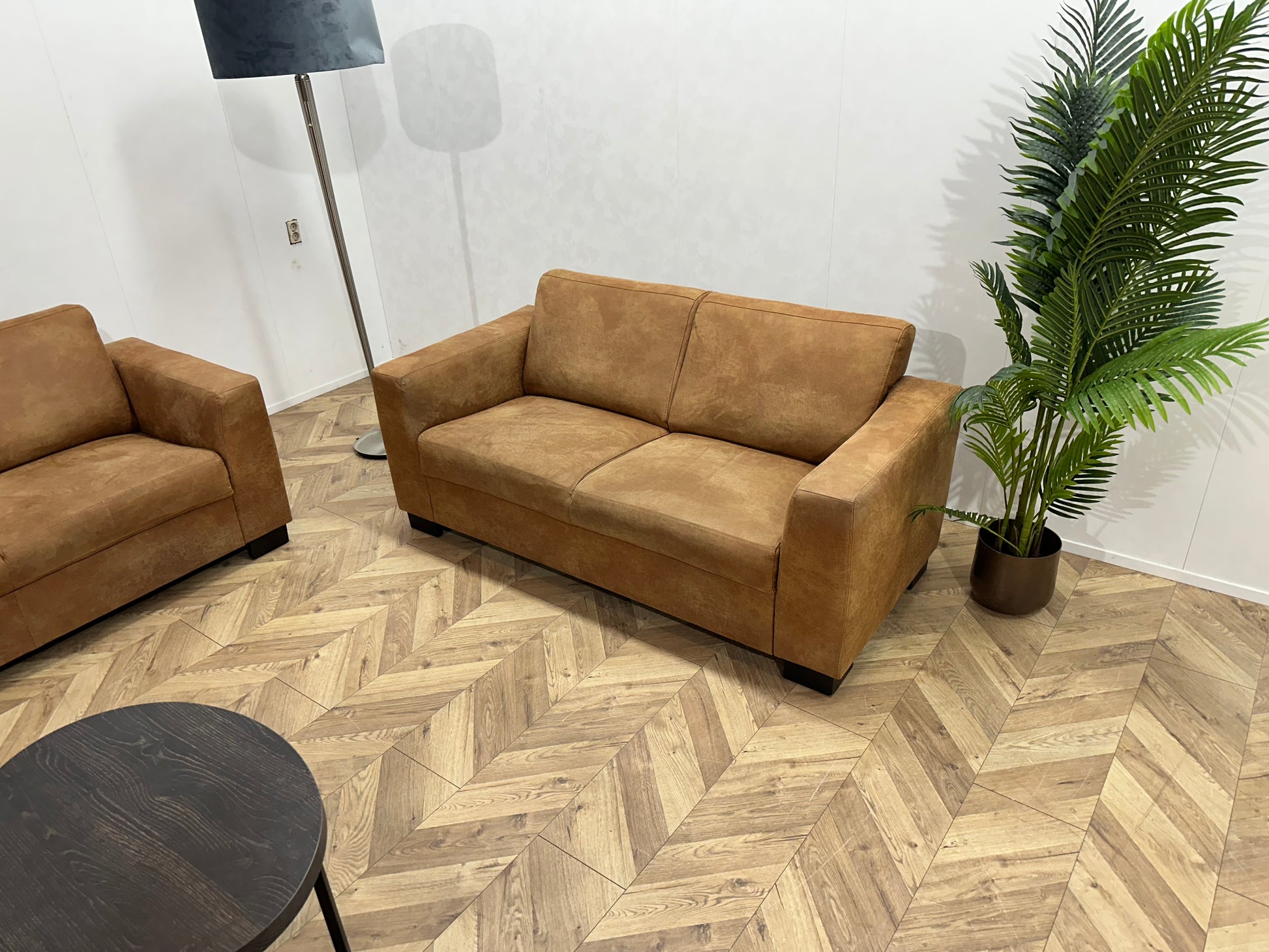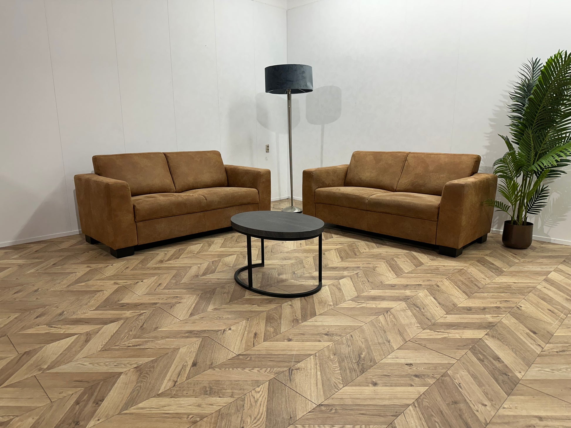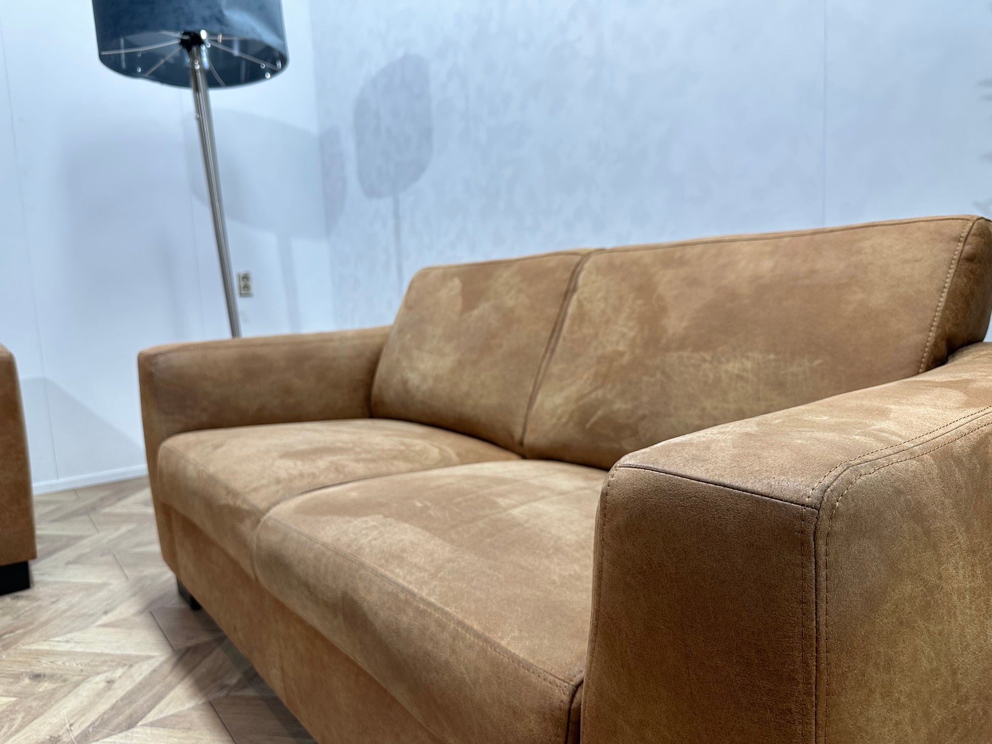 Cognac Bruine Suède Lederen Banken Set ~ Vaste Kussens