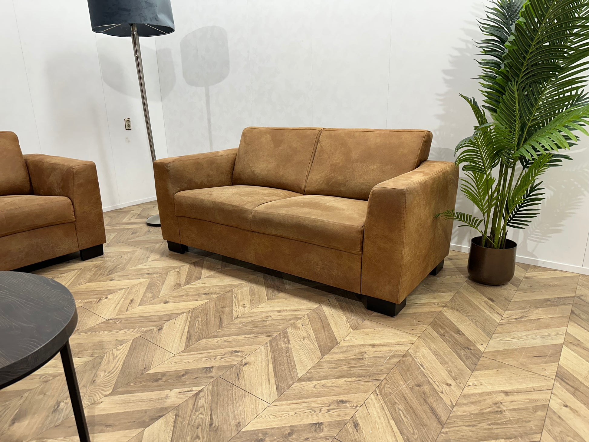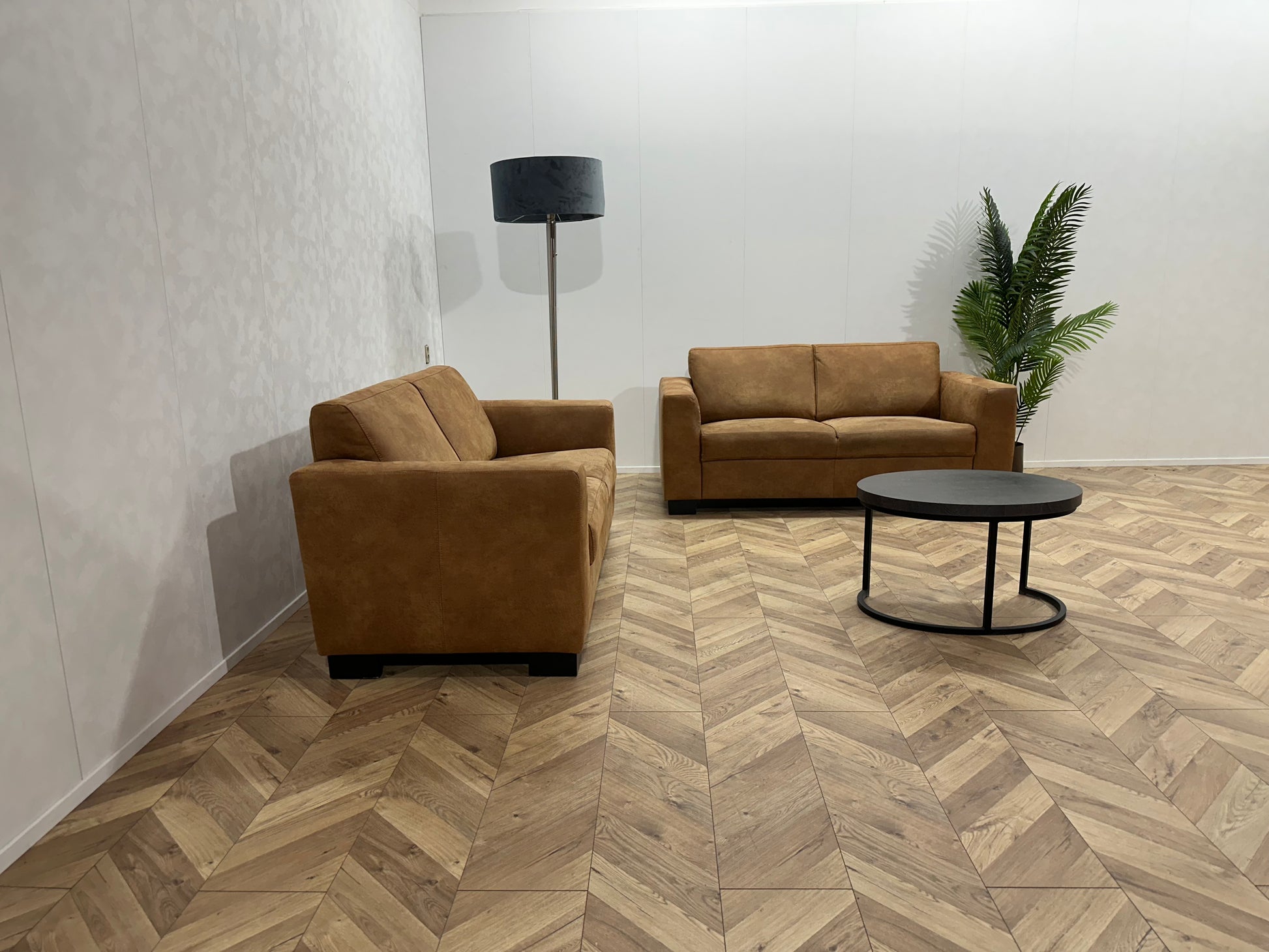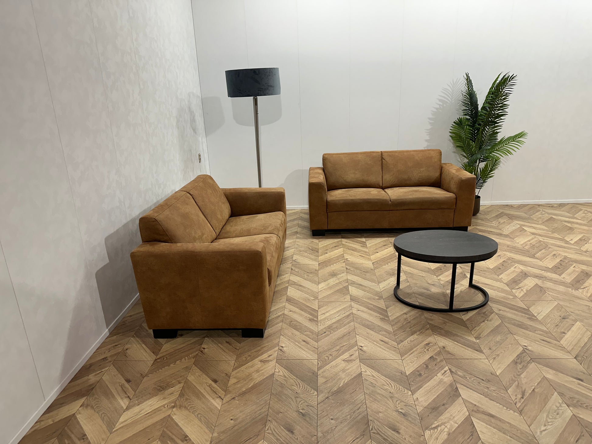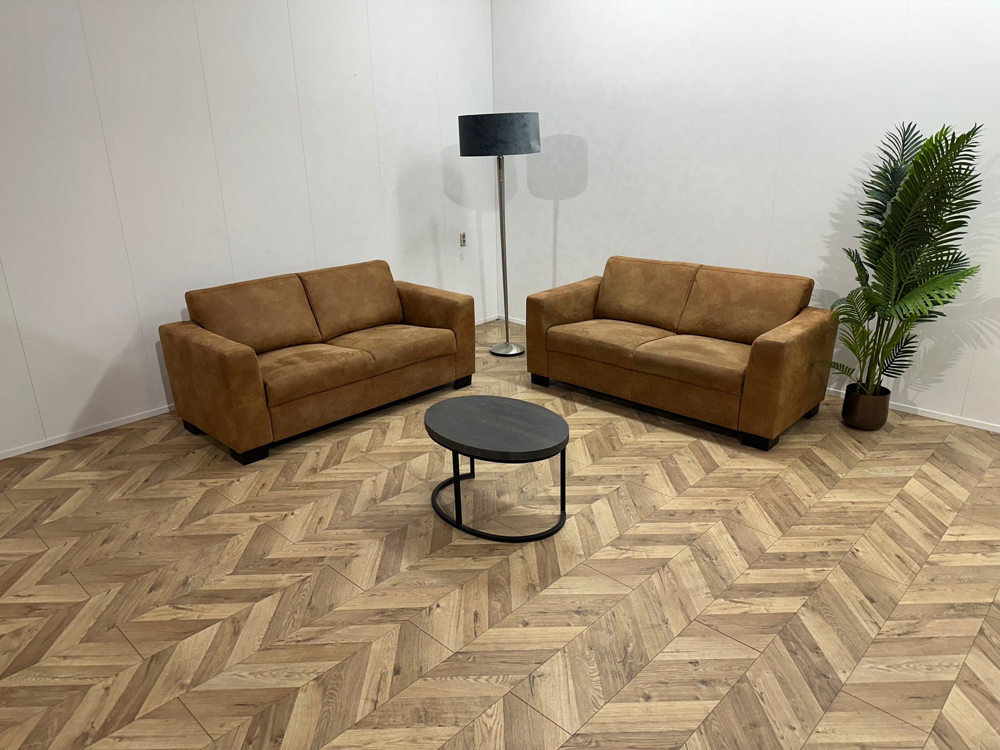 Cognac Bruine Suède Lederen Banken Set ~ Vaste Kussens