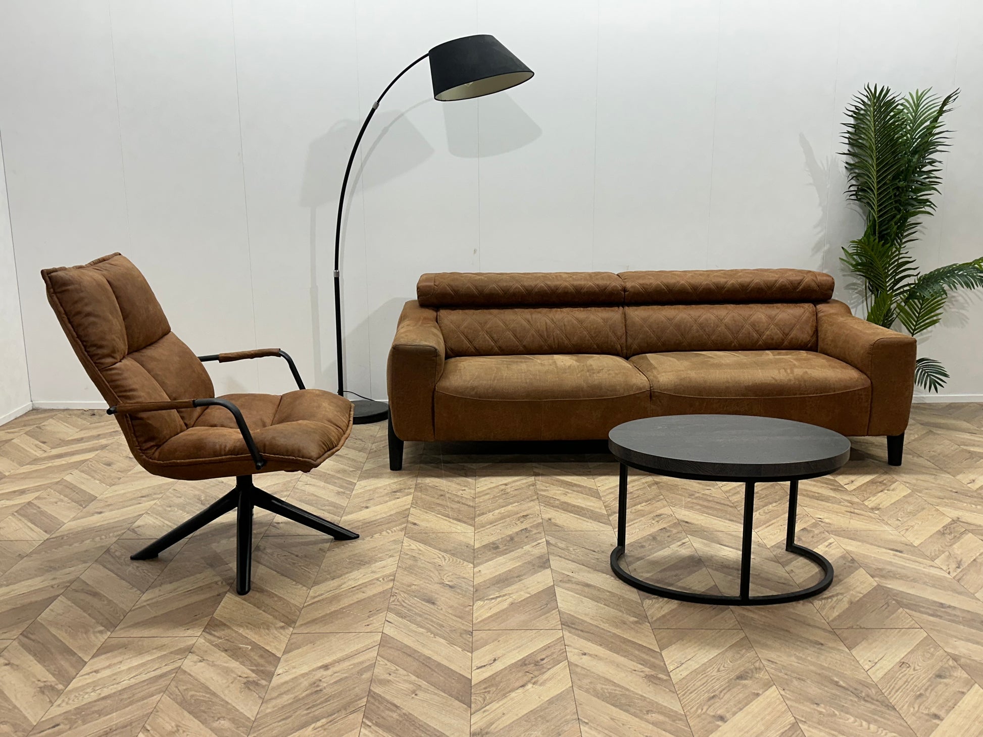 Cognac Bruine Suède Lederen Banken Set ~ Verstelbare Hoofdsteunen