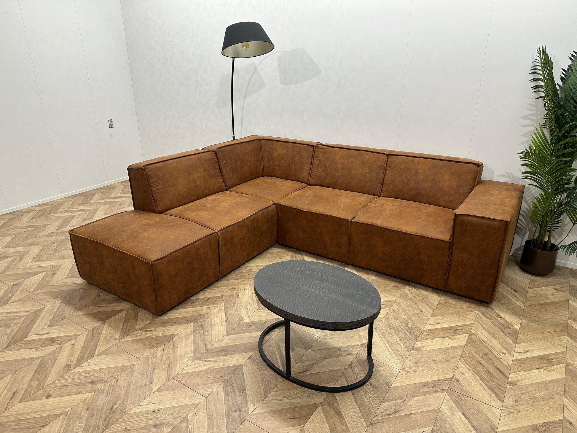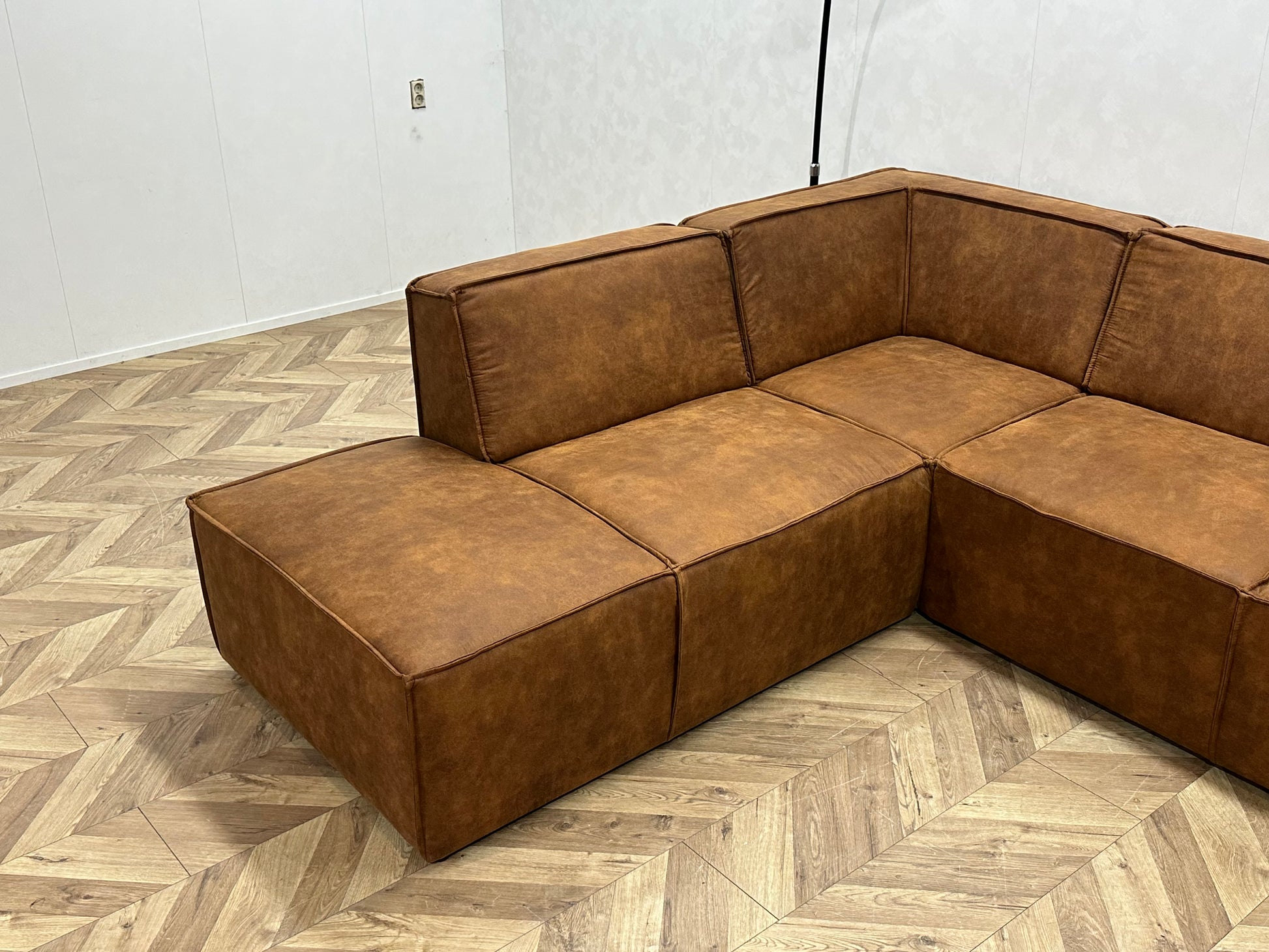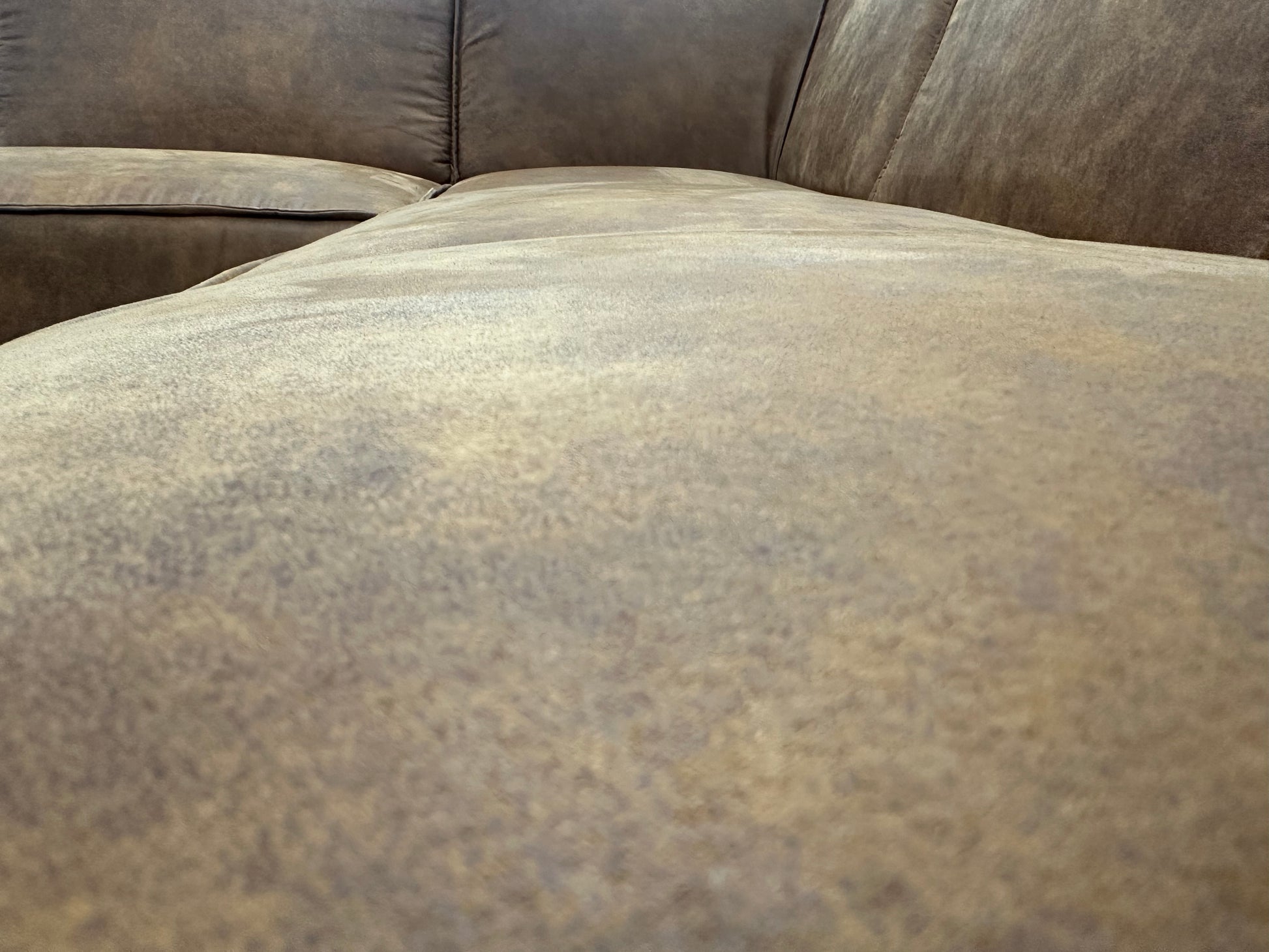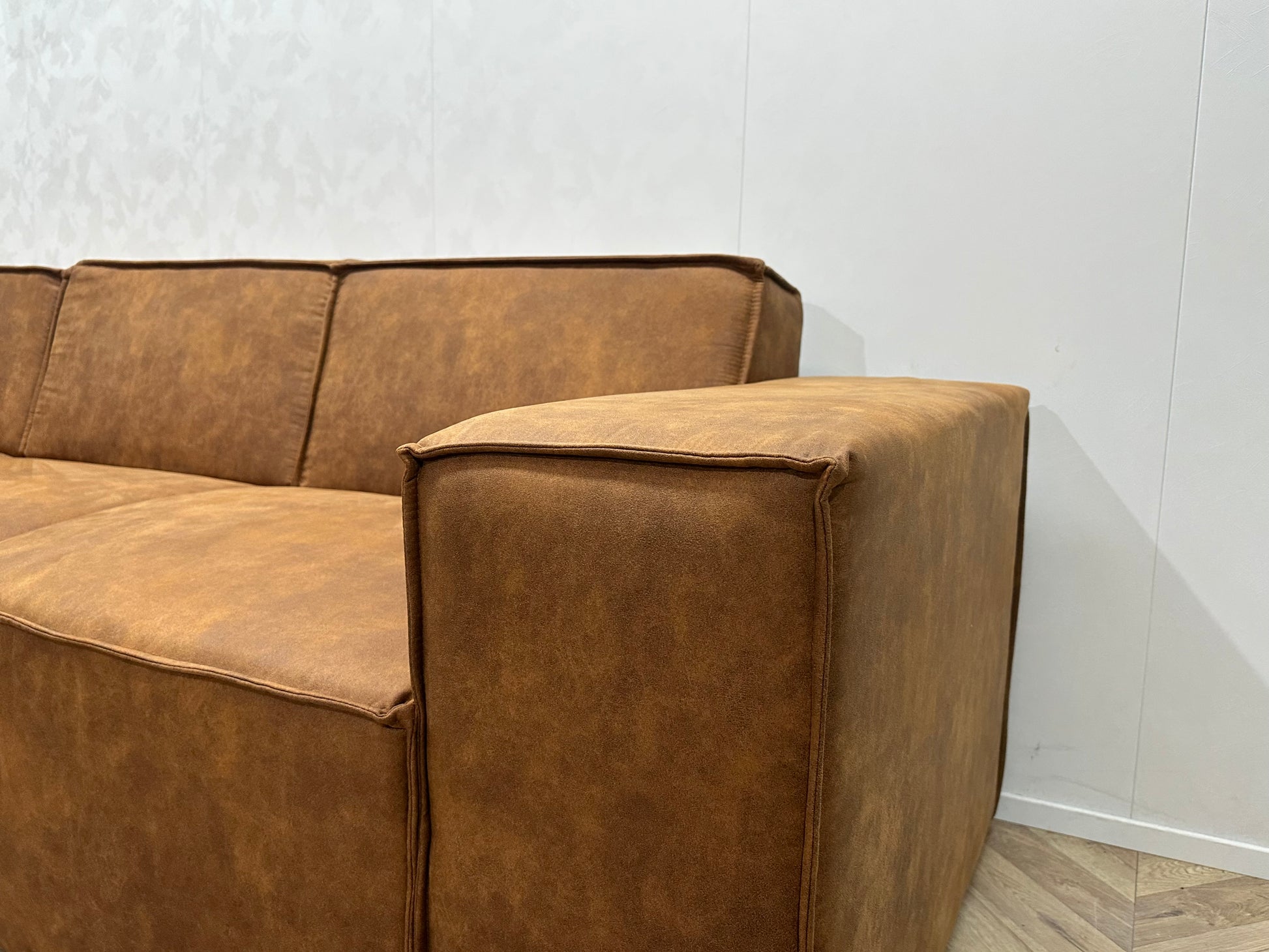 !Showroom Model! Cognac Bruine Suède Lederen Hoekbank ~ Vaste Kussens