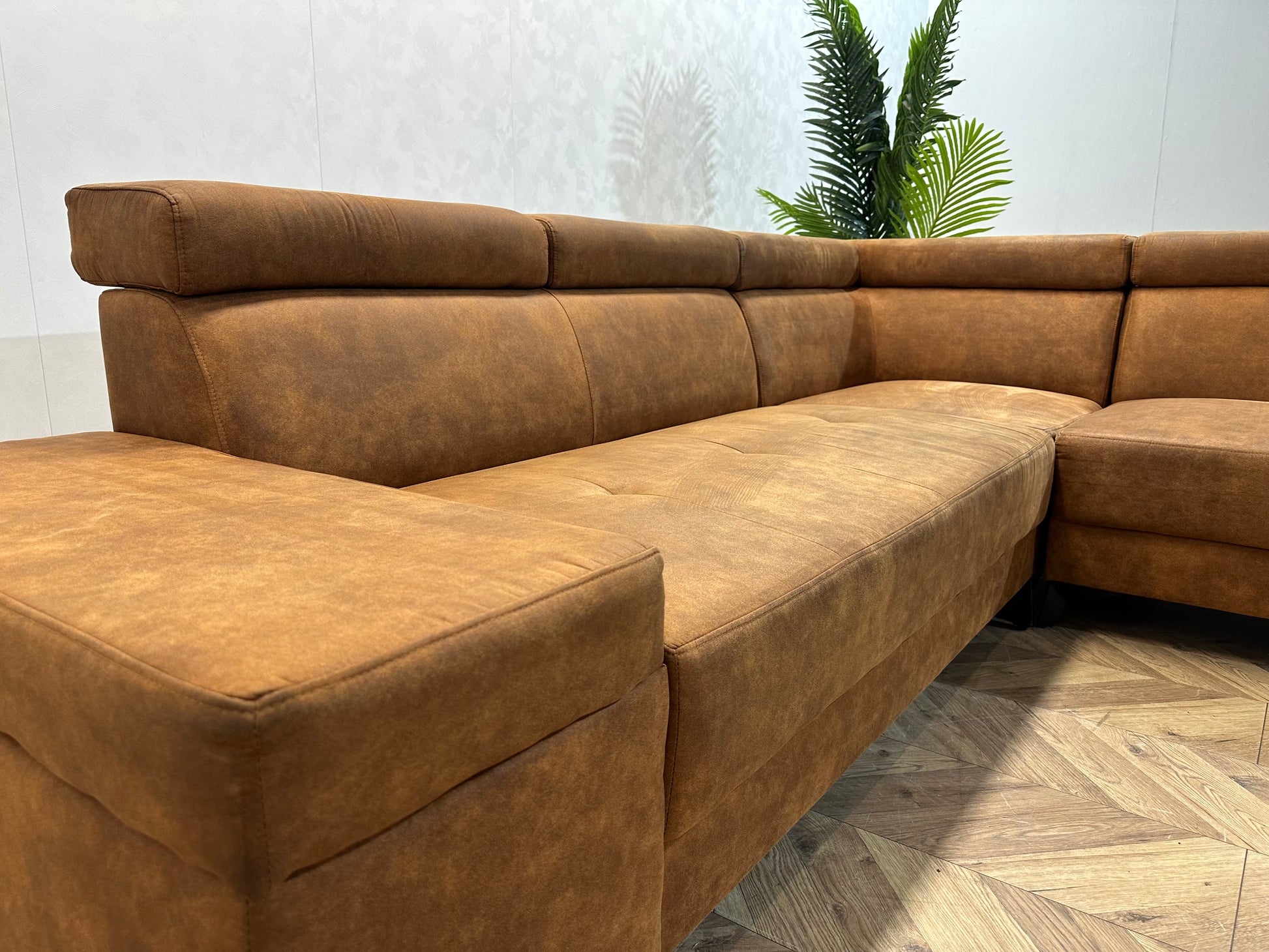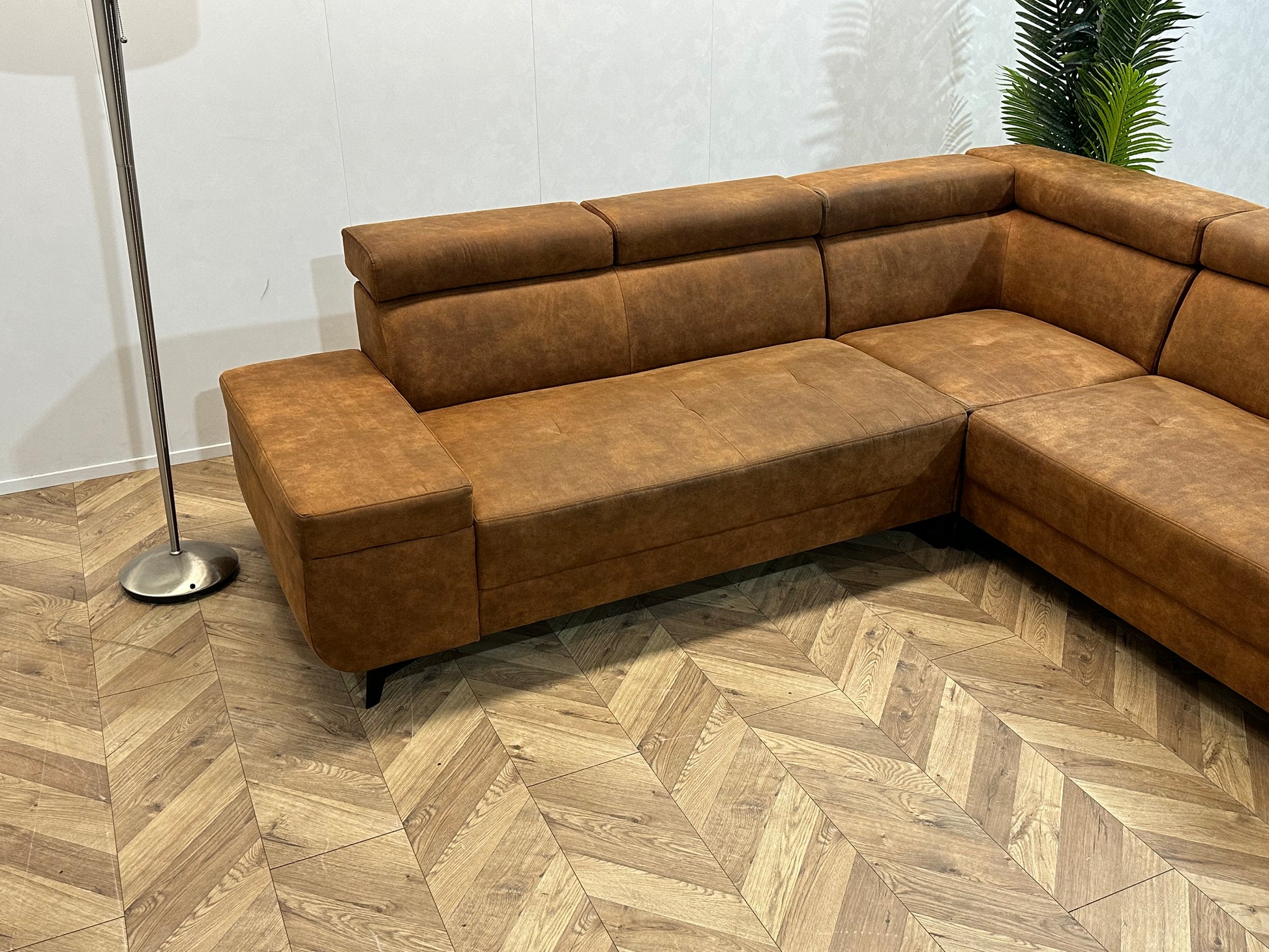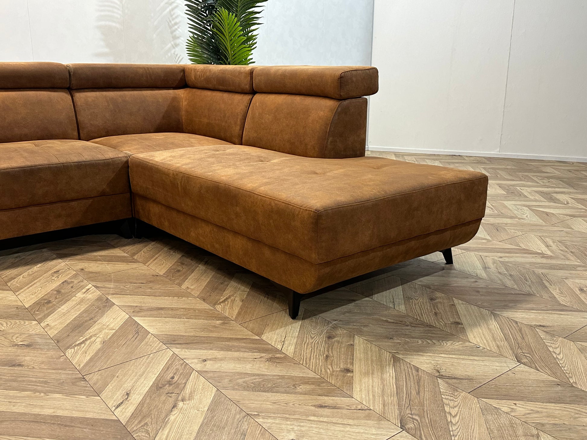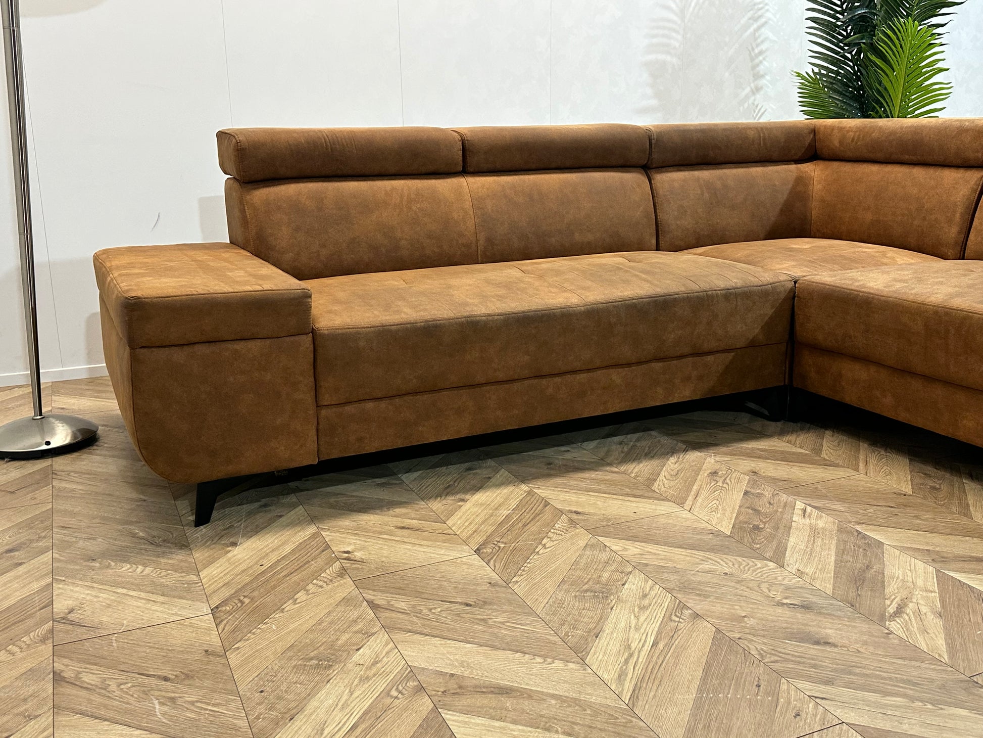 Cognac Bruine Suède Lederen Hoekbank ~ Verstelbare Hoofdsteunen
