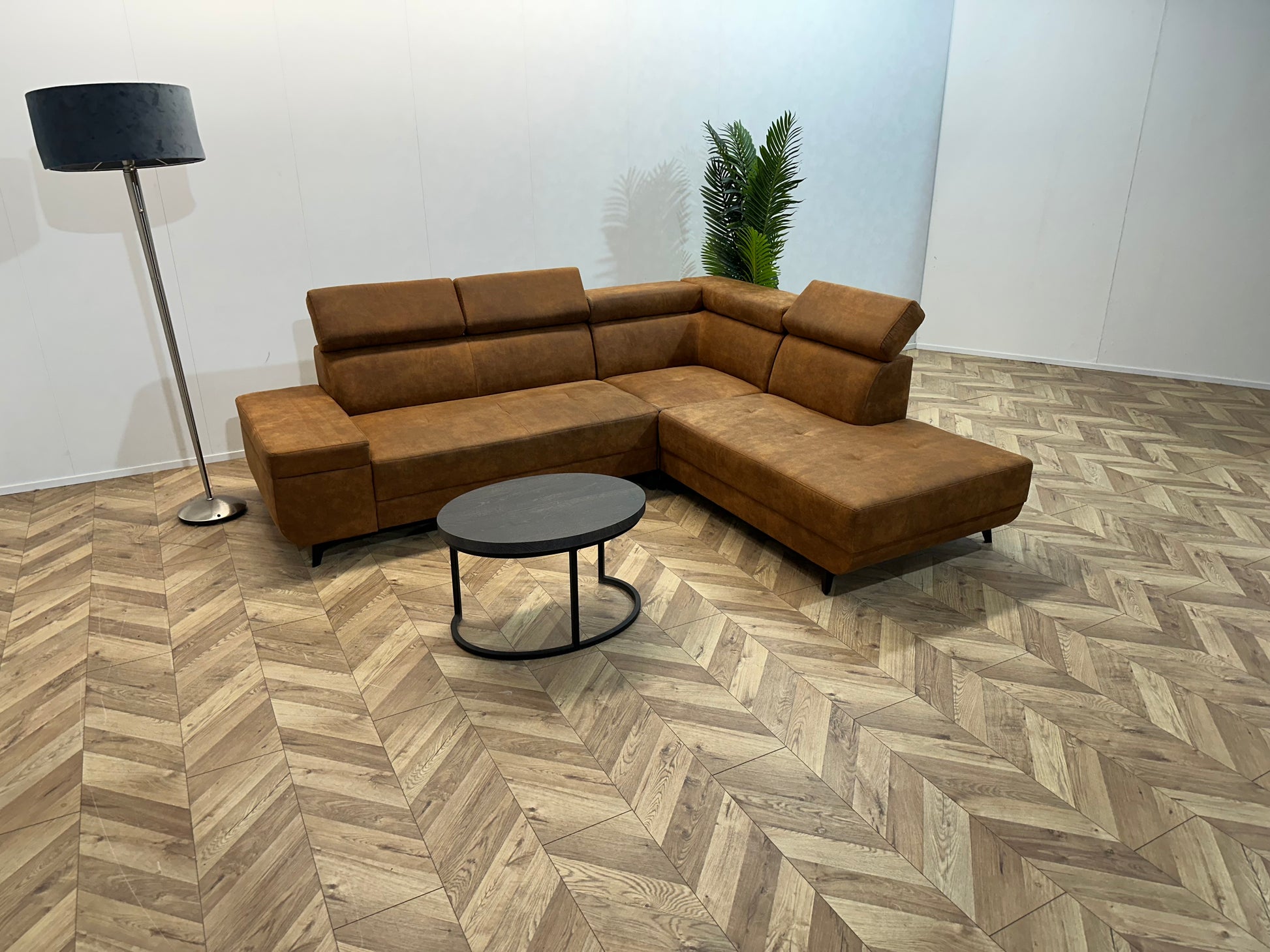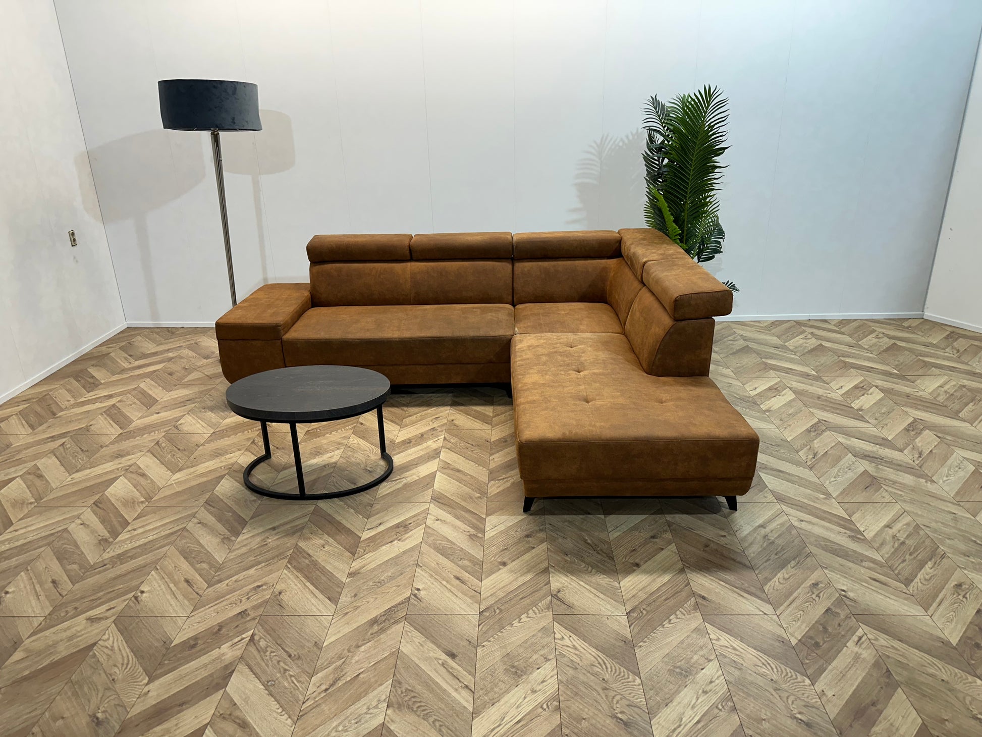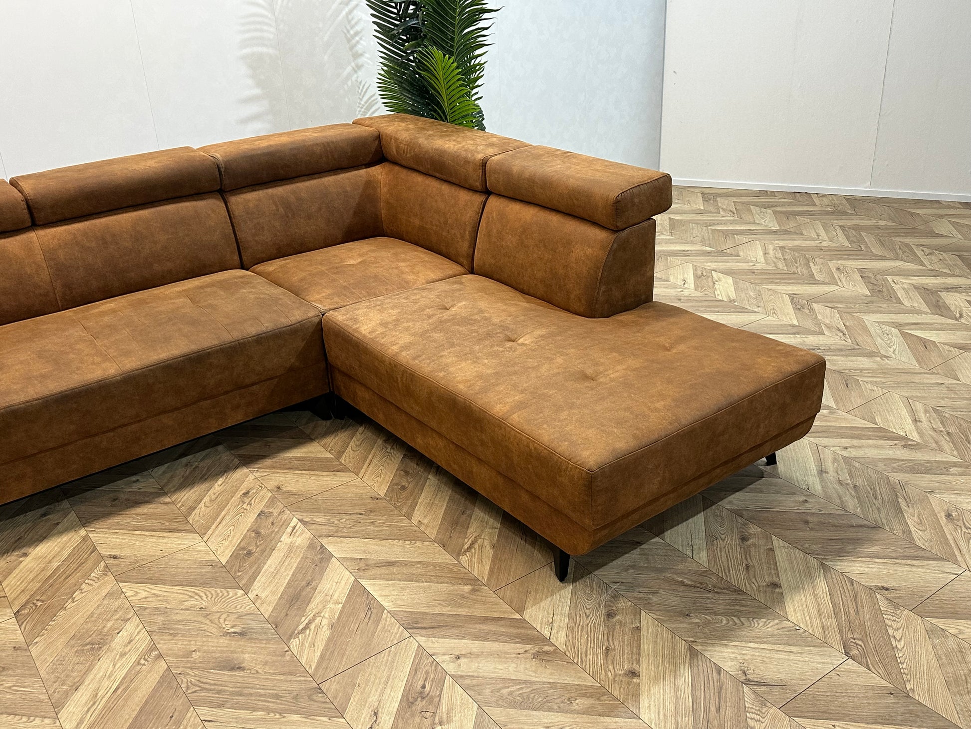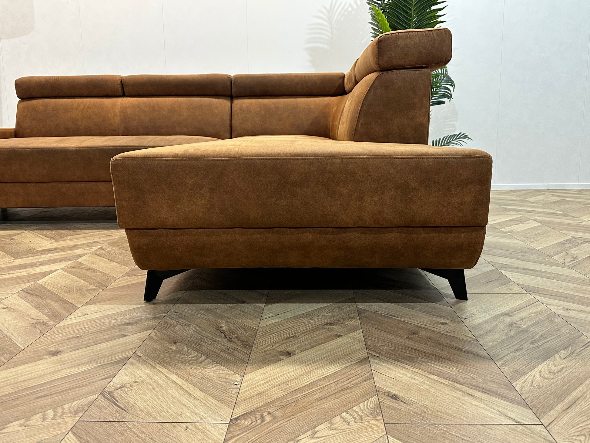 Cognac Bruine Suède Lederen Hoekbank ~ Verstelbare Hoofdsteunen