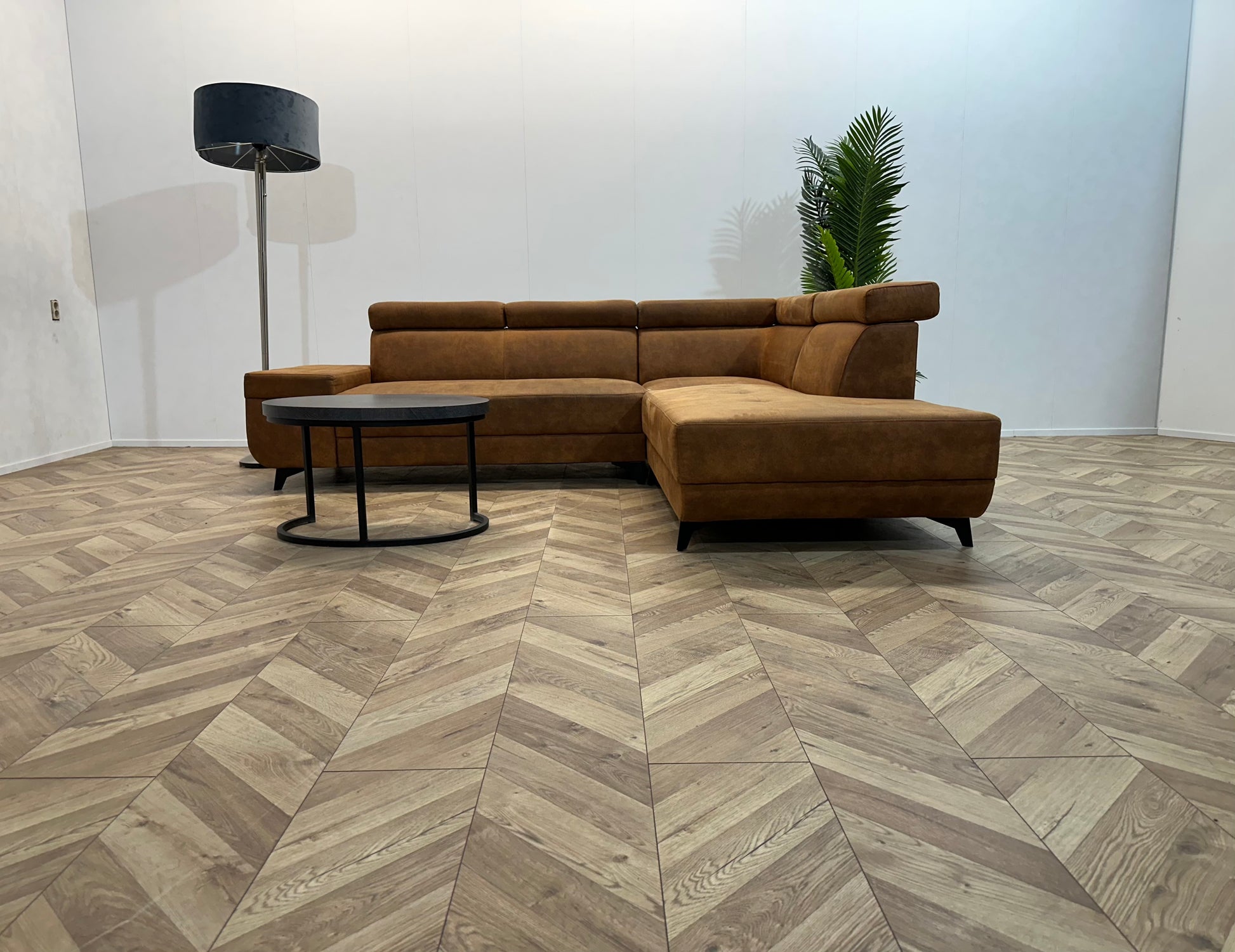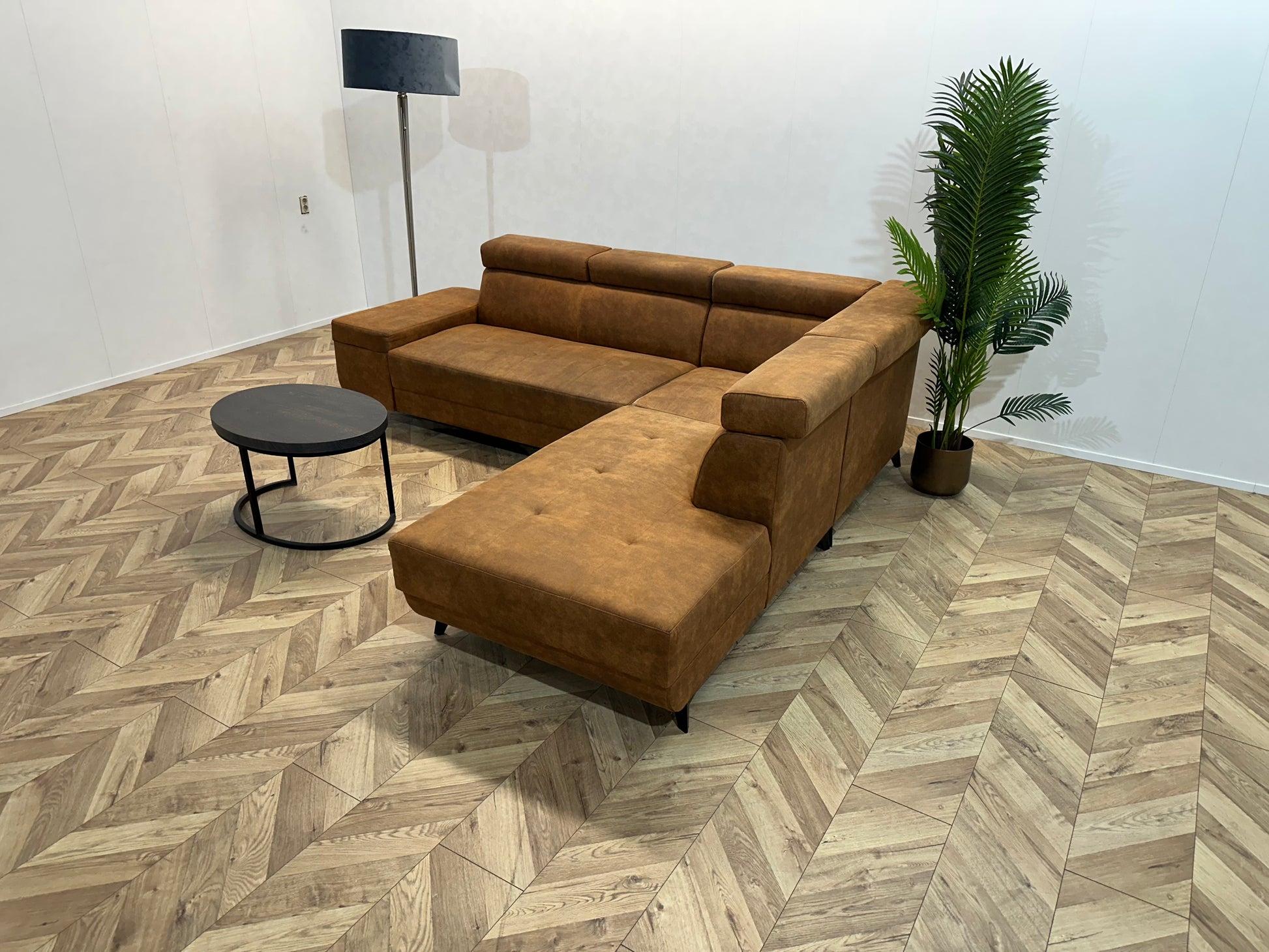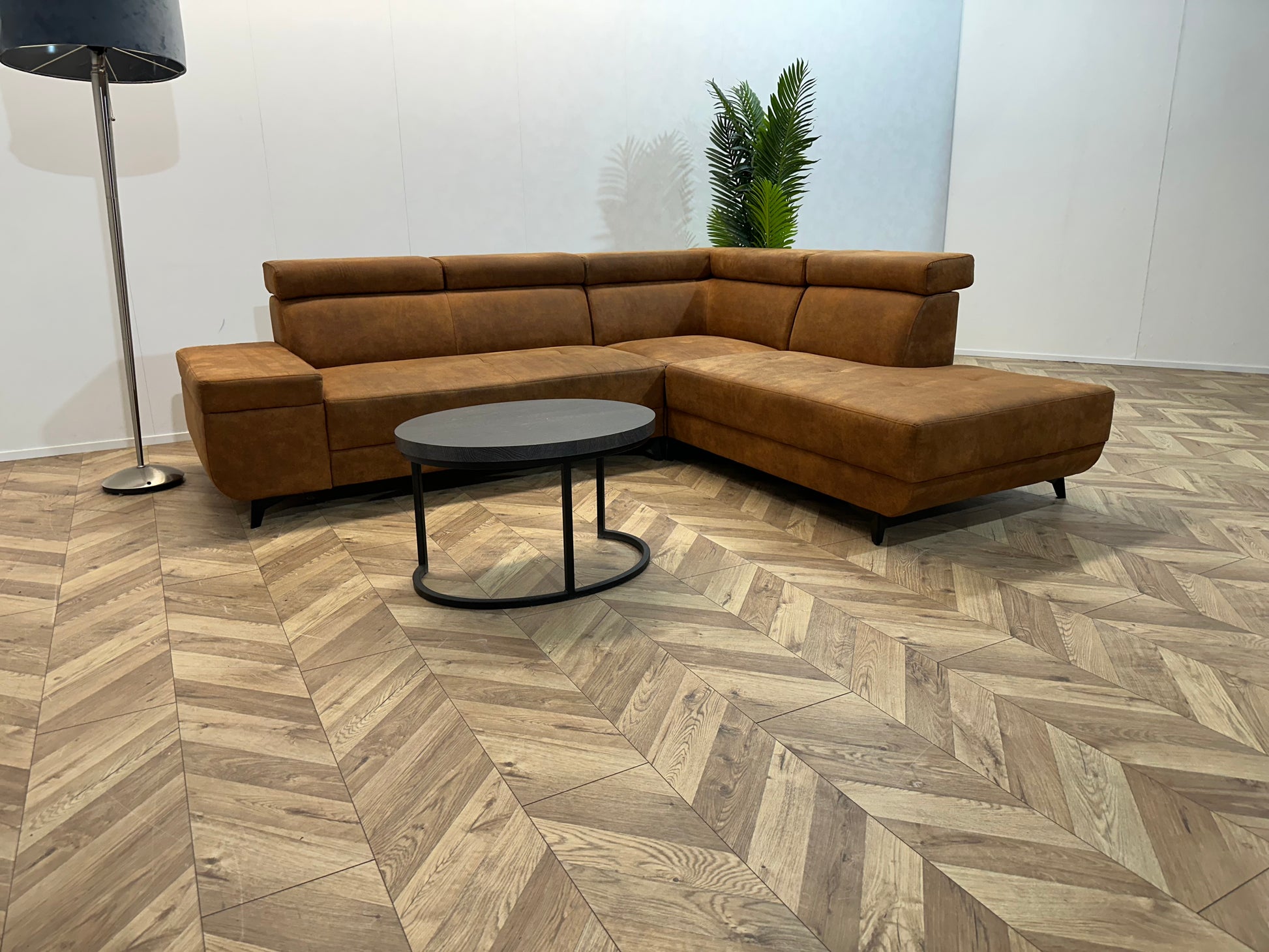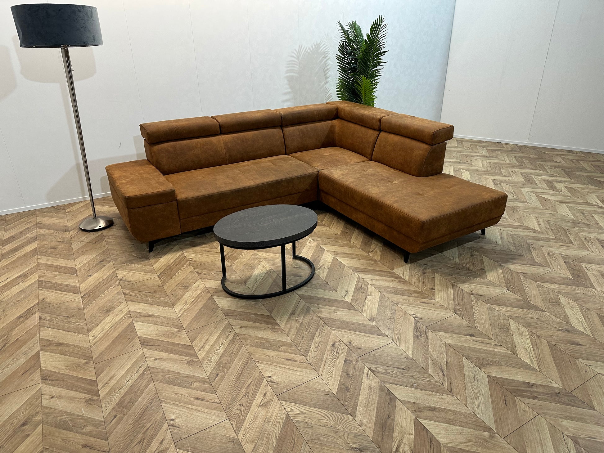 Cognac Bruine Suède Lederen Hoekbank ~ Verstelbare Hoofdsteunen
