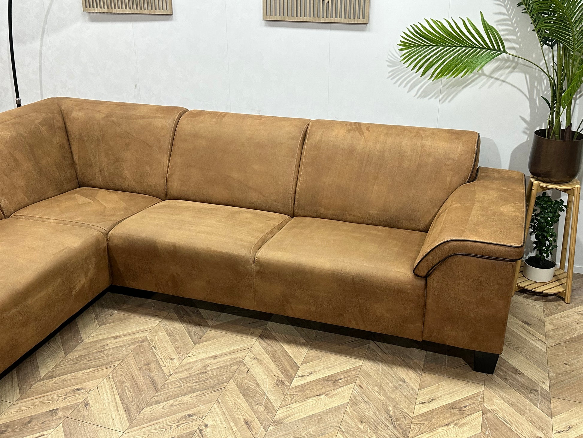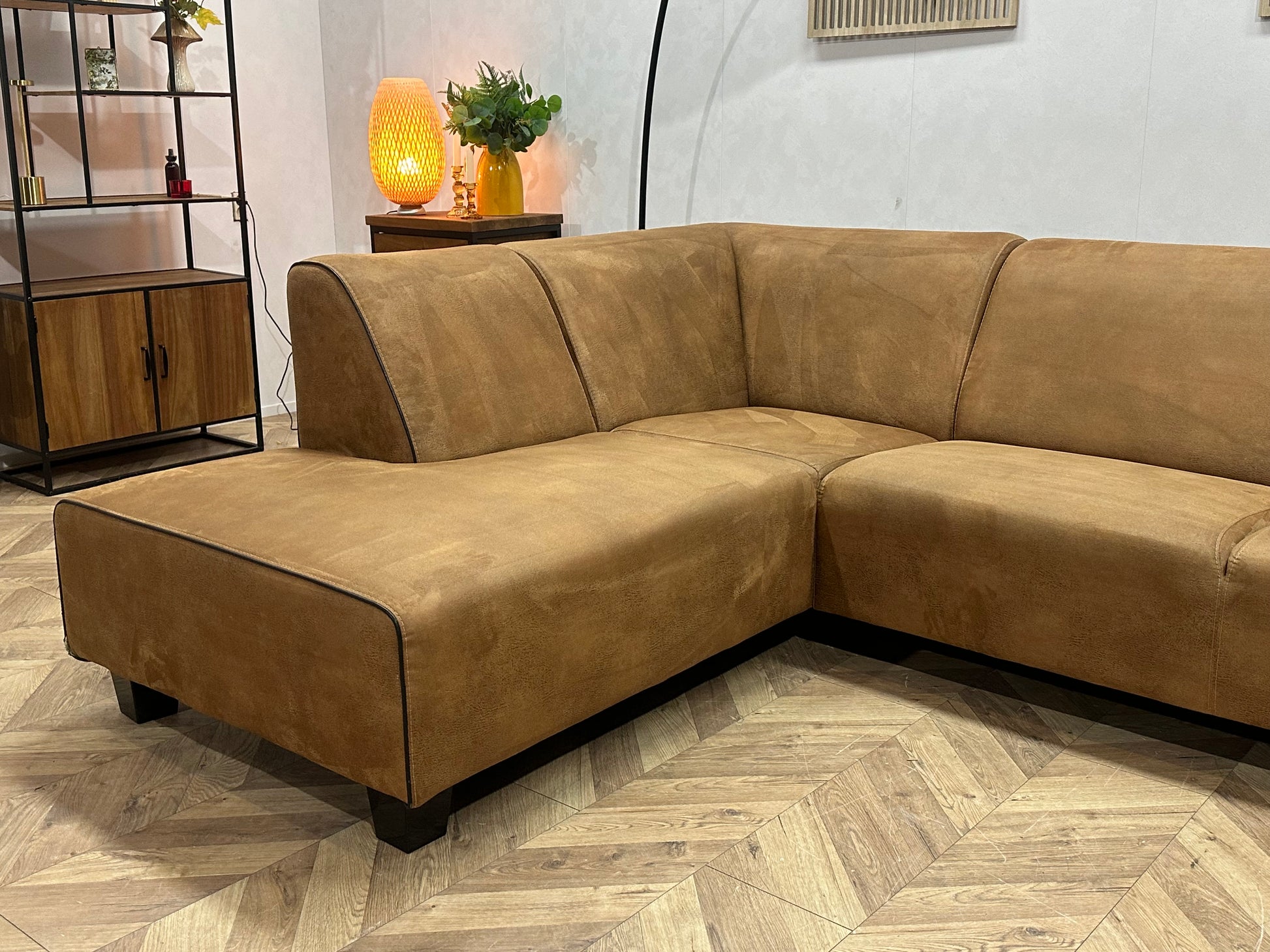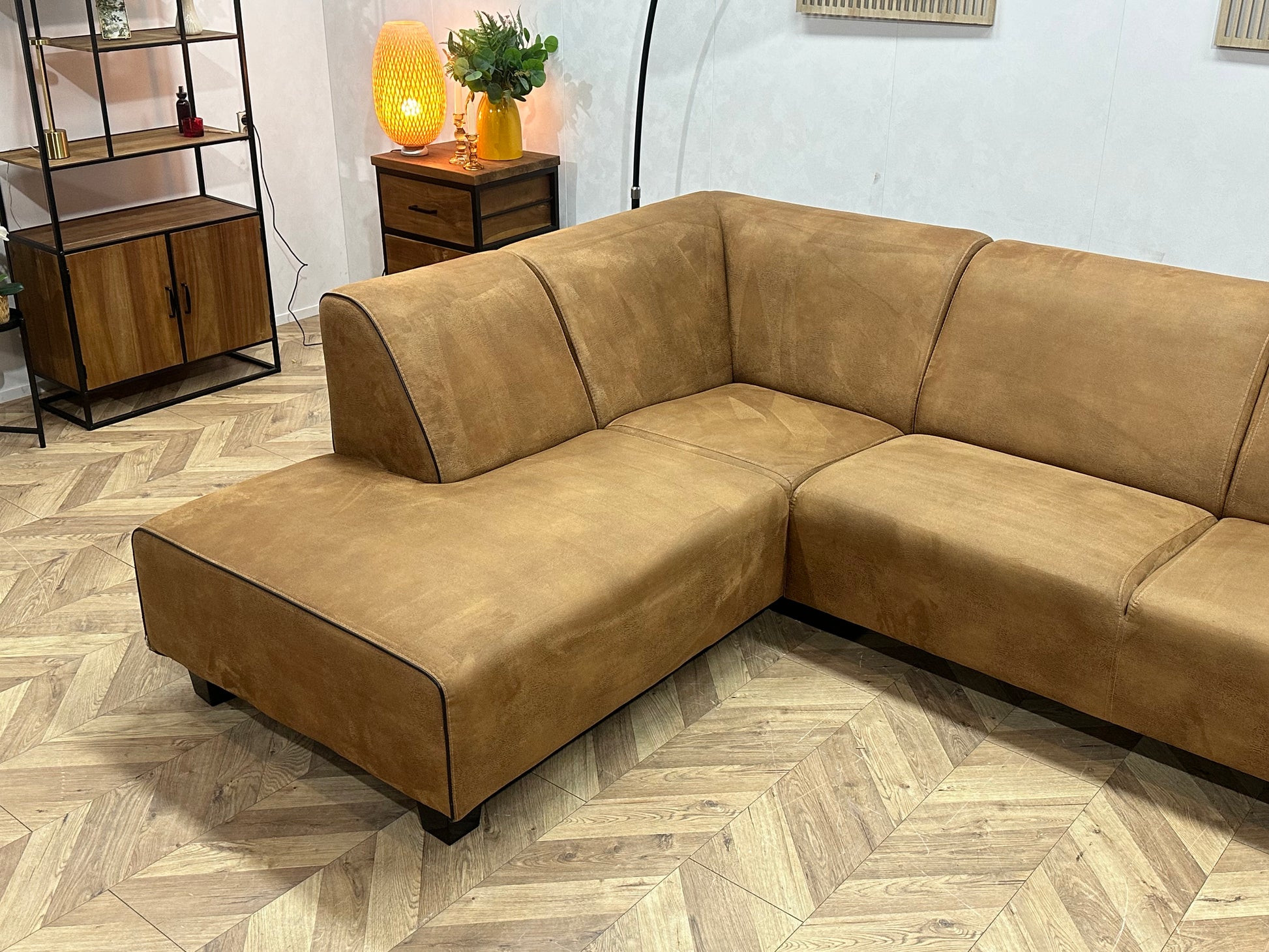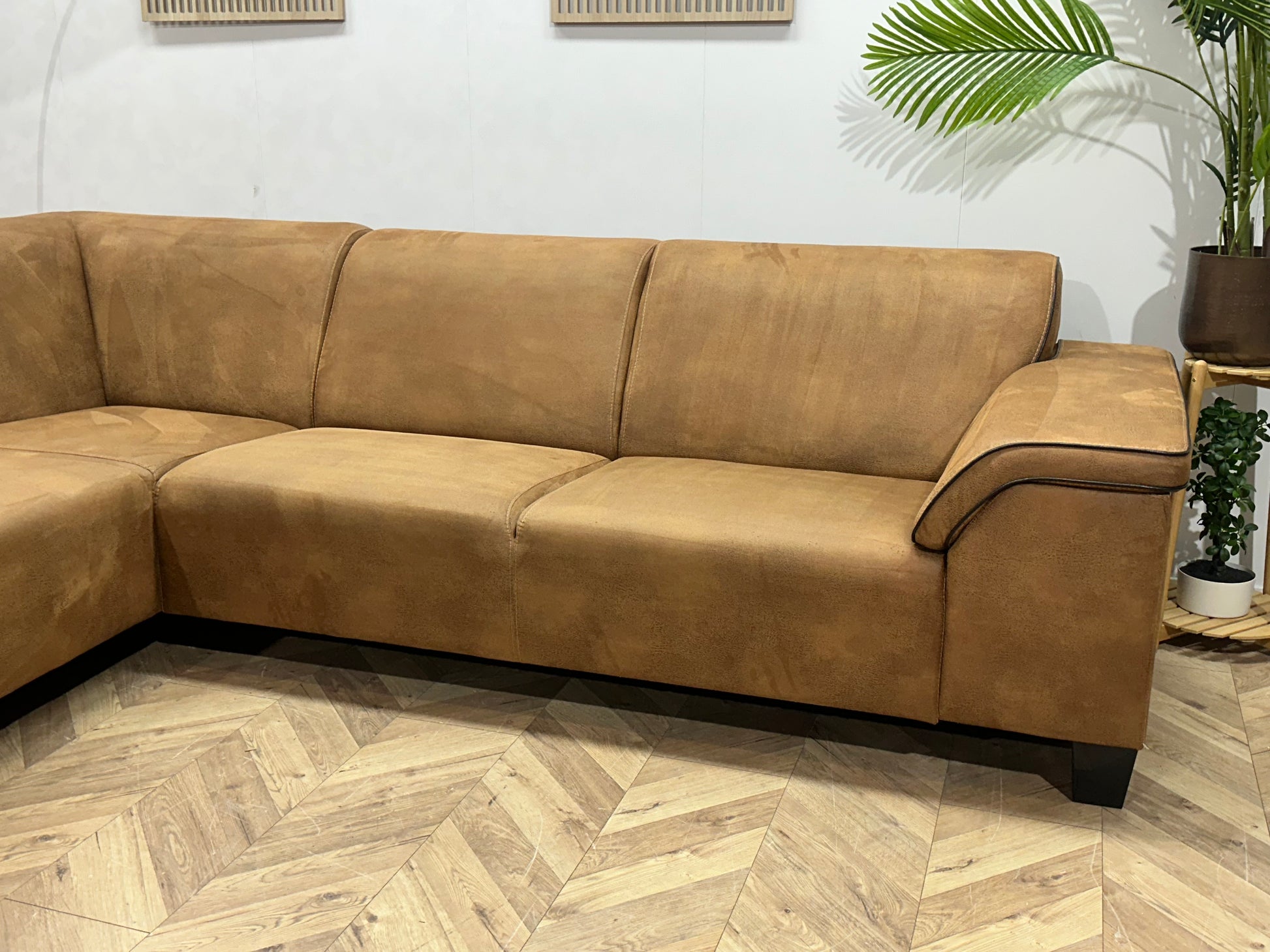 Cognac Bruine Suède Stoffen Hoekbank ~ Vaste Kussens