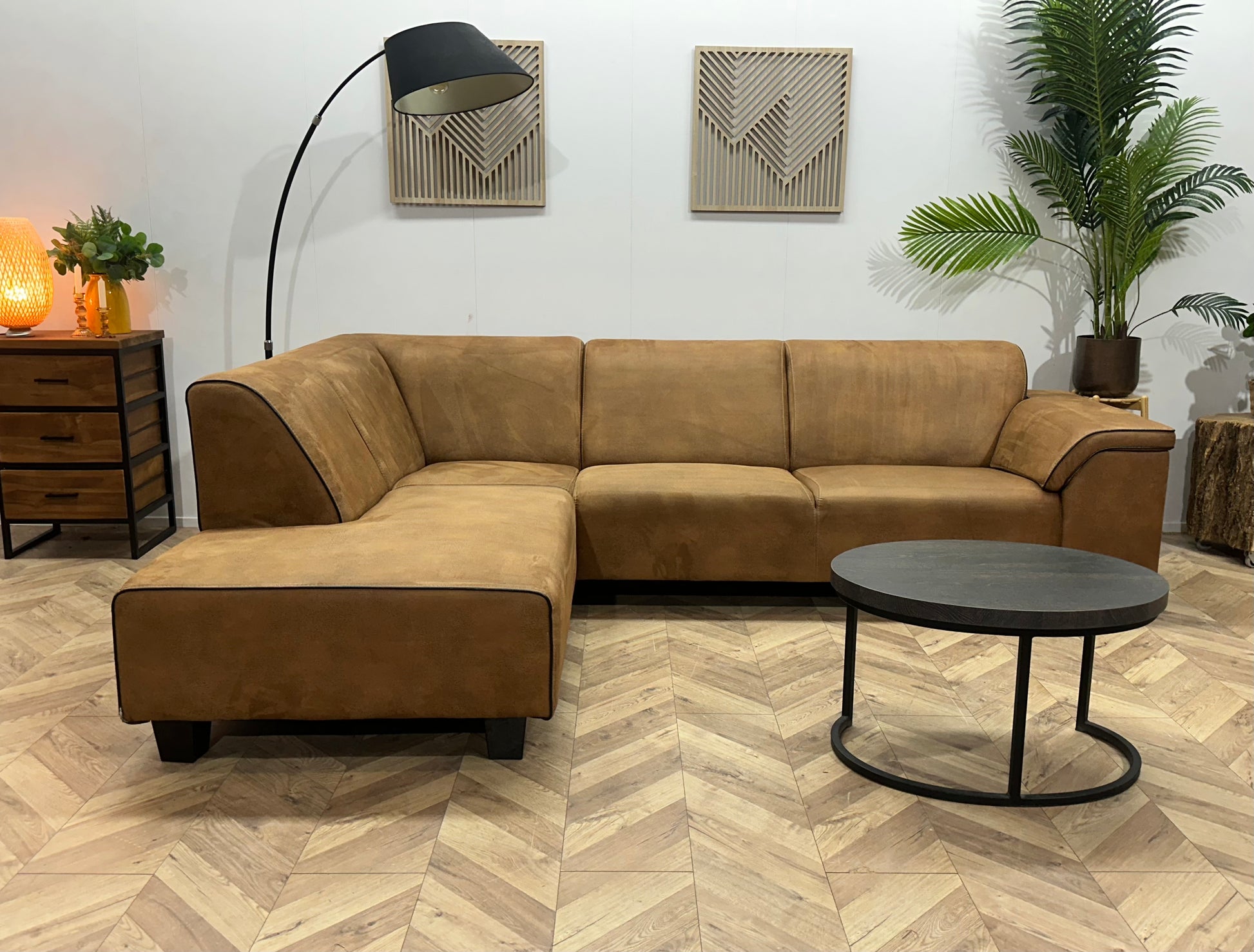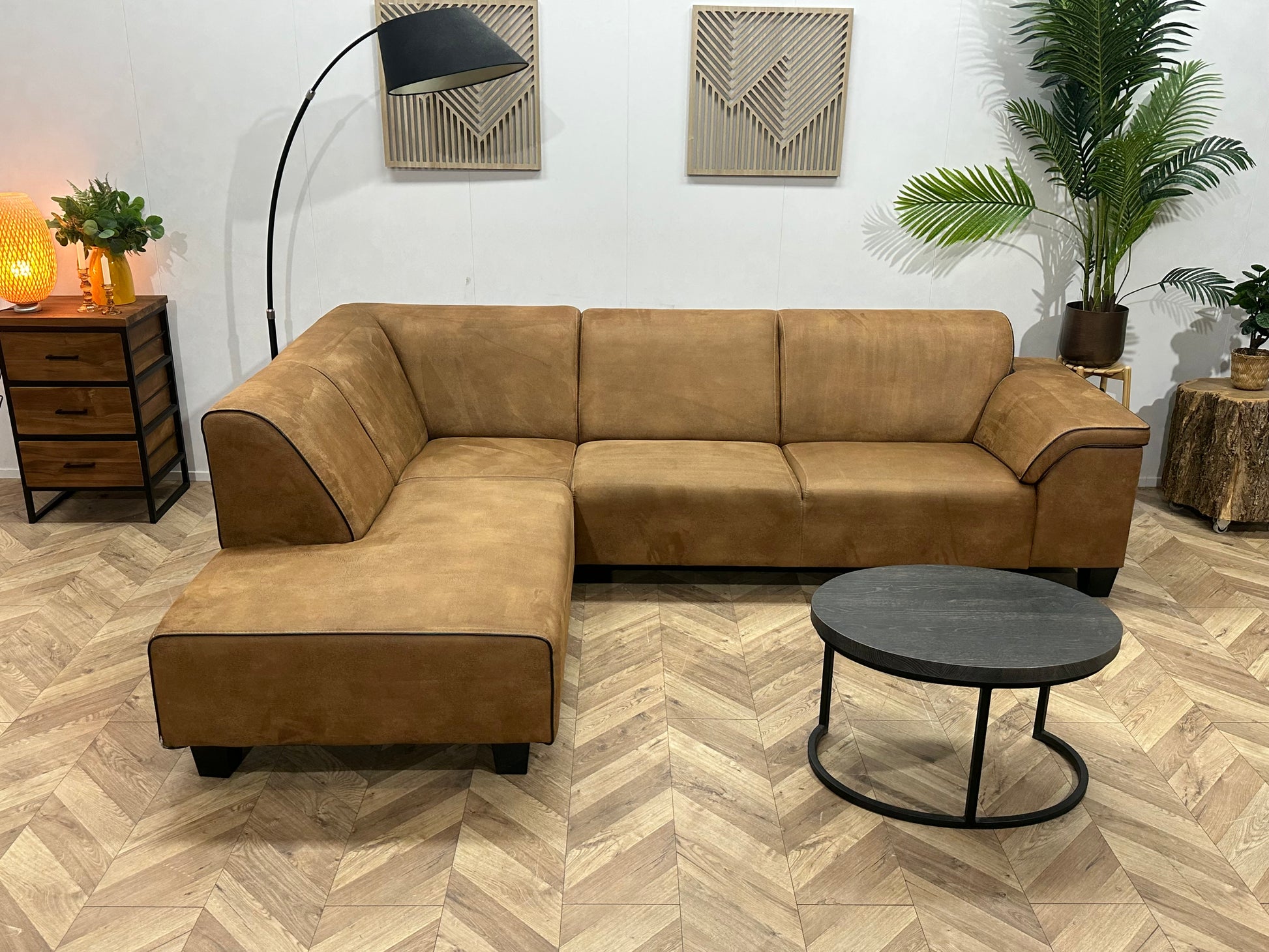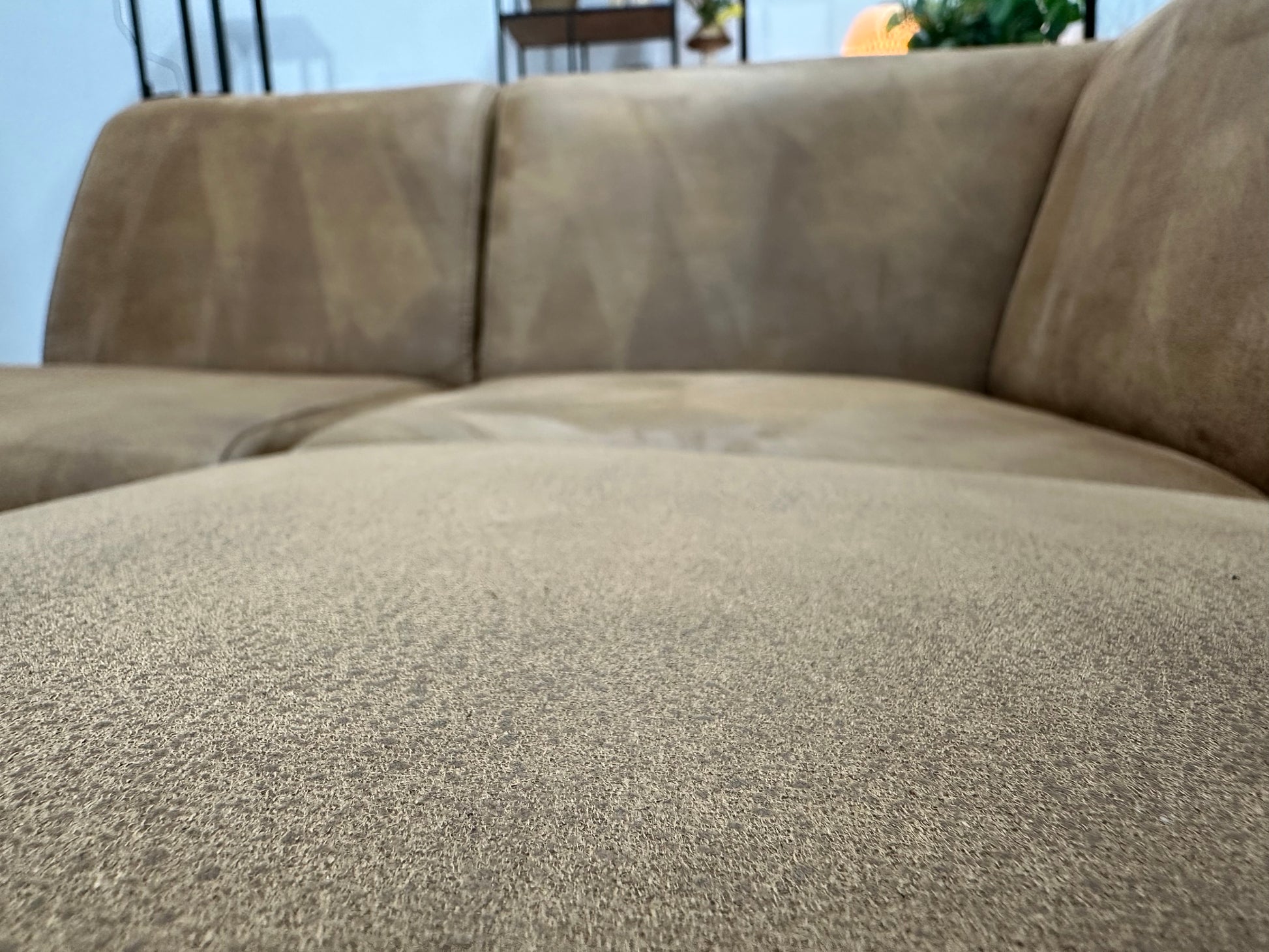 Cognac Bruine Suède Stoffen Hoekbank ~ Vaste Kussens