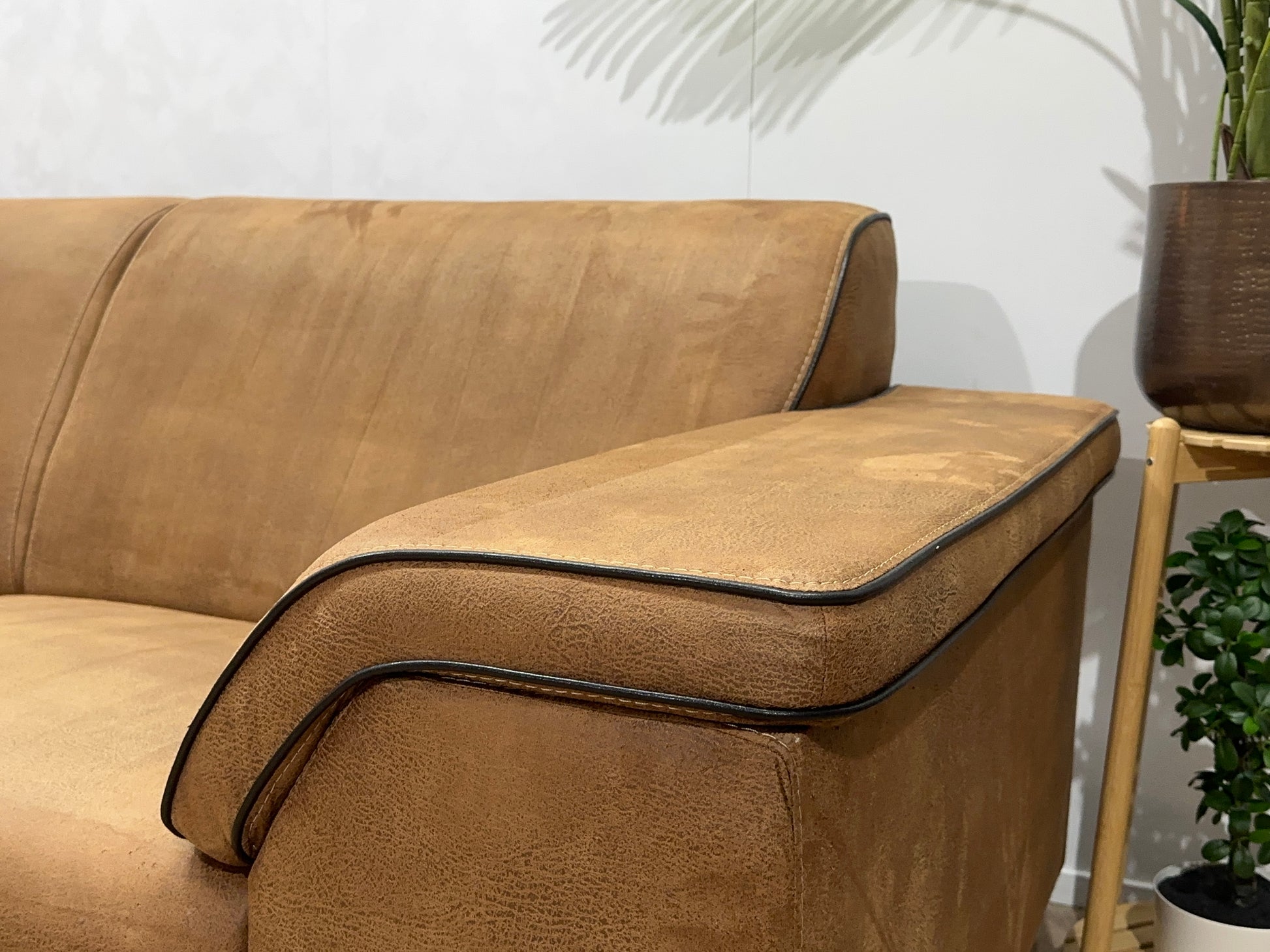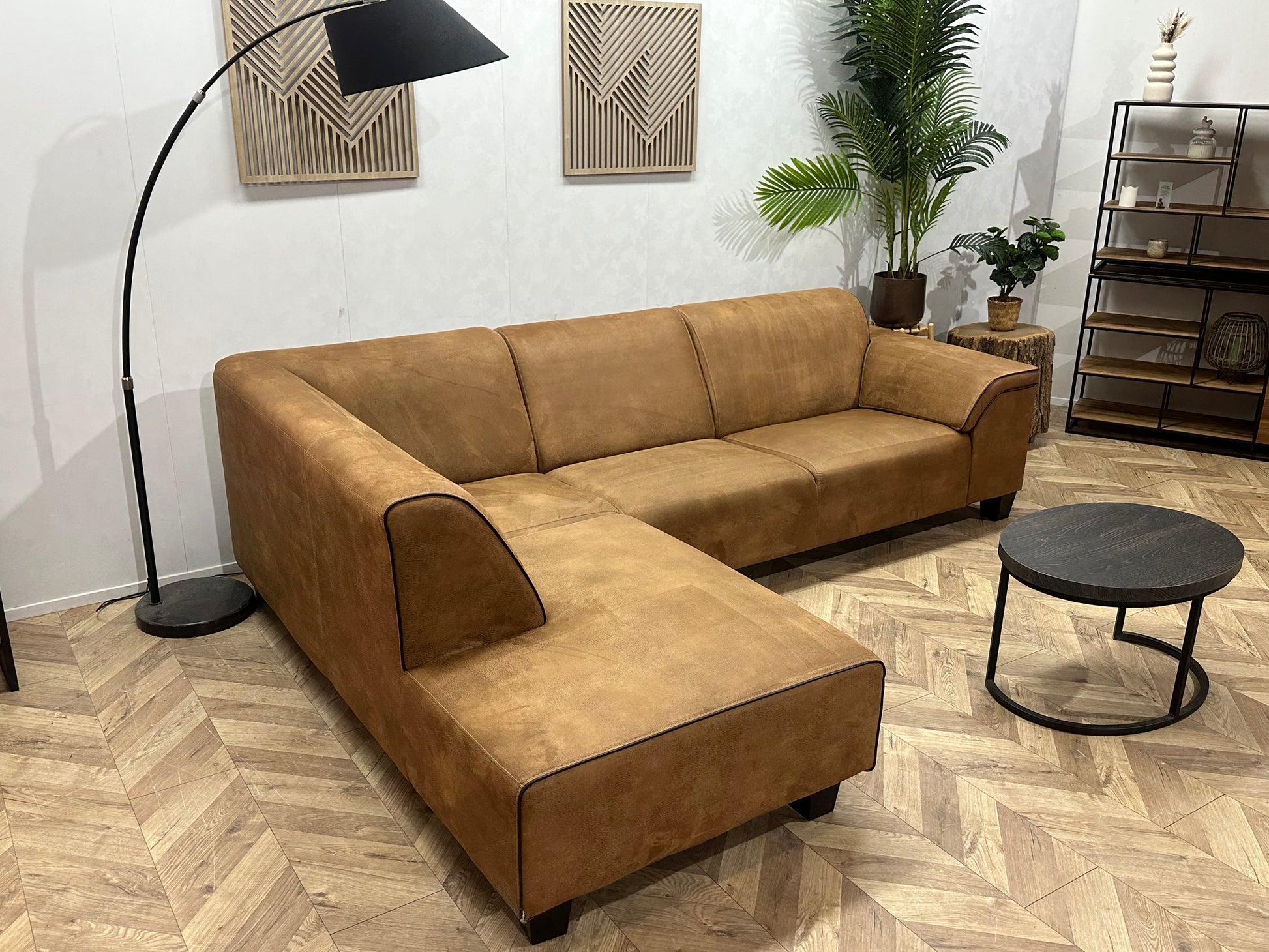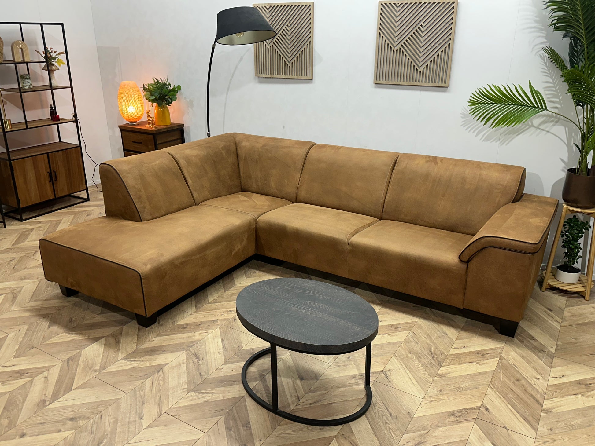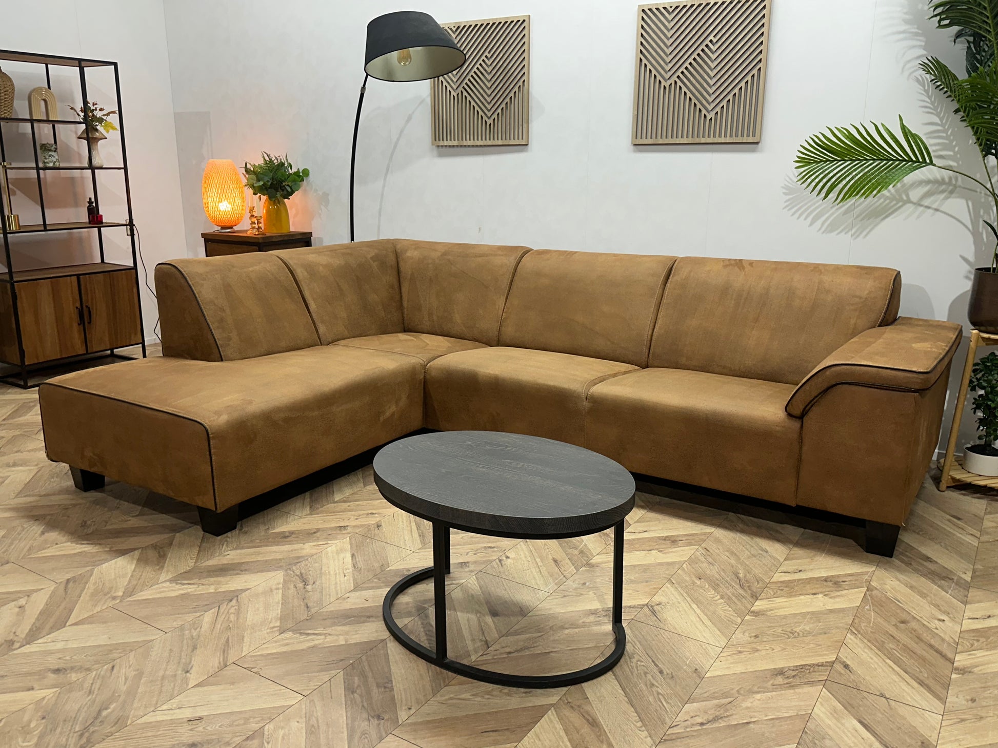 Cognac Bruine Suède Stoffen Hoekbank ~ Vaste Kussens