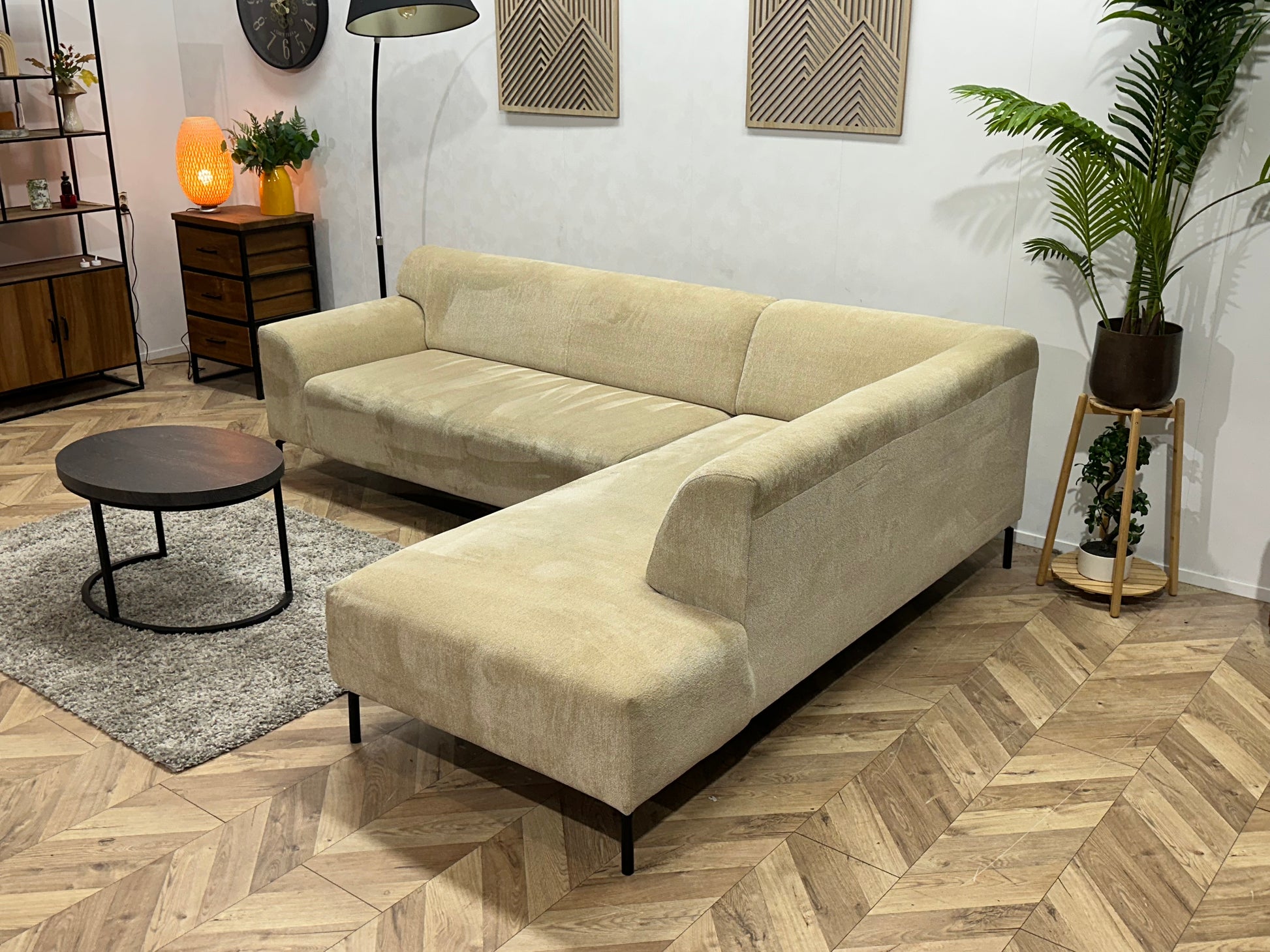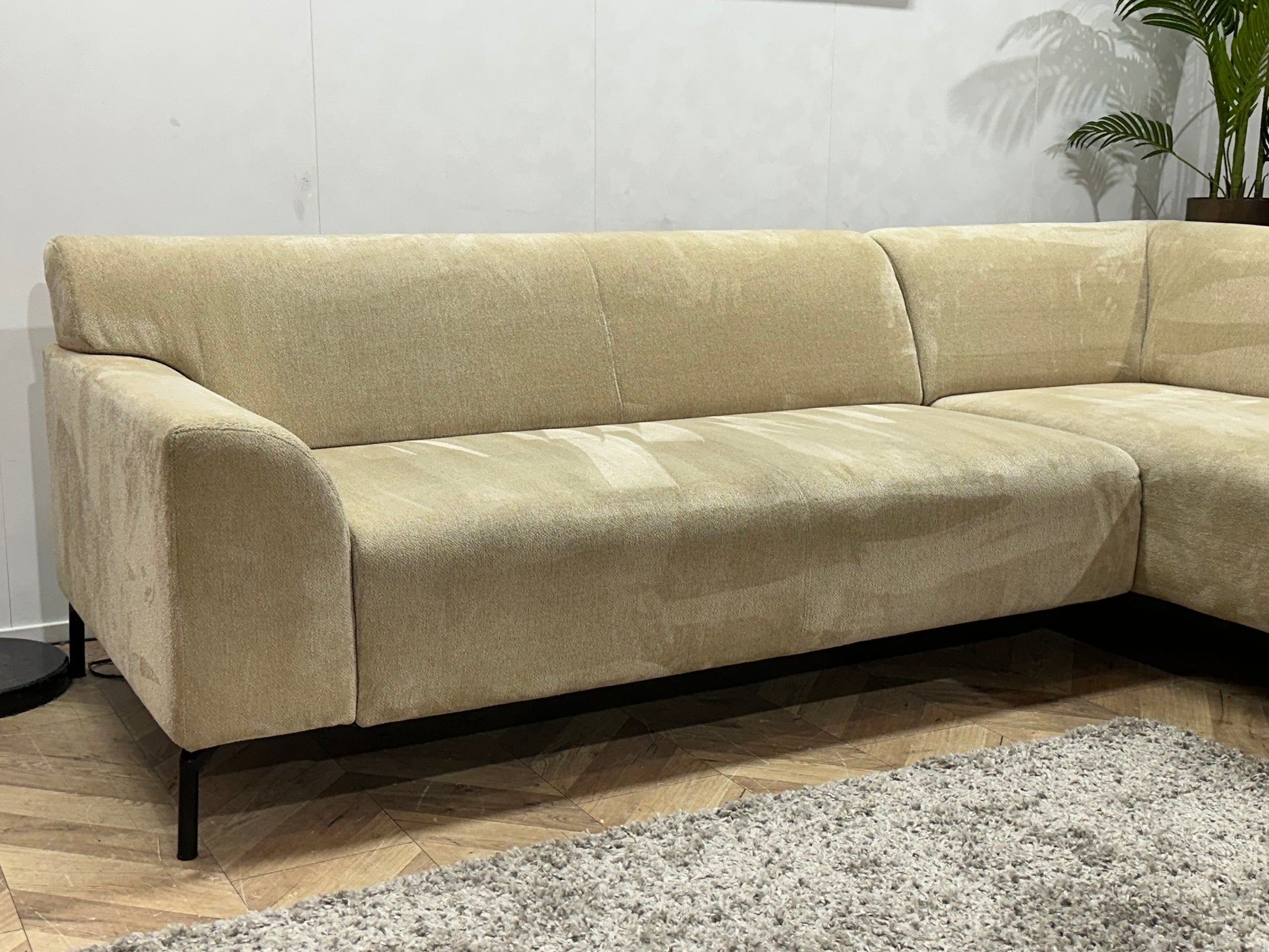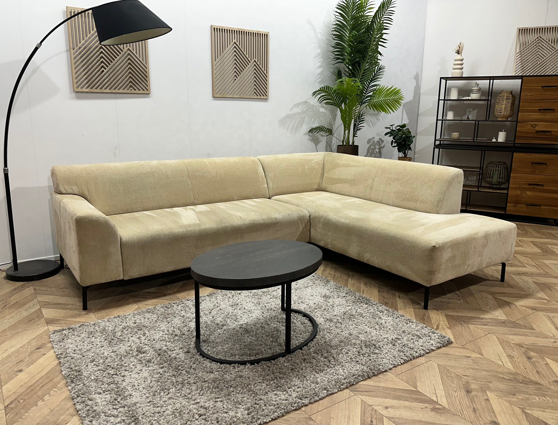Crème Bouclé Stoffen Hoekbank ~ Vaste Kussens