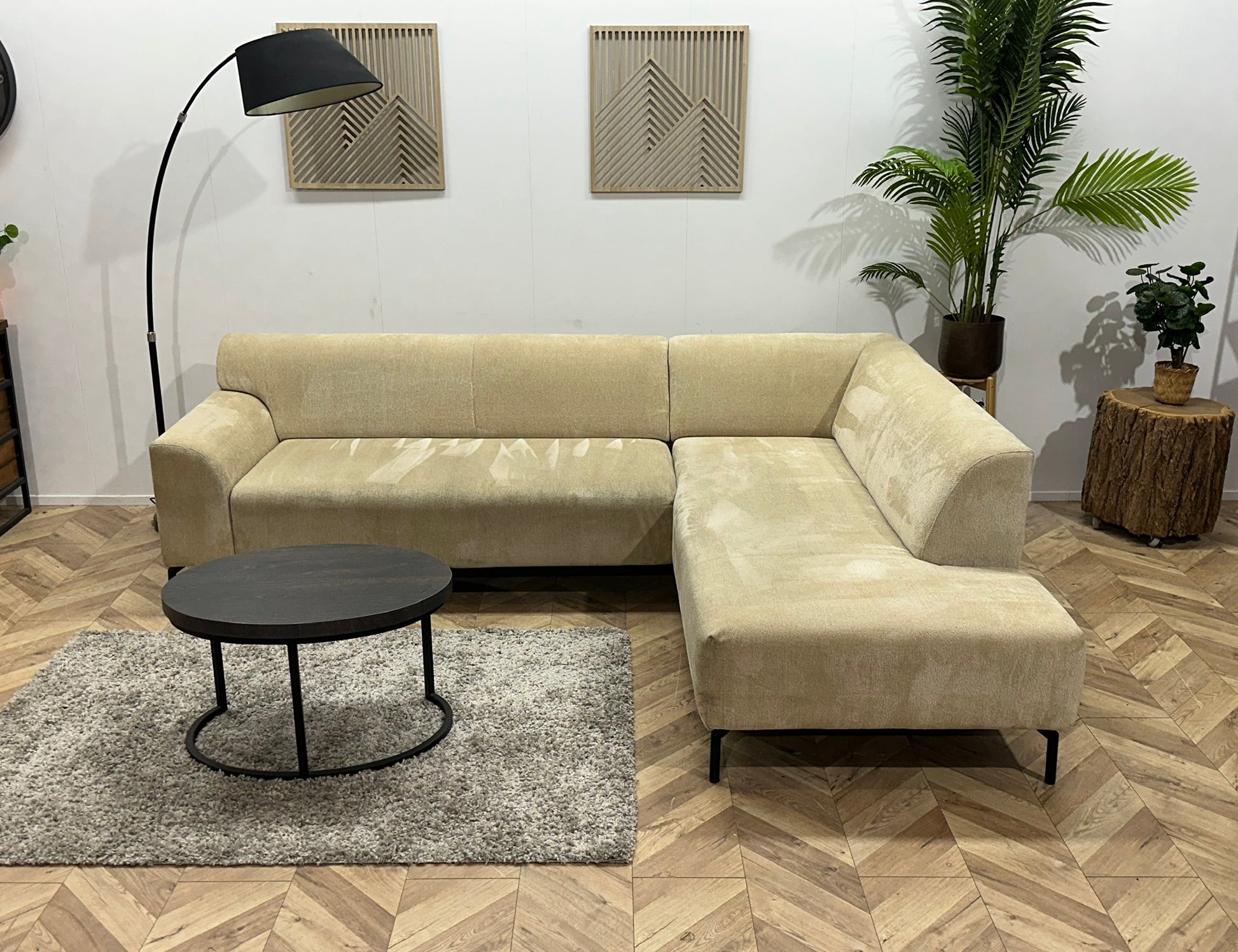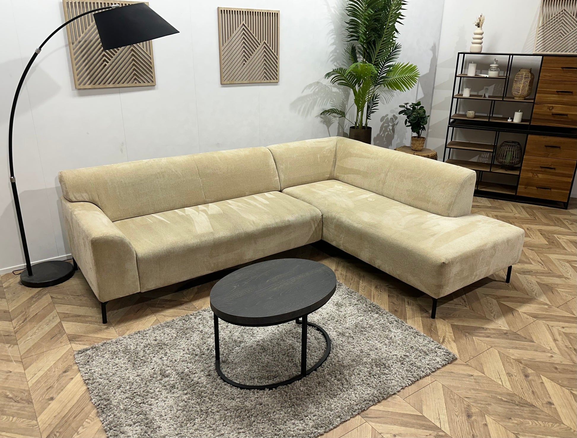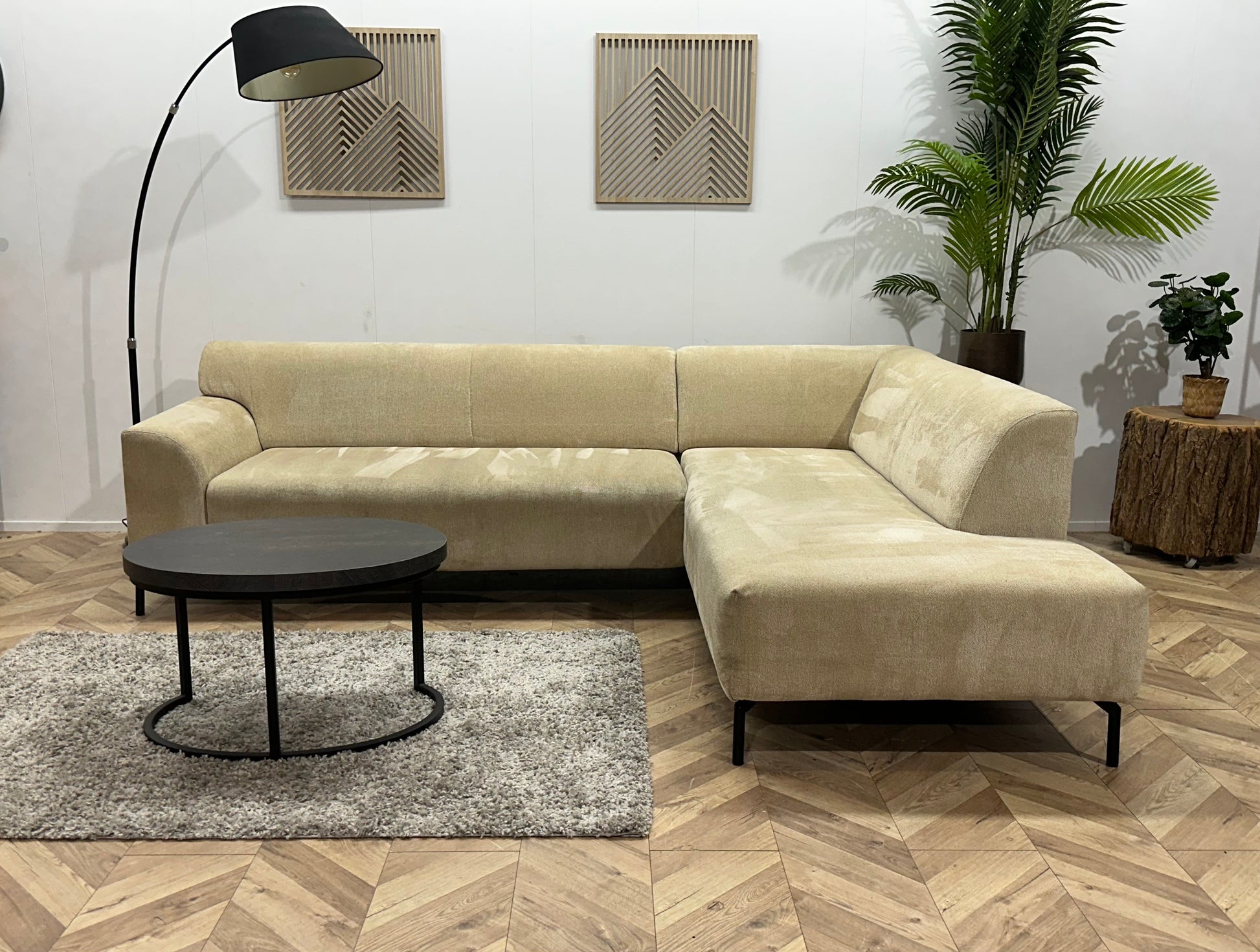 Crème Bouclé Stoffen Hoekbank ~ Vaste Kussens
