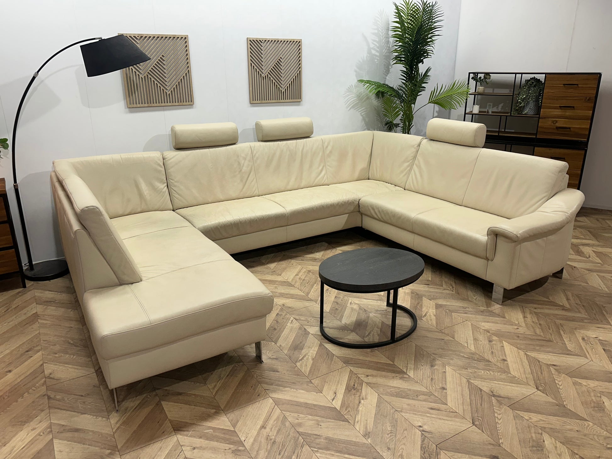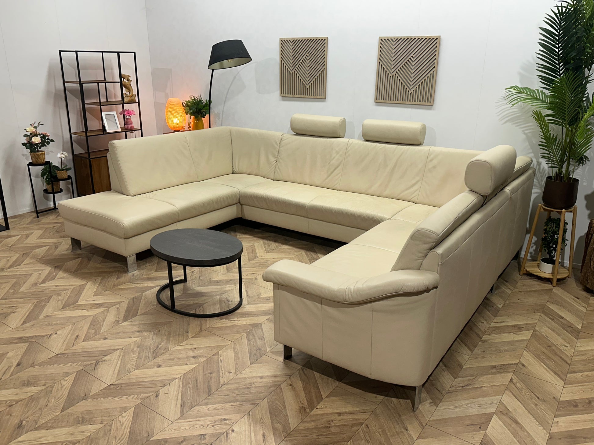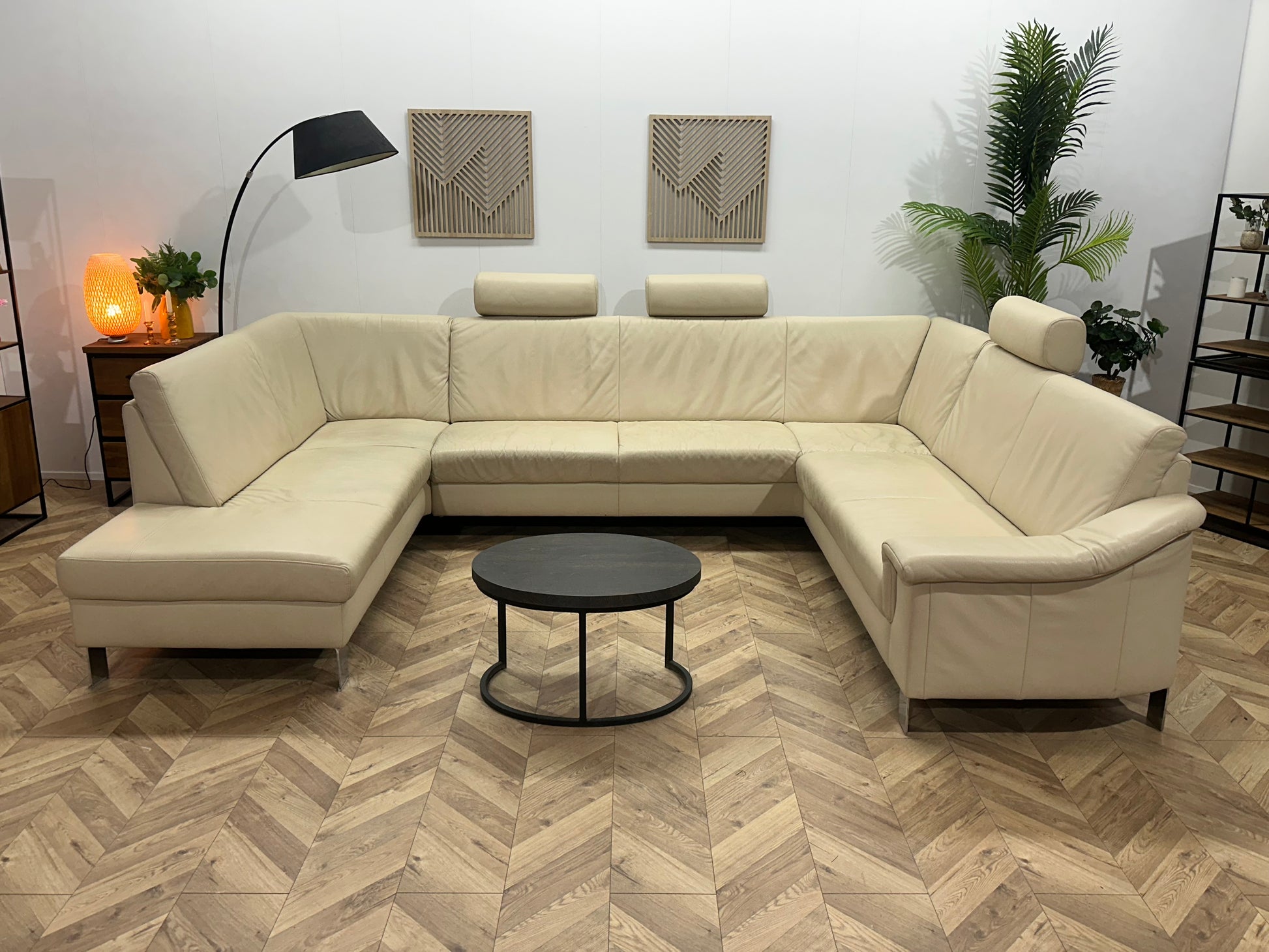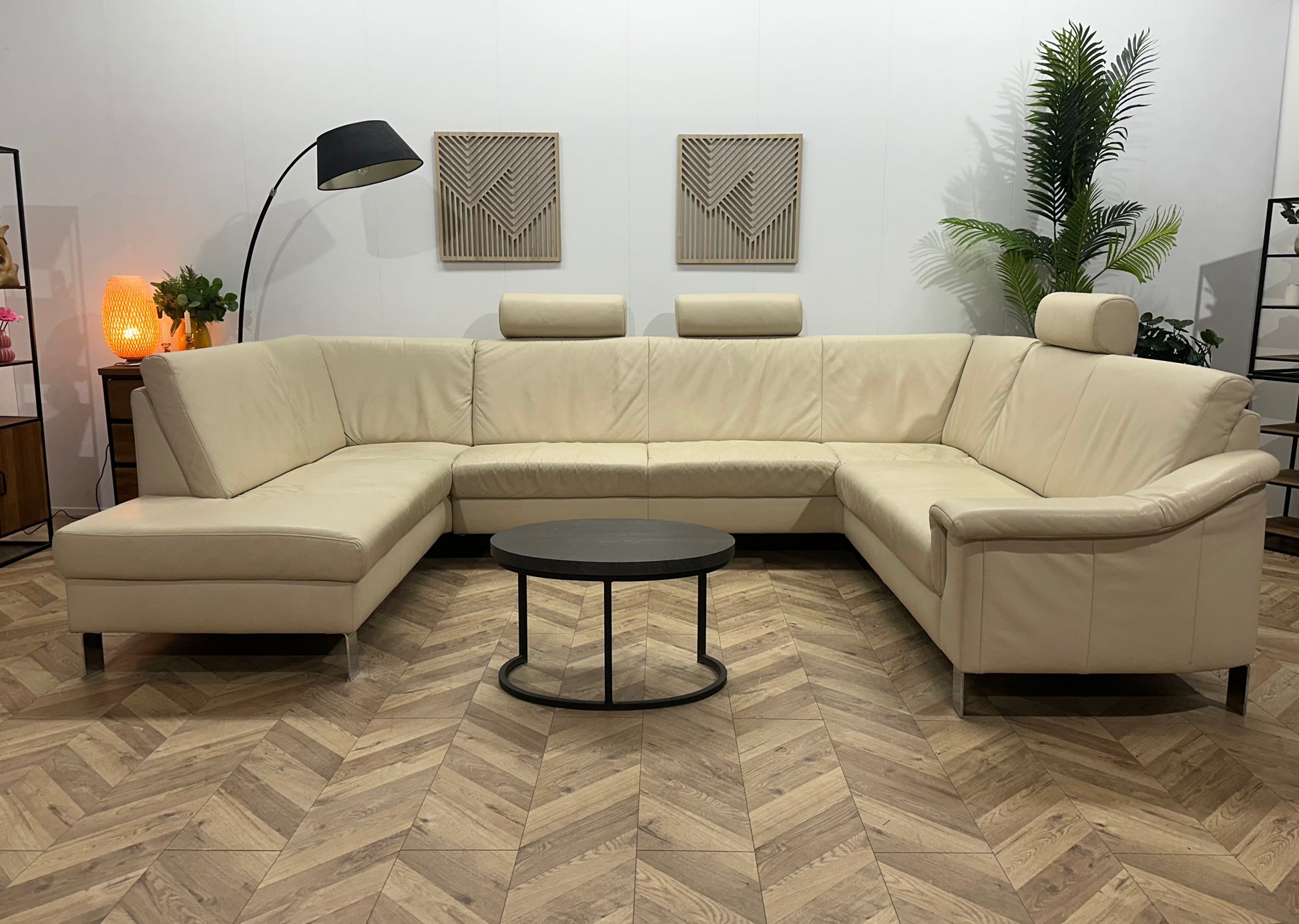 Crème Echt Lederen Ruime U Bank ~ Vaste Kussens