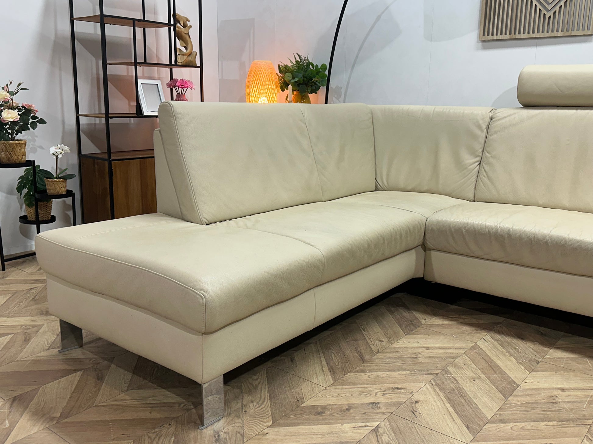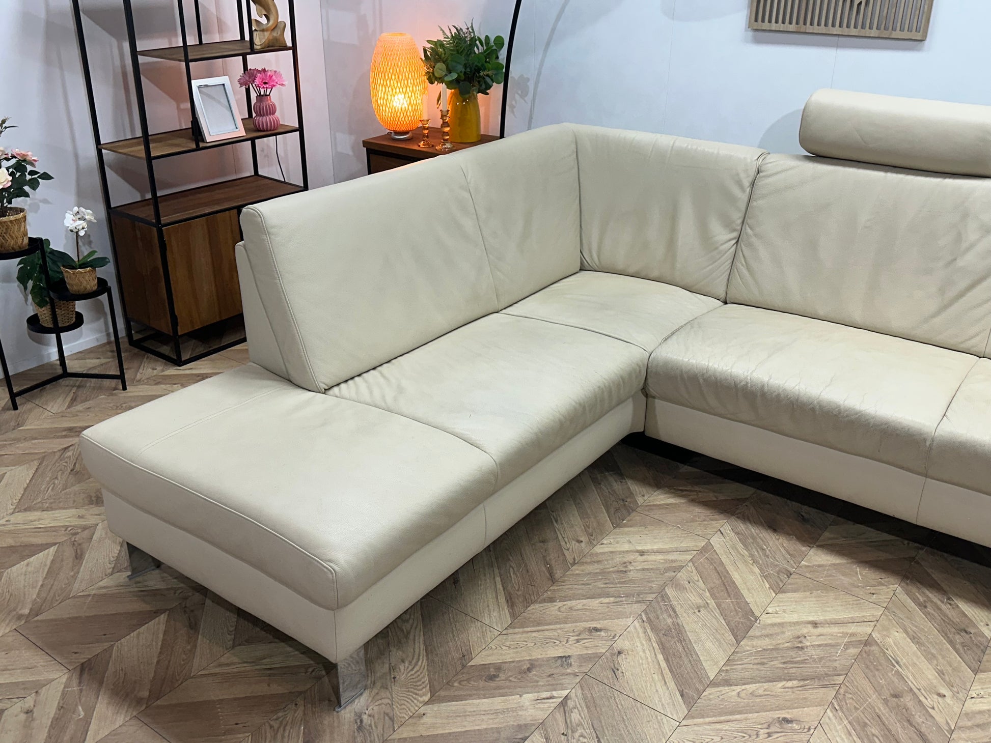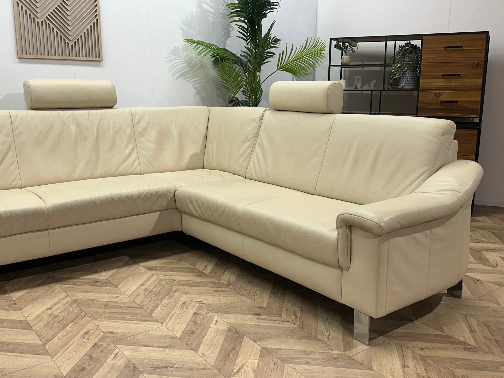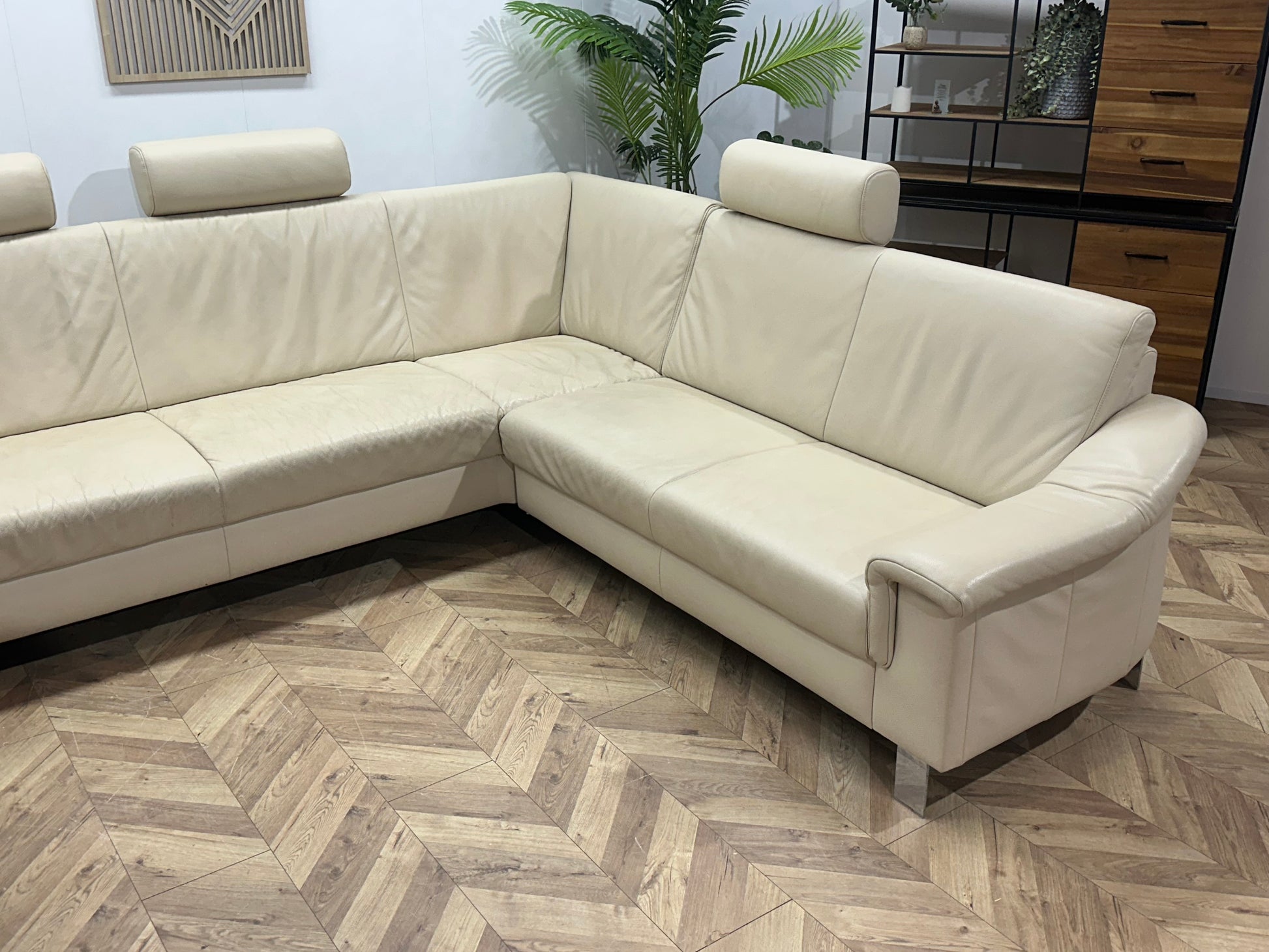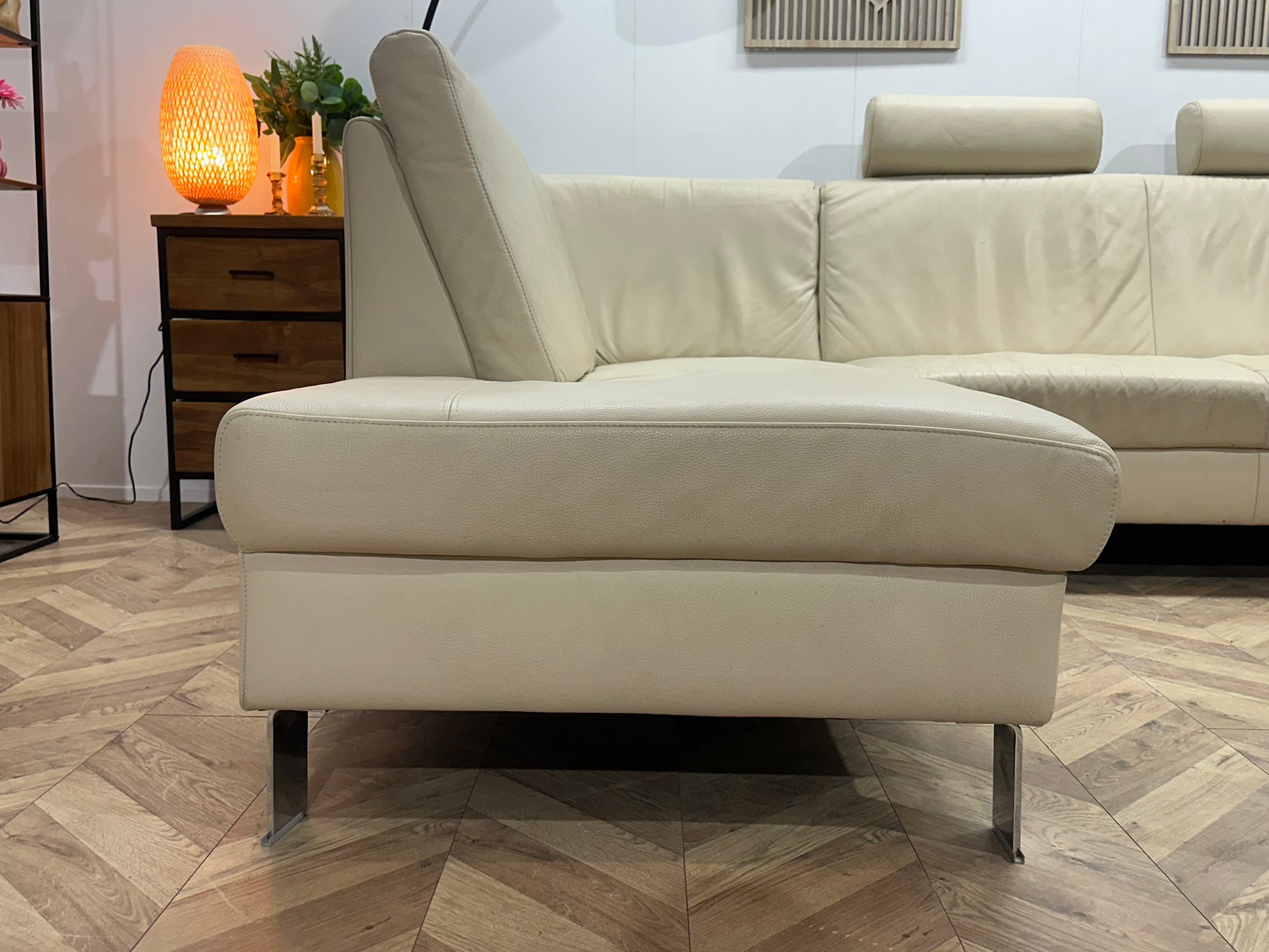 Crème Echt Lederen Ruime U Bank ~ Vaste Kussens