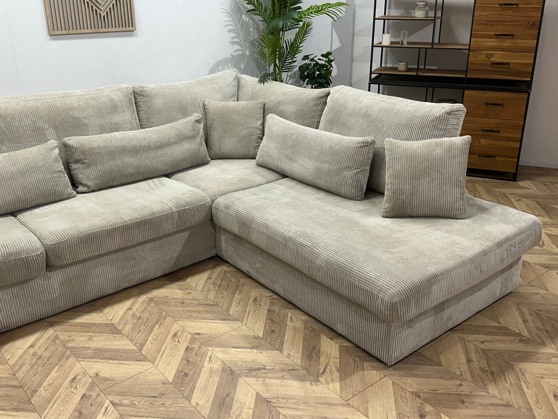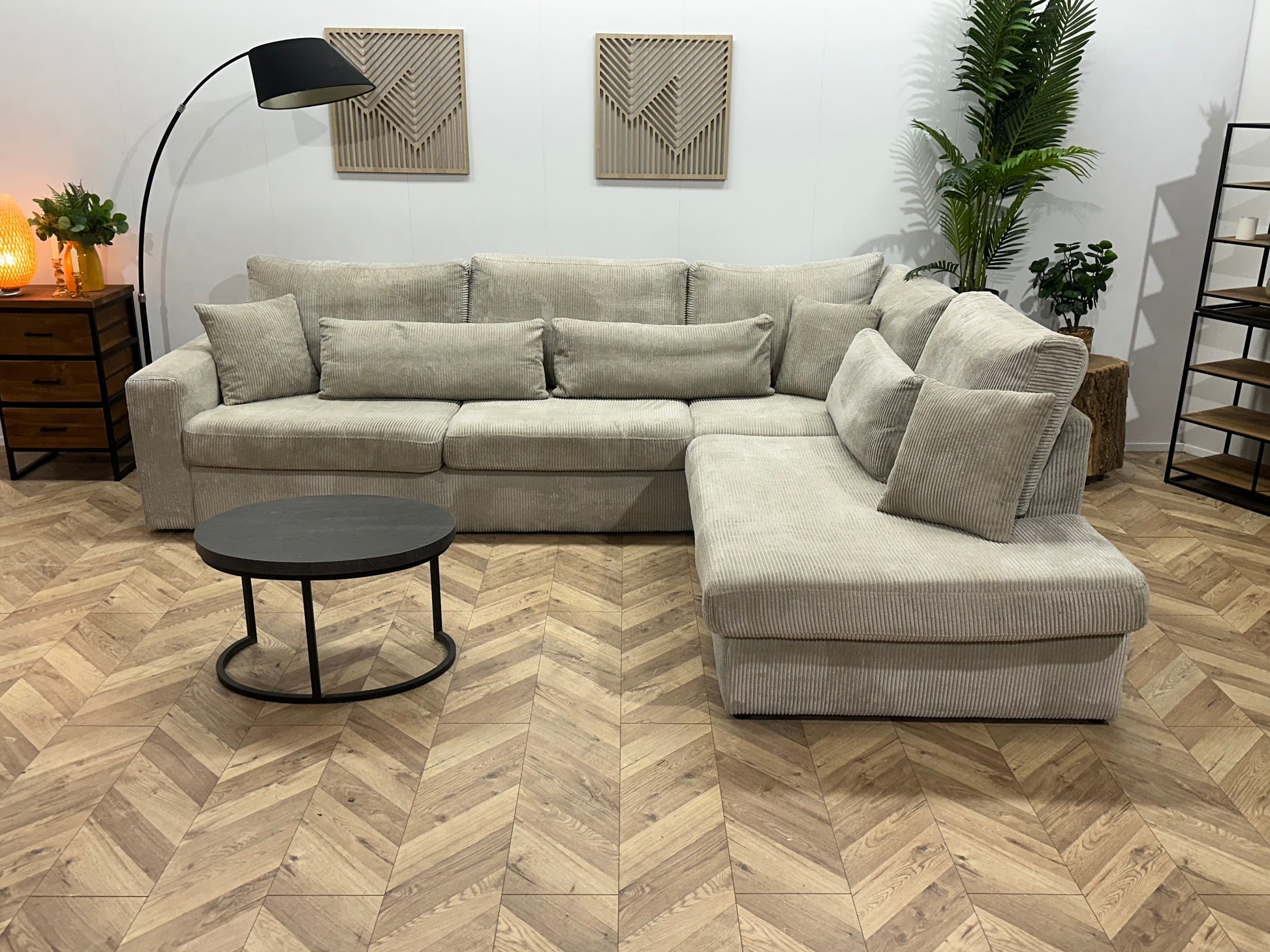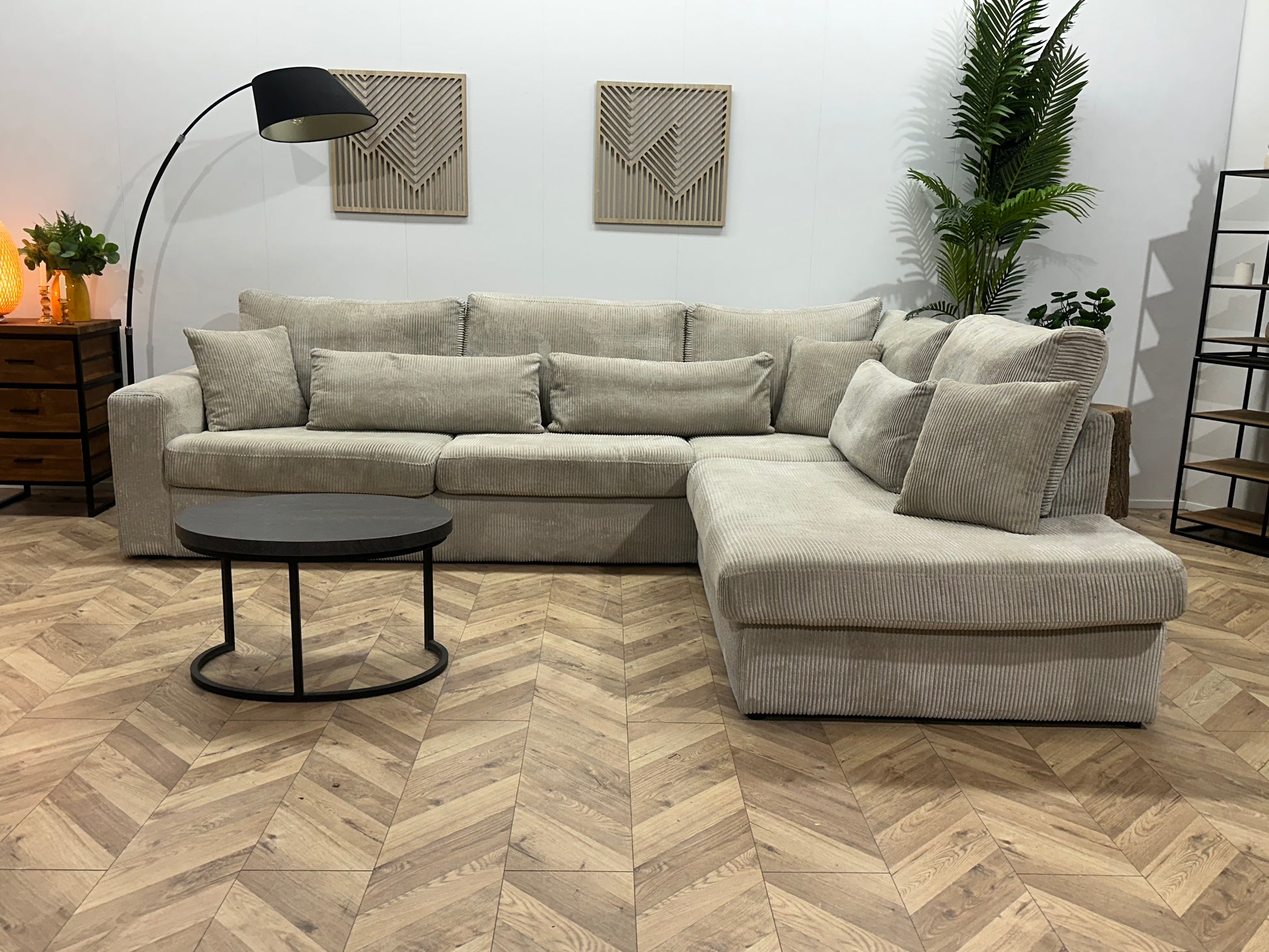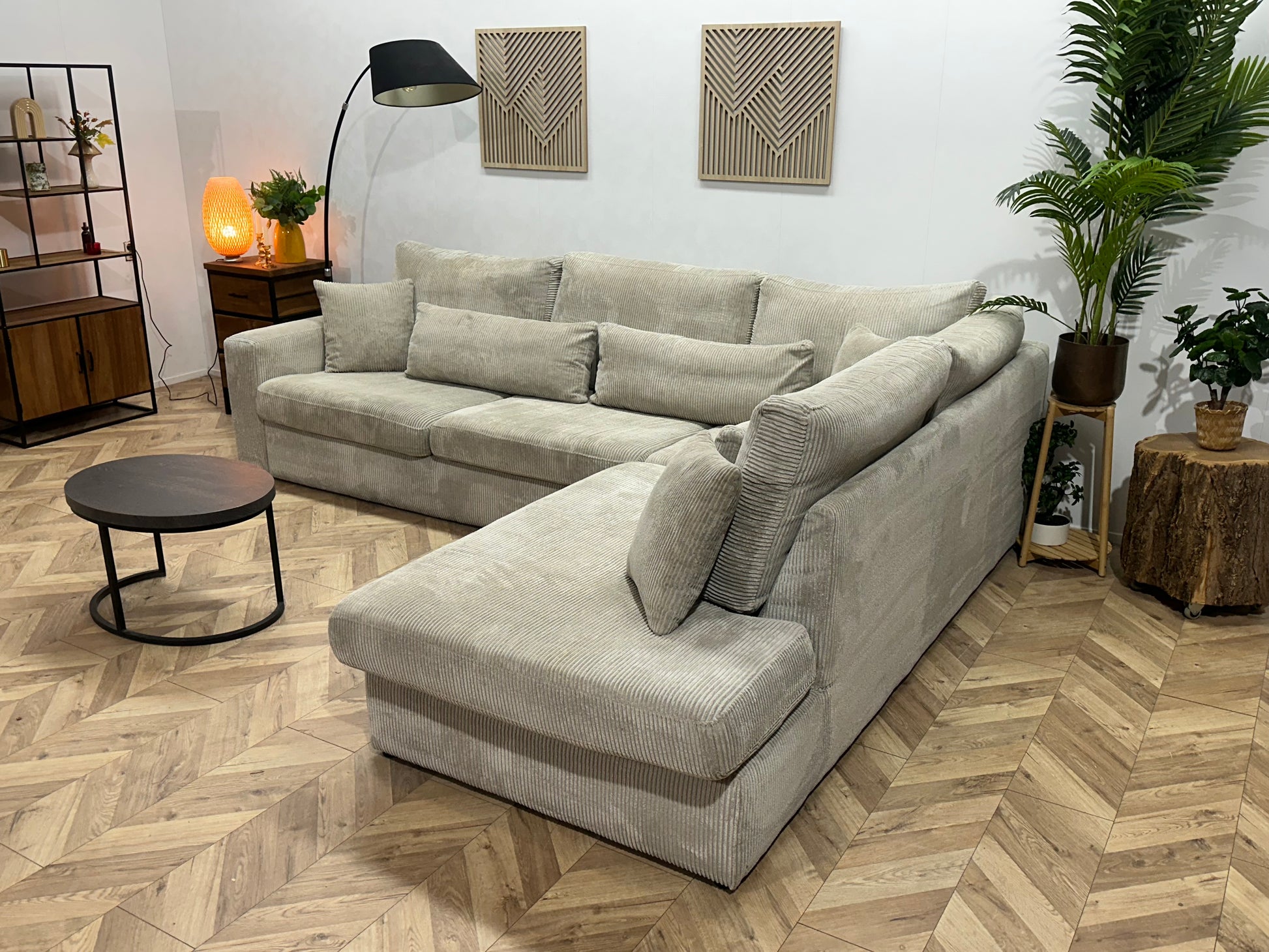 Crème Ribstof Hoekbank ~ Losse Kussens Met Afneembare Hoezen