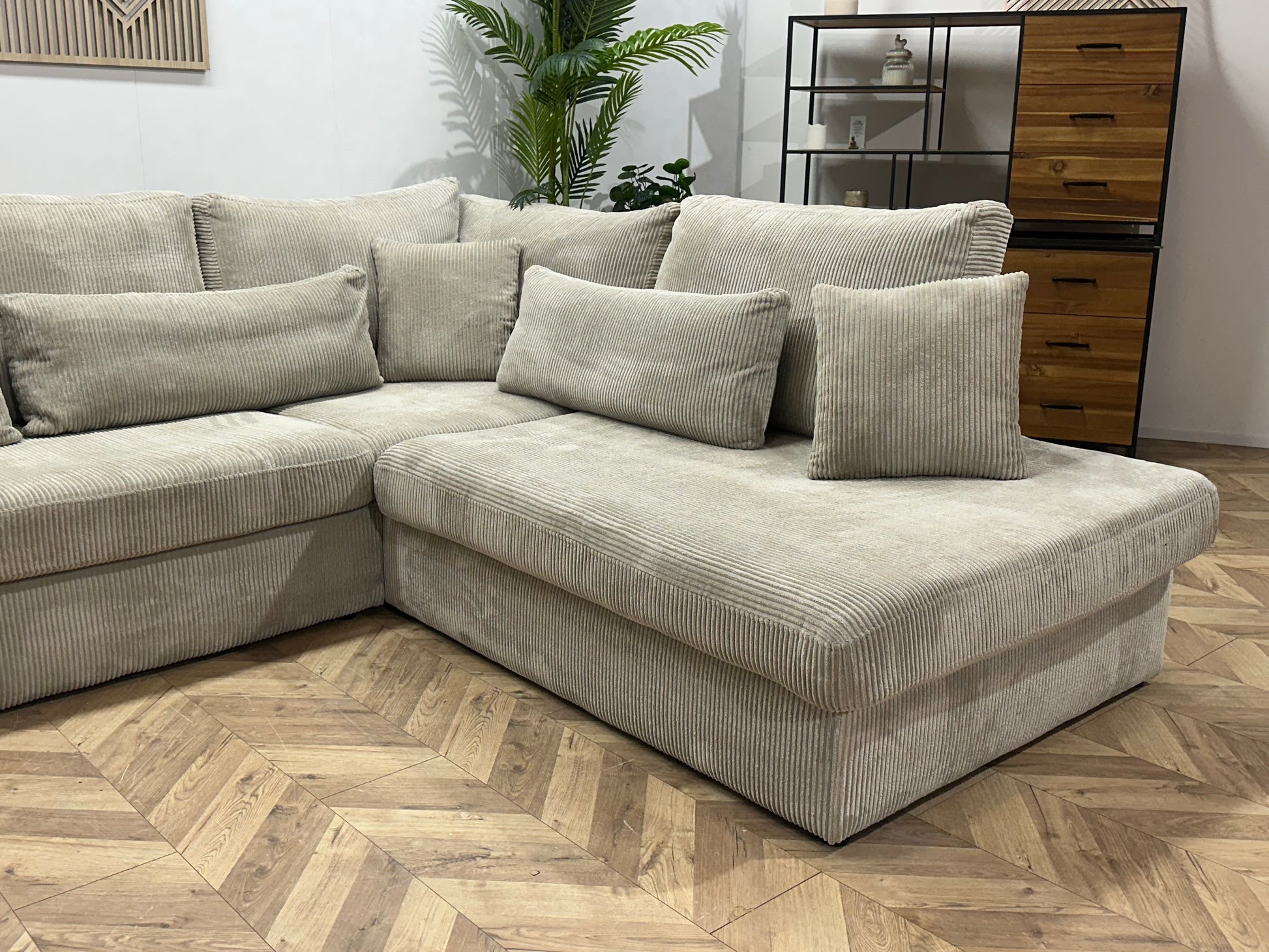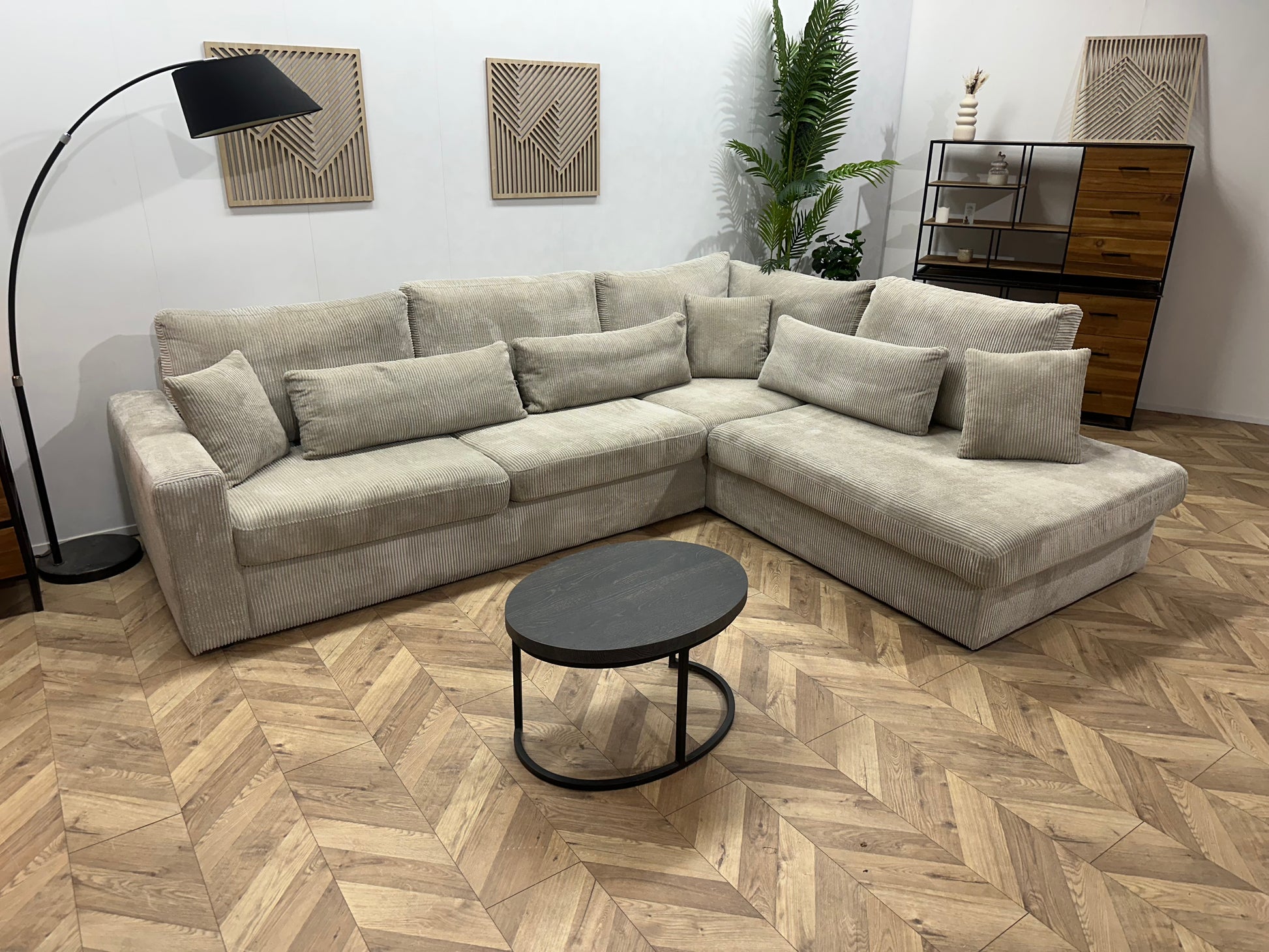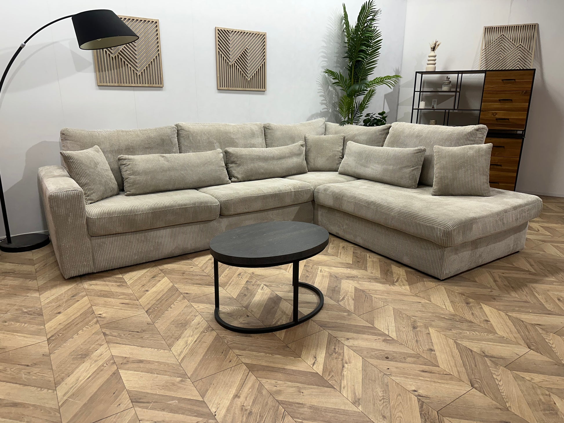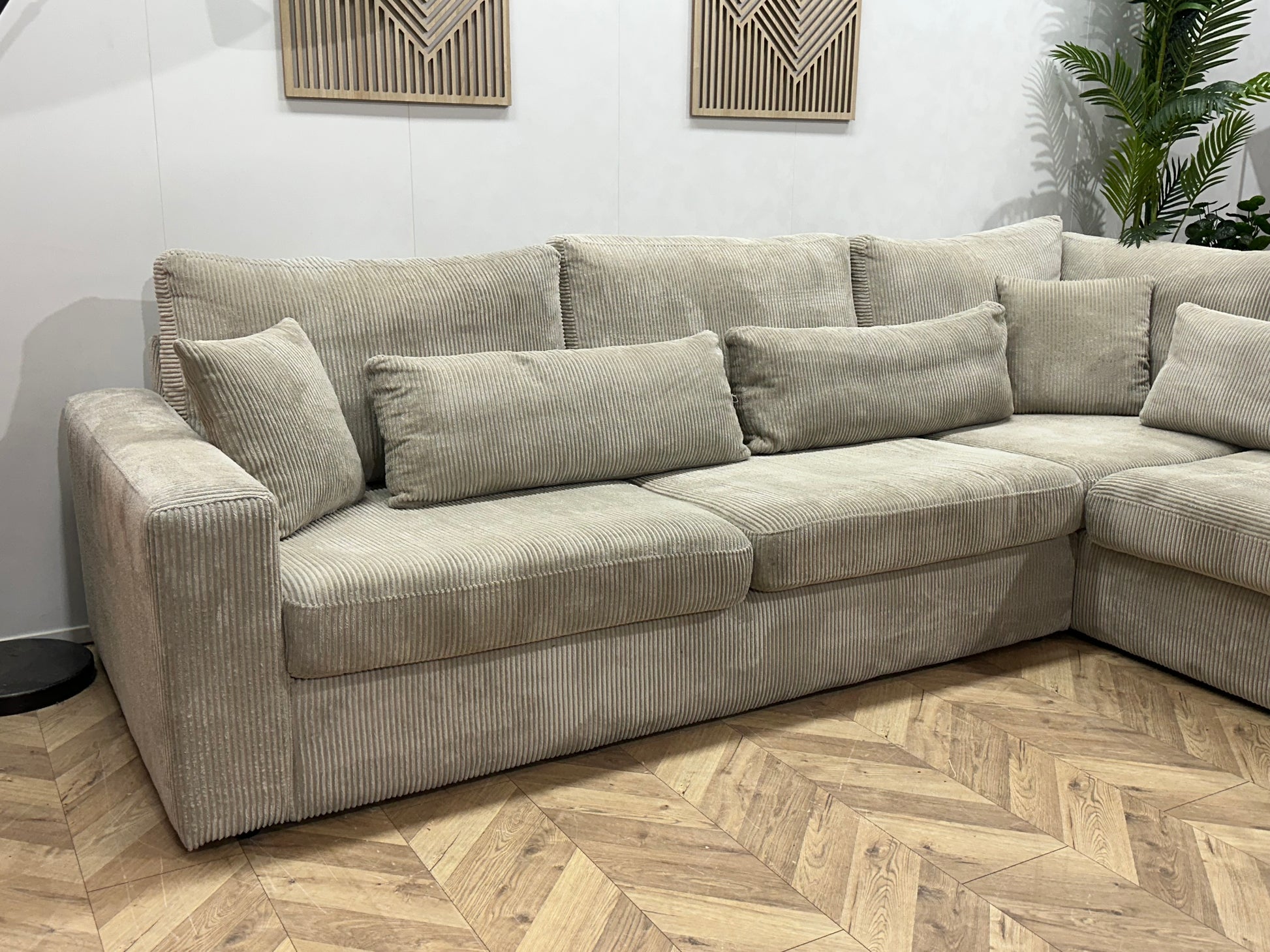 Crème Ribstof Hoekbank ~ Losse Kussens Met Afneembare Hoezen