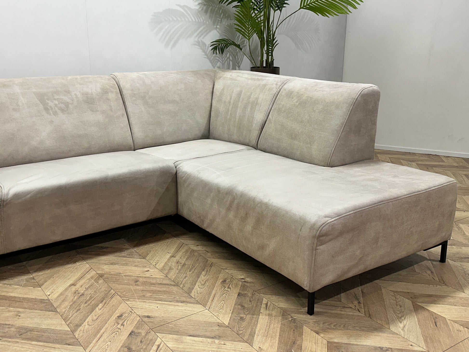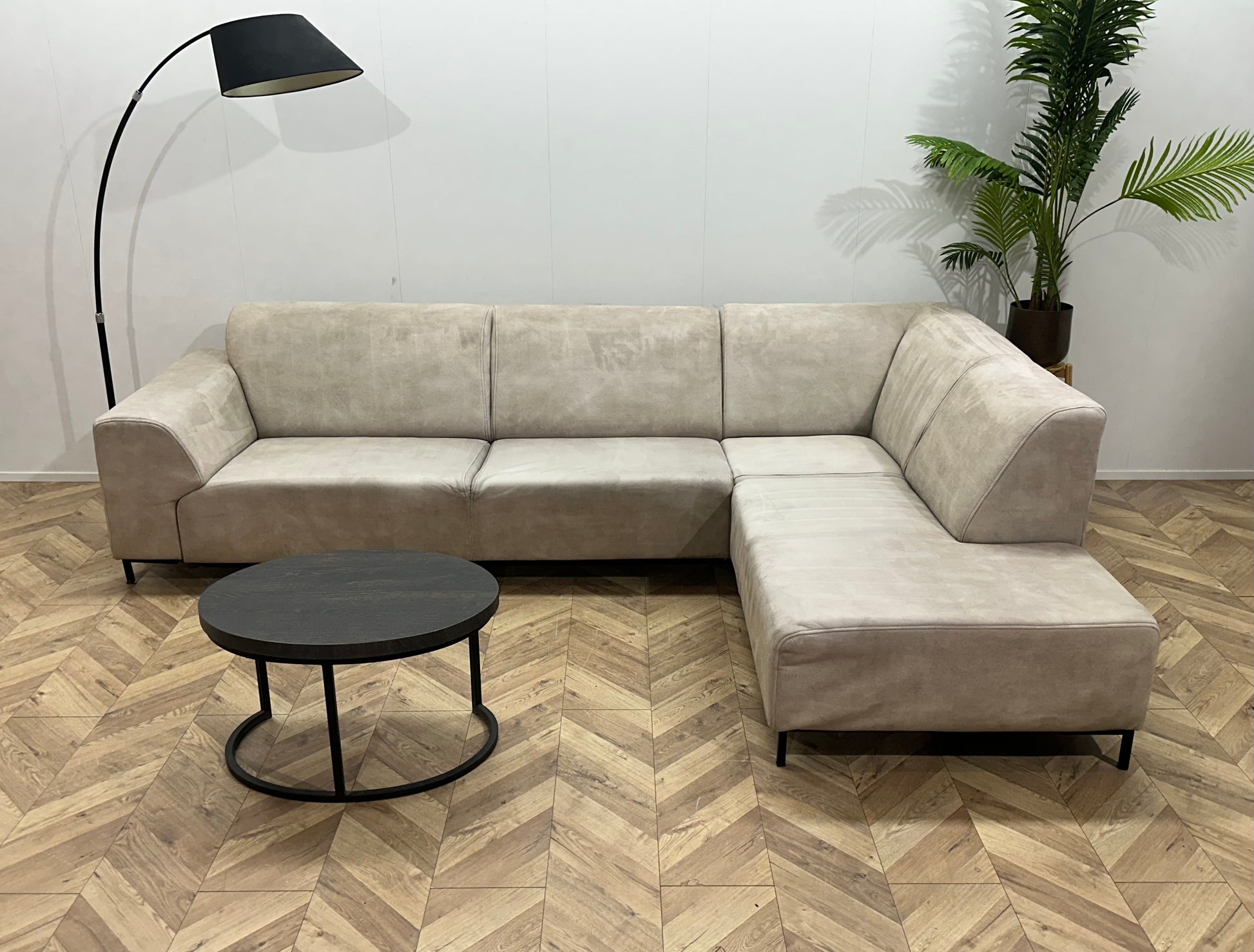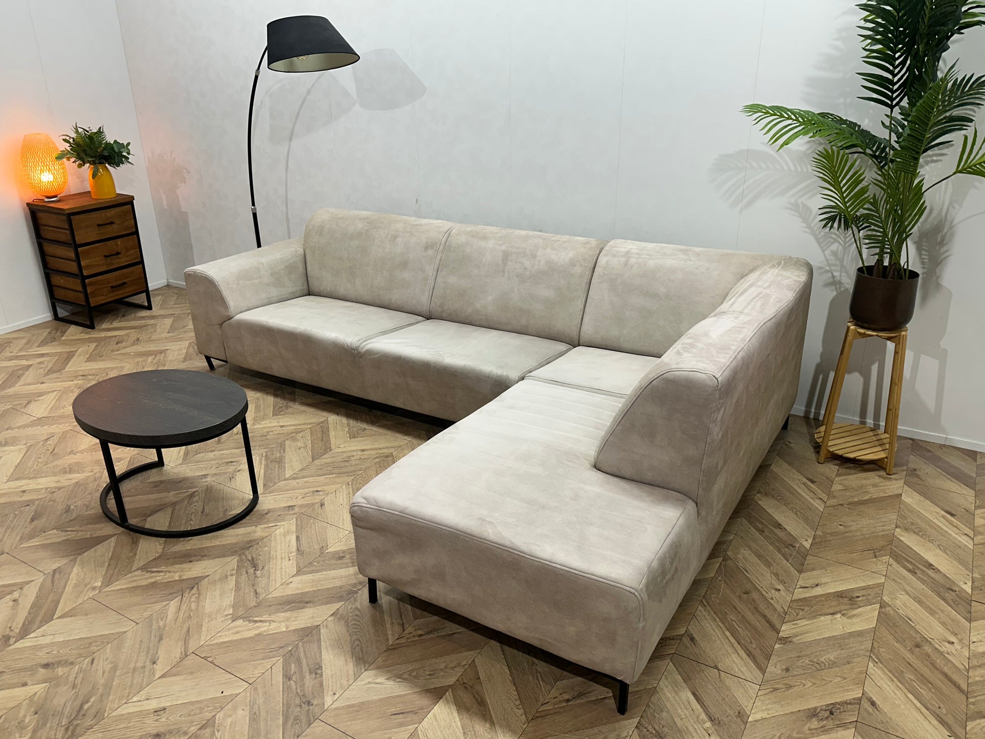 Crème Suède Stoffen Hoekbank ~ Inruilvoordeel