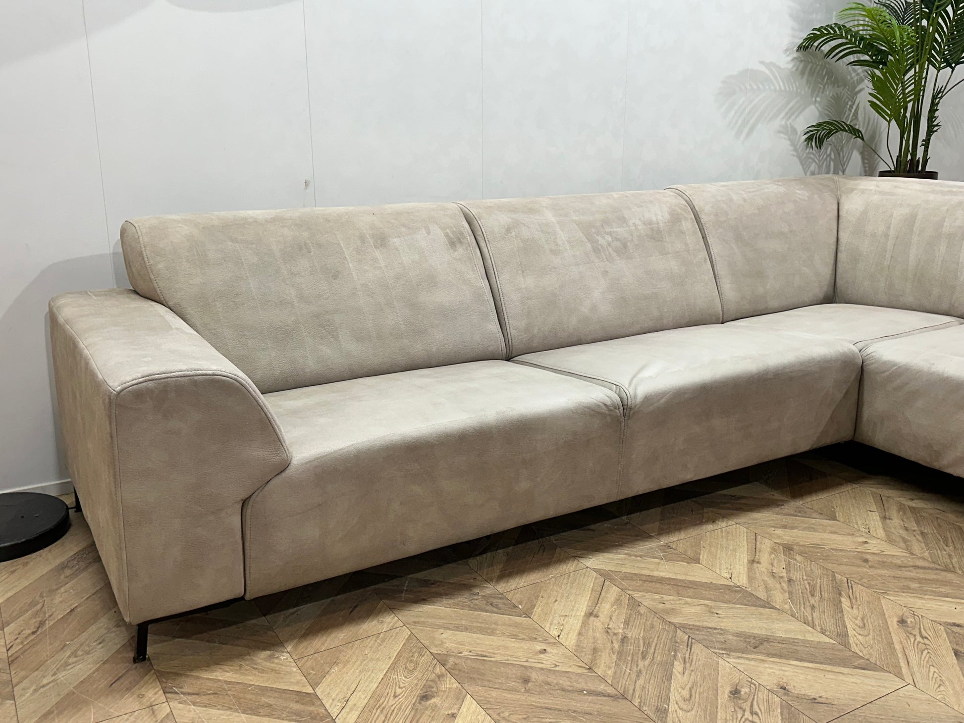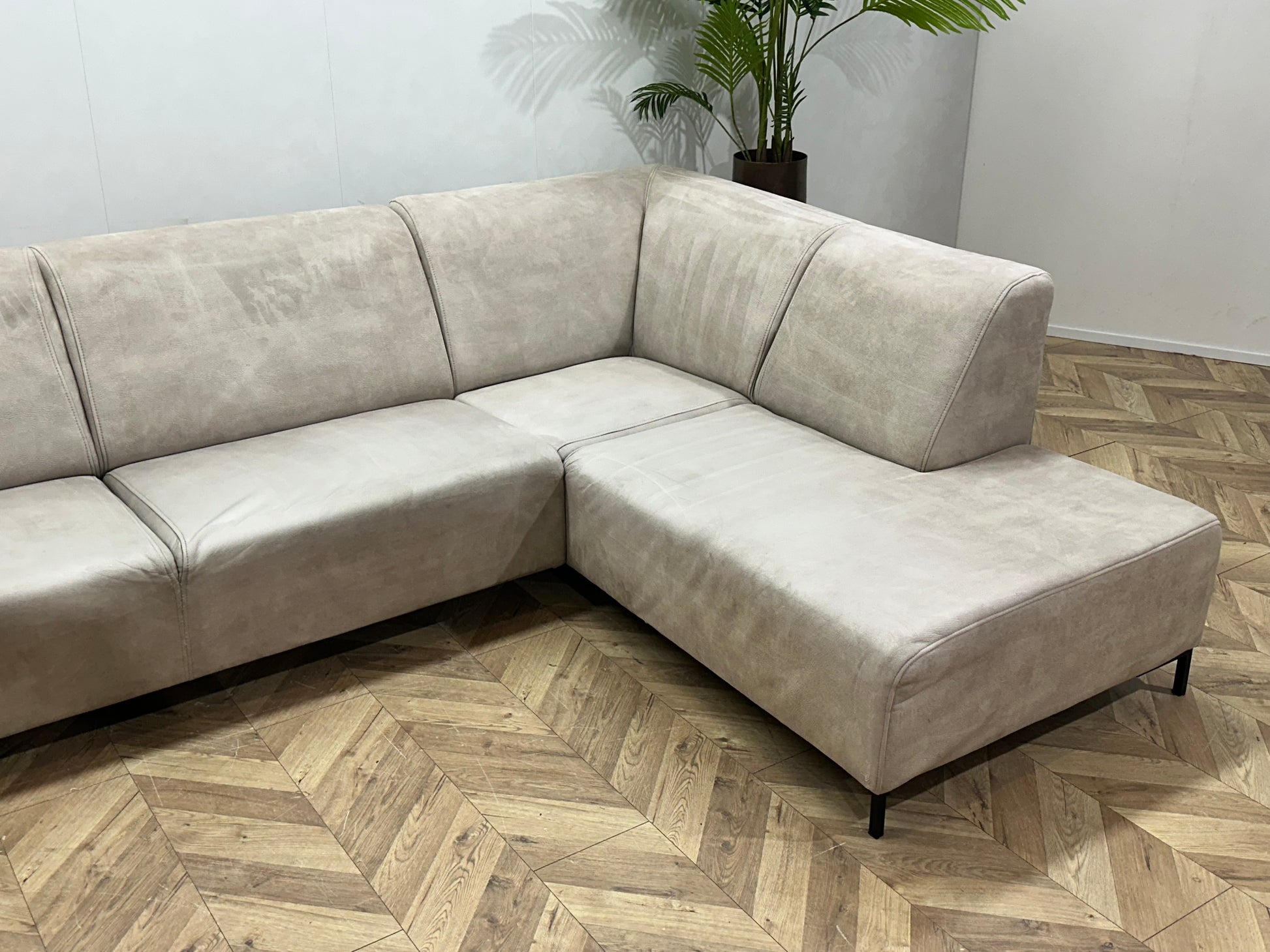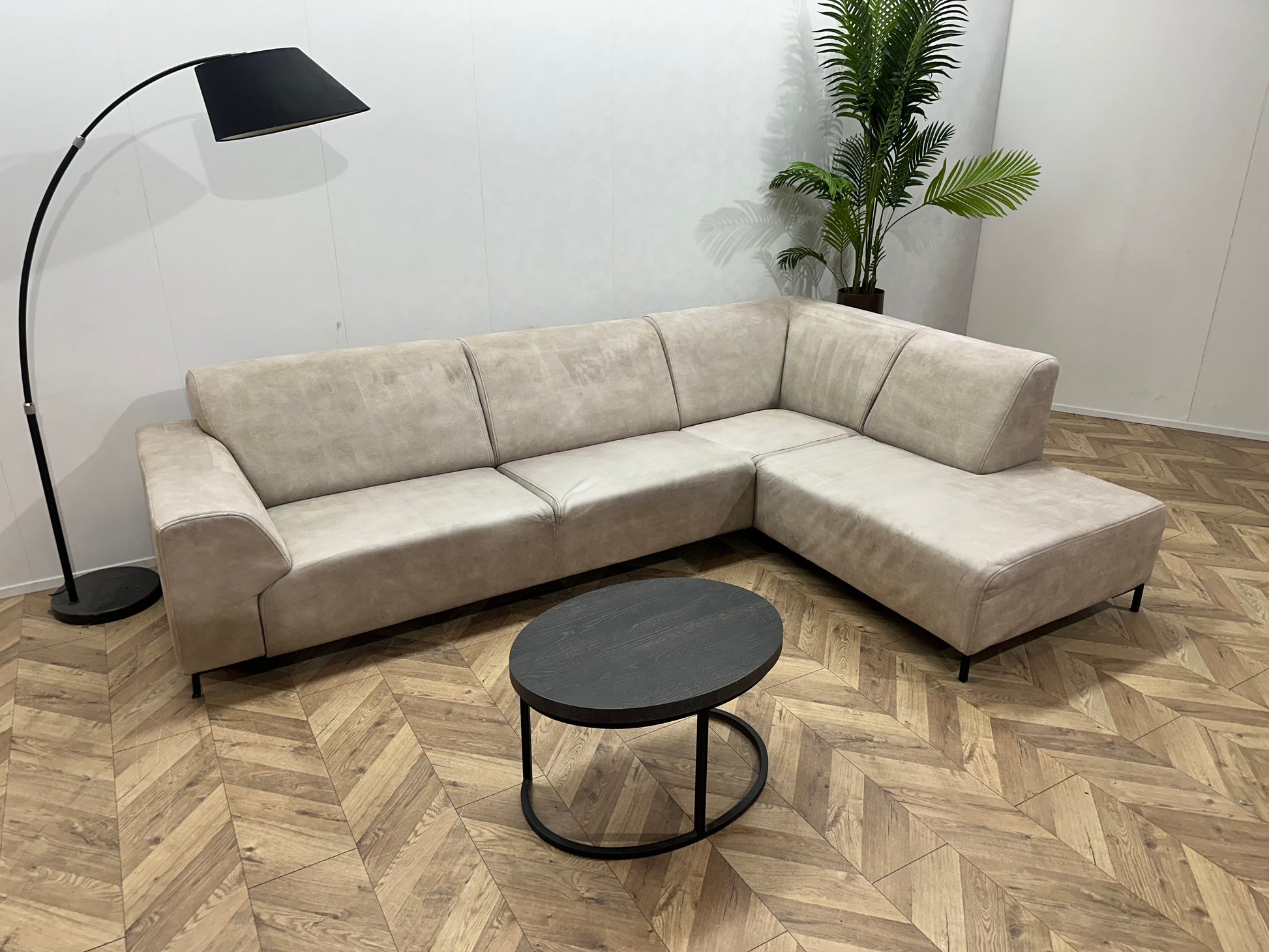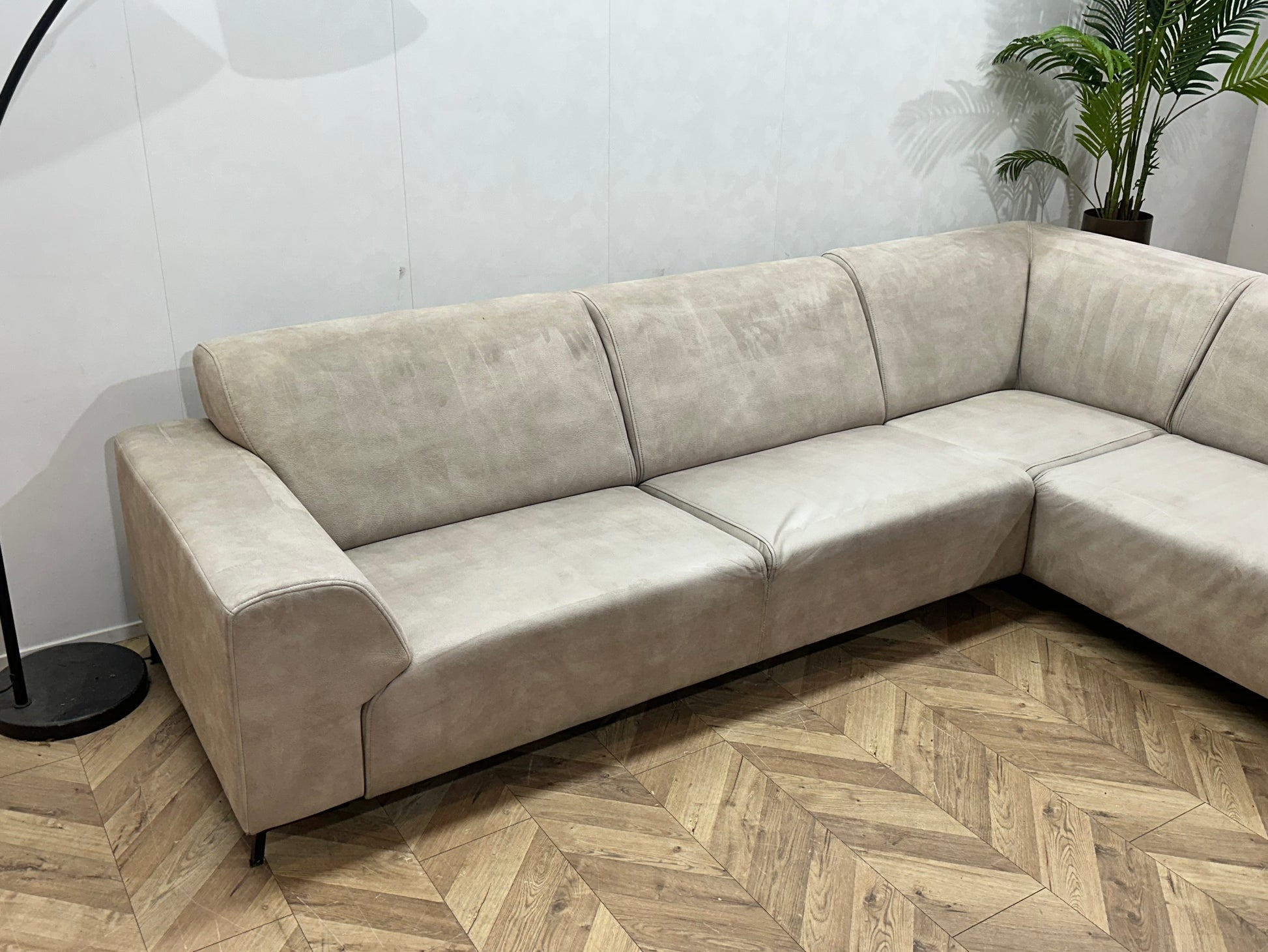 Crème Suède Stoffen Hoekbank ~ Inruilvoordeel