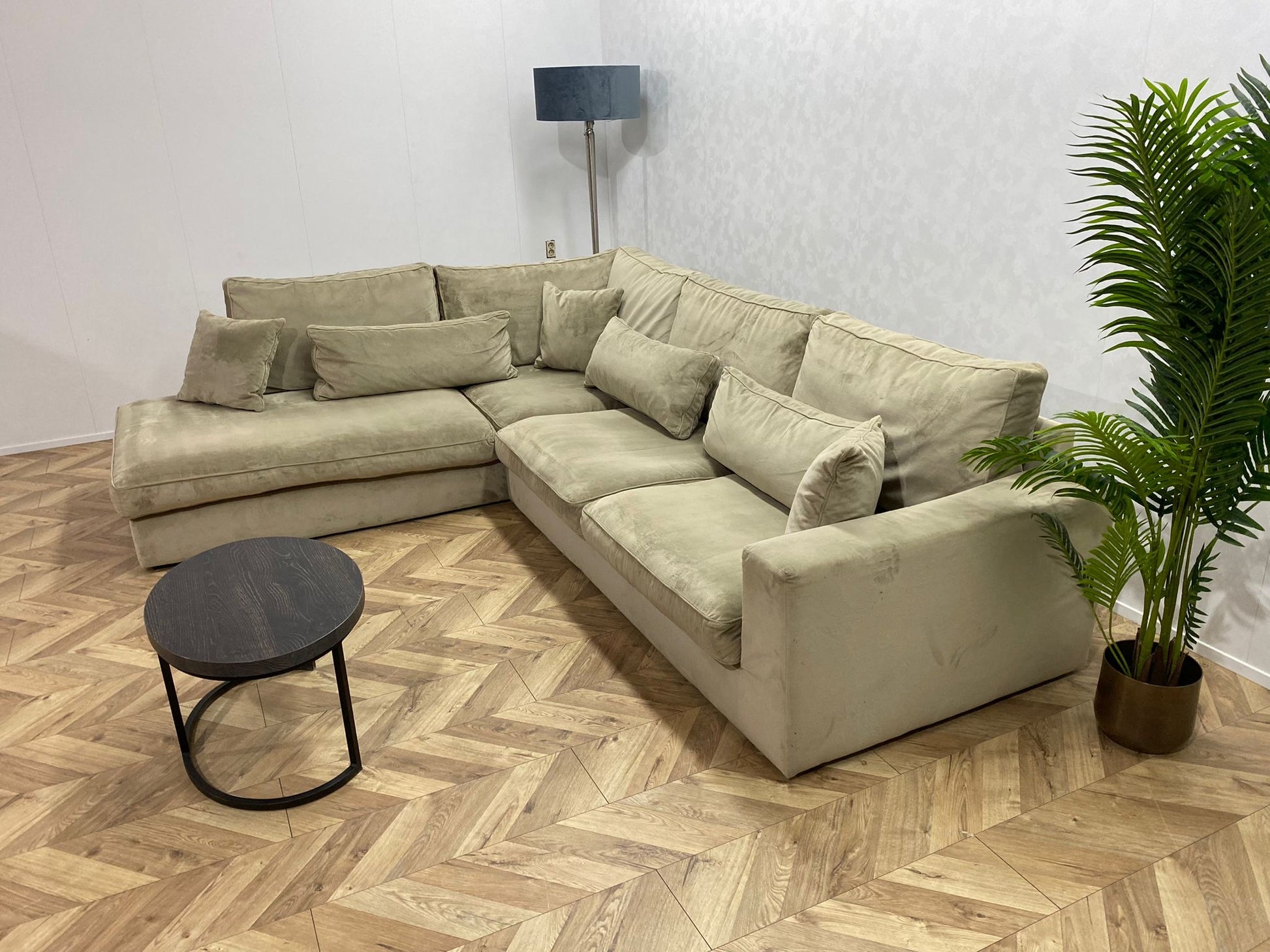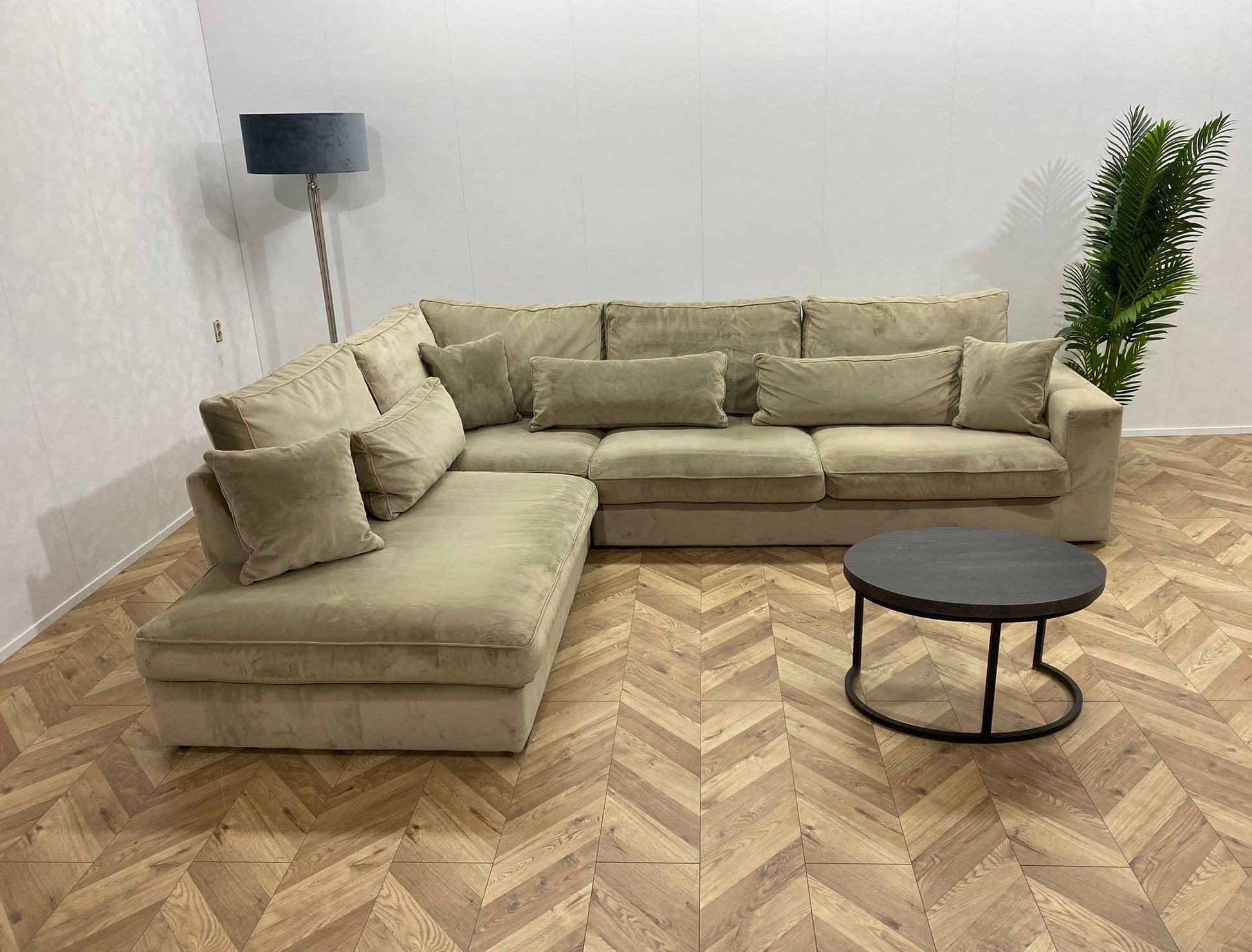 Crème Velvet Ruime Hoekbank ~ Nieuwstaat