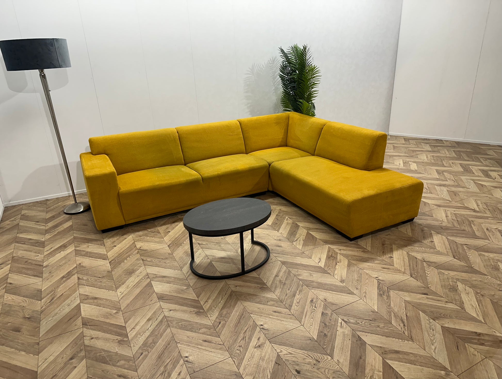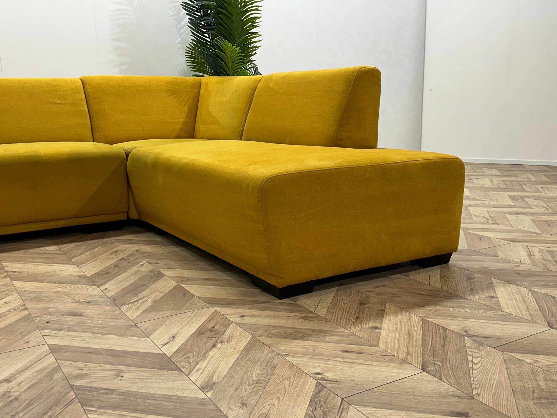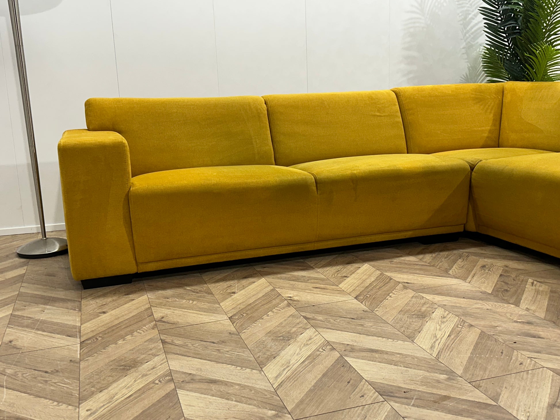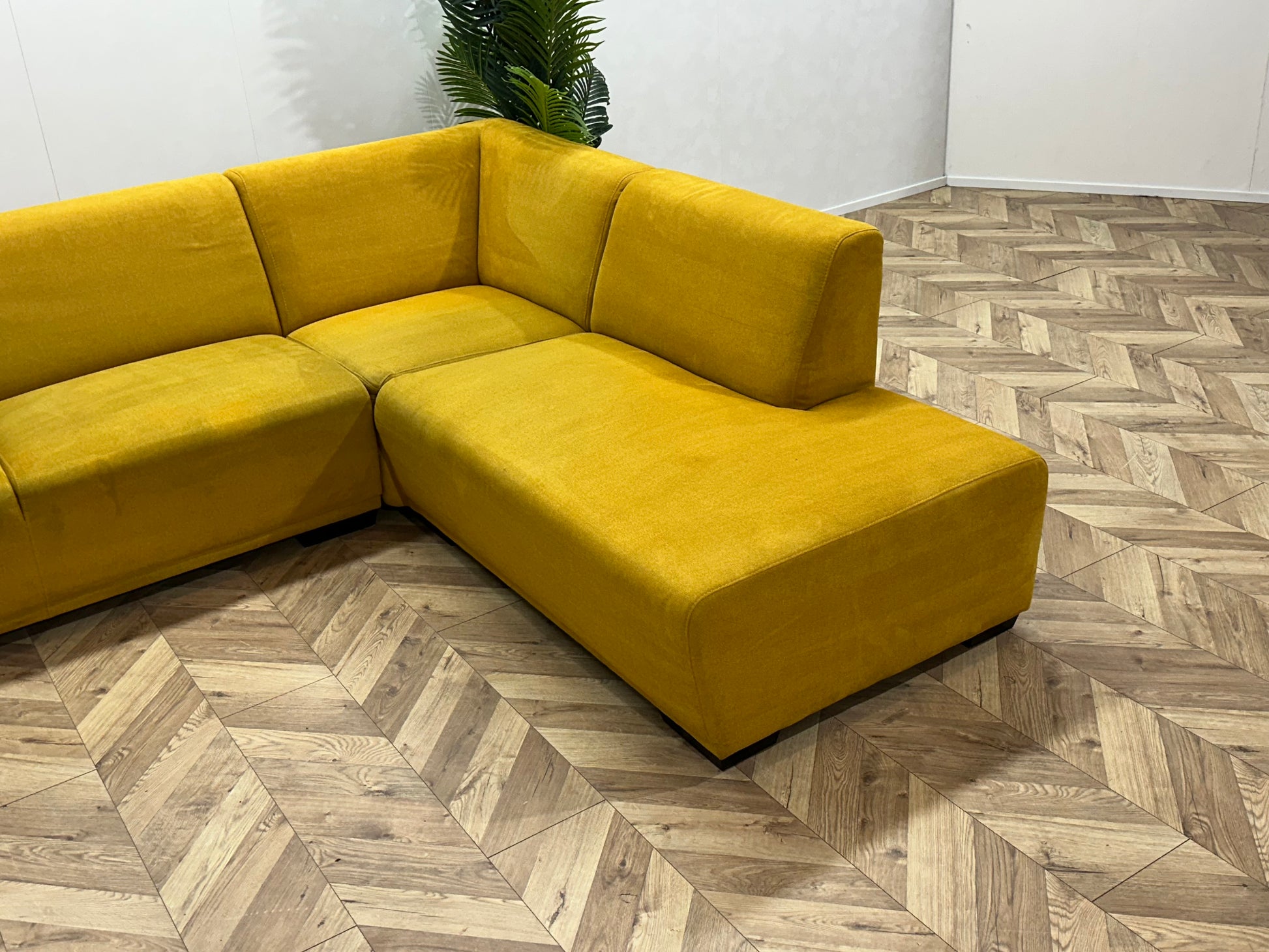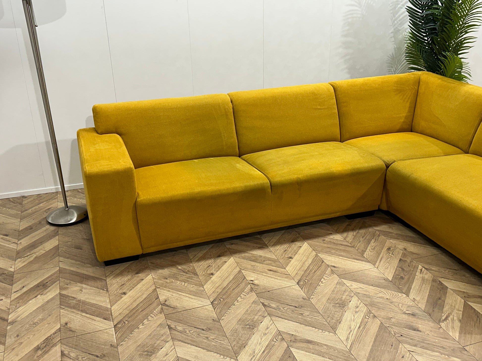 Gele Velvet Hoekbank ~ Vaste Kussens
