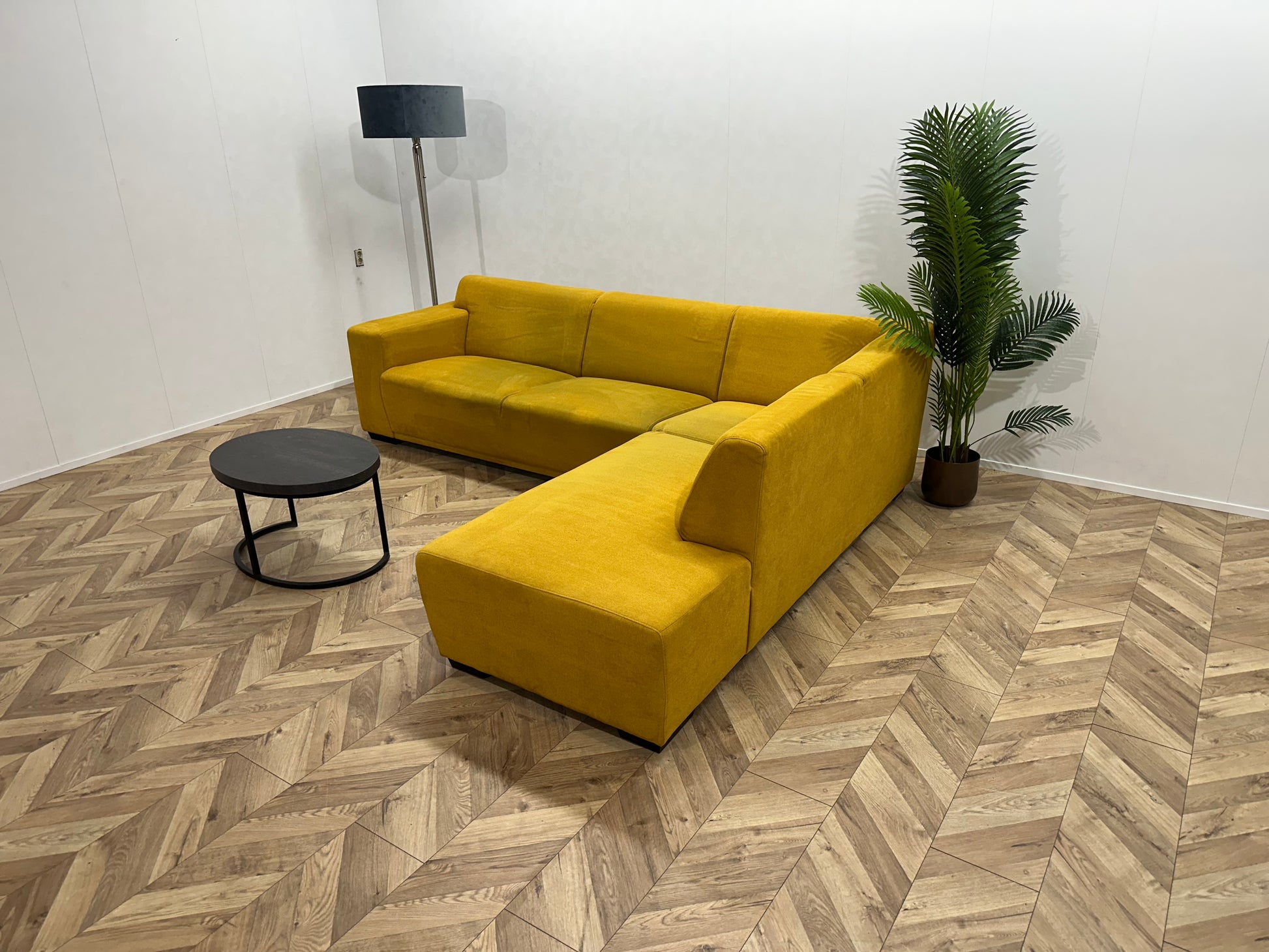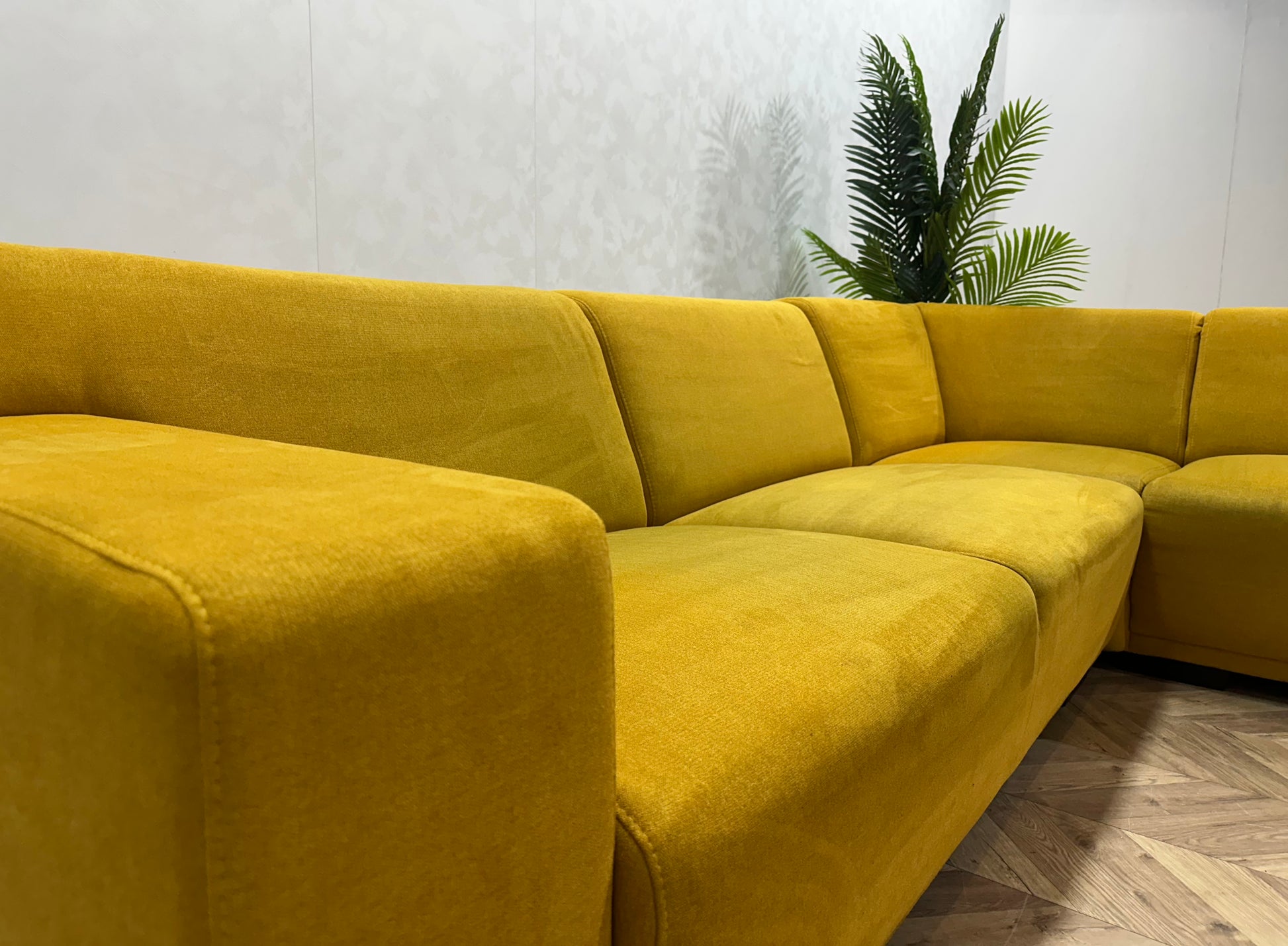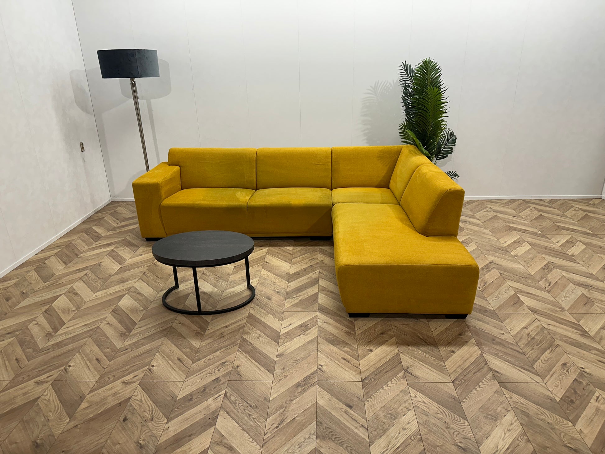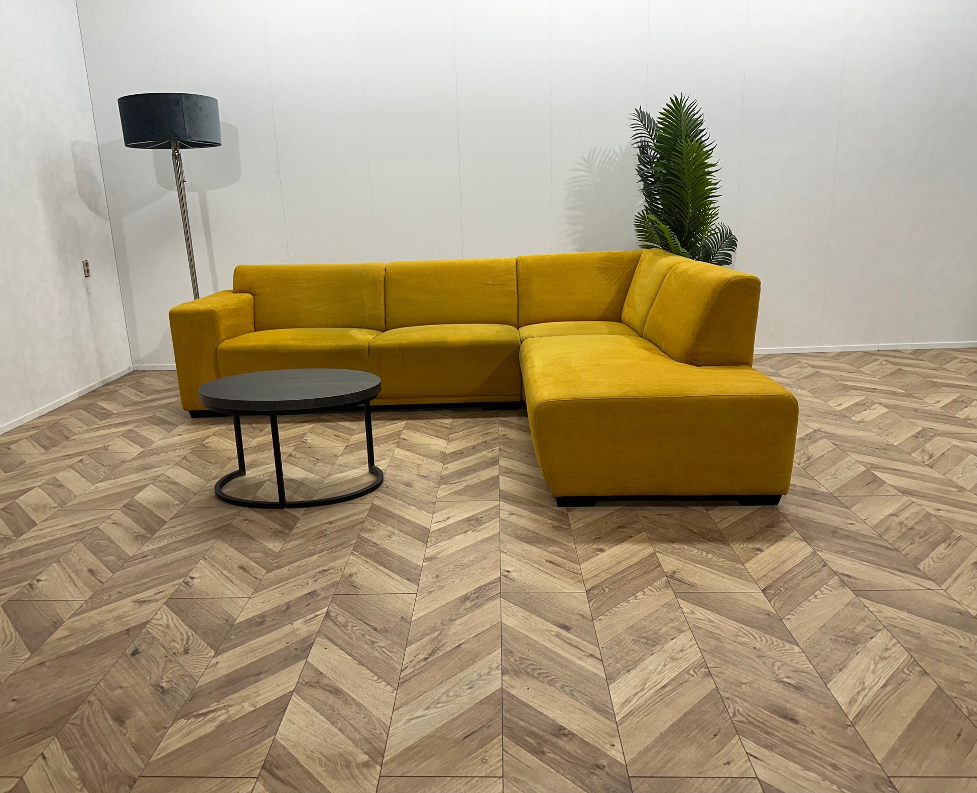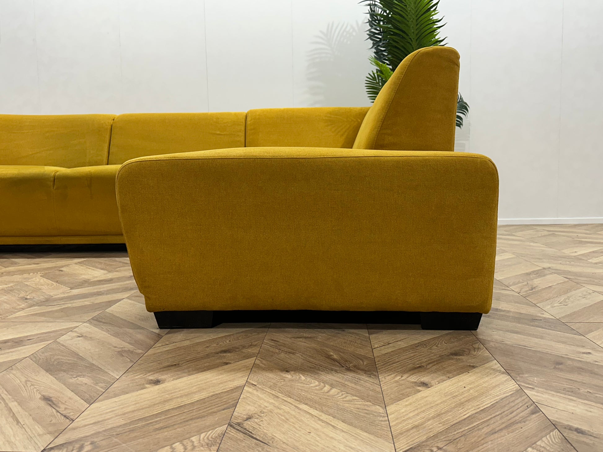 Gele Velvet Hoekbank ~ Vaste Kussens