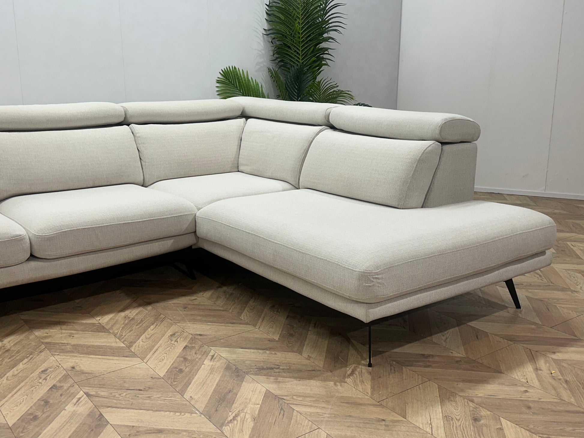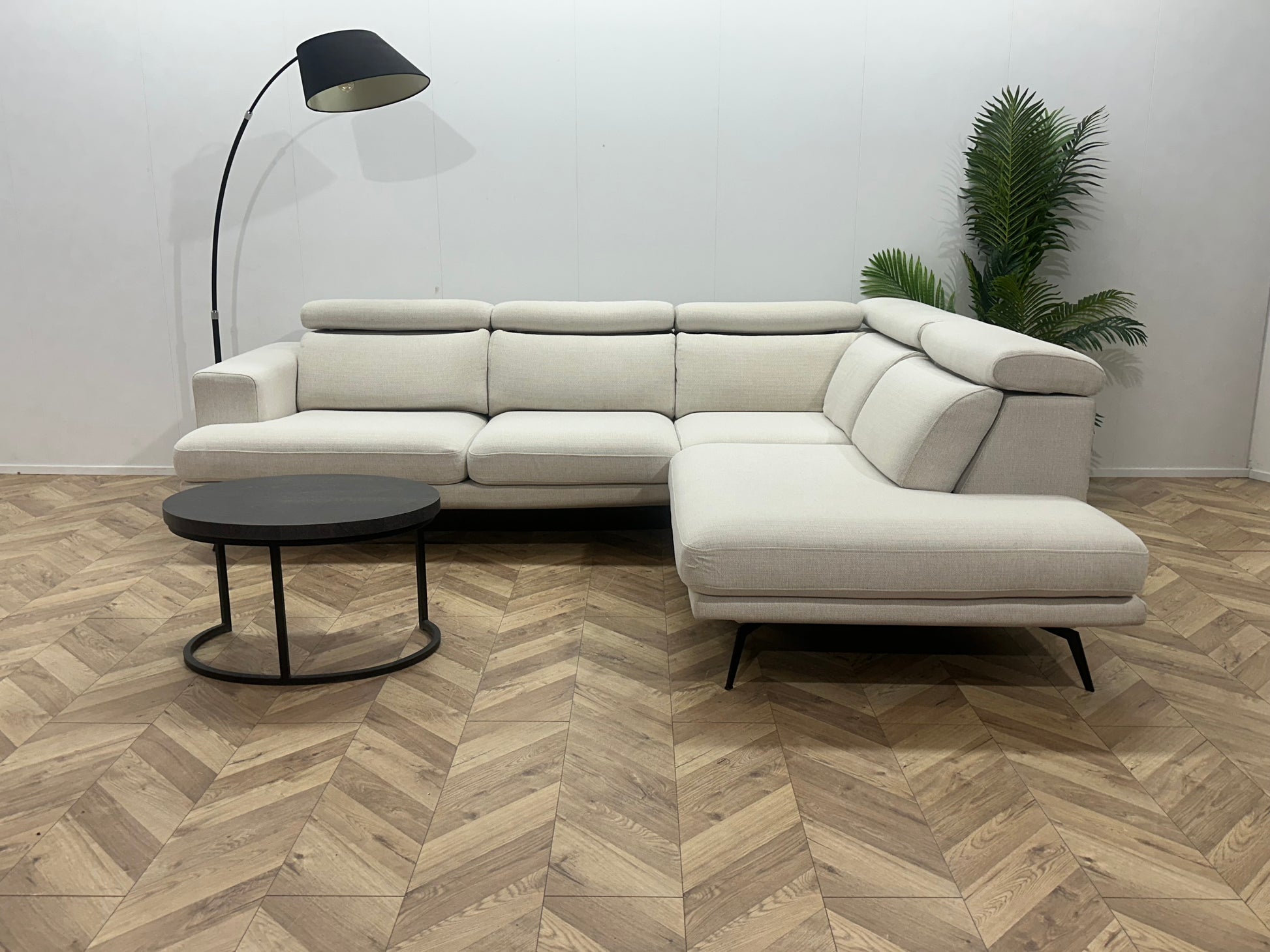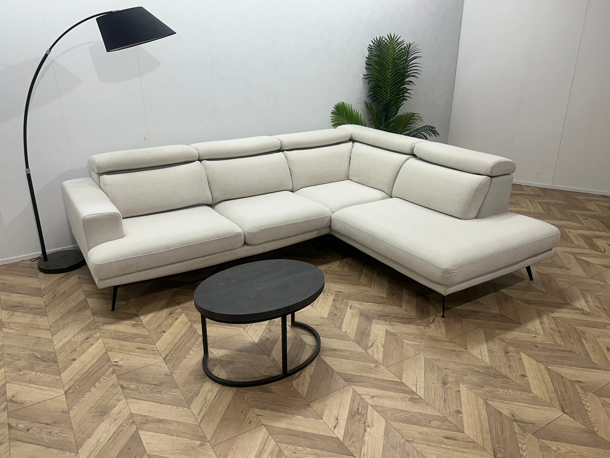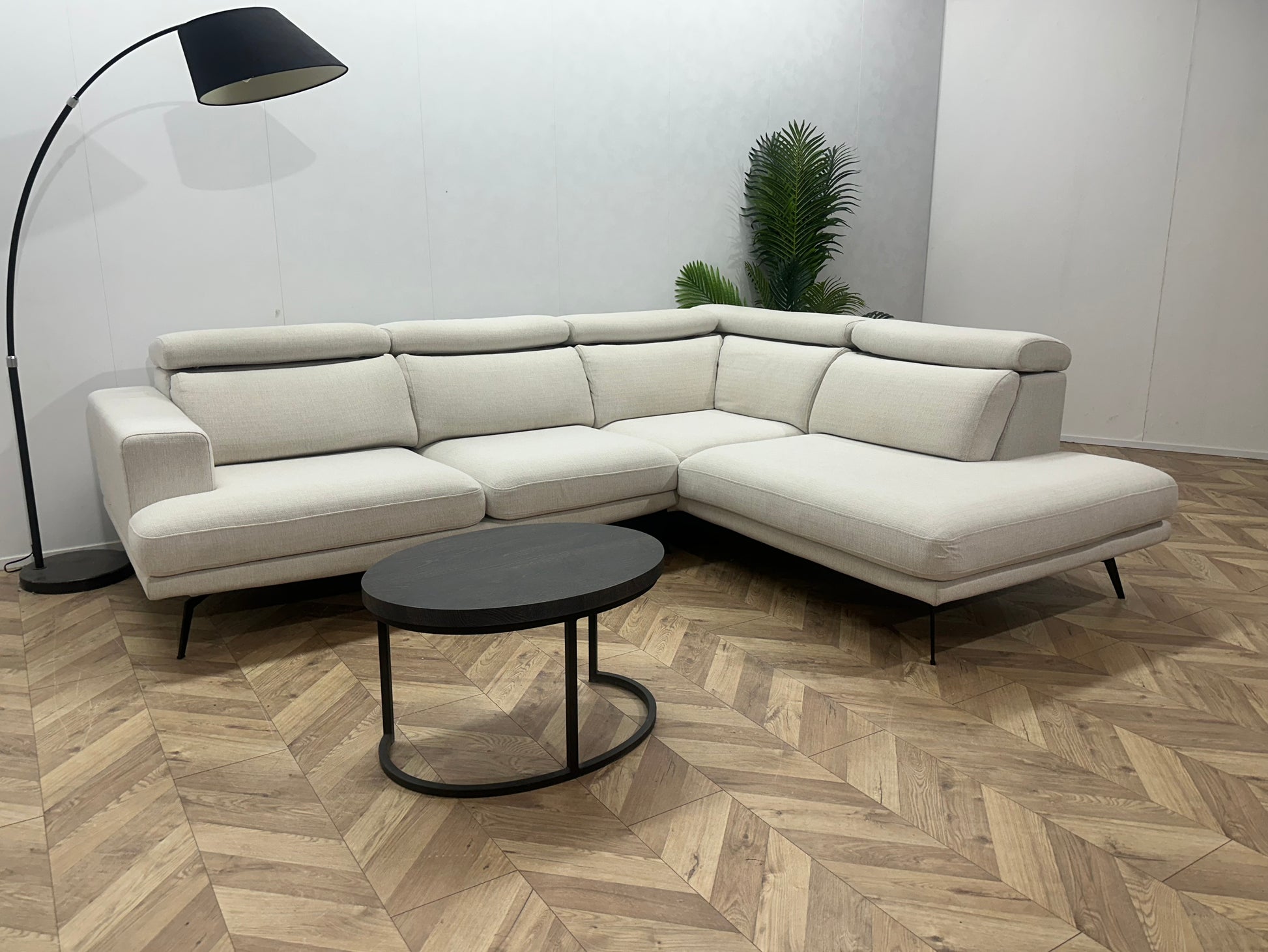 Goossens Witte/Crème Hoekbank ~ Verstelbare Hoofdsteunen ~ Nieuwstaat