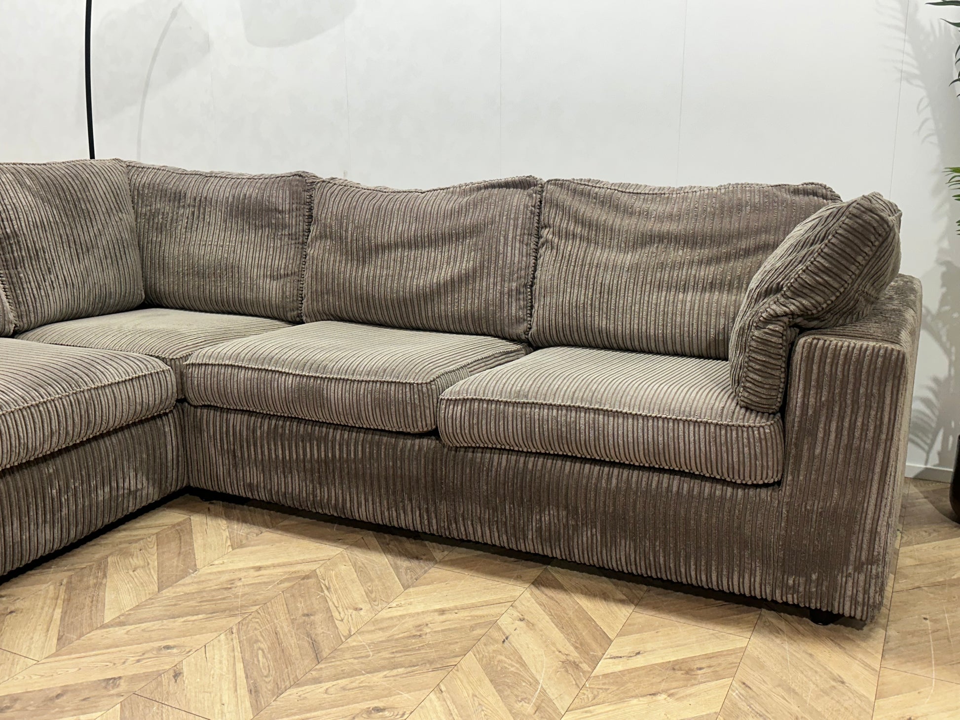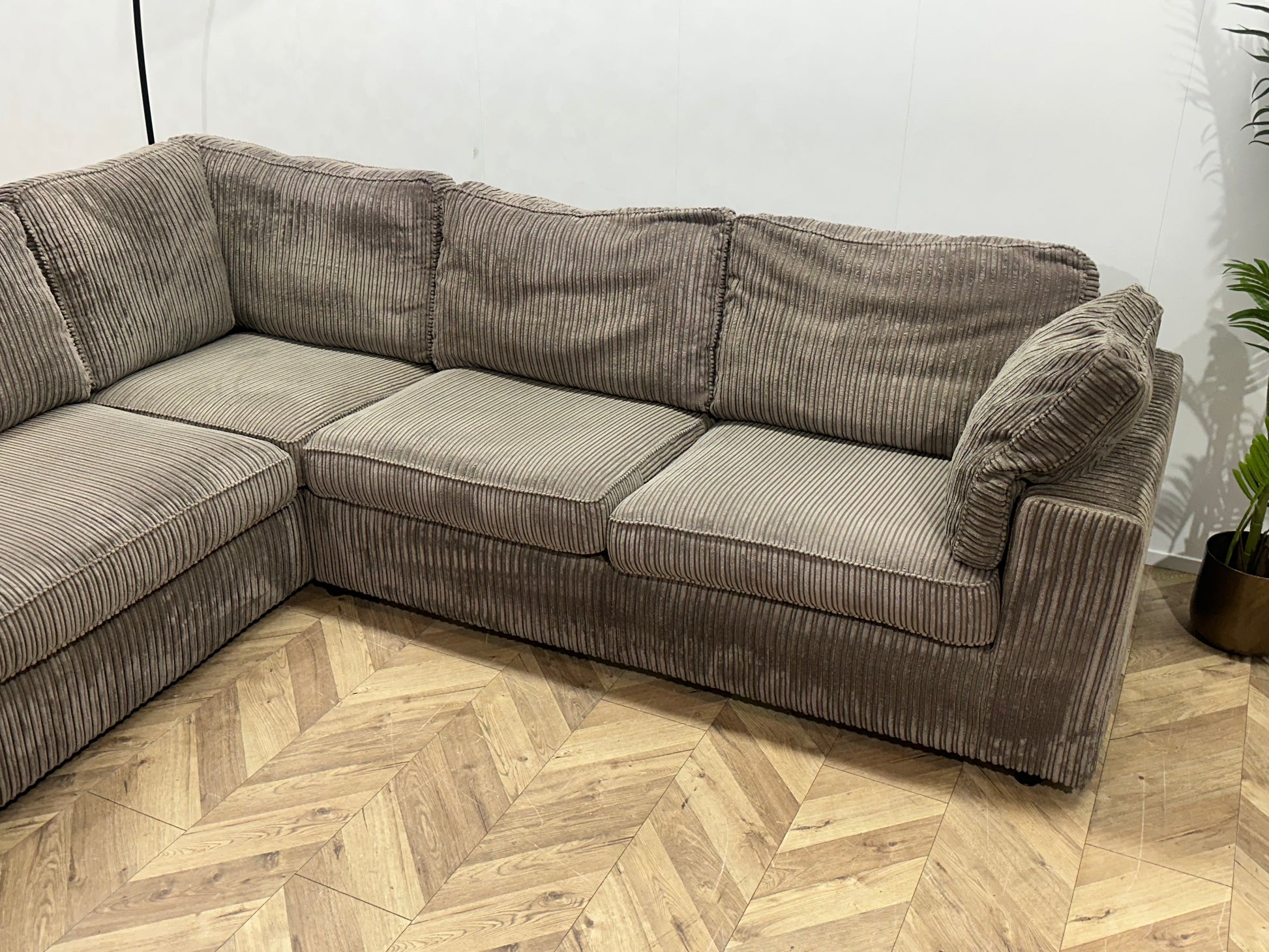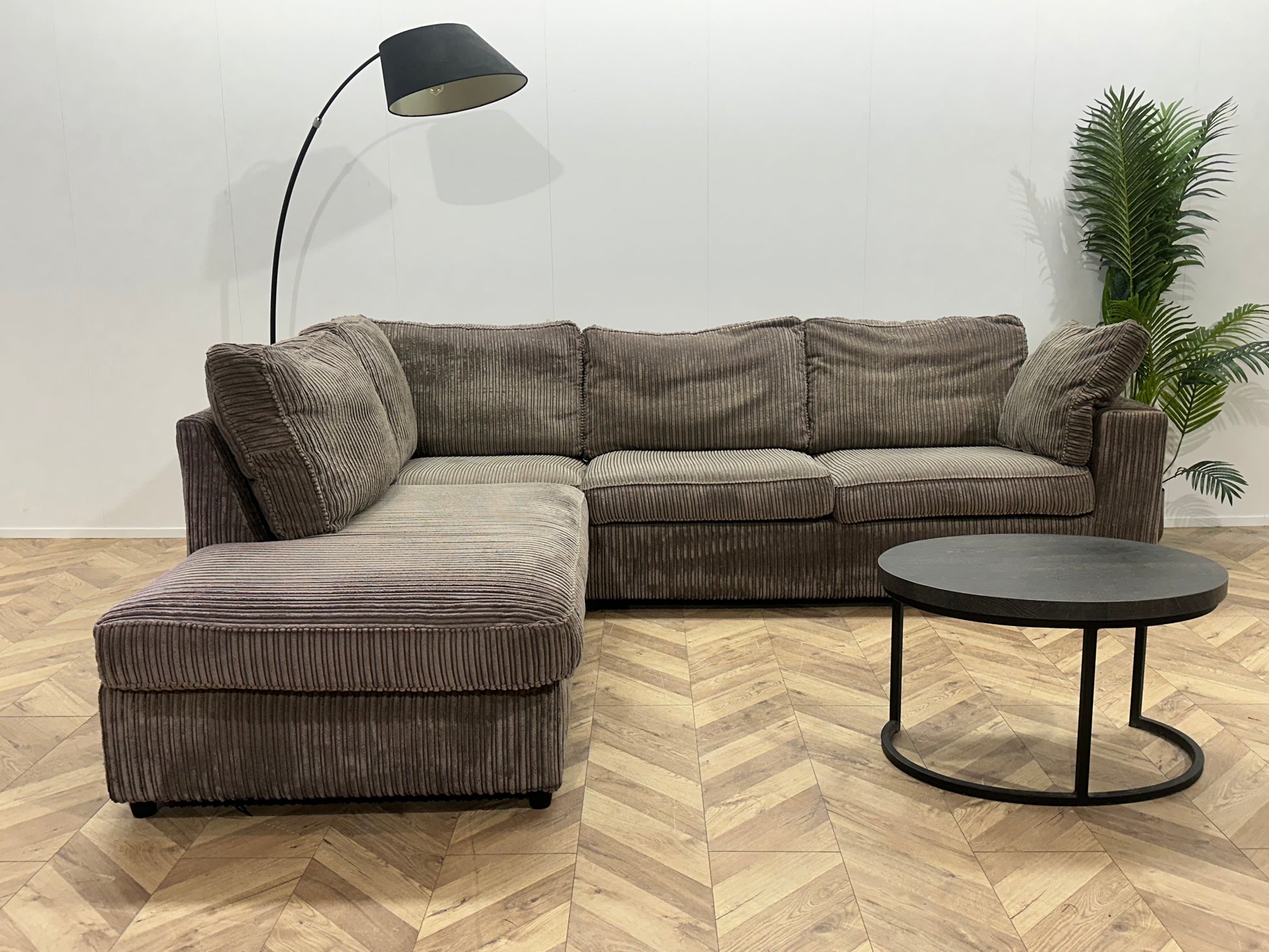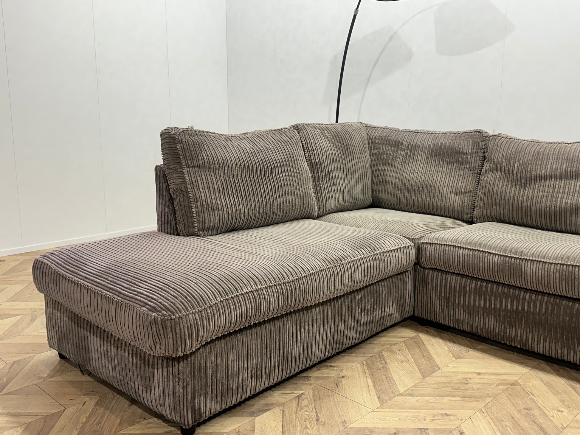 Grijze/Bruine Ribstof Hoekbank ~ Losse Kussens Met Afneembare Hoezen
