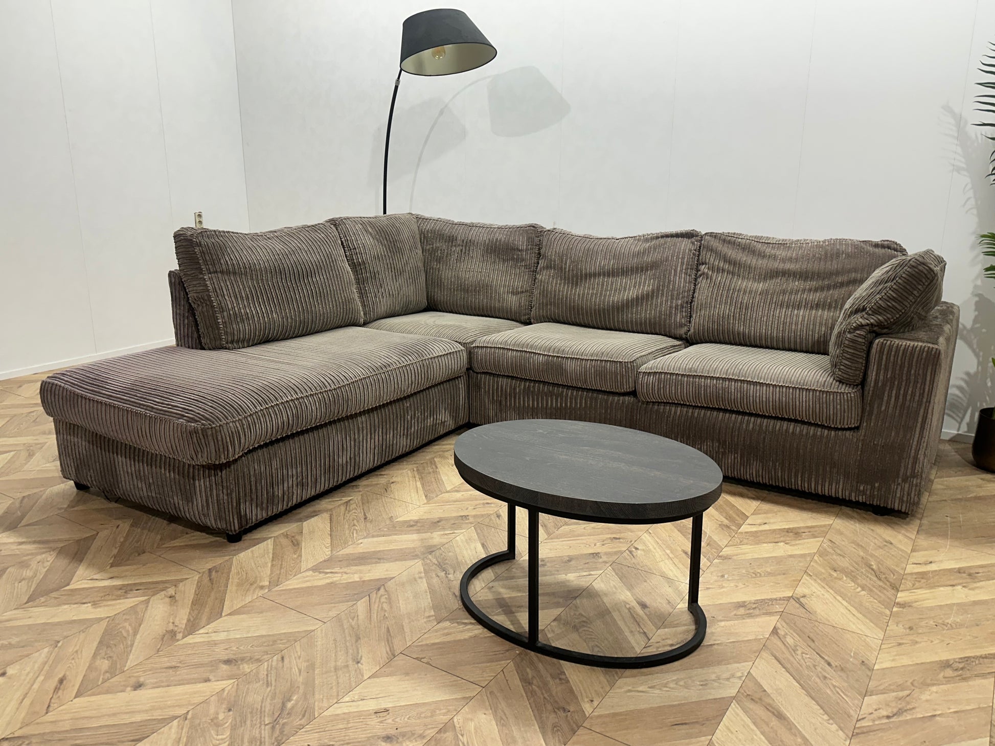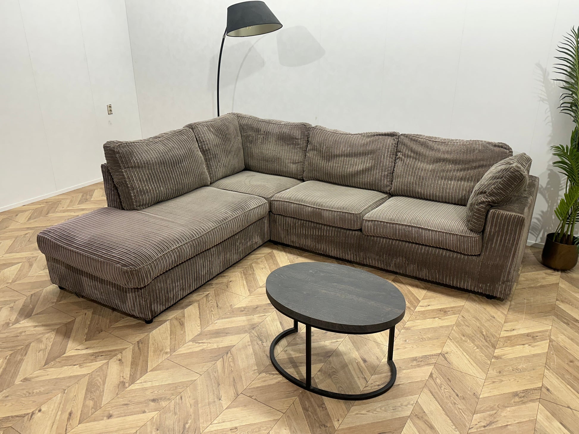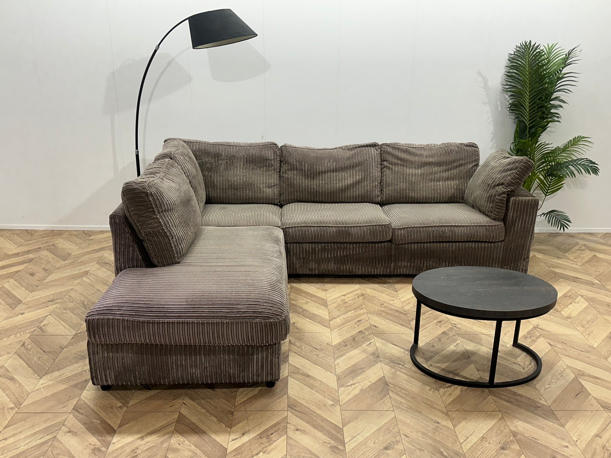 Grijze/Bruine Ribstof Hoekbank ~ Losse Kussens Met Afneembare Hoezen