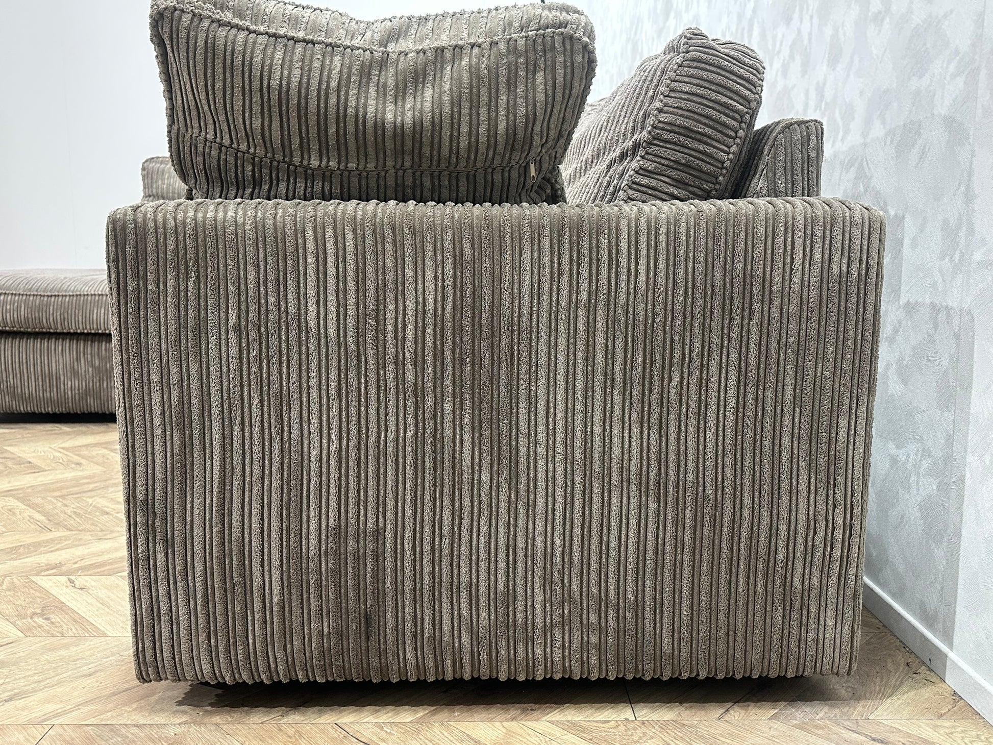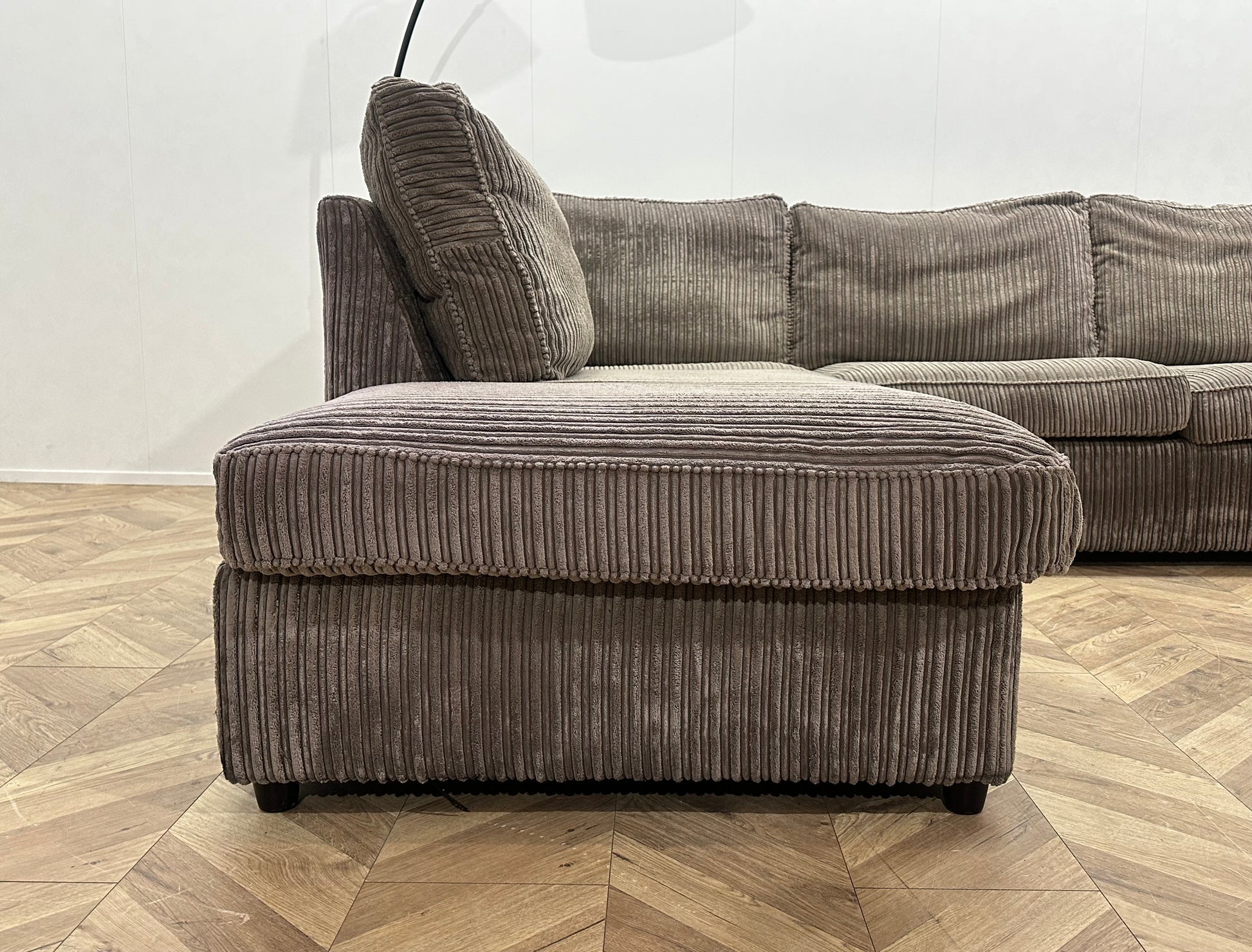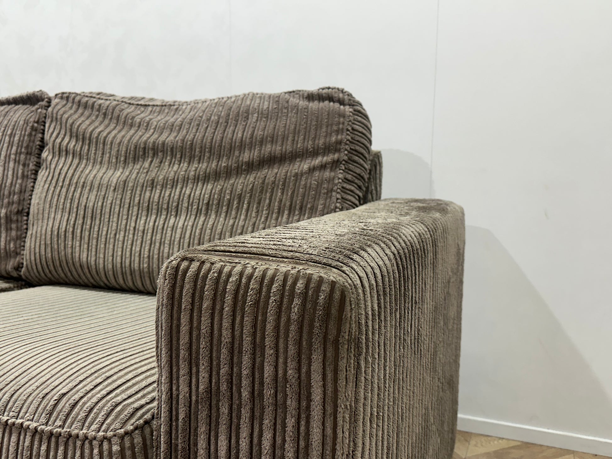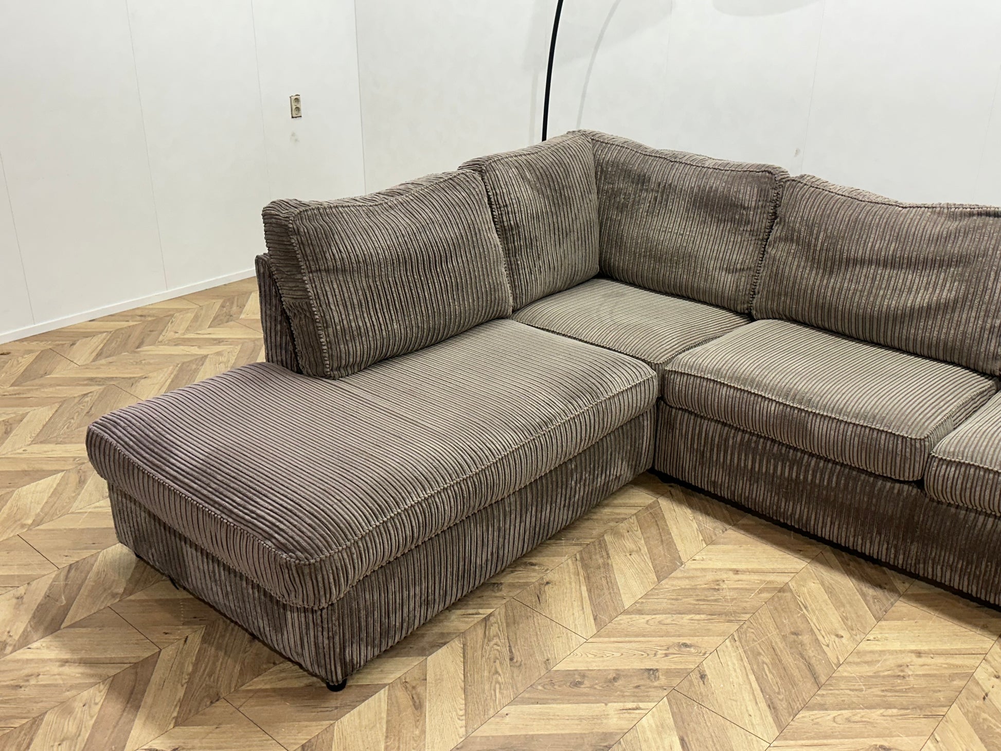 Grijze/Bruine Ribstof Hoekbank ~ Losse Kussens Met Afneembare Hoezen
