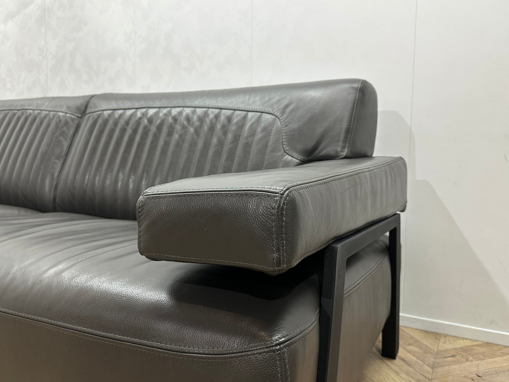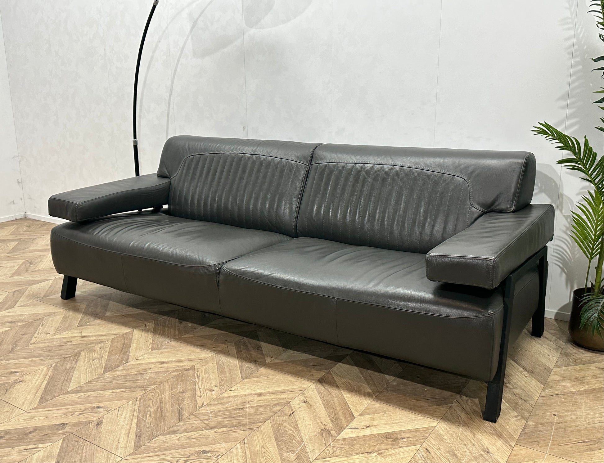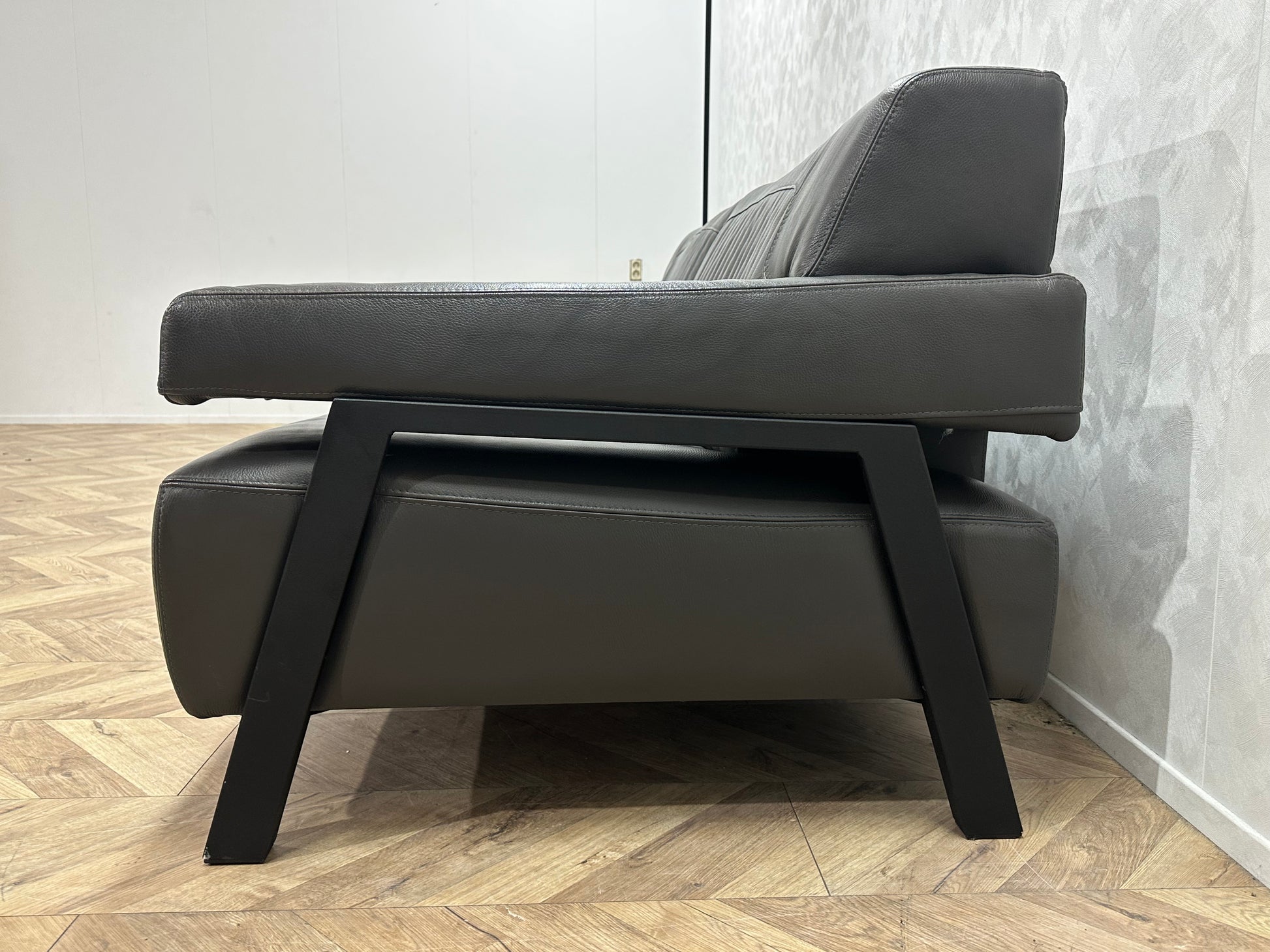 Grijze Design Echt Lederen 2.5-Zits Bank ~ Vaste Kussens