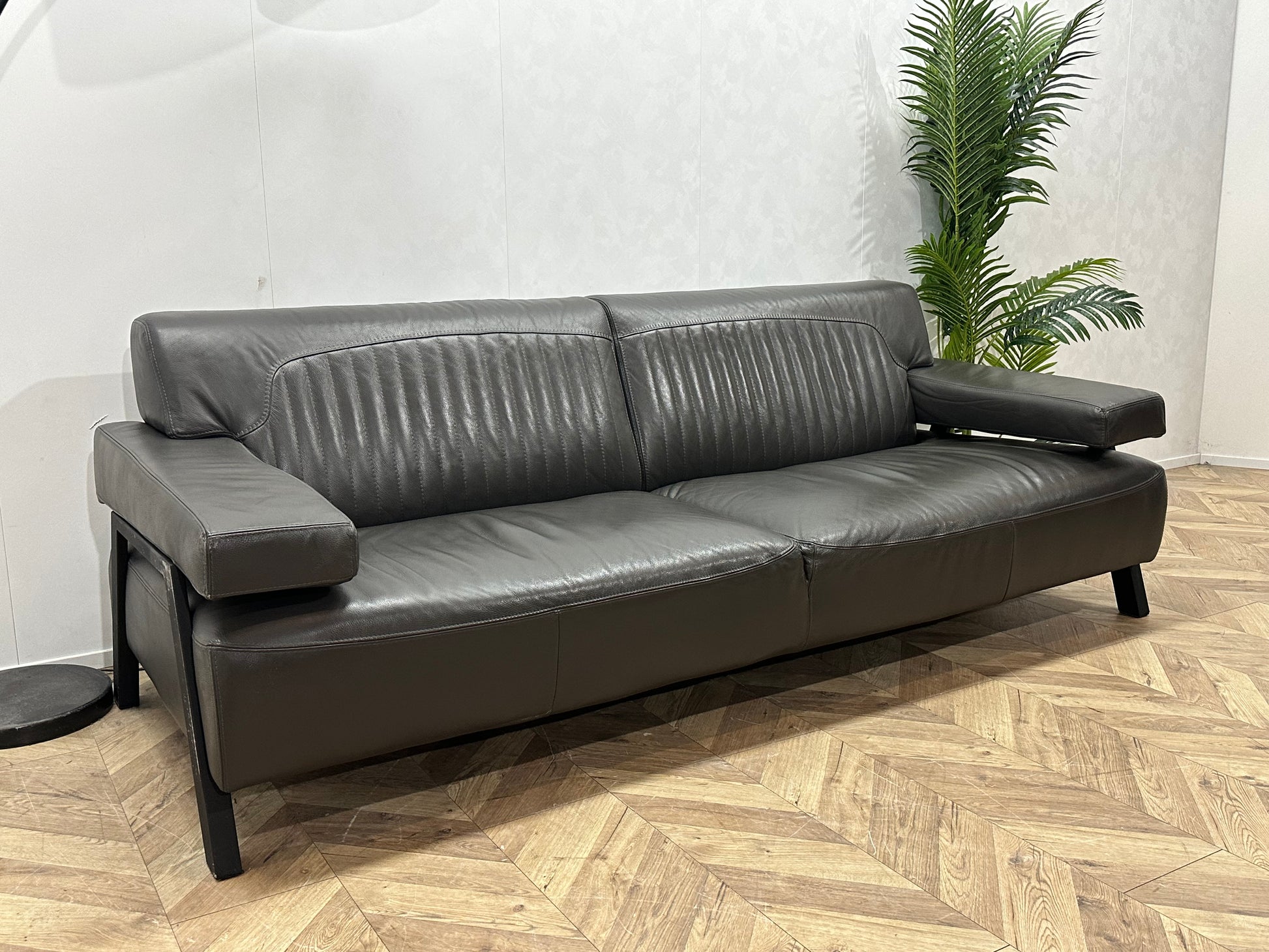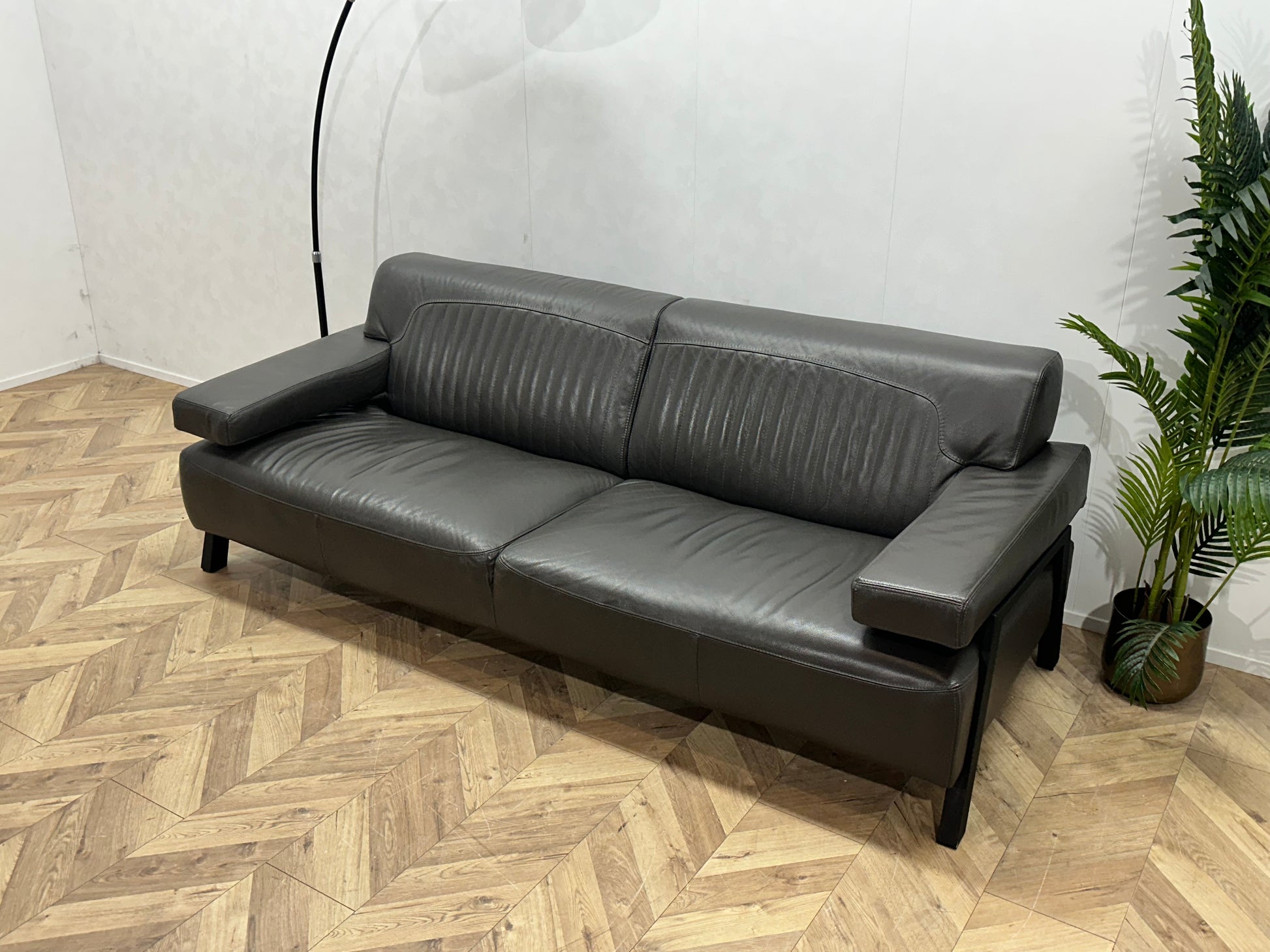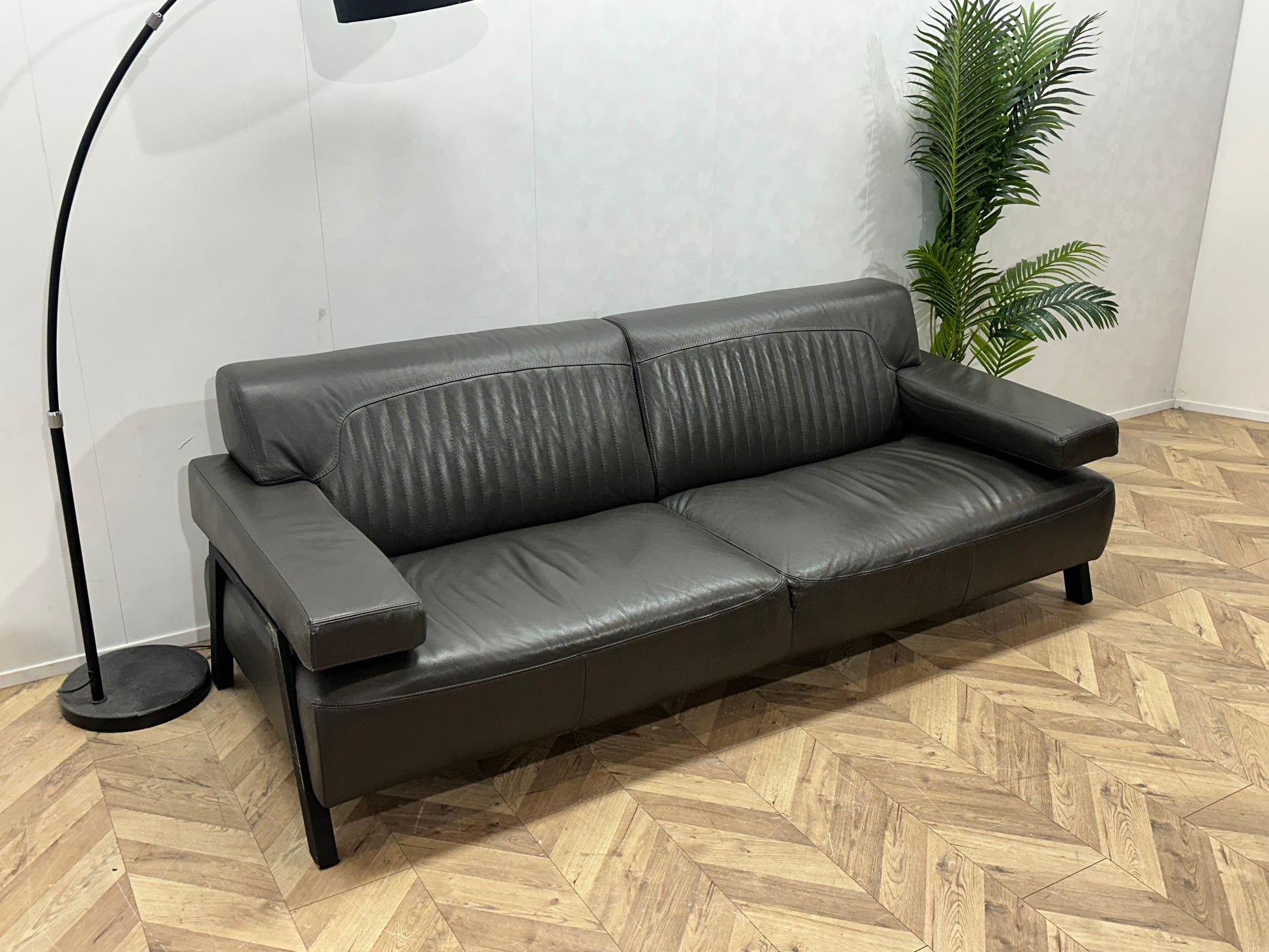 Grijze Design Echt Lederen 2.5-Zits Bank ~ Vaste Kussens