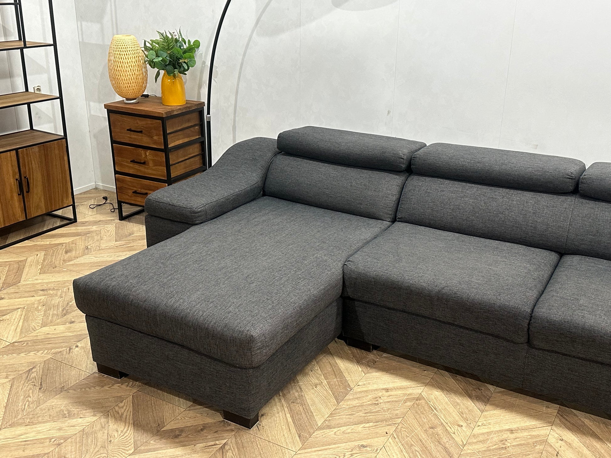 Grijze Design Hoekbank ~ Verstelbare Hoofdsteunen