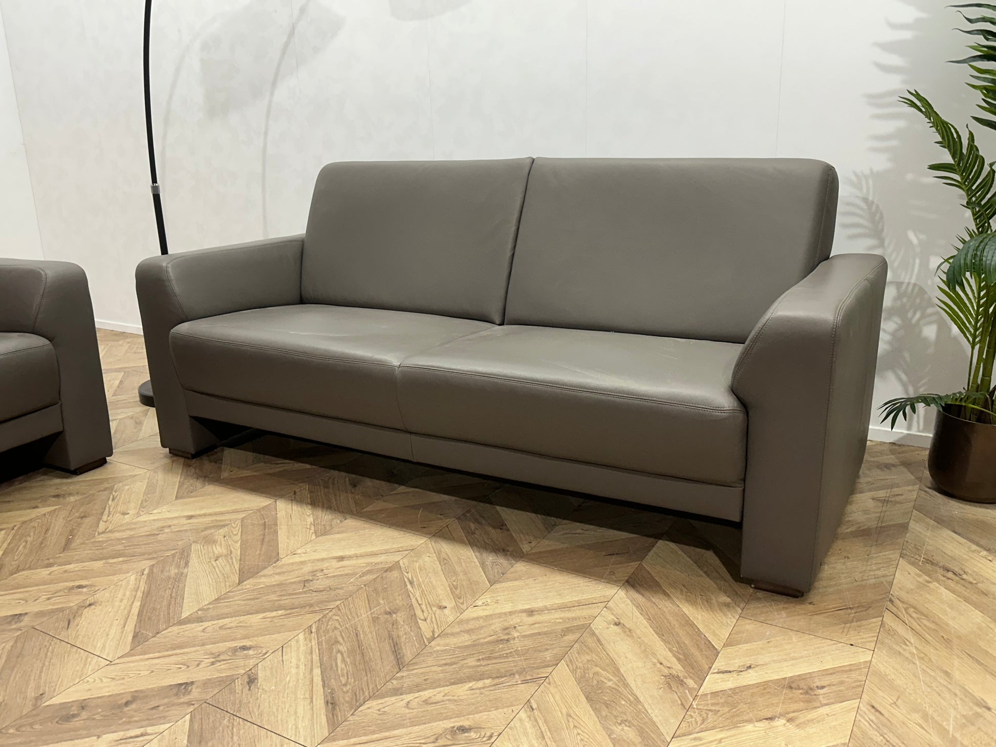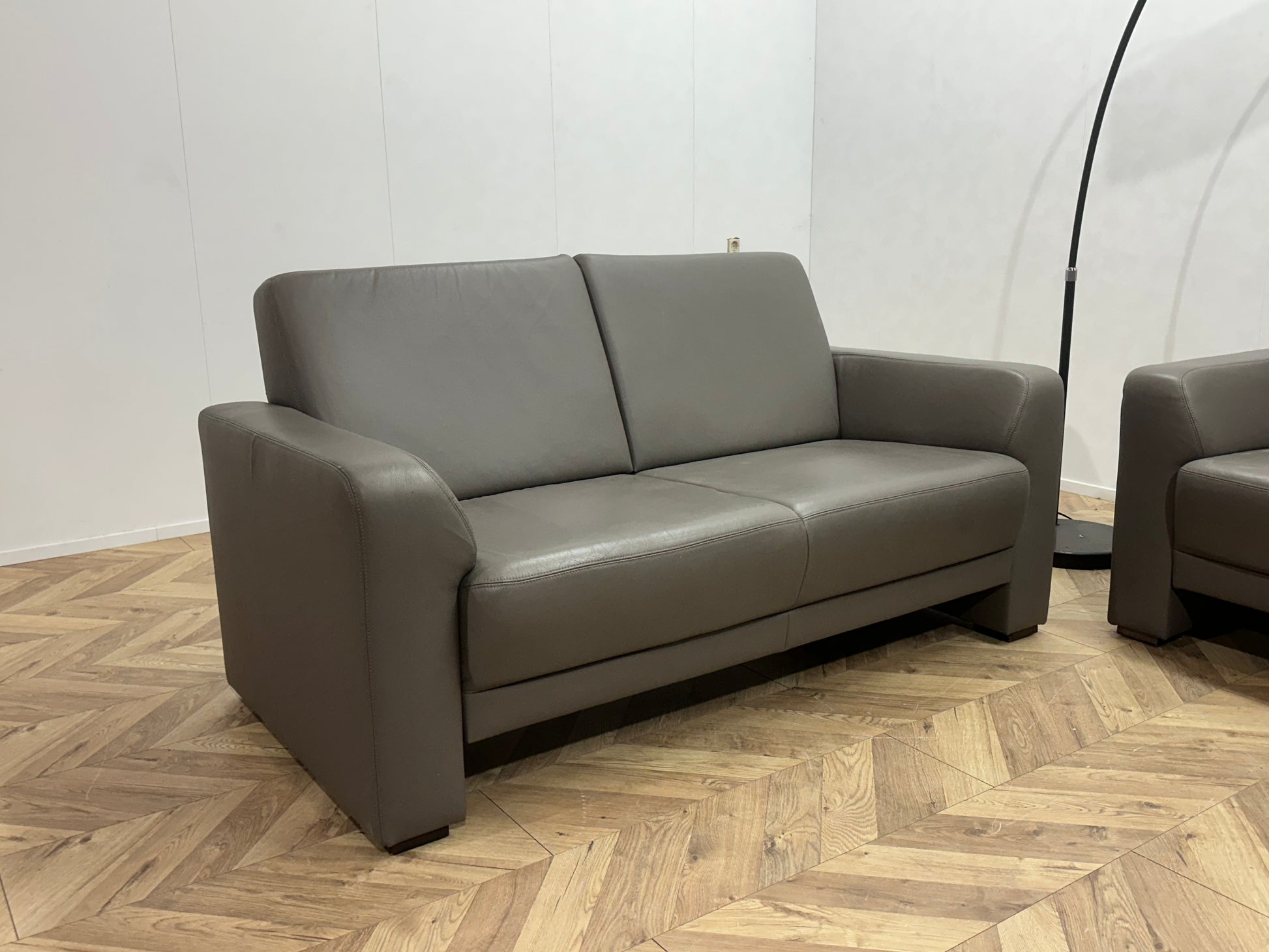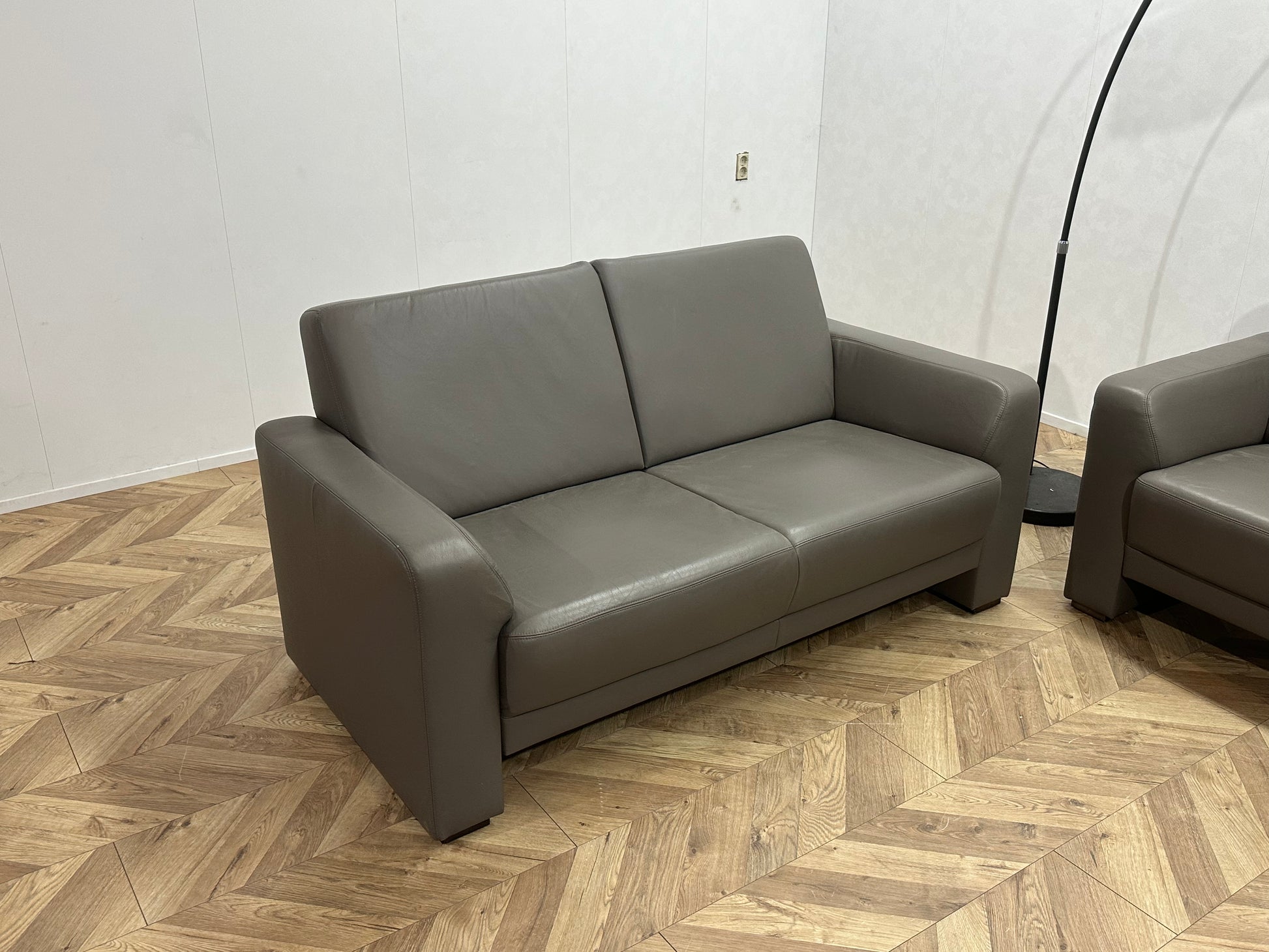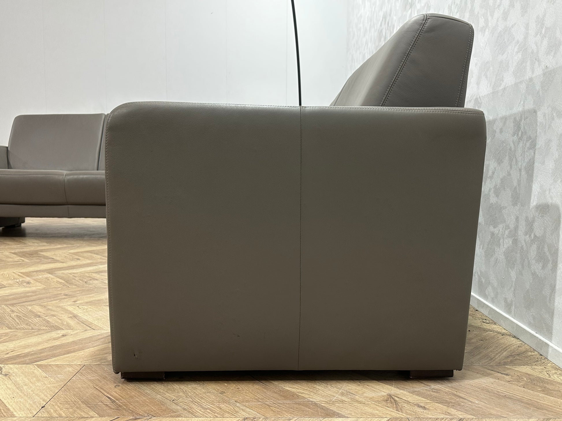 Musterring Grijze Echt Lederen Banken Set ~ Vaste Kussens