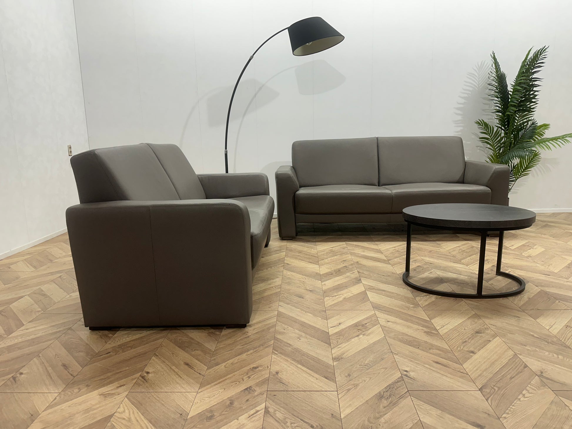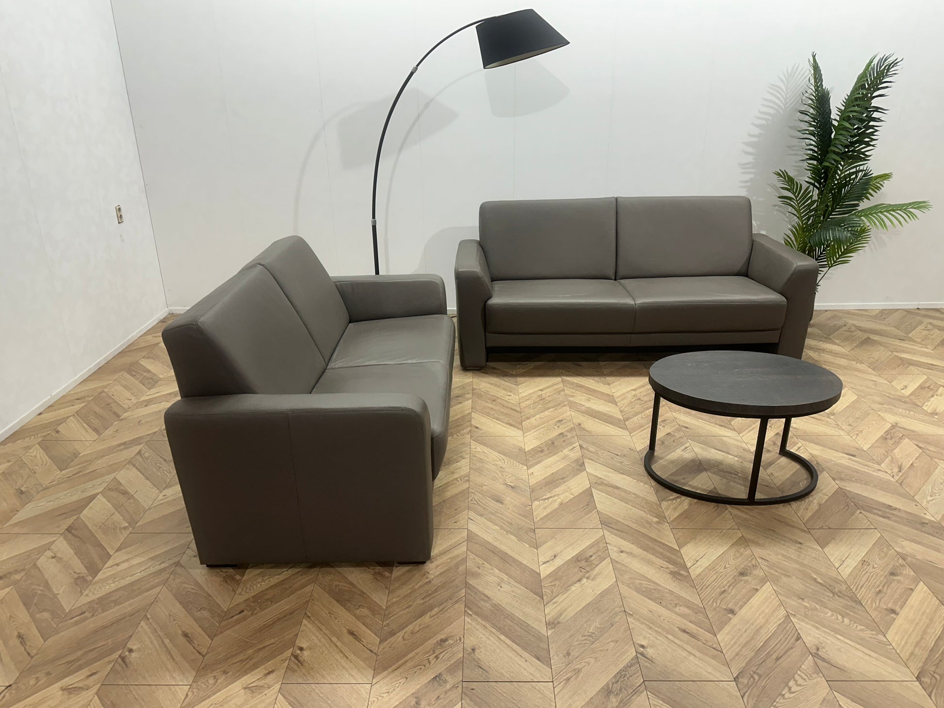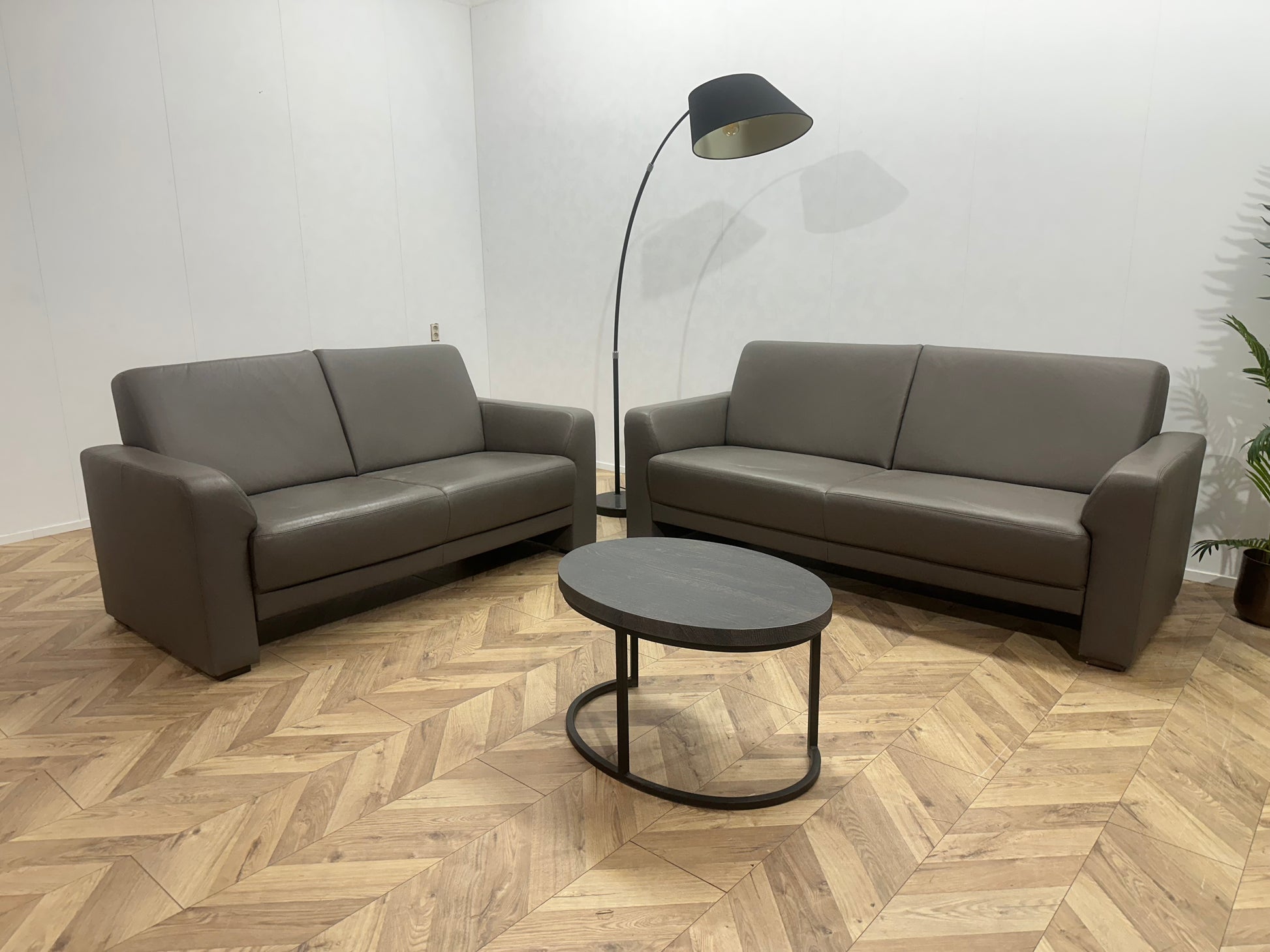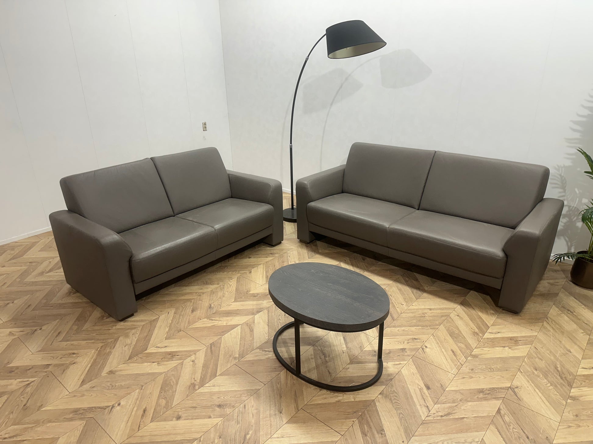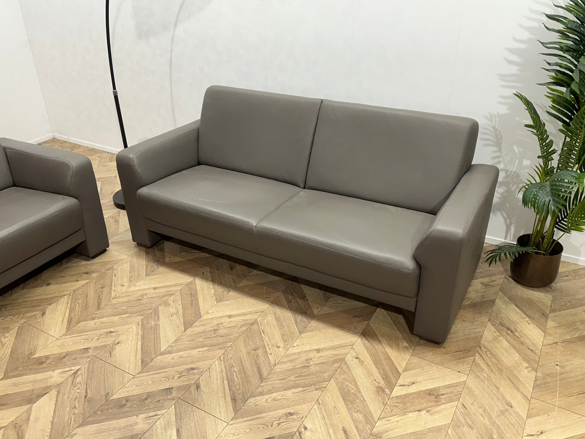Musterring Grijze Echt Lederen Banken Set ~ Vaste Kussens