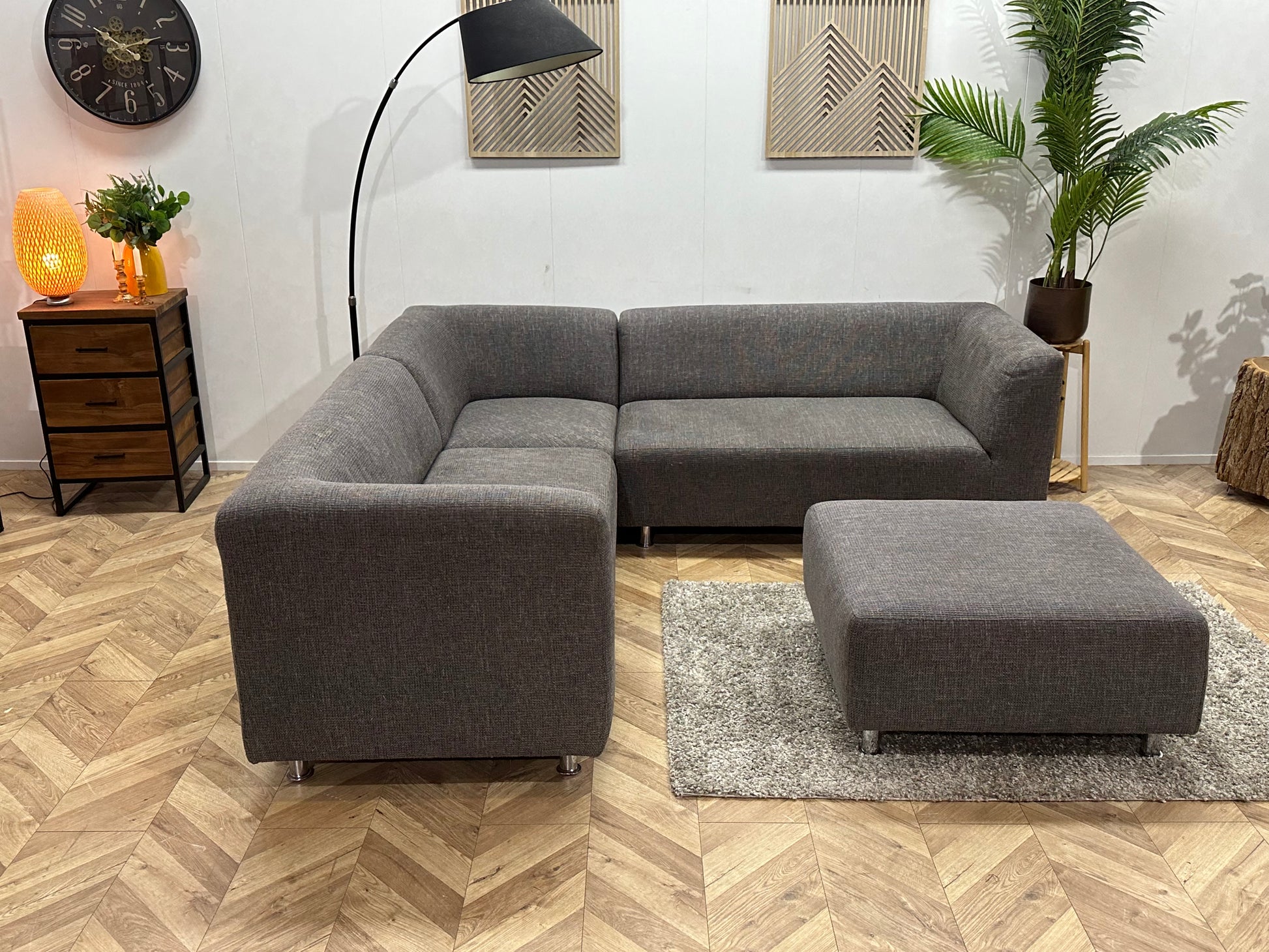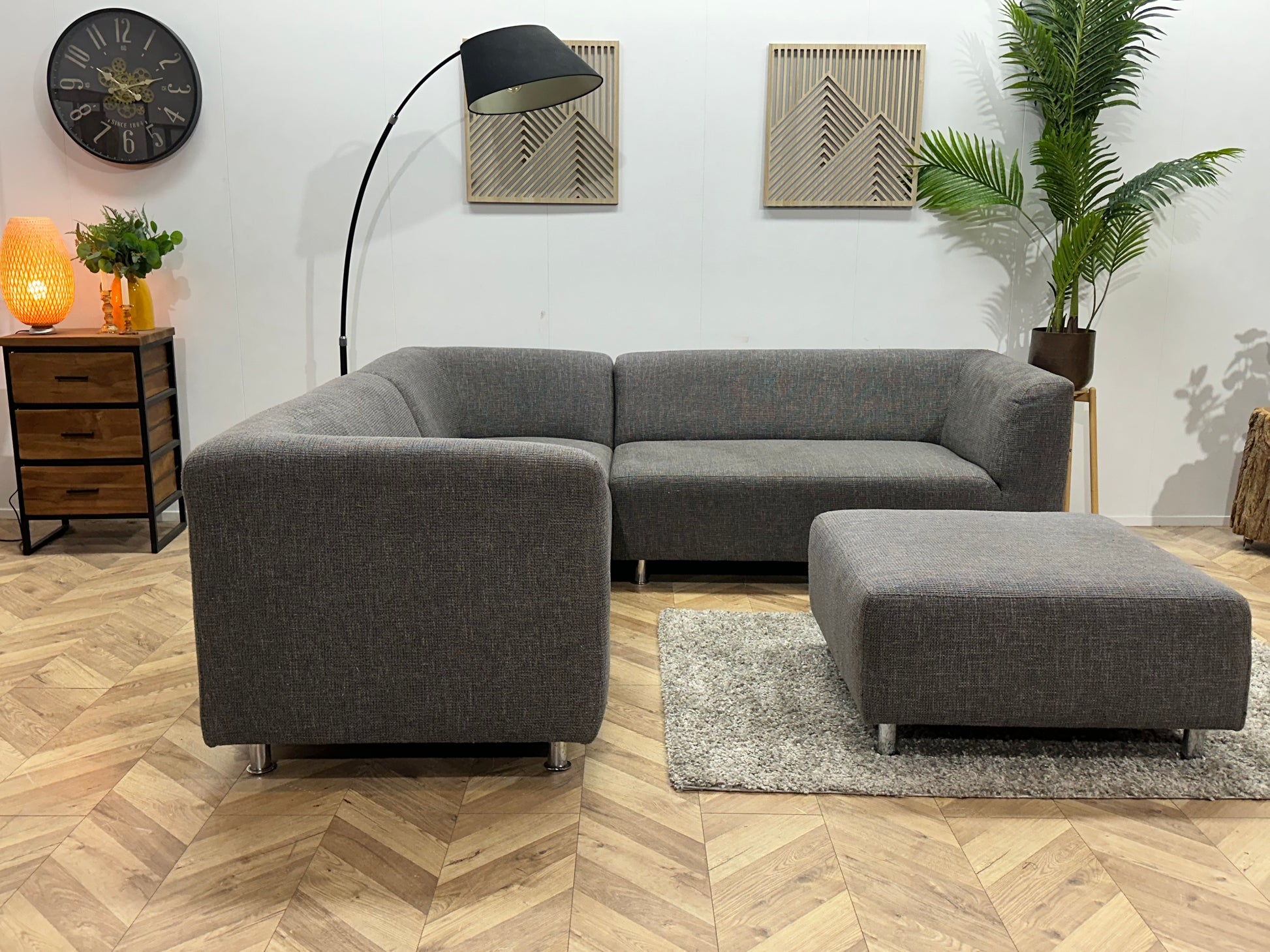 Grijze Hoekbank Inc Hocker ~ Vaste Kussens