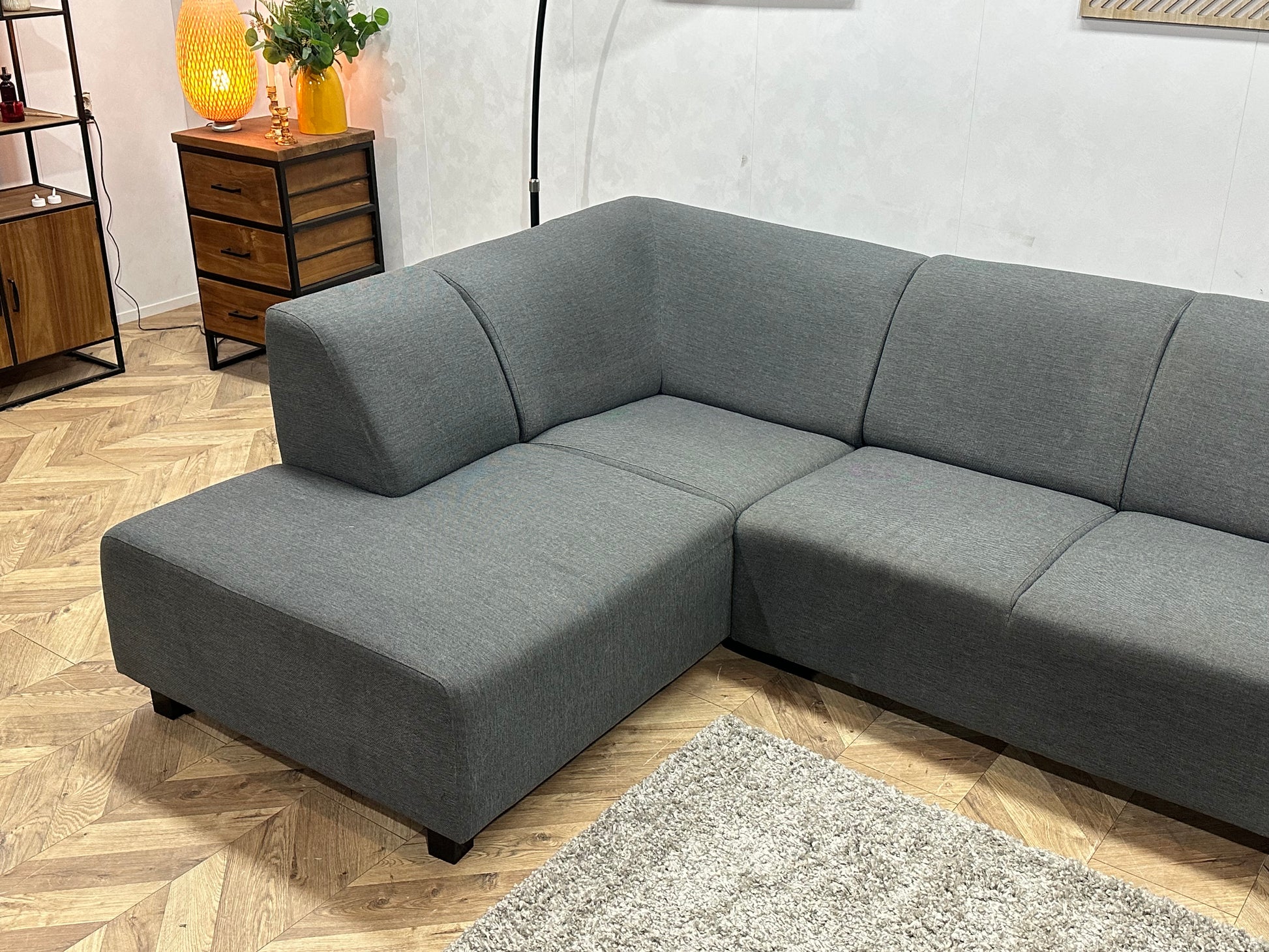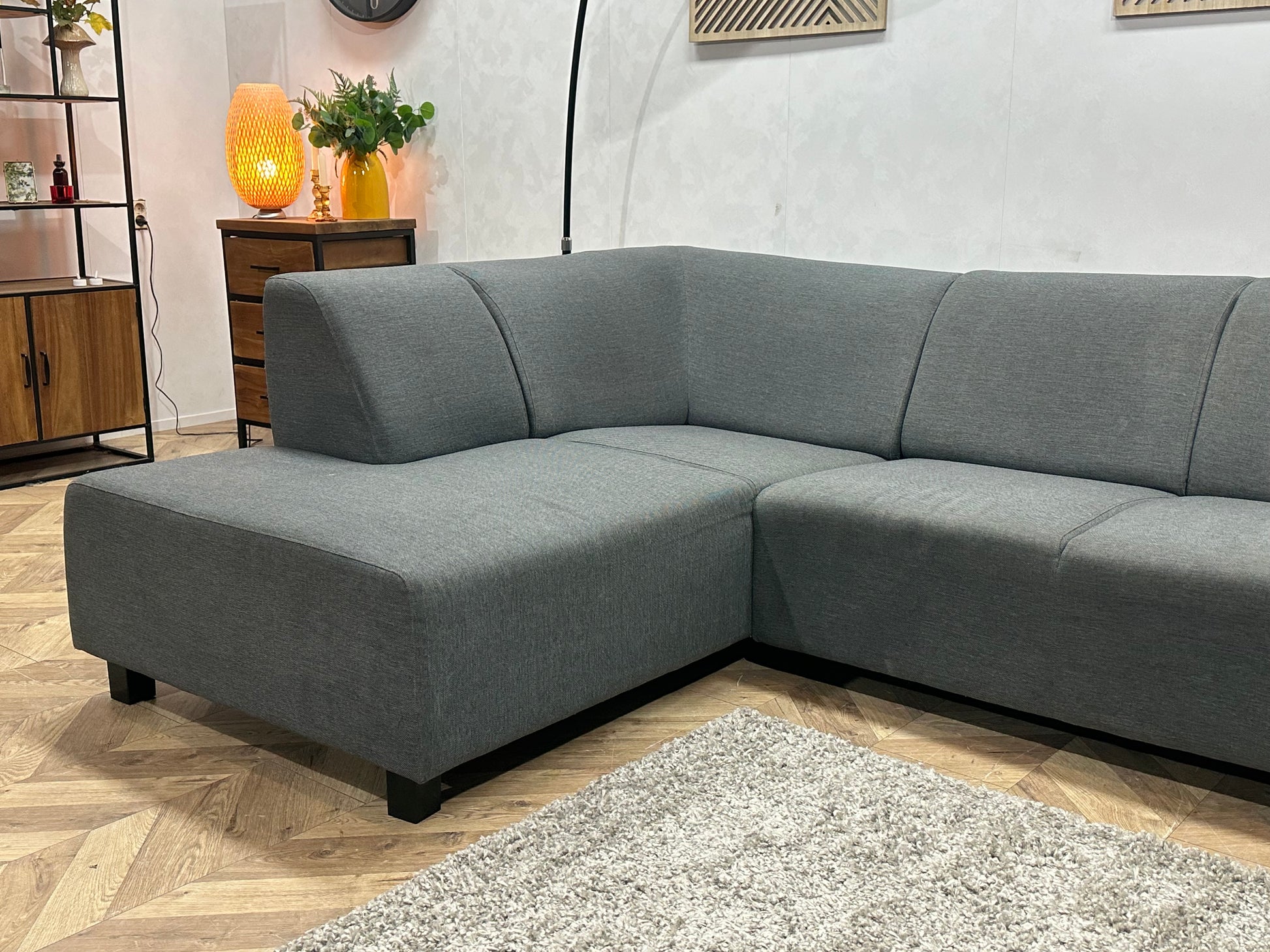 Grijze Hoekbank ~ Vaste Kussens