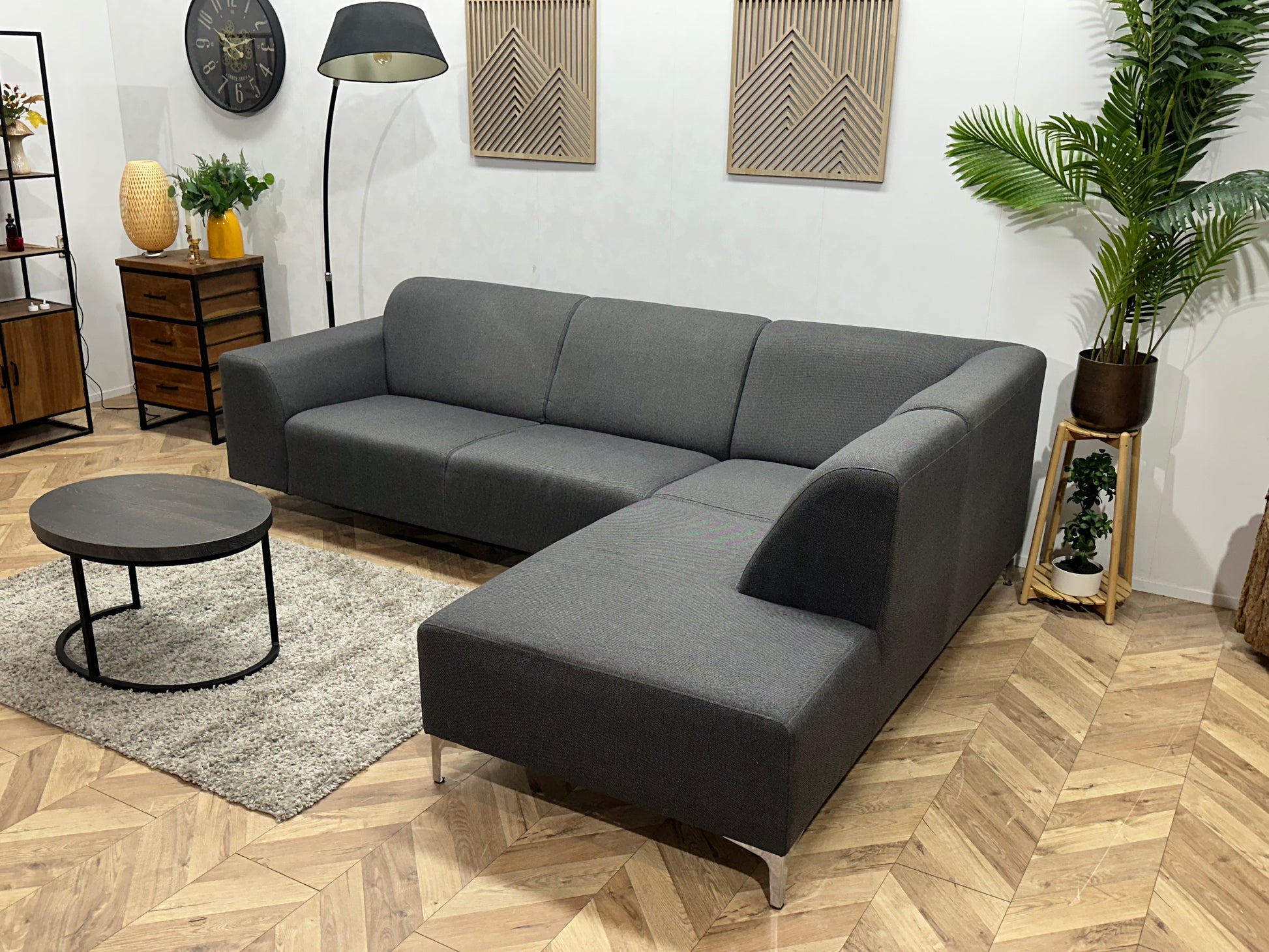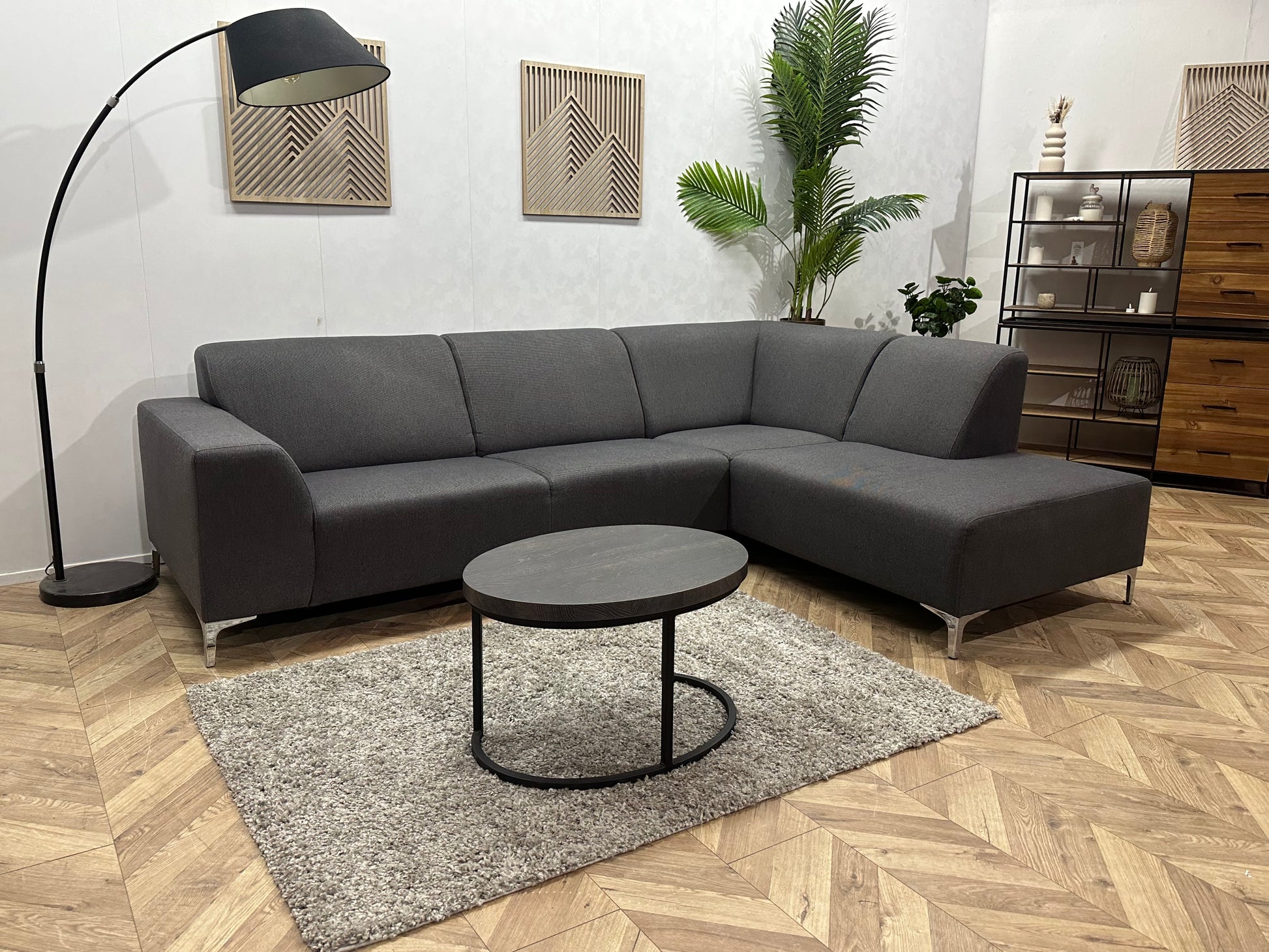 Grijze Hoekbank ~ Vaste Kussens
