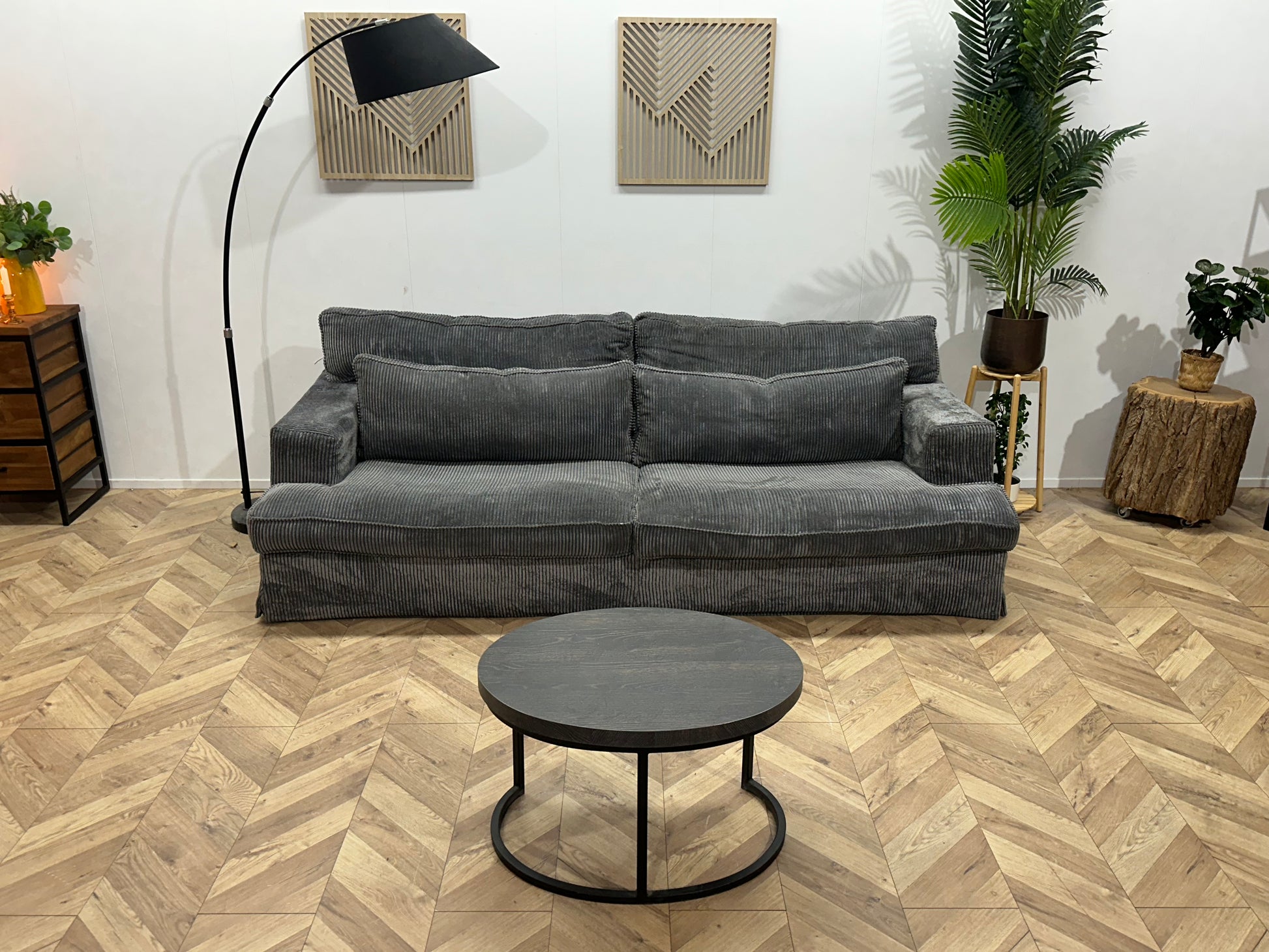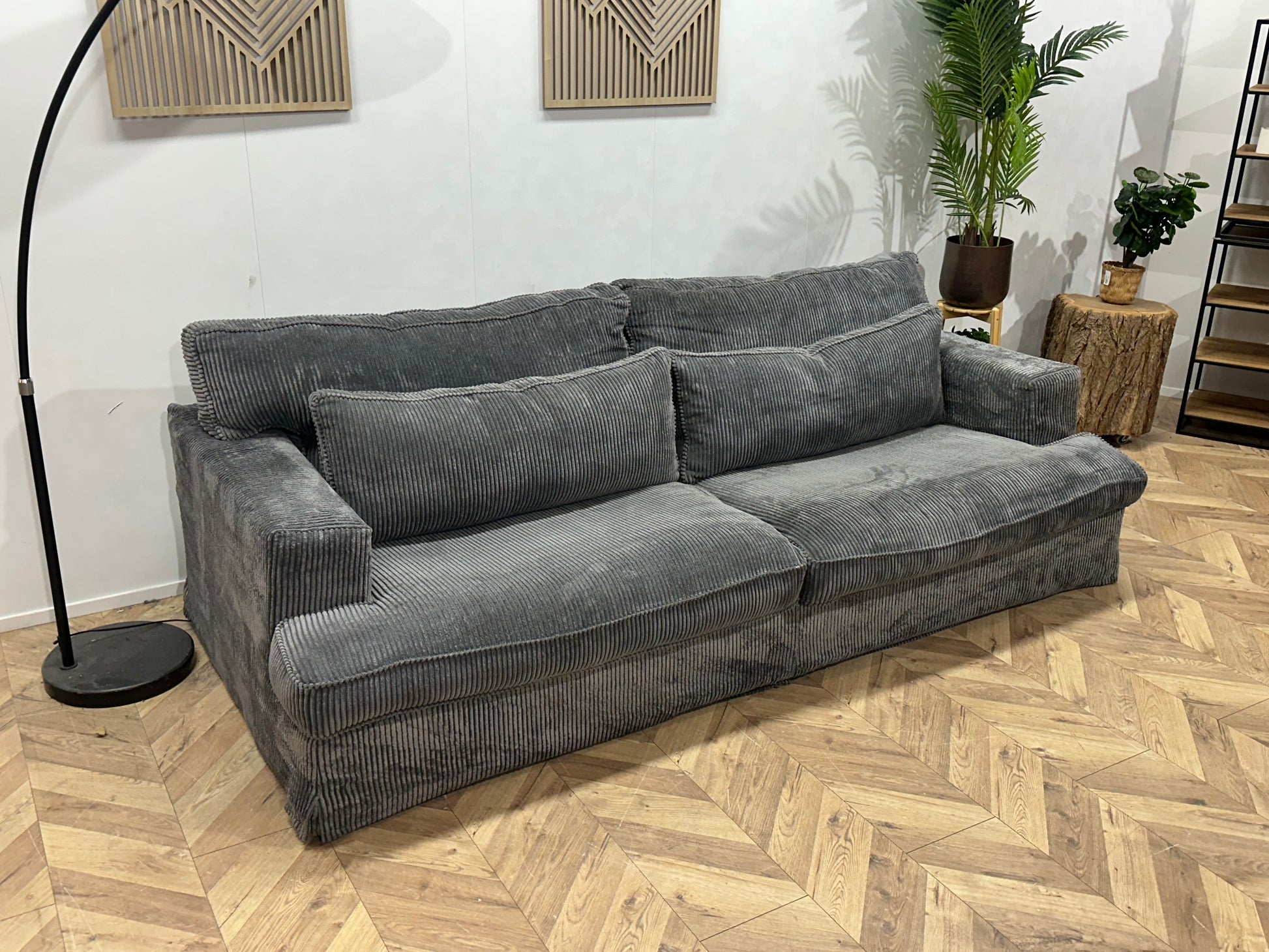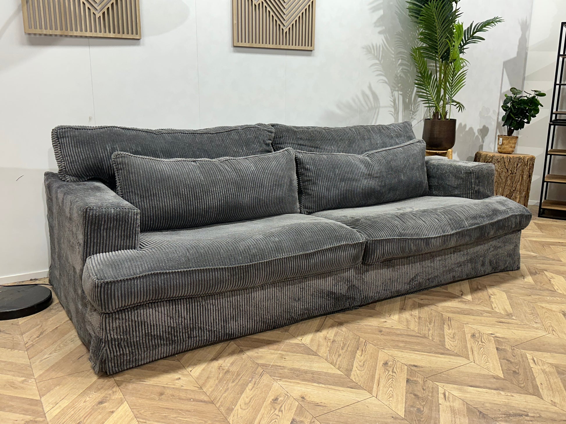 Grijze Ribstof 2.5-Zits Bank ~ Losse Kussens Met Afneembare Hoezen