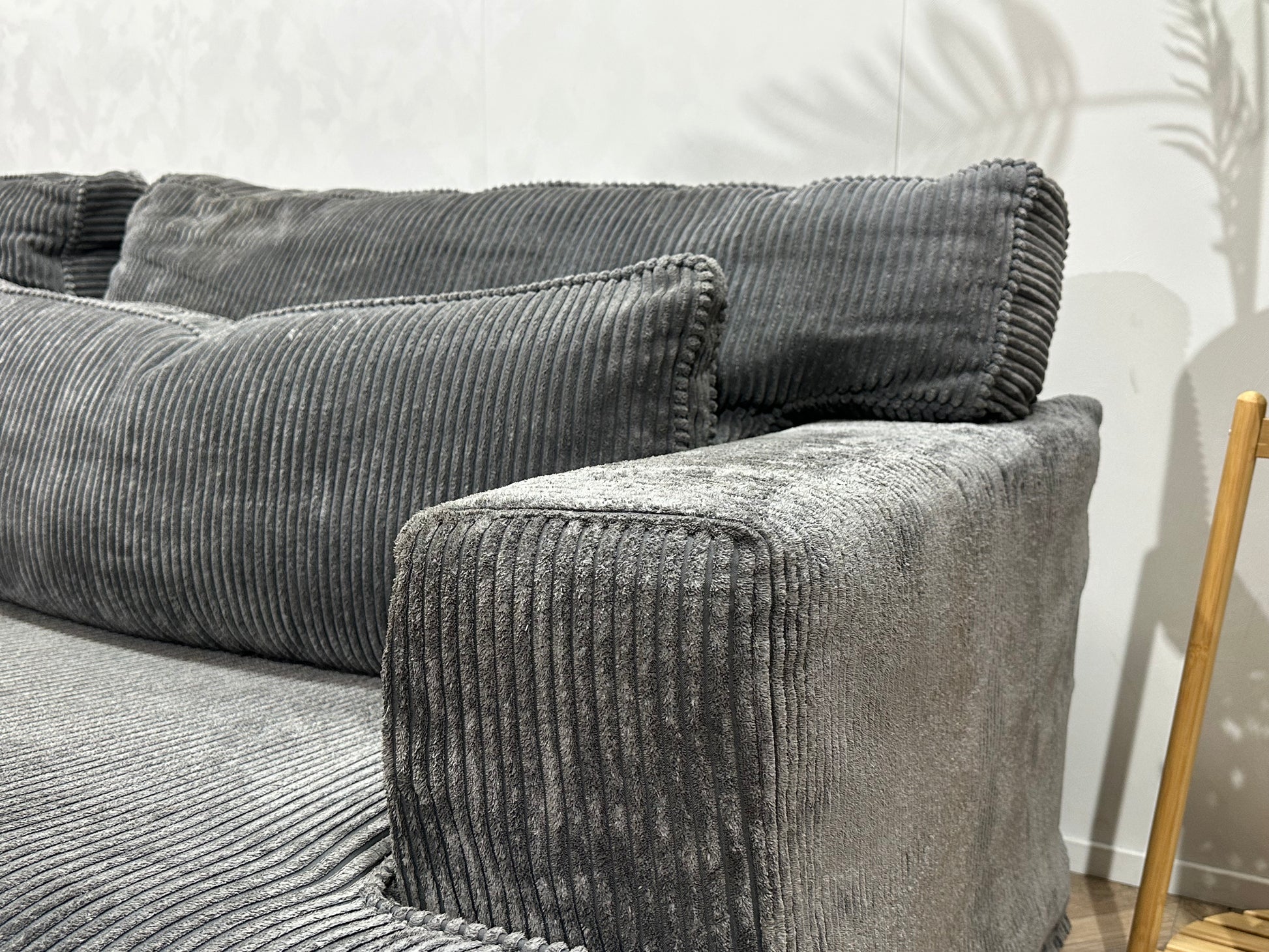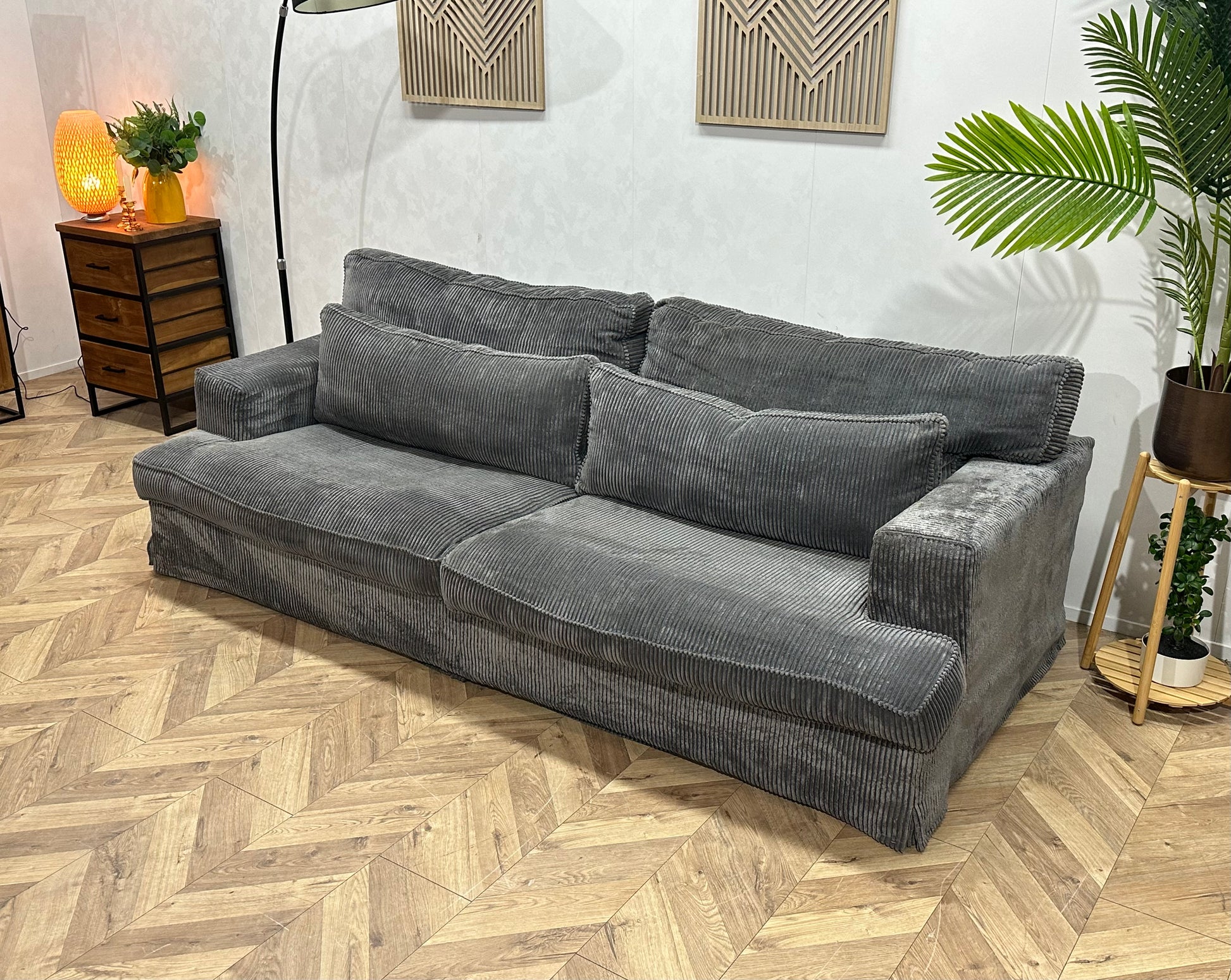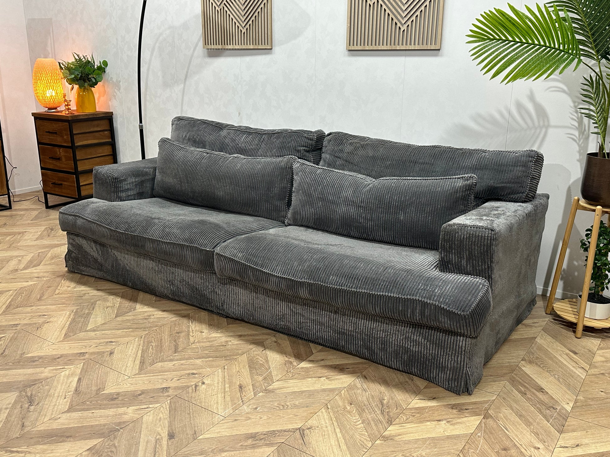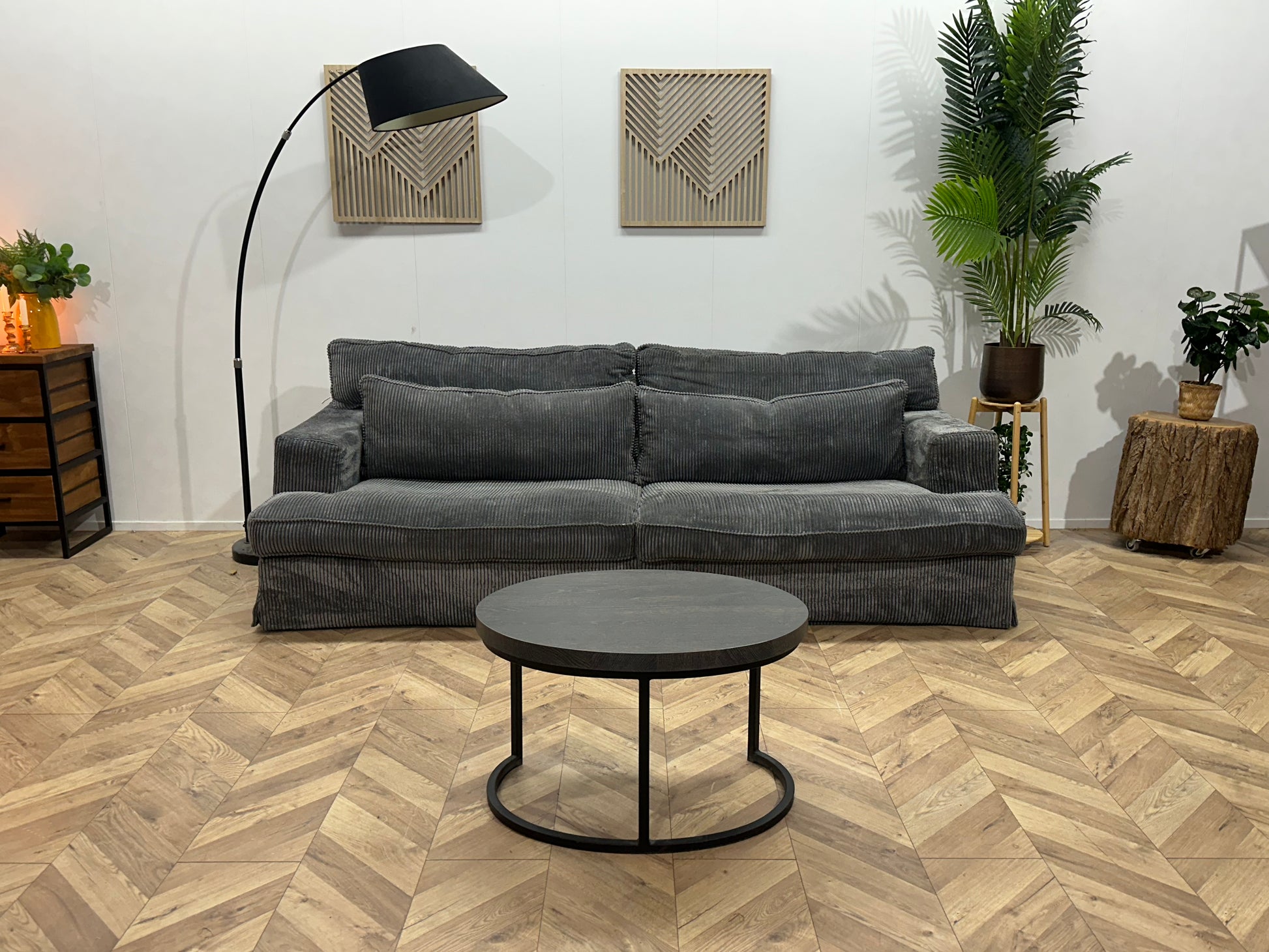 Grijze Ribstof 2.5-Zits Bank ~ Losse Kussens Met Afneembare Hoezen