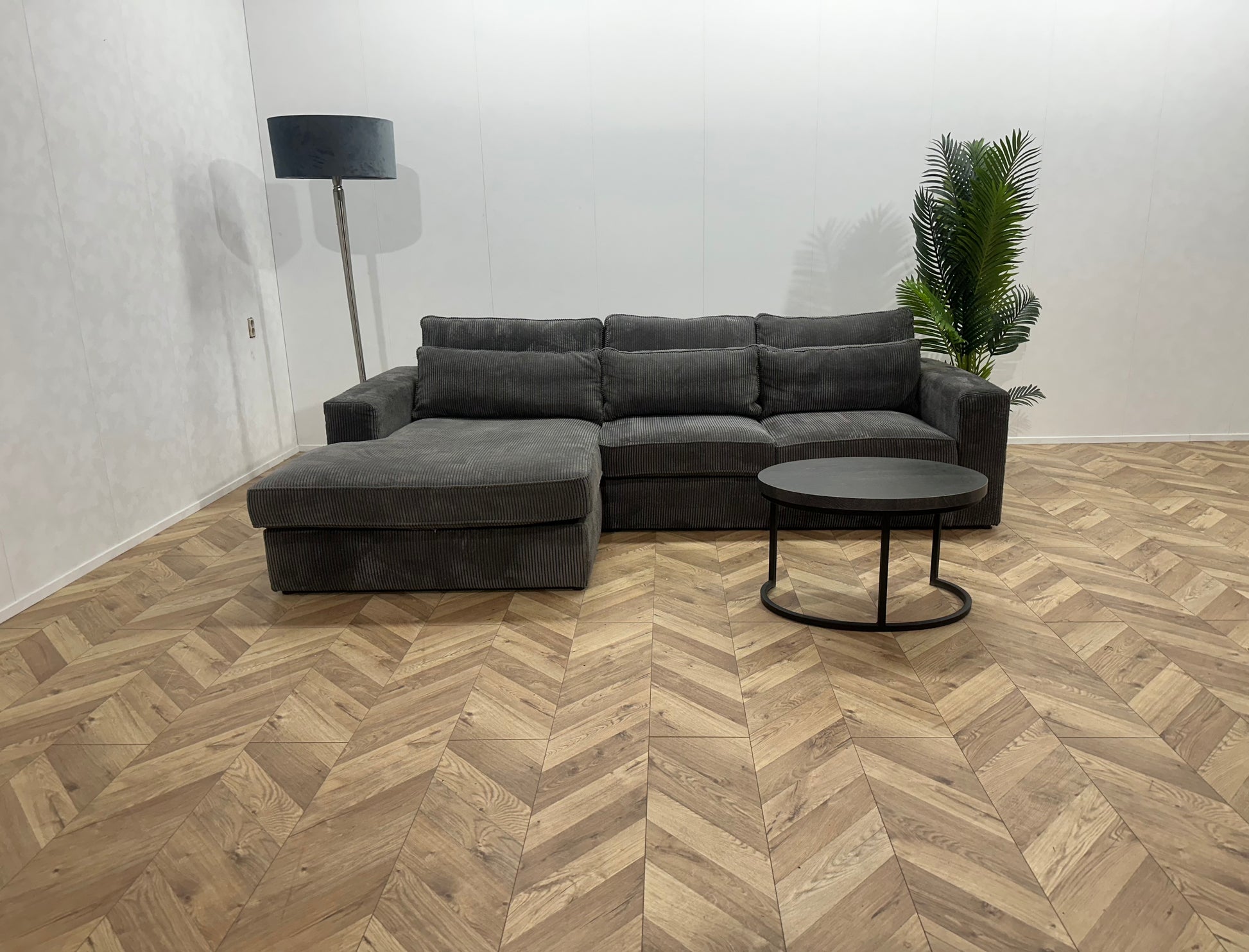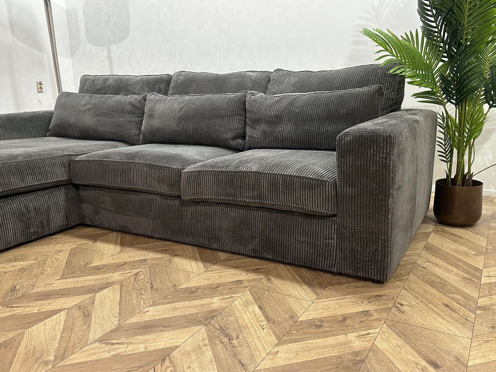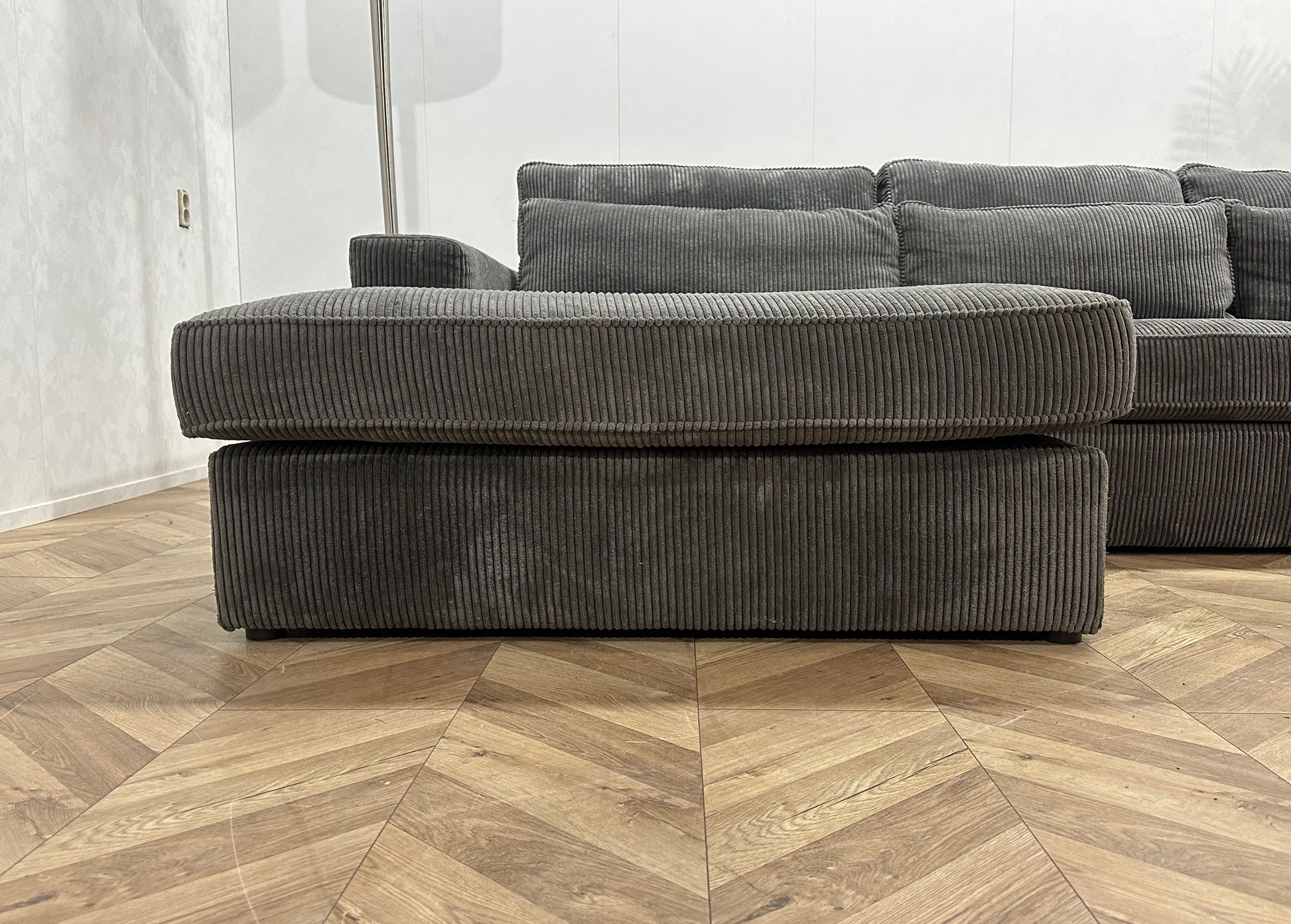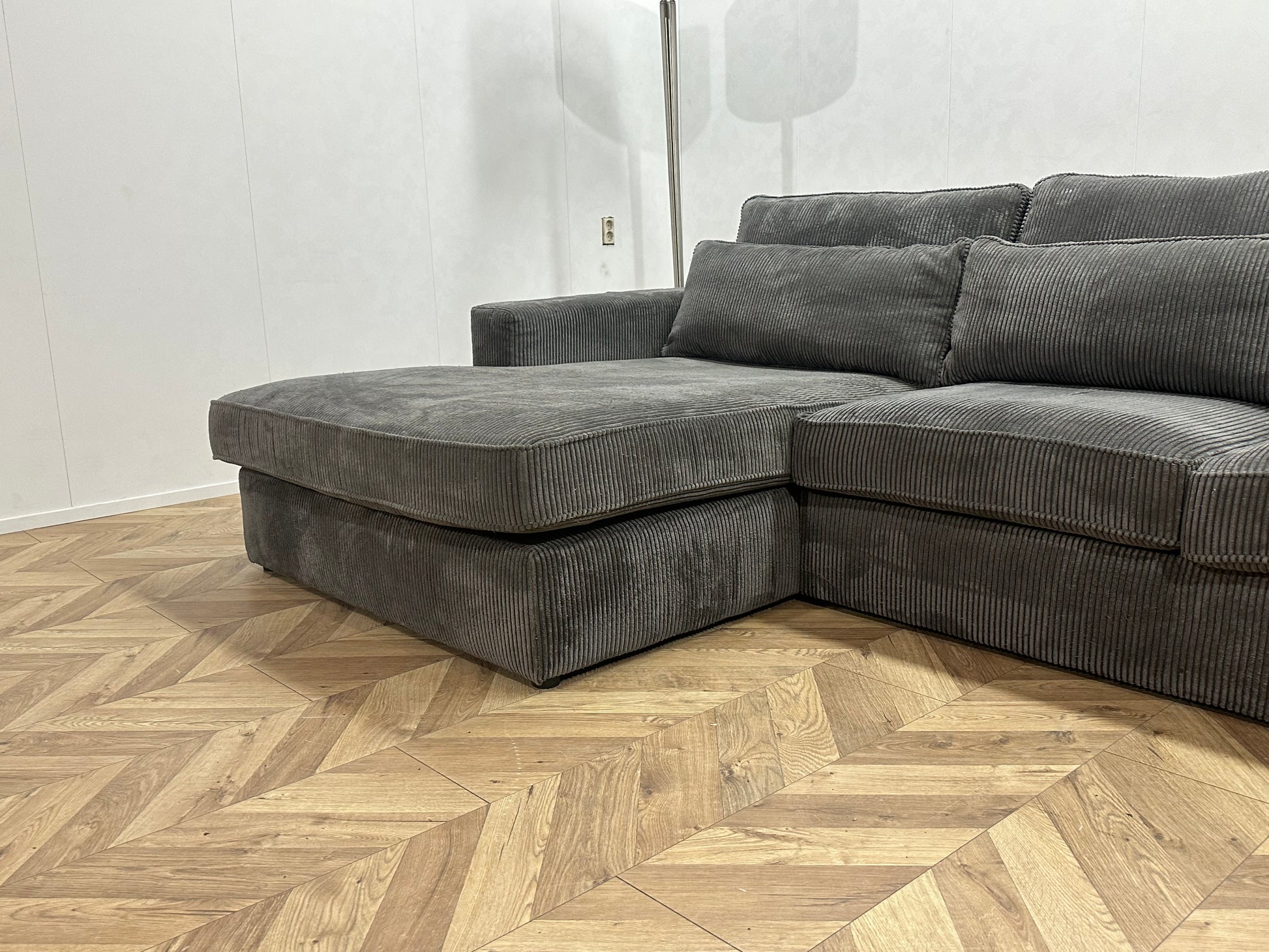 Grijze Ribstof Hoekbank ~ Losse Kussens Met Afneembare Hoezen