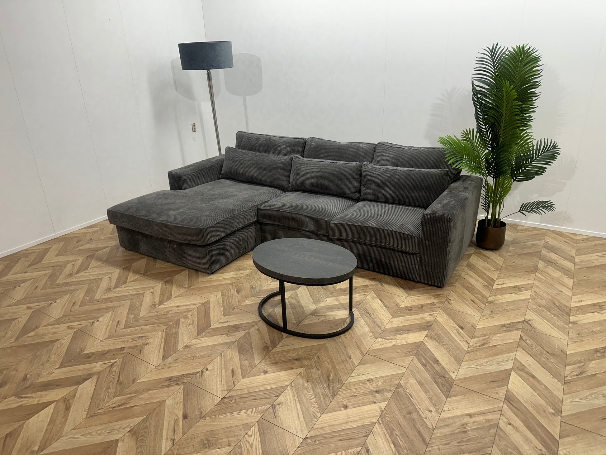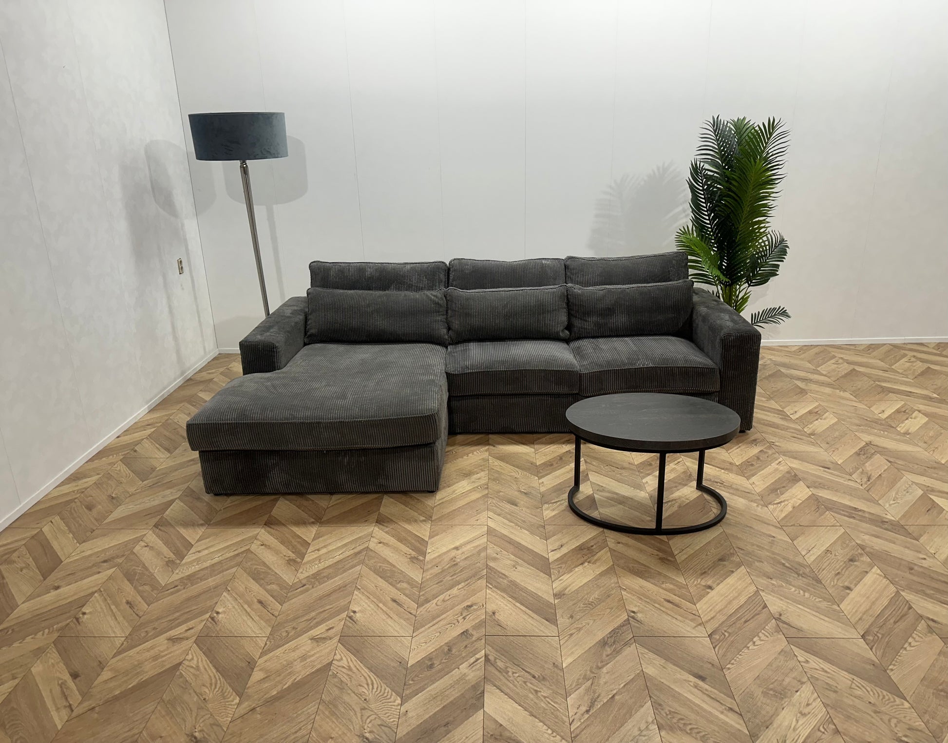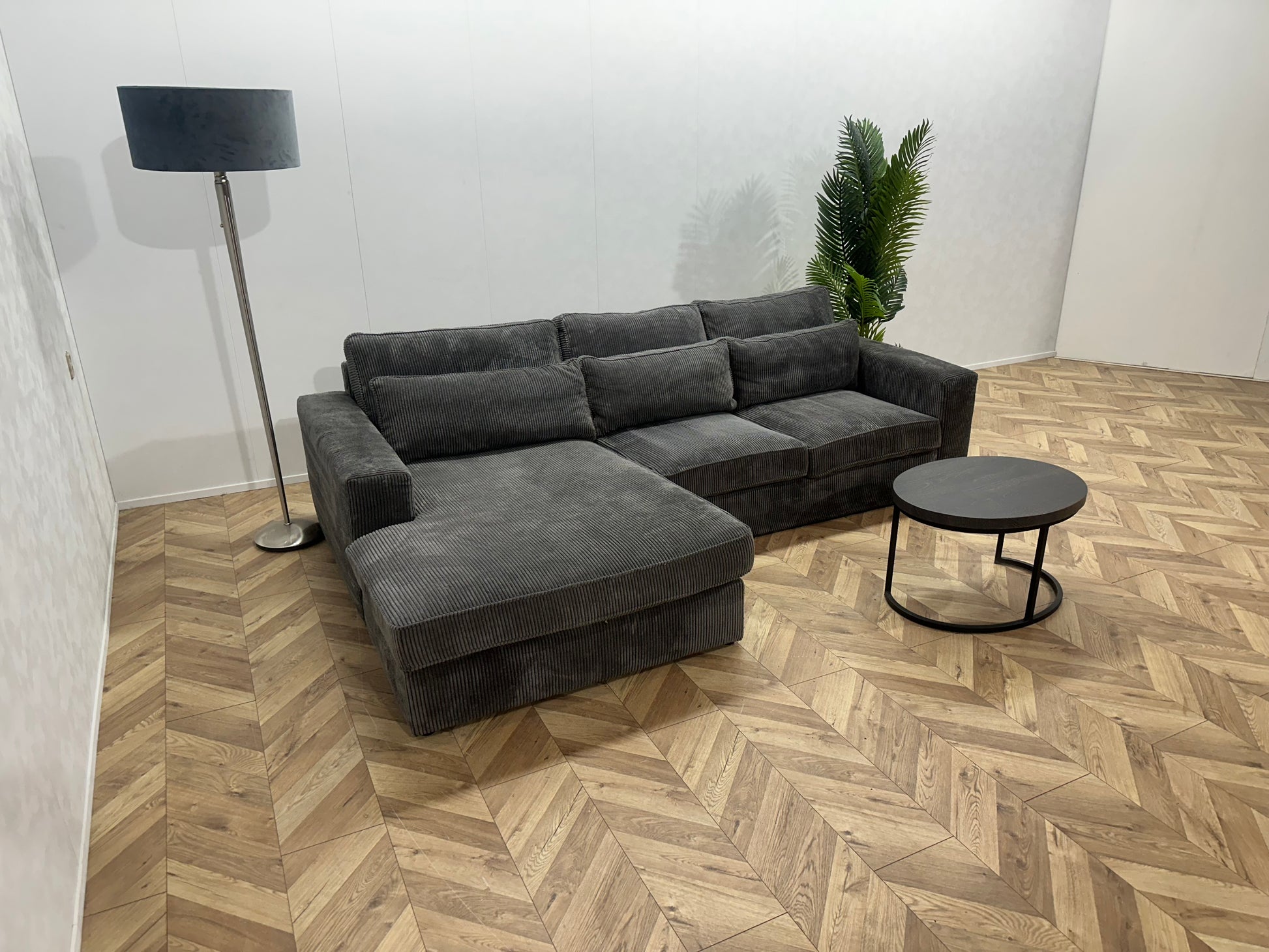 Grijze Ribstof Hoekbank ~ Losse Kussens Met Afneembare Hoezen