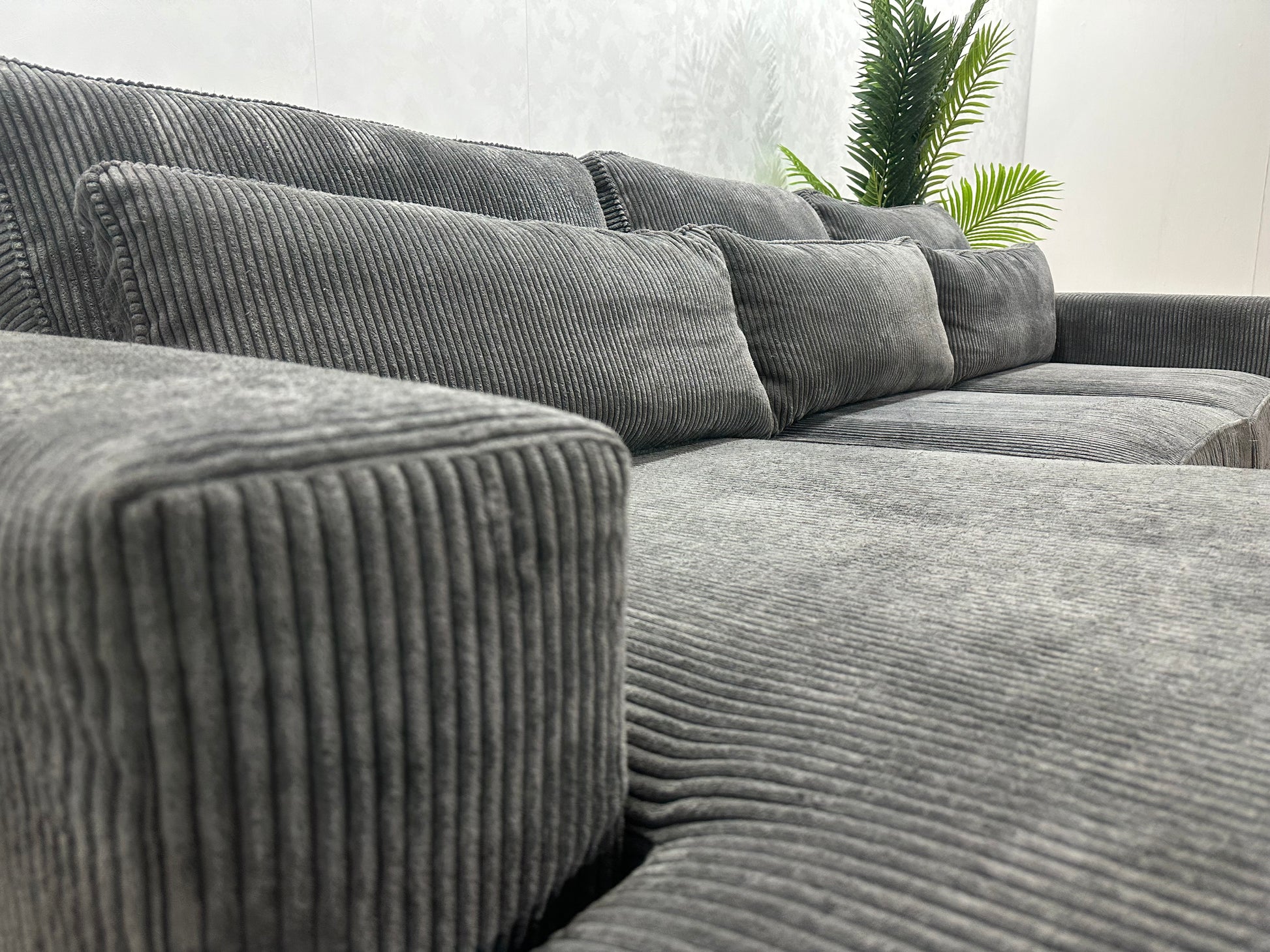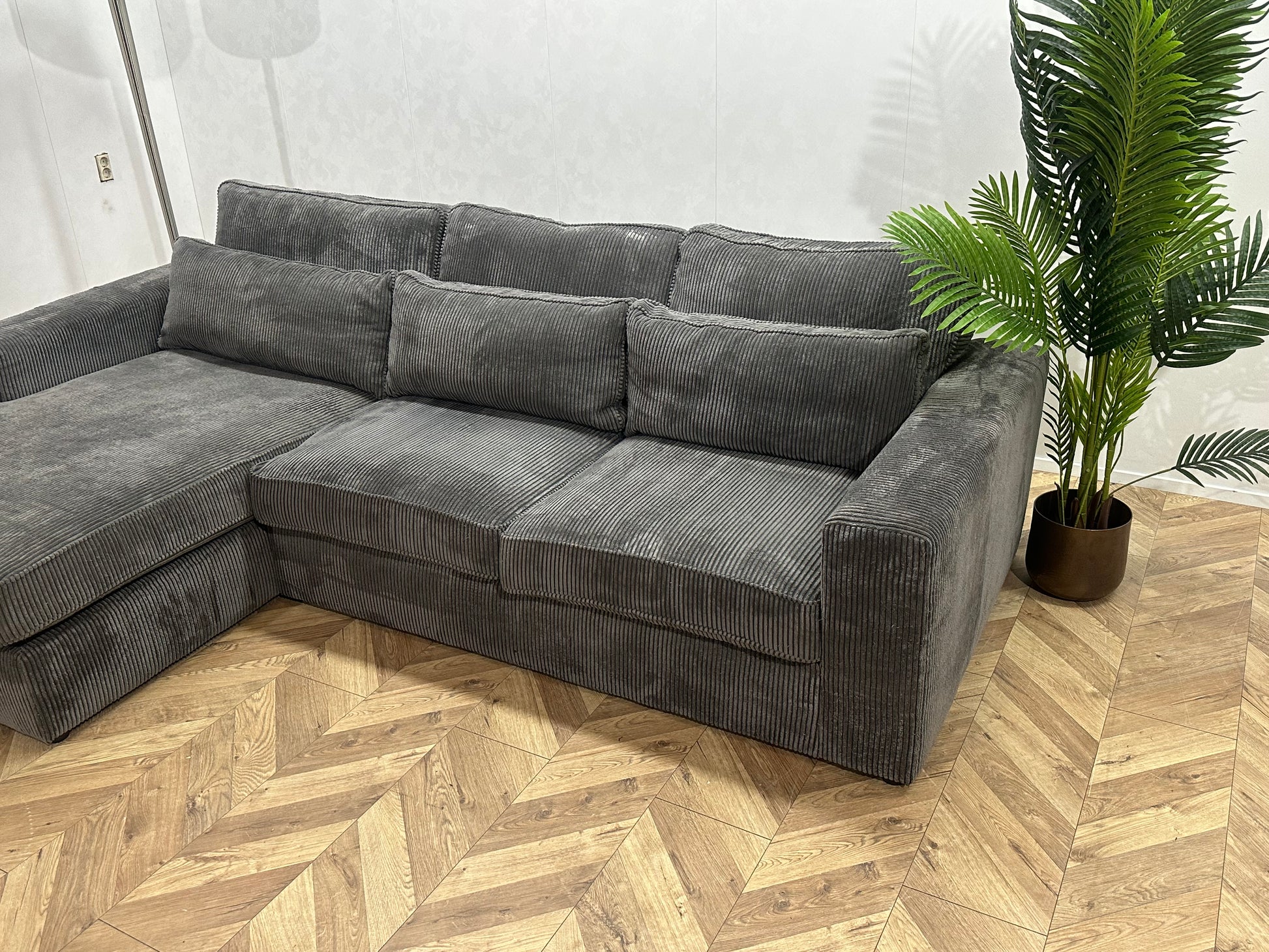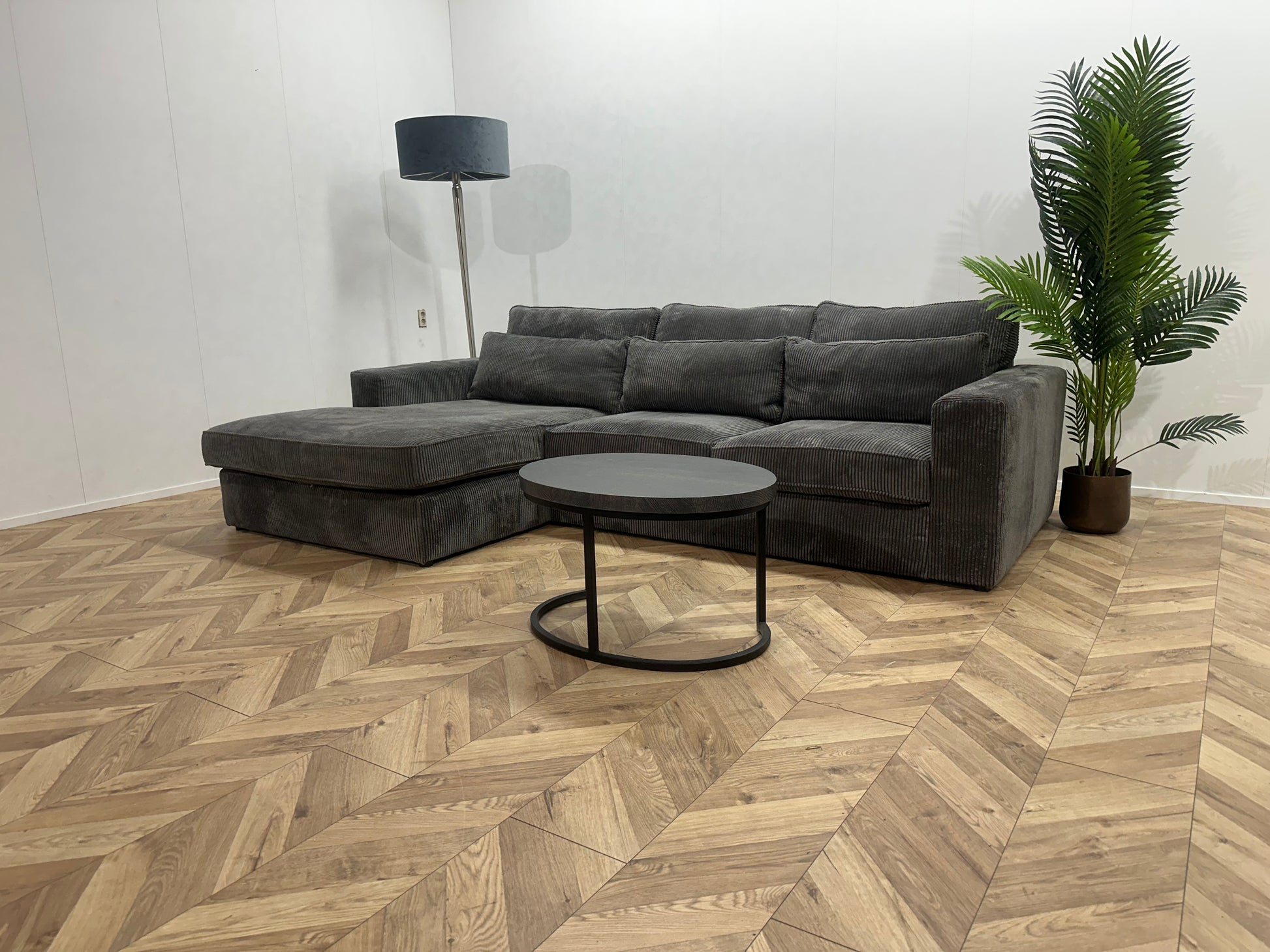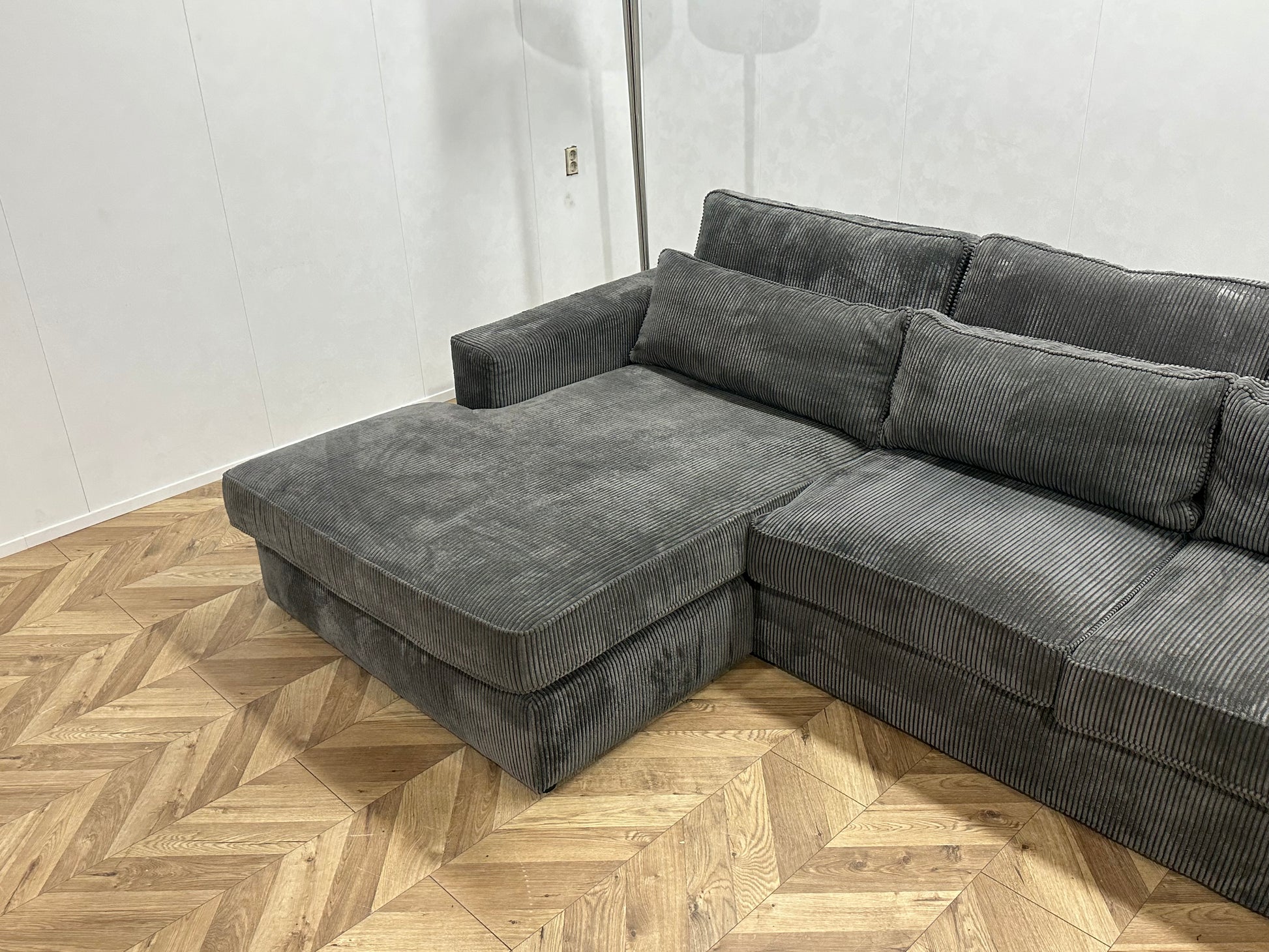 Grijze Ribstof Hoekbank ~ Losse Kussens Met Afneembare Hoezen