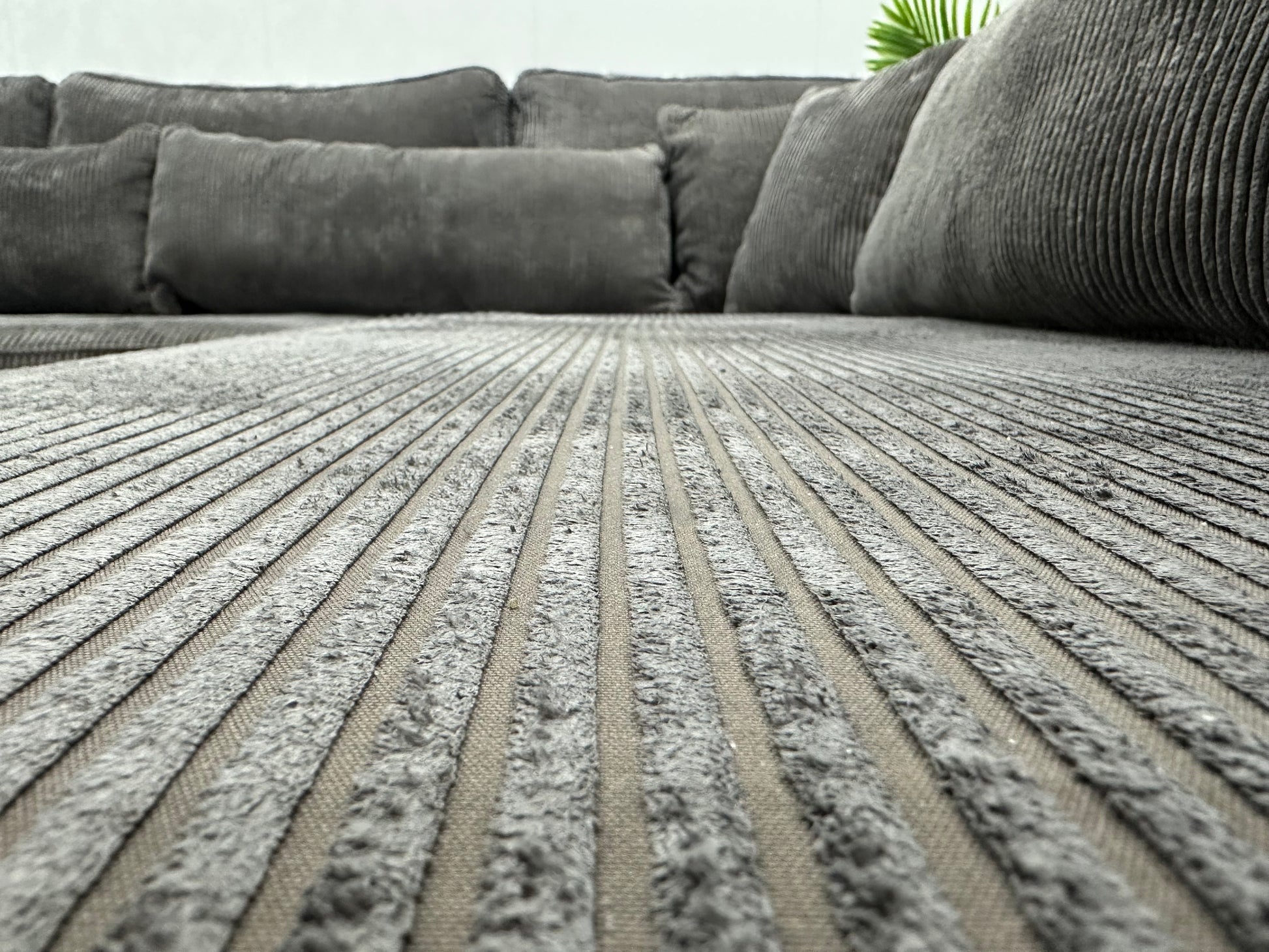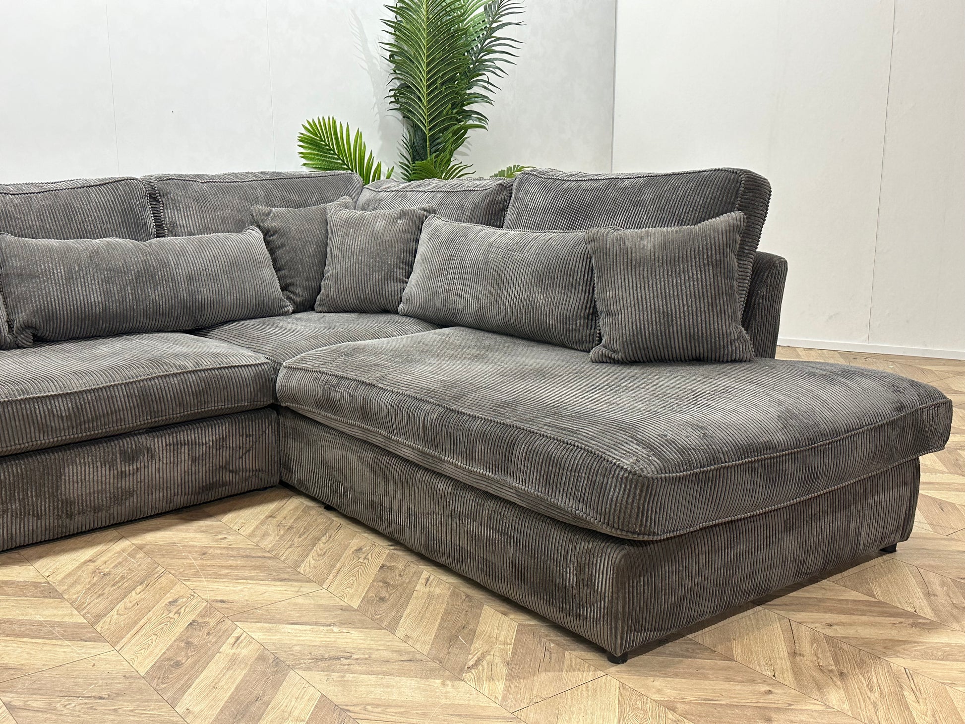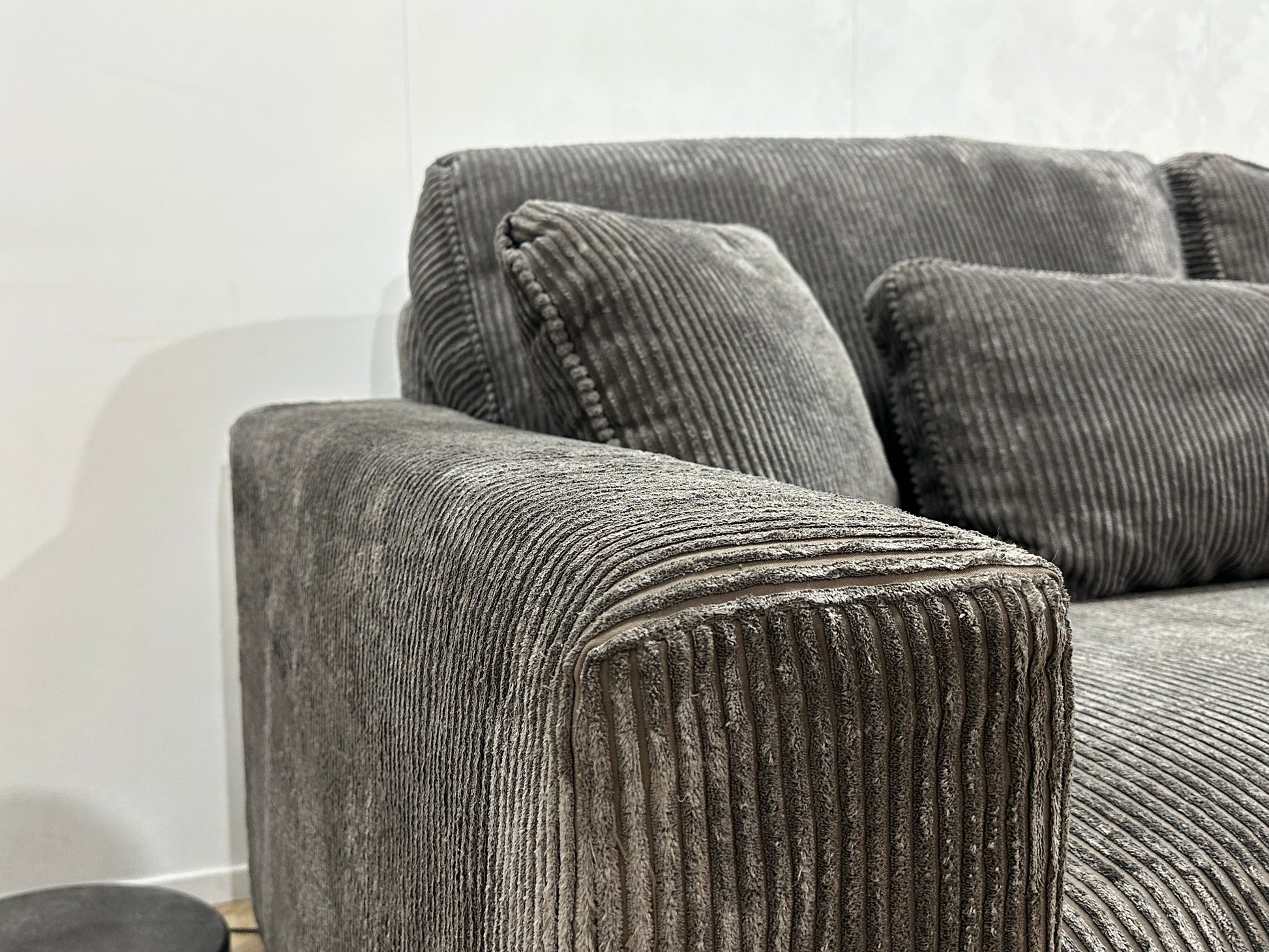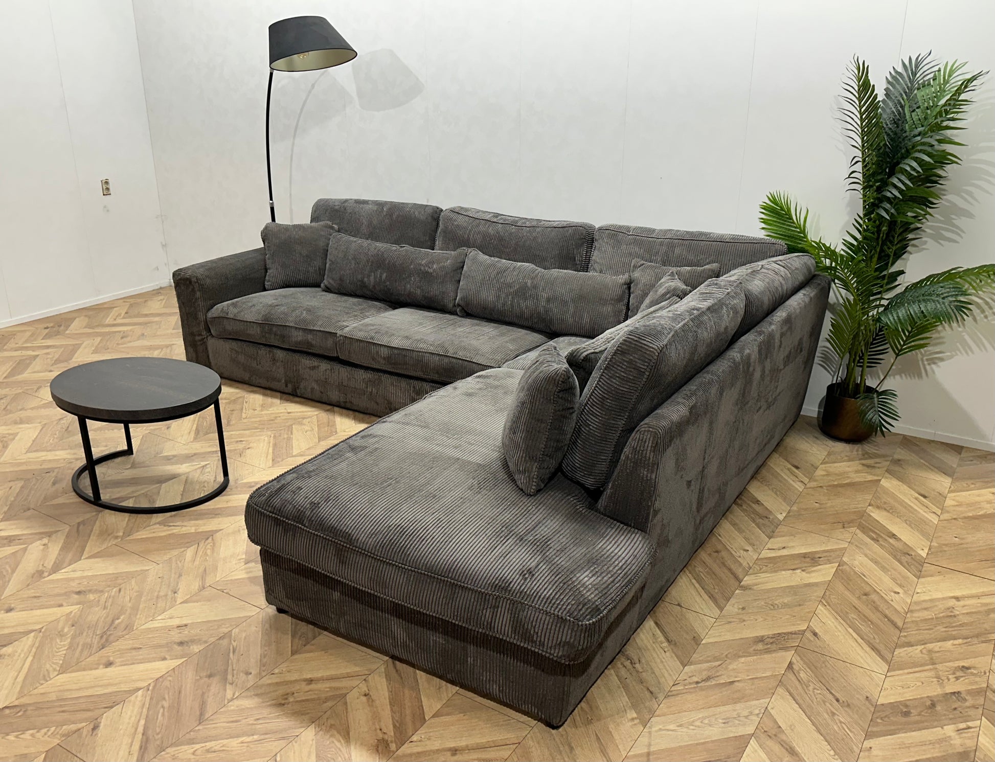 Grijze Ribstof Hoekbank ~ Losse Kussens Met Afneembare Hoezen