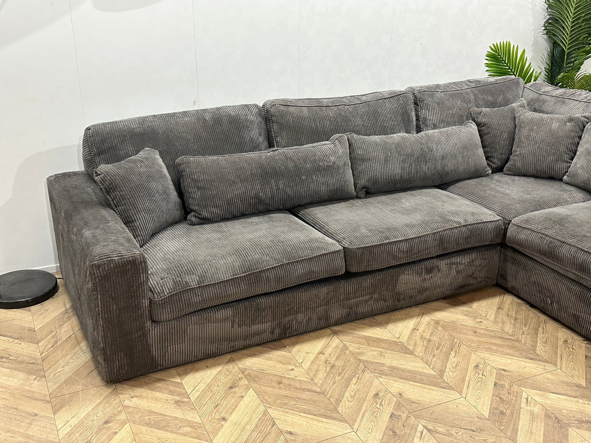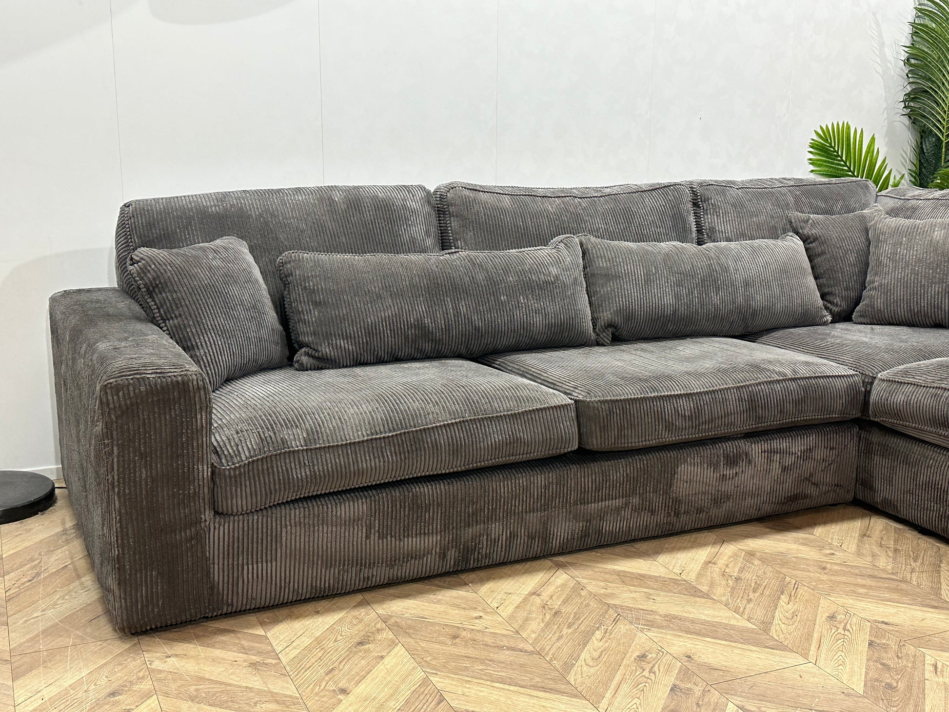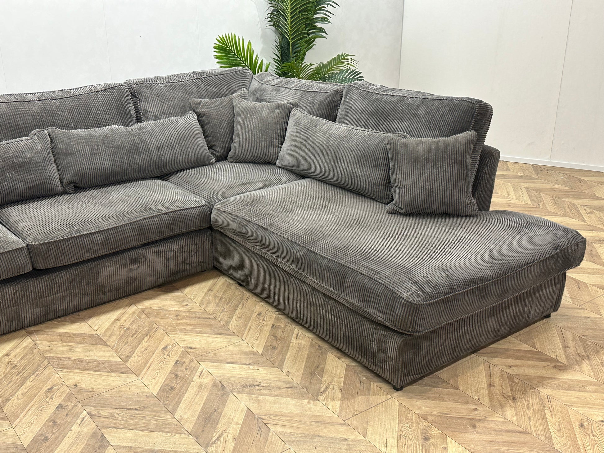 Grijze Ribstof Hoekbank ~ Losse Kussens Met Afneembare Hoezen