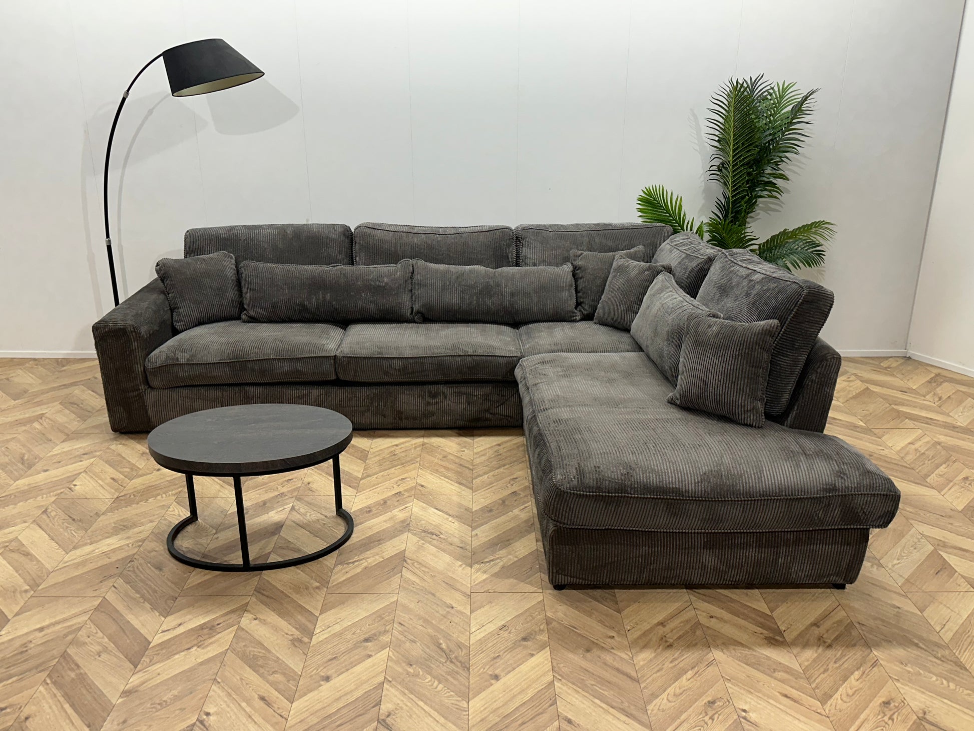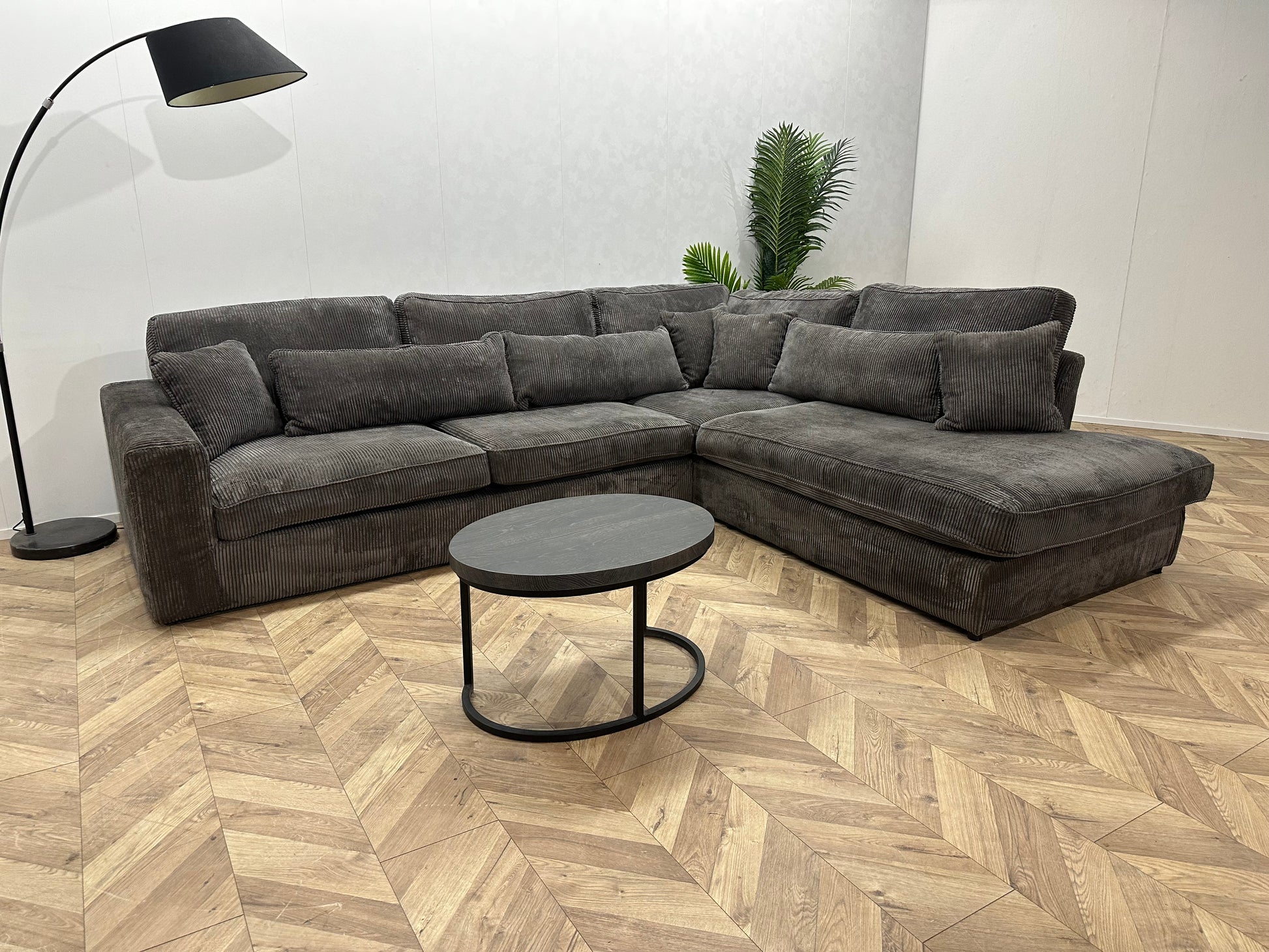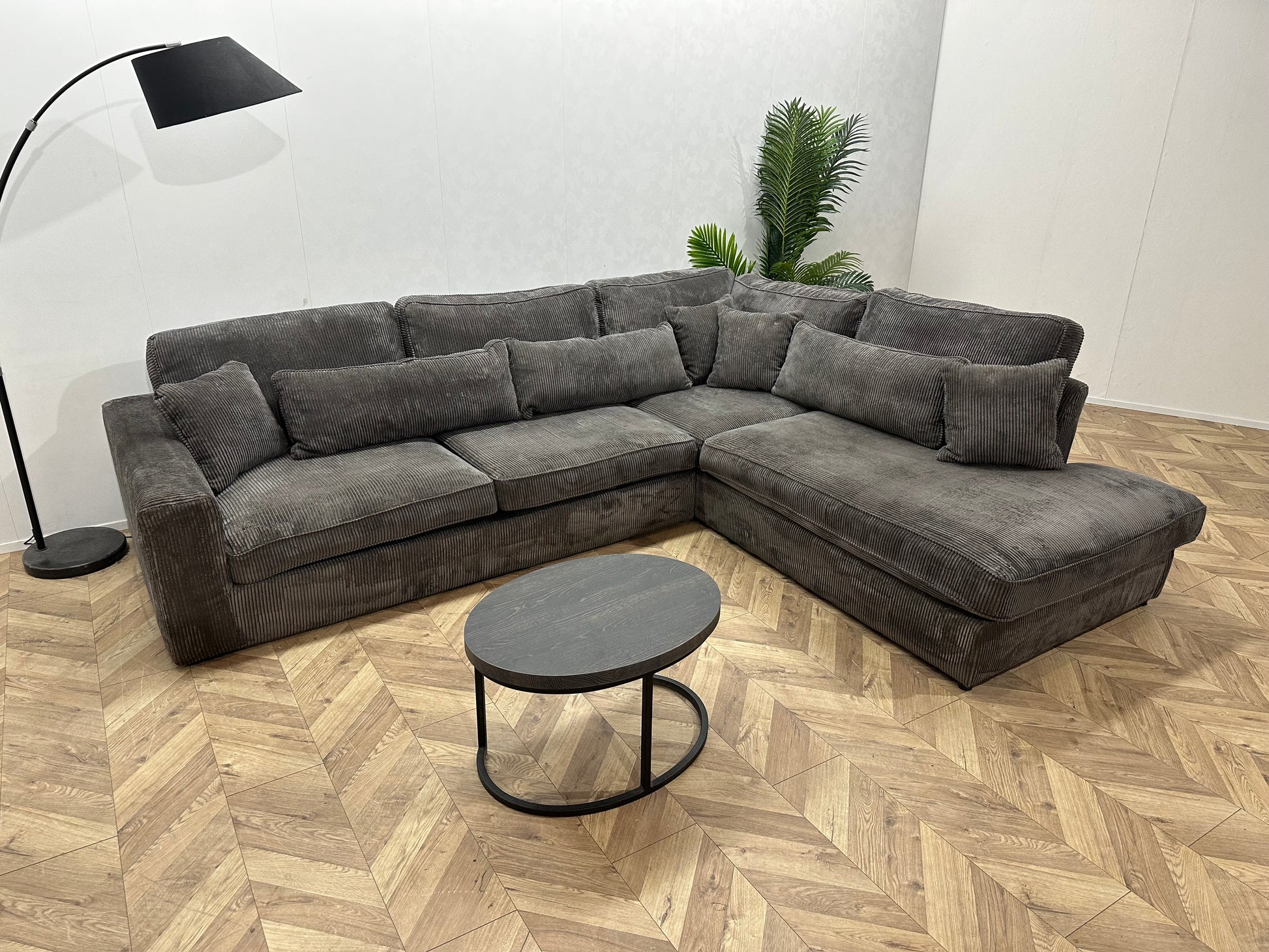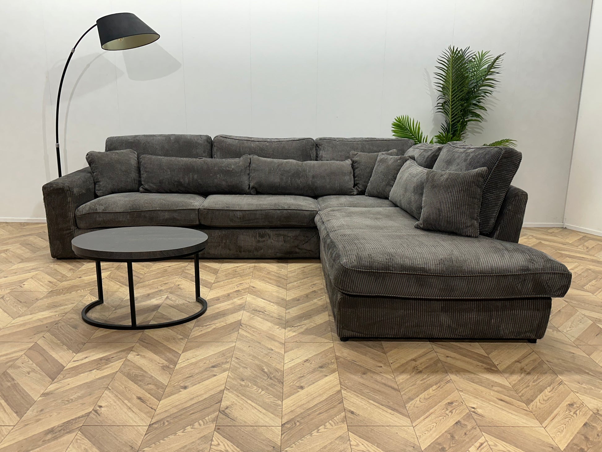 Grijze Ribstof Hoekbank ~ Losse Kussens Met Afneembare Hoezen