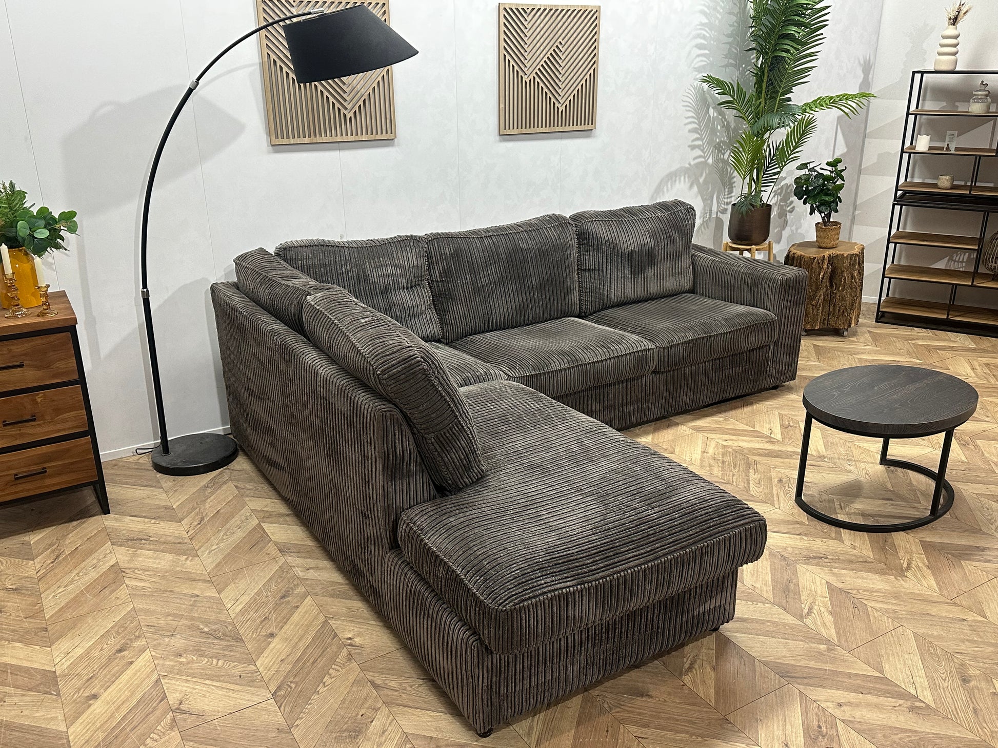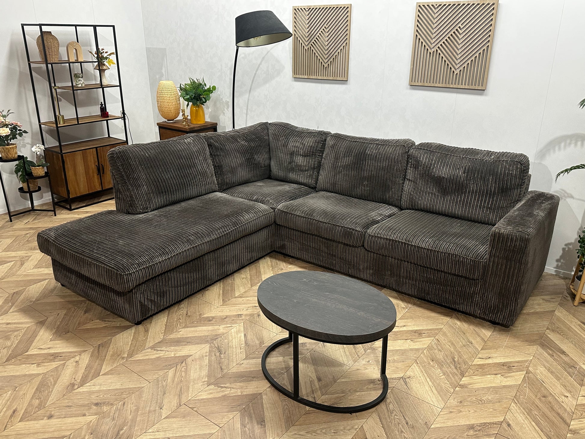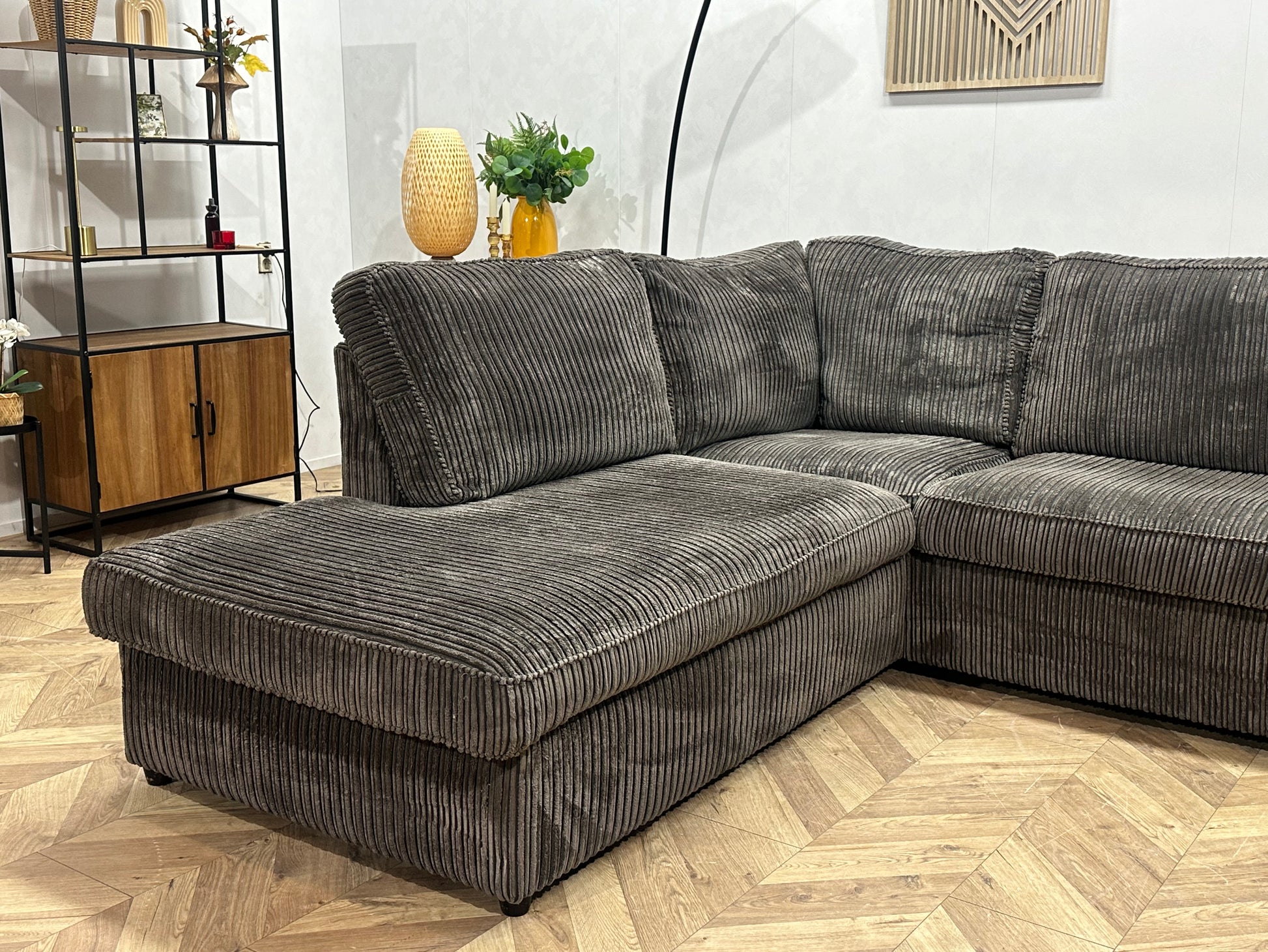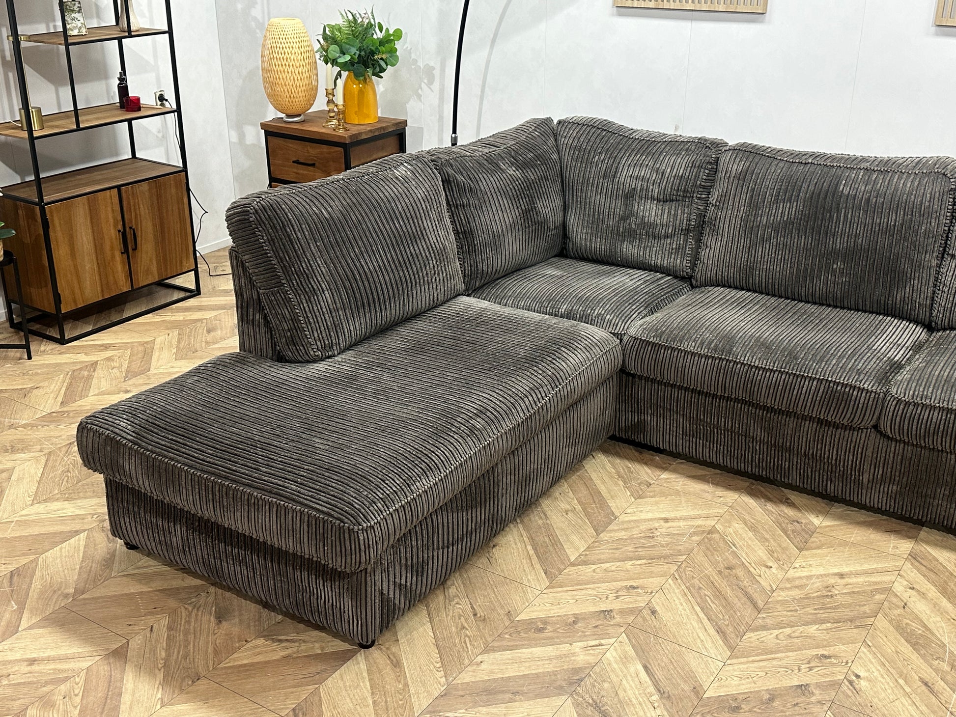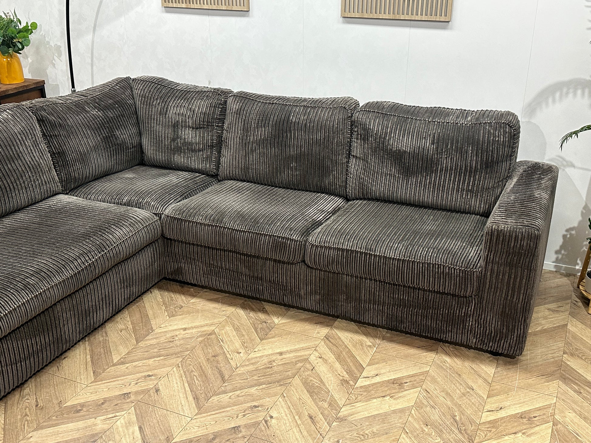 Grijze Ribstof Hoekbank ~ Losse Kussens Met Afneembare Hoezen
