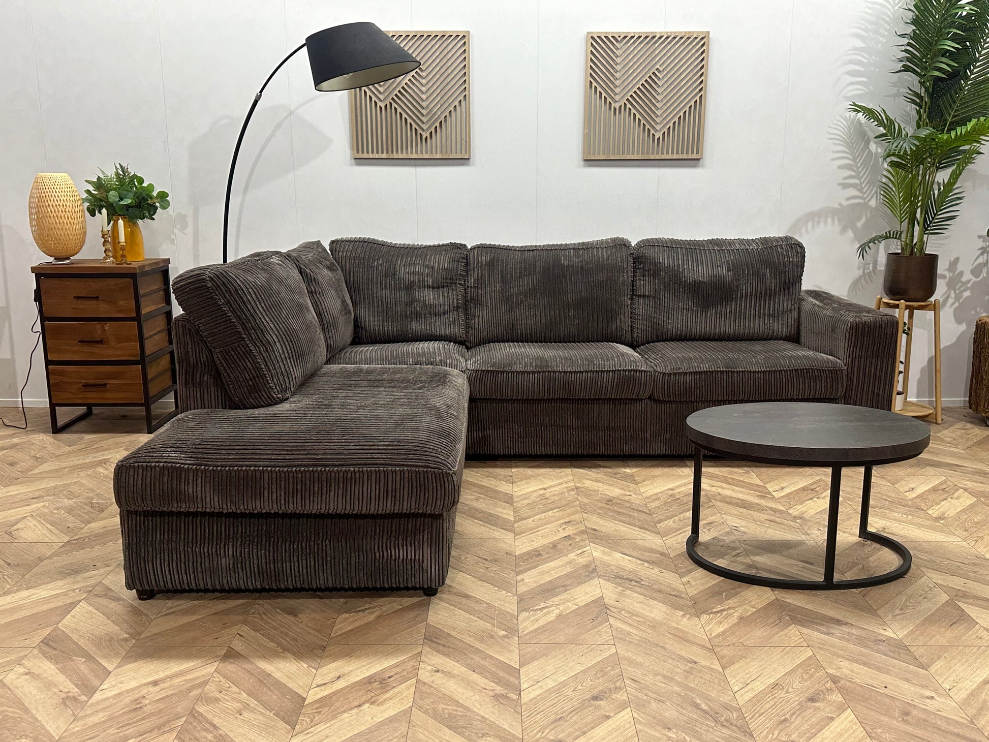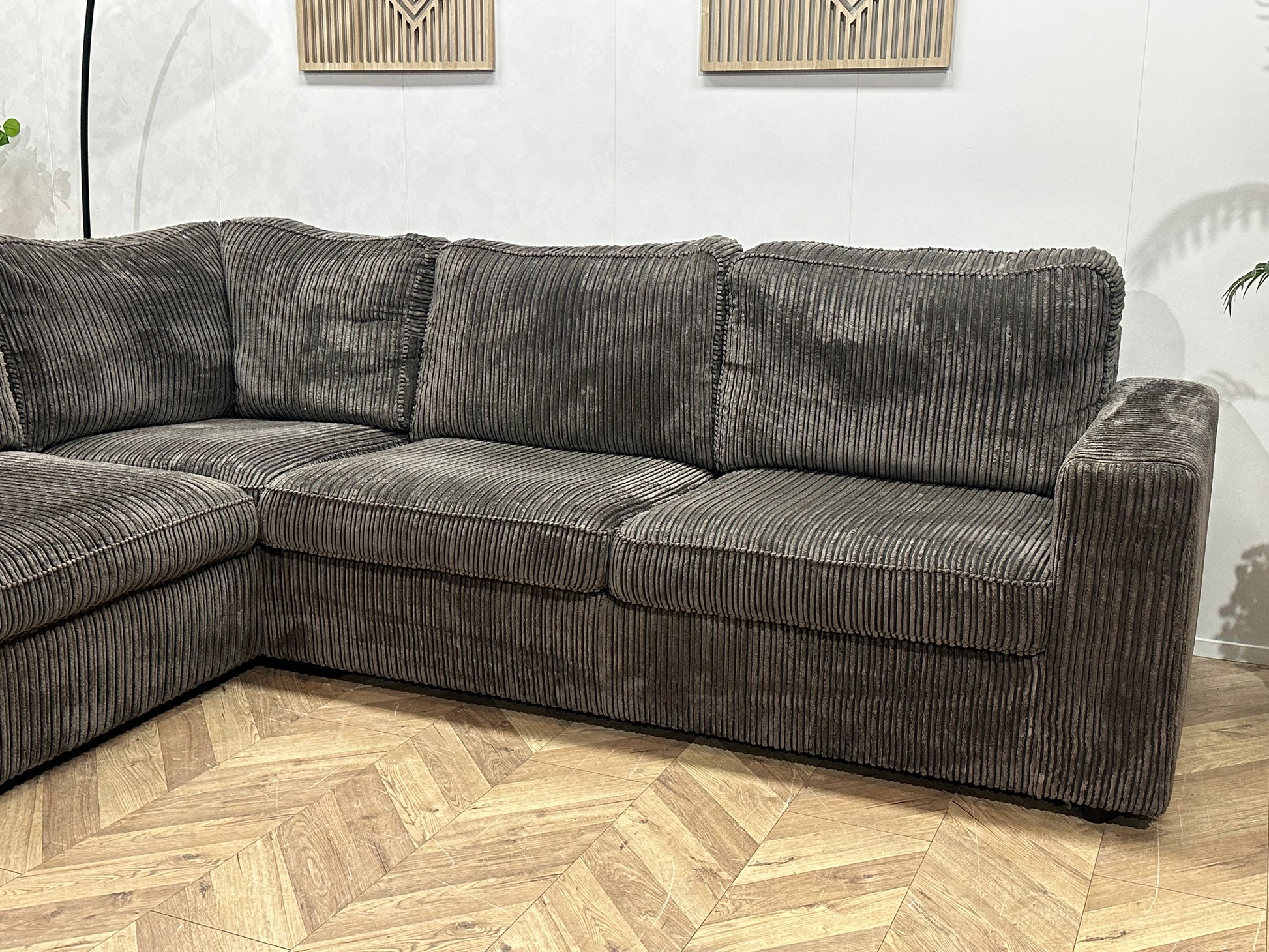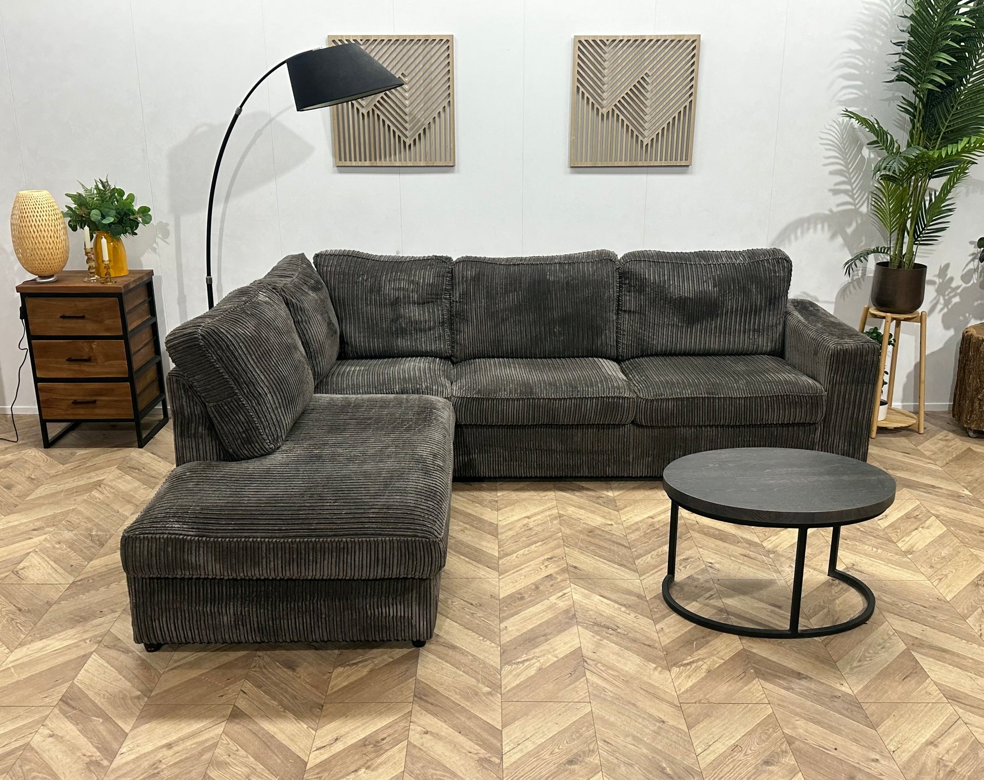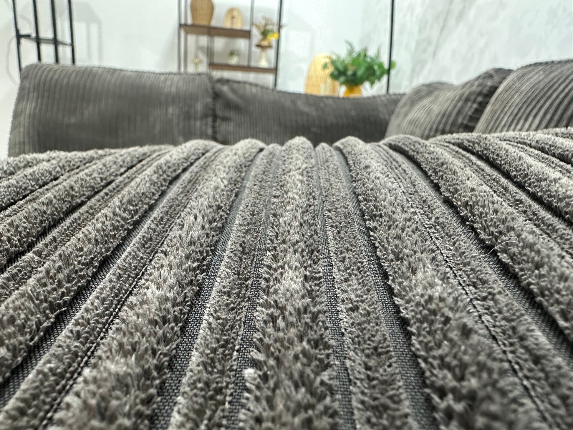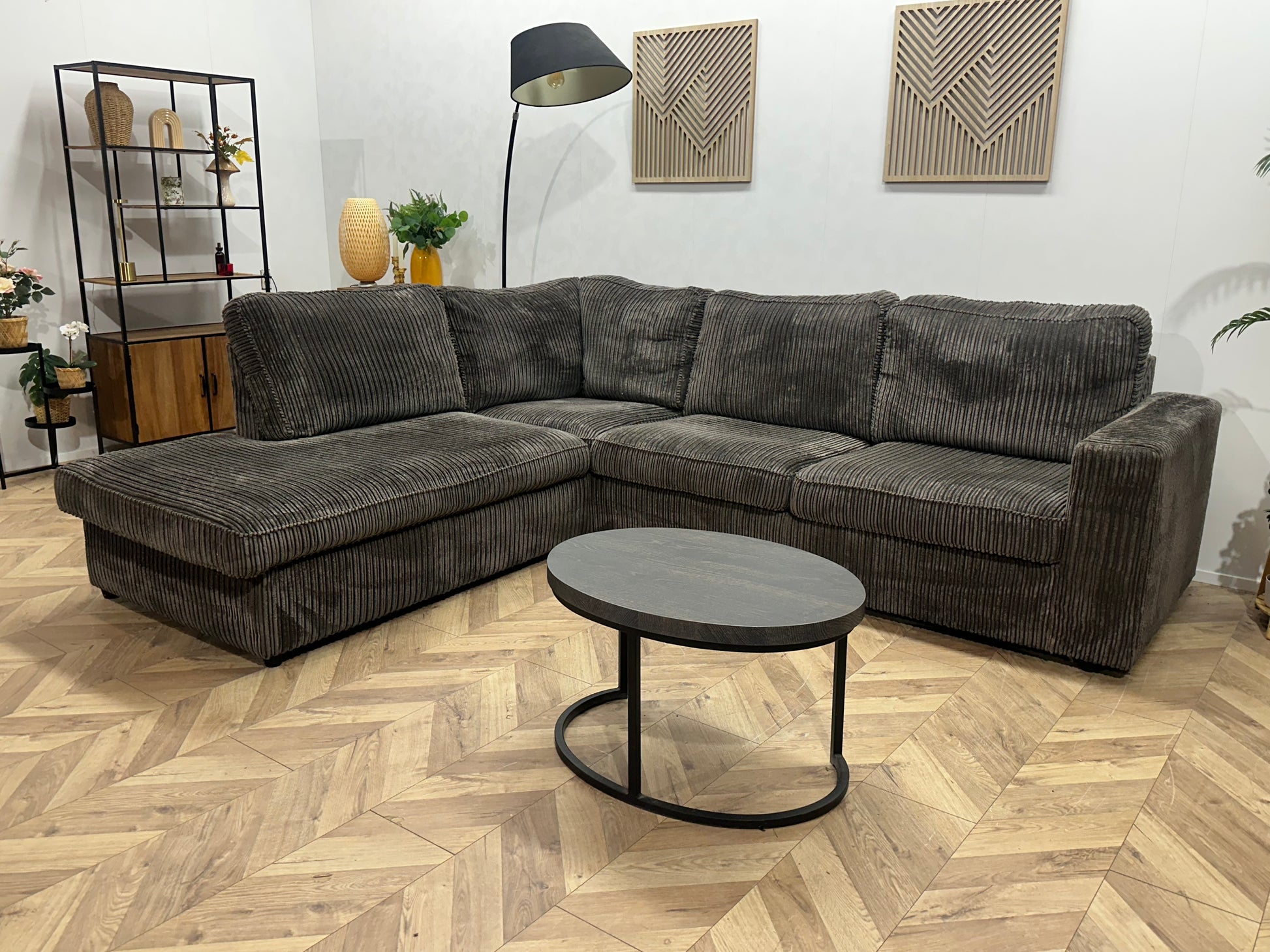 Grijze Ribstof Hoekbank ~ Losse Kussens Met Afneembare Hoezen