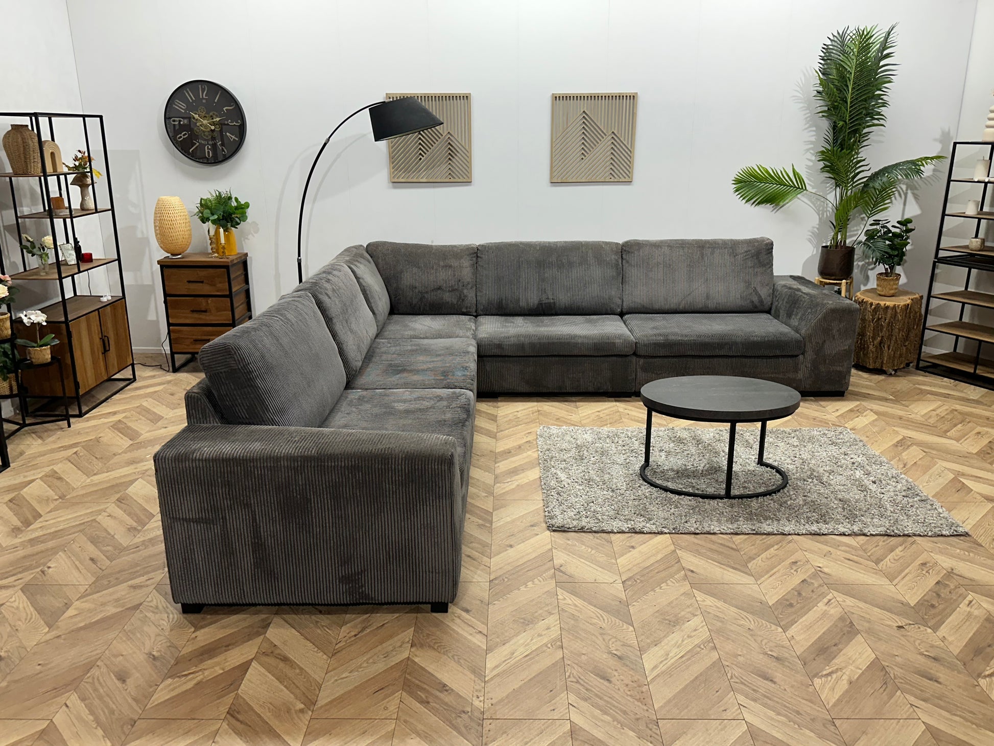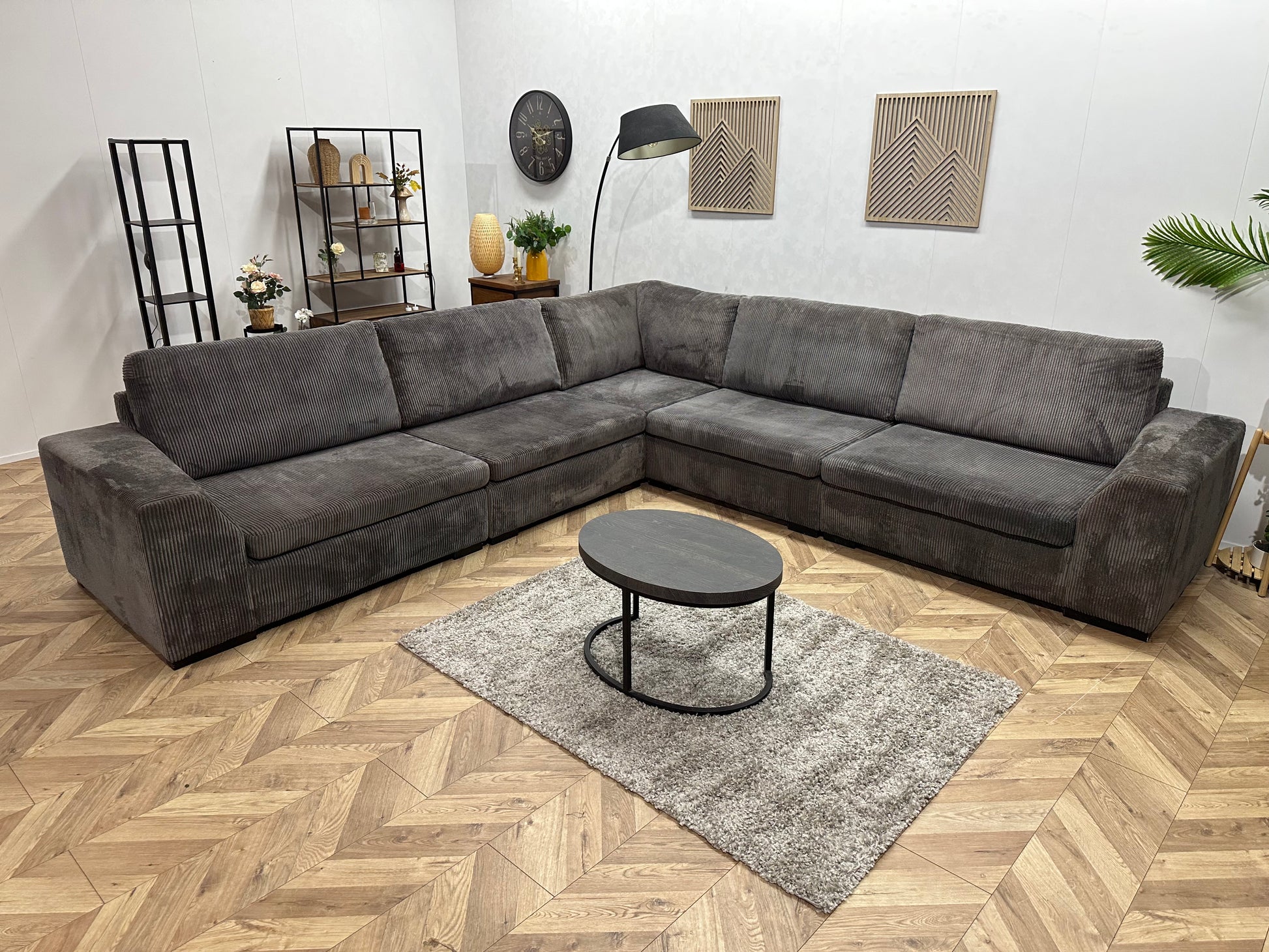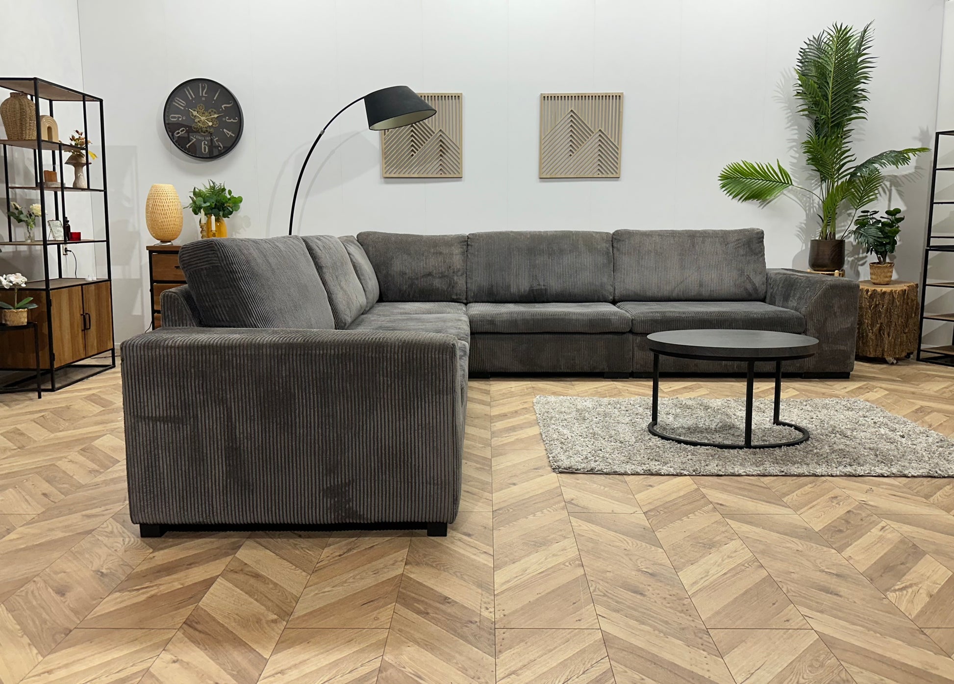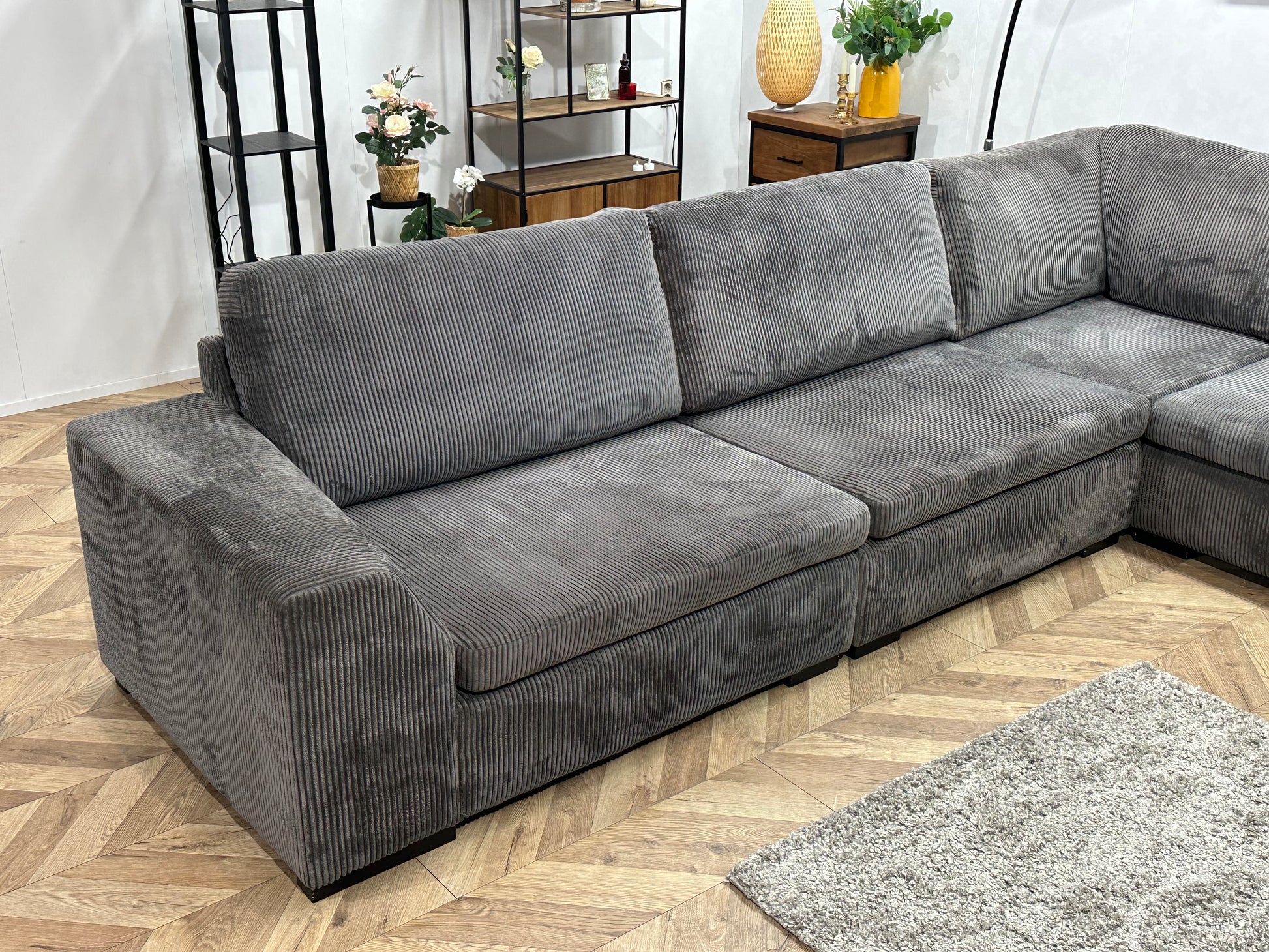Grijze Ribstof Hoekbank ~ Losse Kussens Met Afneembare Hoezen