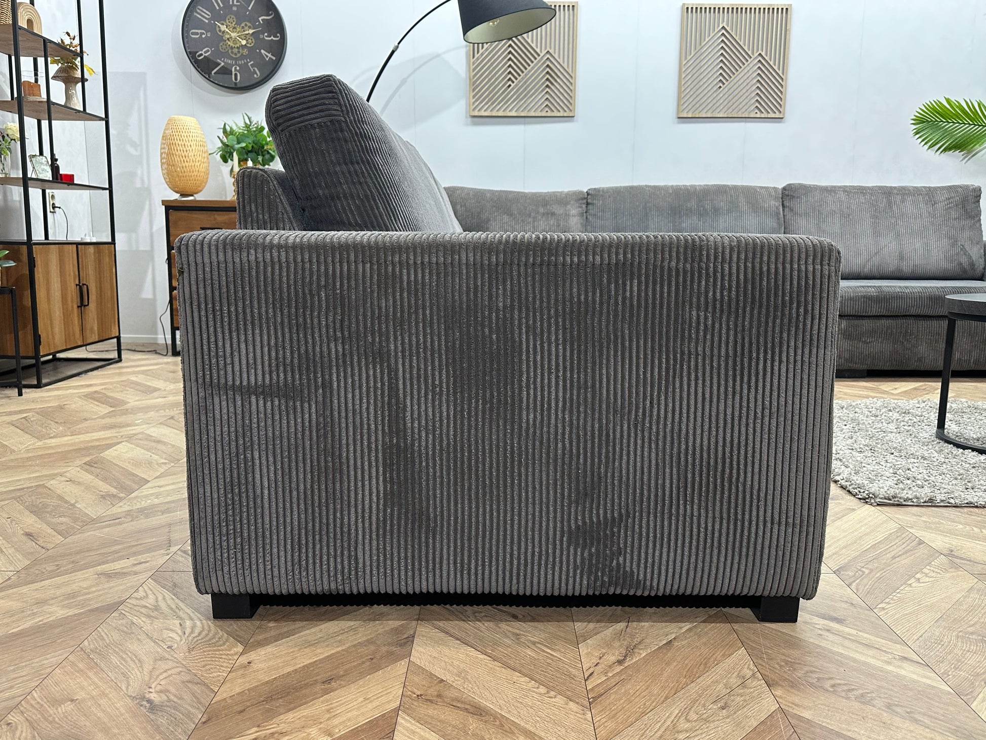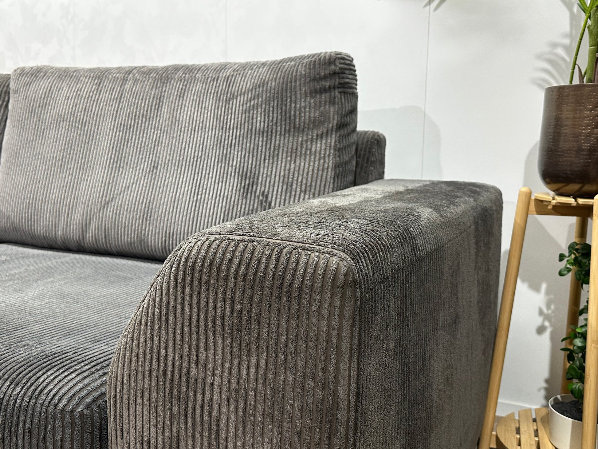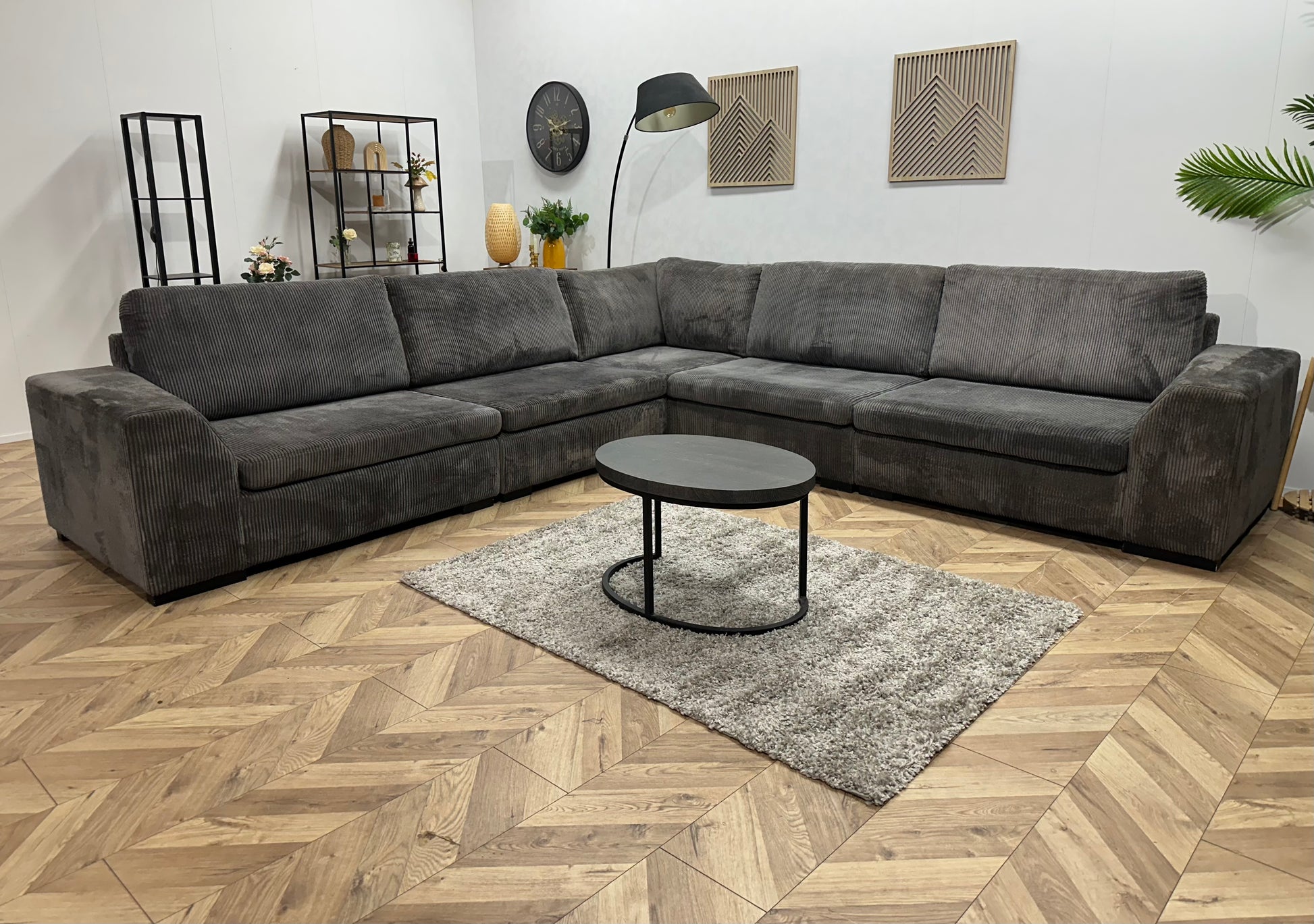 Grijze Ribstof Hoekbank ~ Losse Kussens Met Afneembare Hoezen